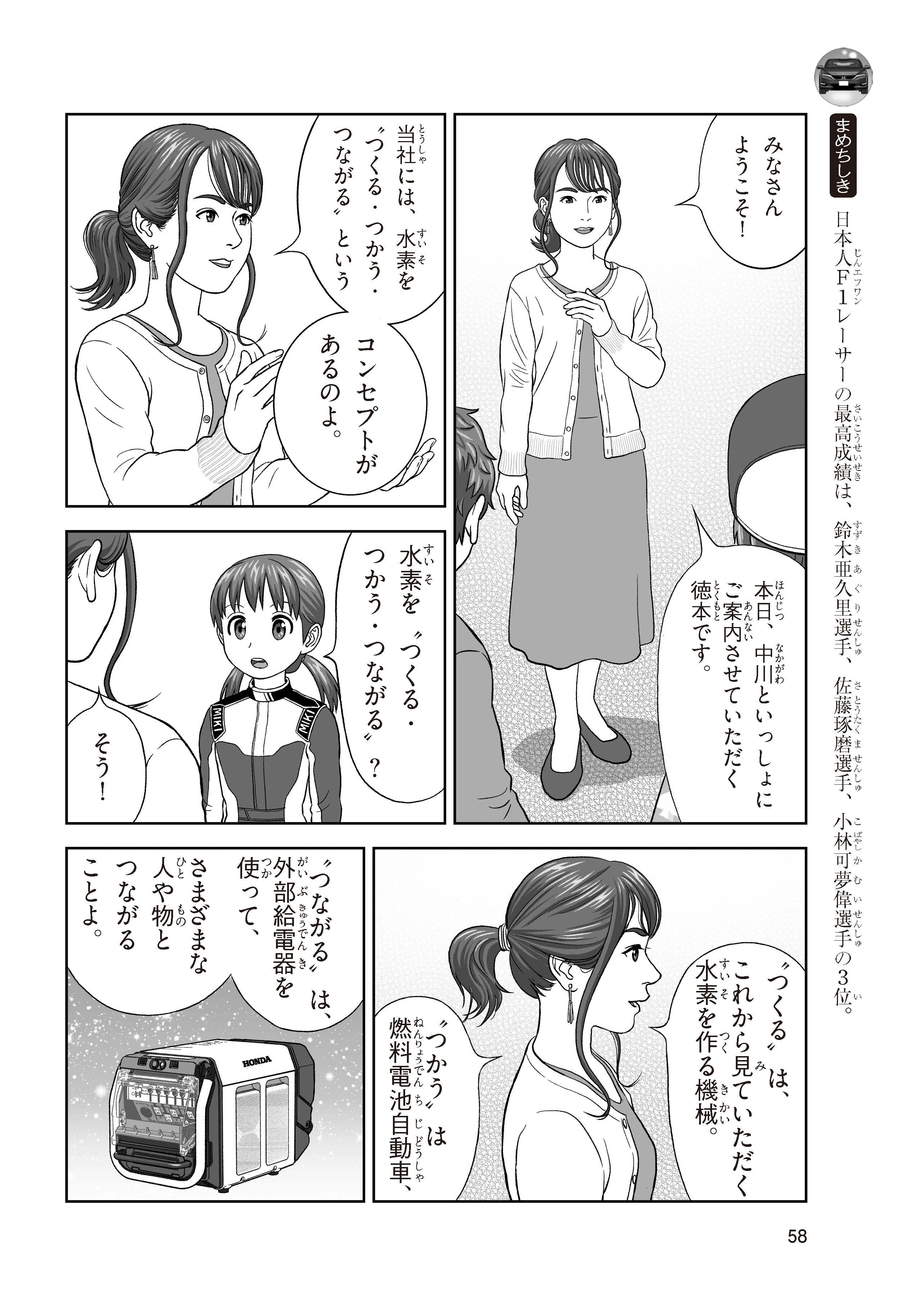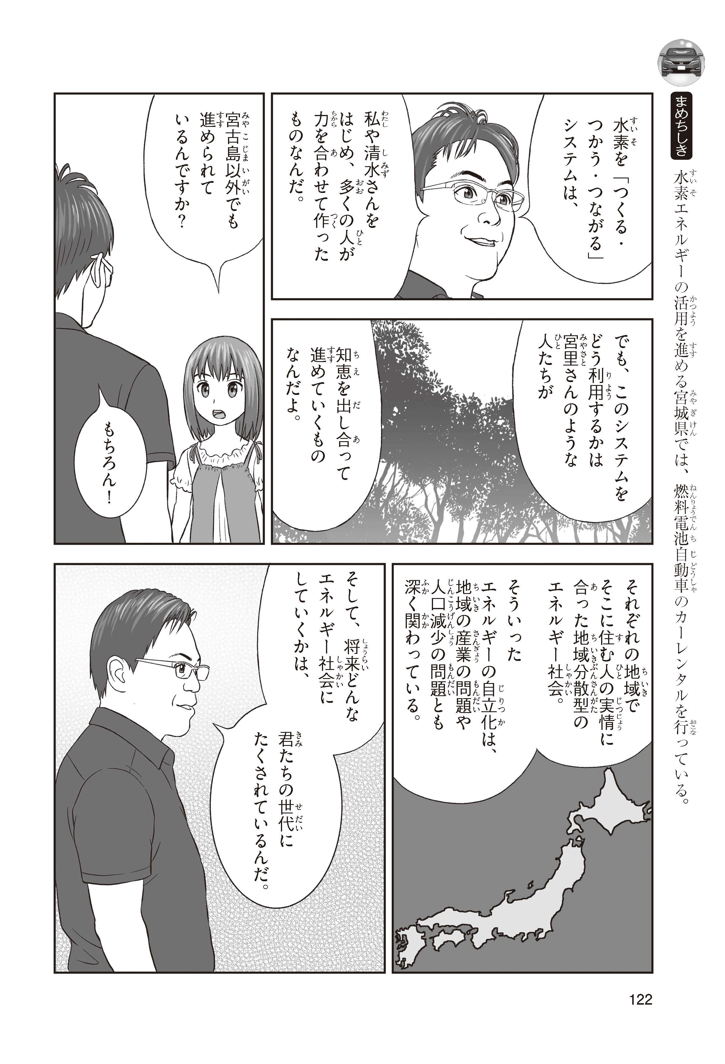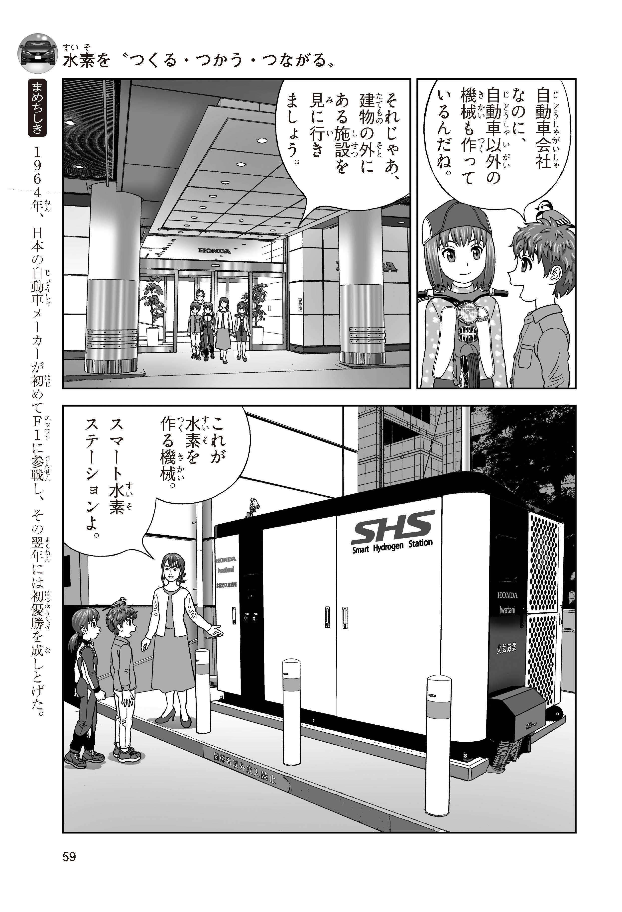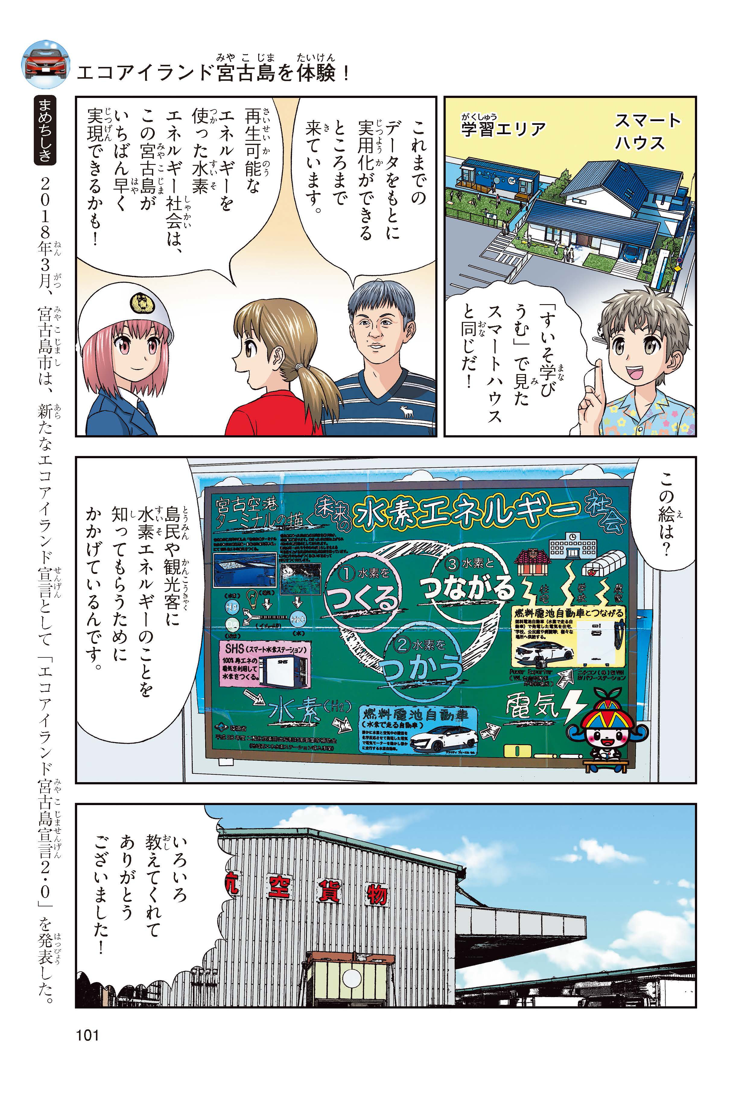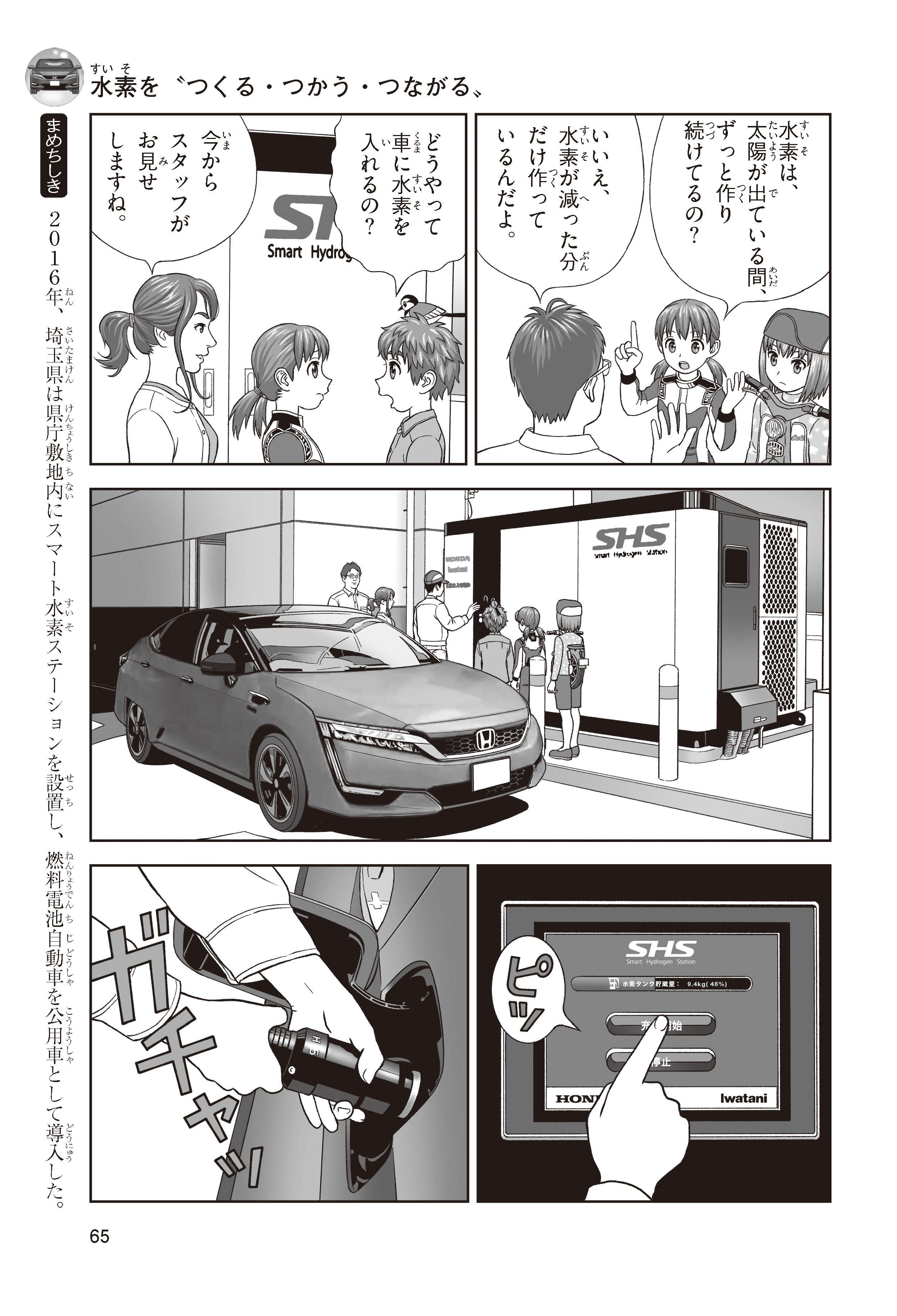 春休み、小学5年生のコウタのいとこ・アユミが遊びにくることに。同級生のミキといっしょに東京案内中、異常気象(いじょうきしょう)で停電が起こって、電気の大切さを改めて知るよ。そこで聞いたのが「燃料電池自動車」。水素という気体が燃料で、「究極のエコカー(地球にやさしい車)」と言われているんだって。電気をつくることもできて、移動発電機としての役割も期待されているんだよ。この本でひみつを探ろう!