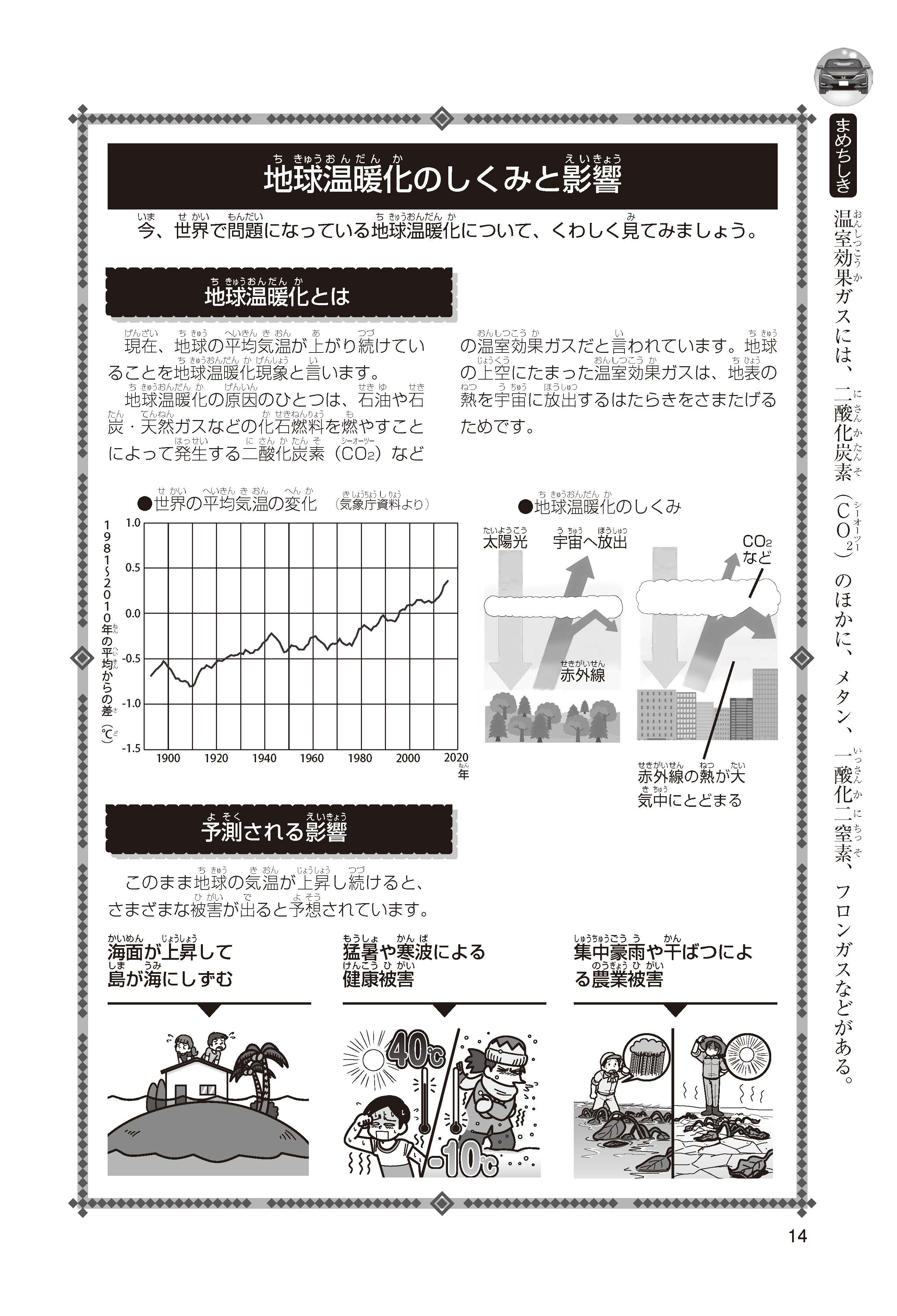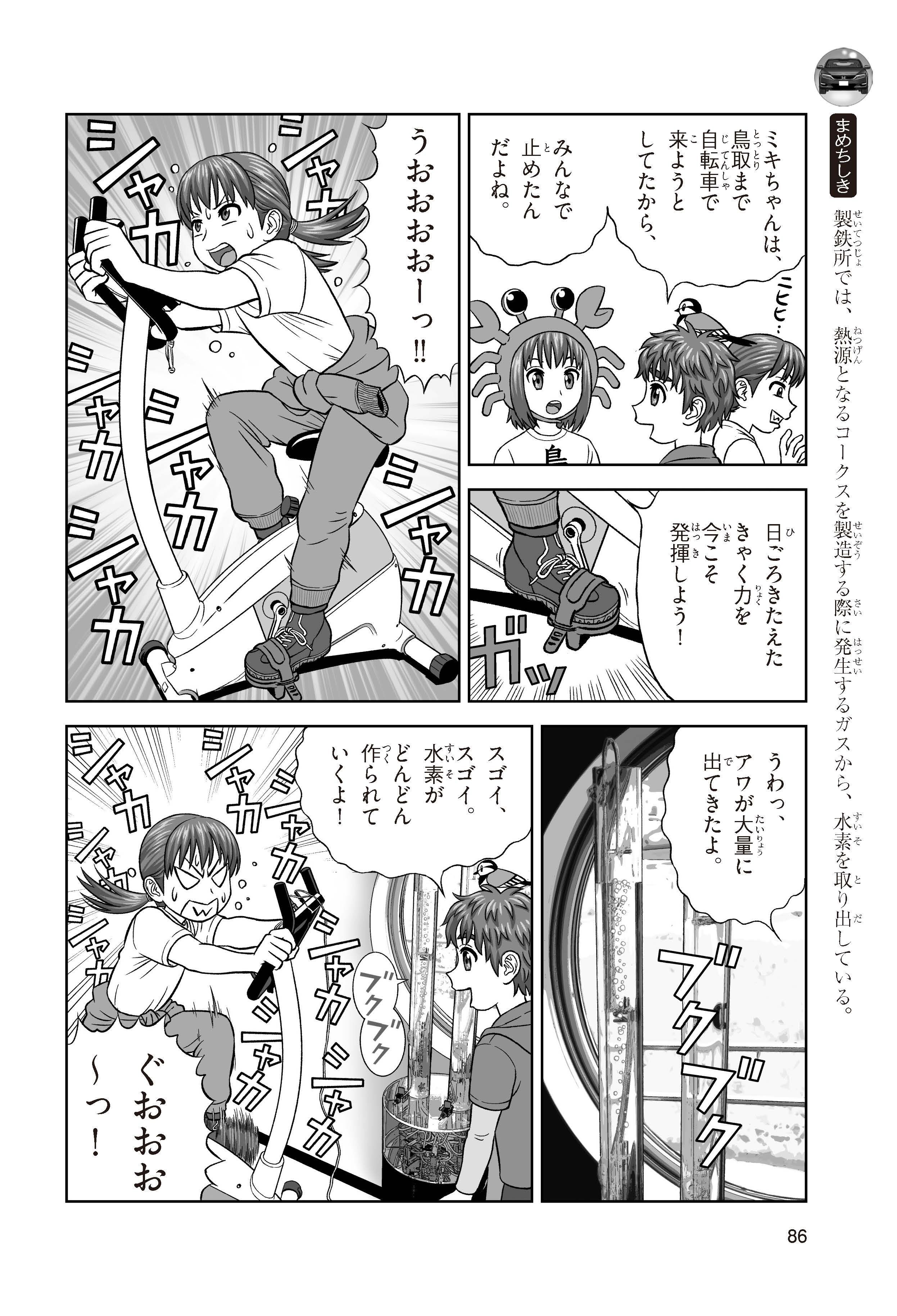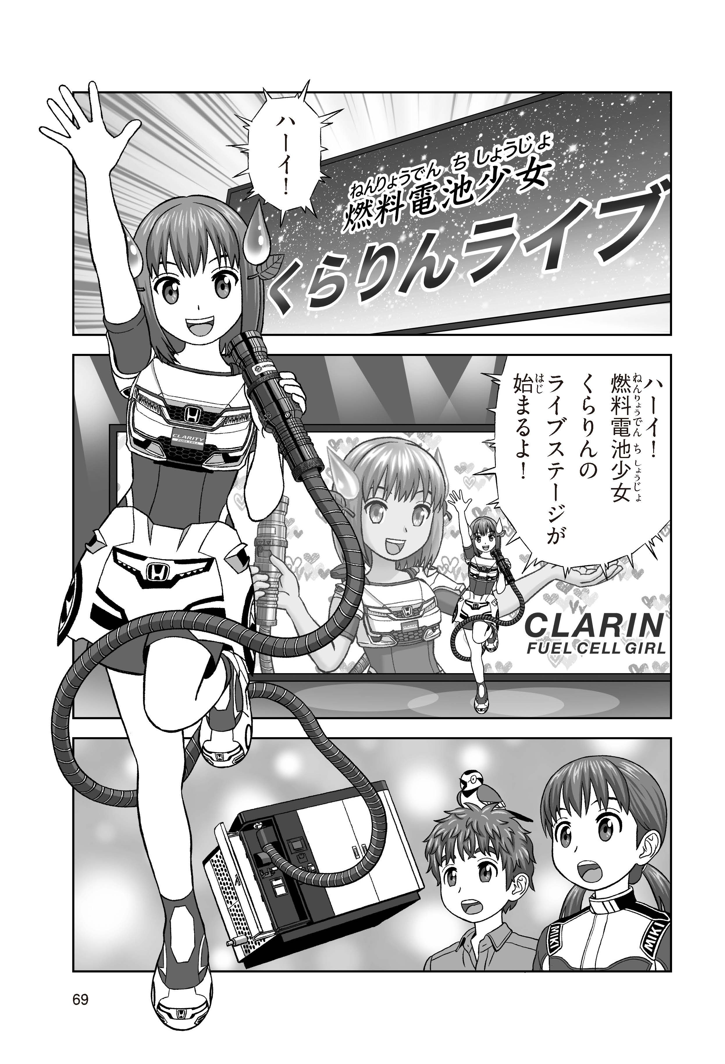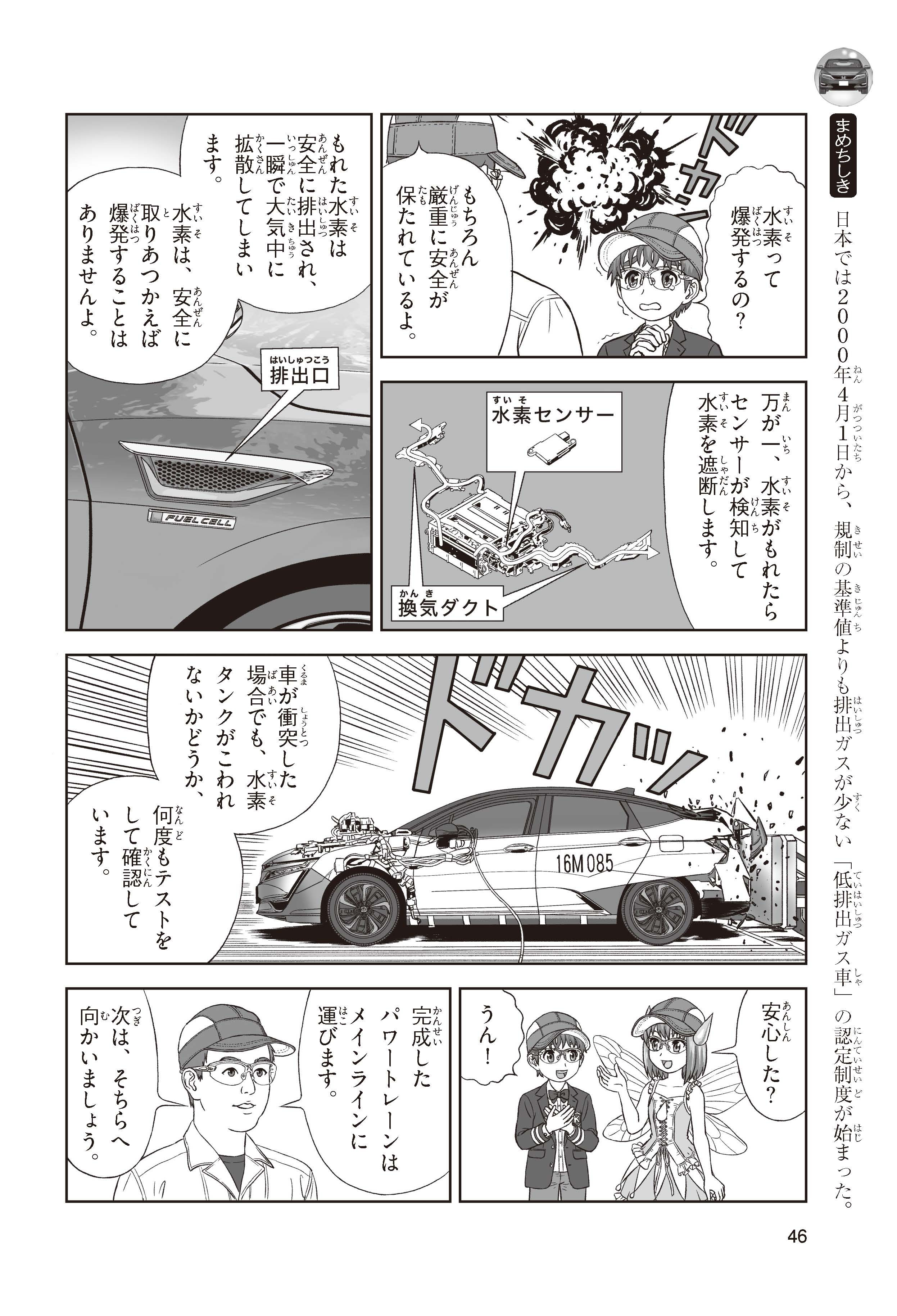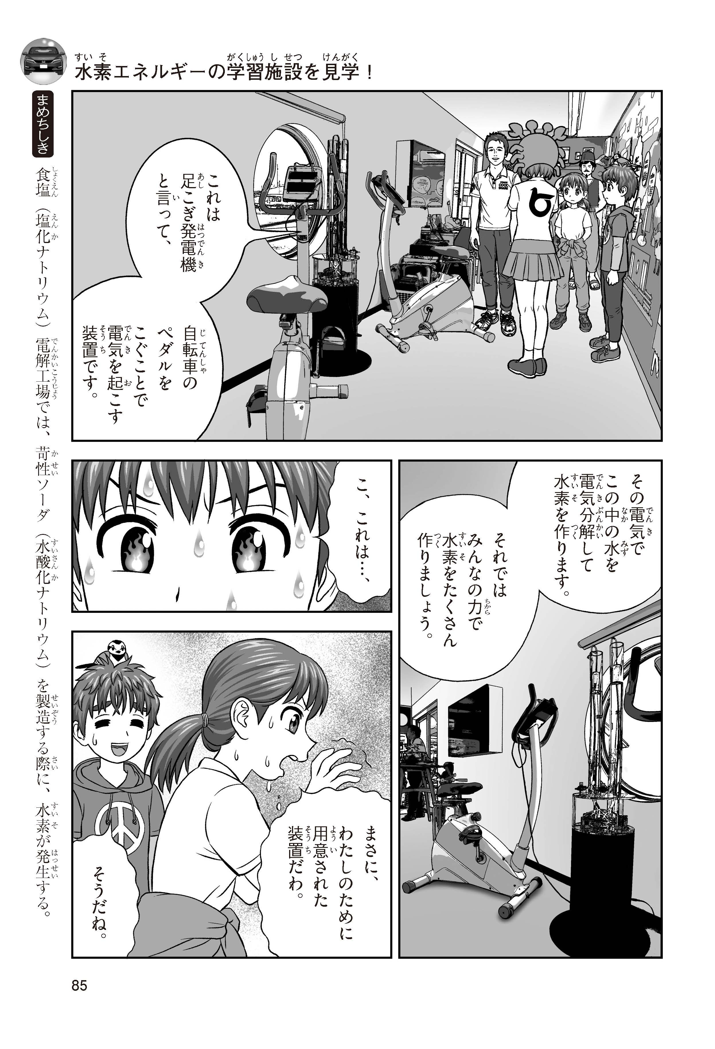 春休み、小学5年生のコウタのいとこ・アユミが遊びにくることに。同級生のミキといっしょに東京案内中、異常気象(いじょうきしょう)で停電が起こって、電気の大切さを改めて知るよ。そこで聞いたのが「燃料電池自動車」。水素という気体が燃料で、「究極のエコカー(地球にやさしい車)」と言われているんだって。電気をつくることもできて、移動発電機としての役割も期待されているんだよ。この本でひみつを探ろう!
