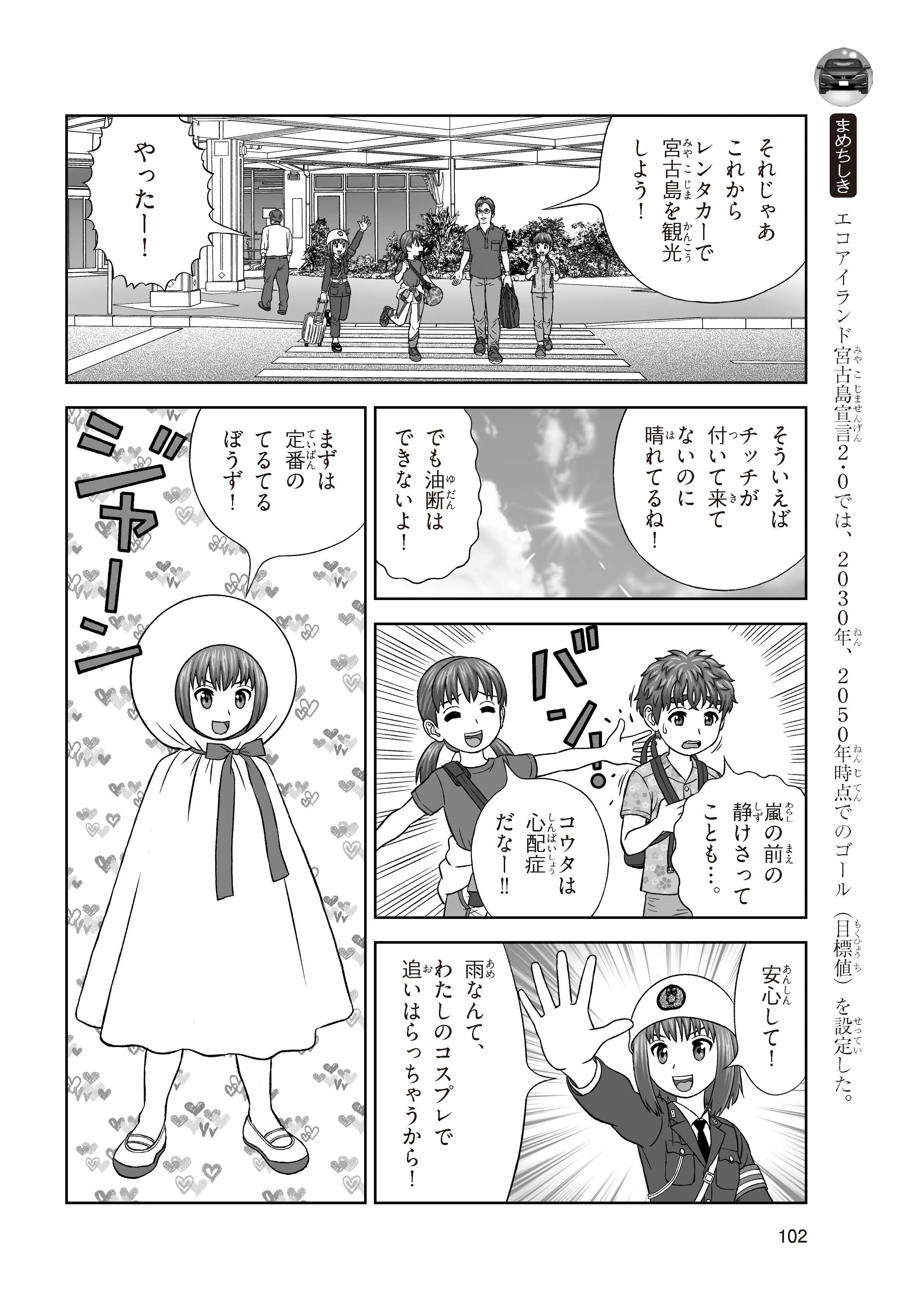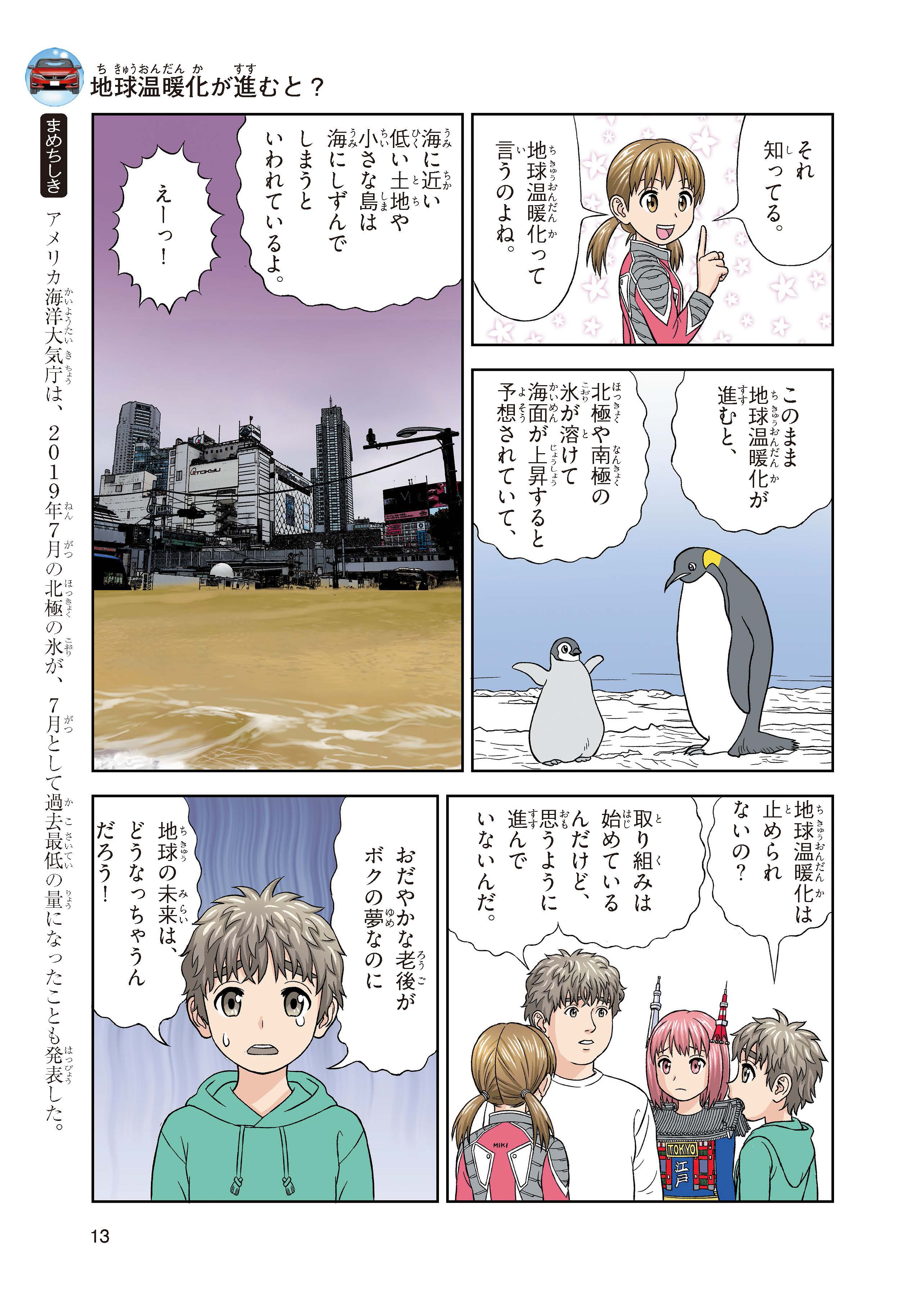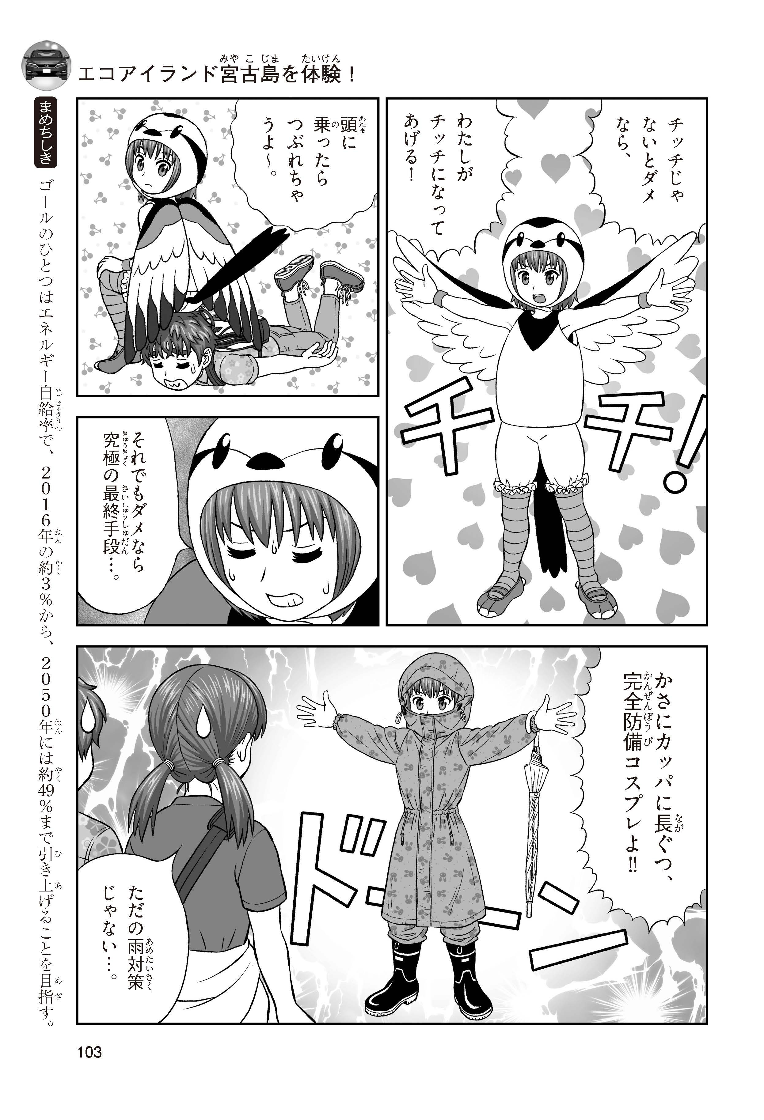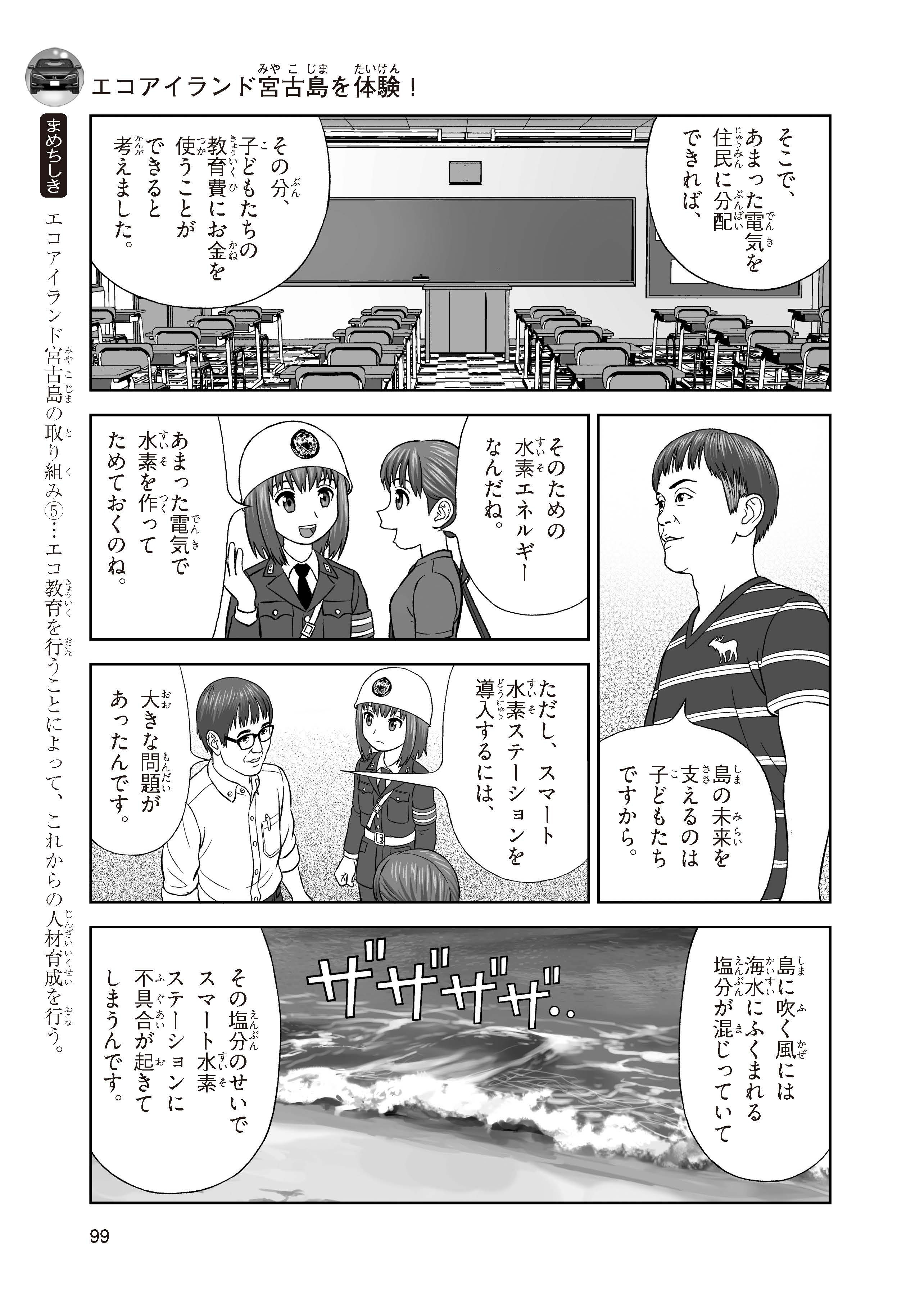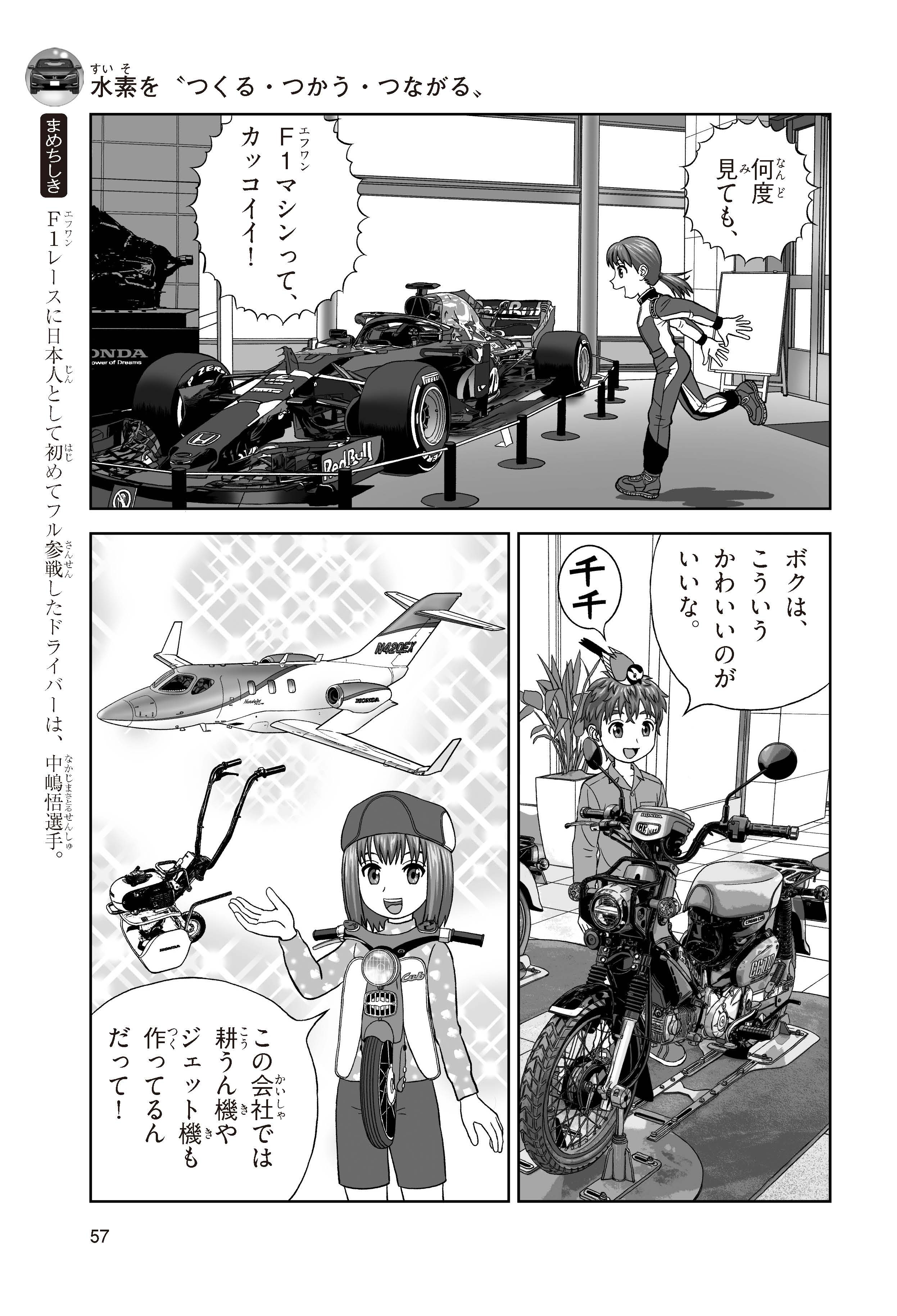 春休み、小学5年生のコウタのいとこ・アユミが遊びにくることに。同級生のミキといっしょに東京案内中、異常気象(いじょうきしょう)で停電が起こって、電気の大切さを改めて知るよ。そこで聞いたのが「燃料電池自動車」。水素という気体が燃料で、「究極のエコカー(地球にやさしい車)」と言われているんだって。電気をつくることもできて、移動発電機としての役割も期待されているんだよ。この本でひみつを探ろう!