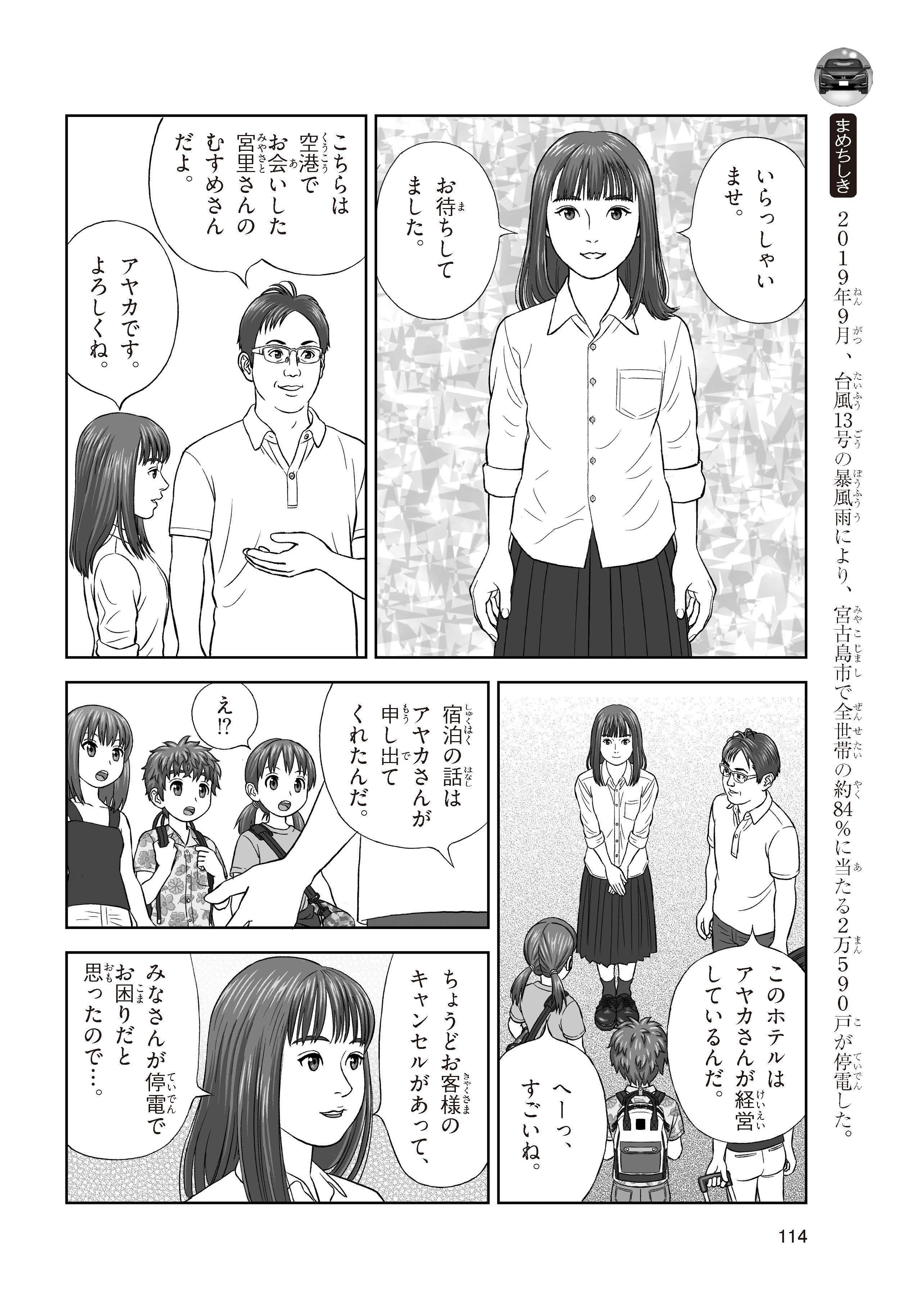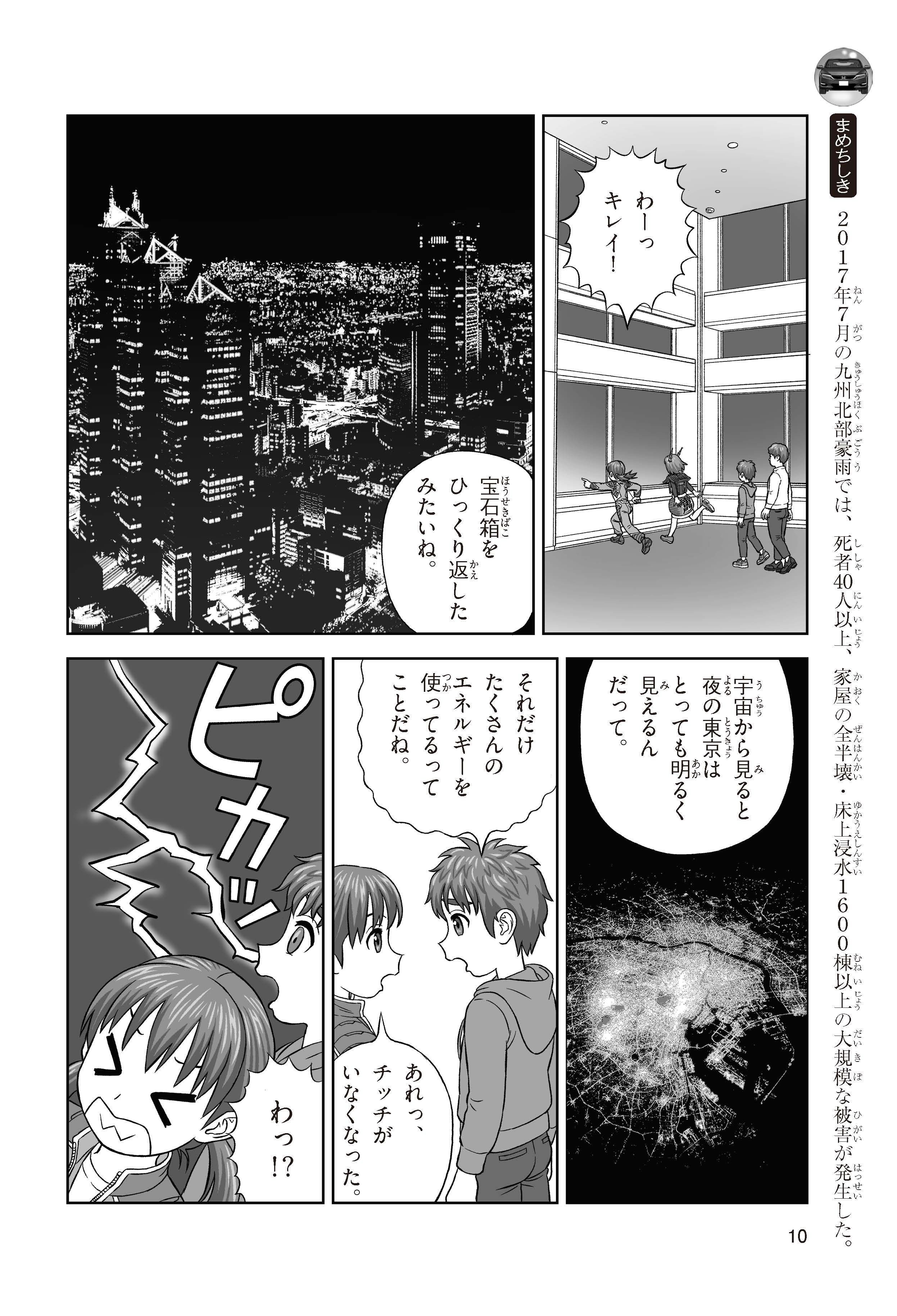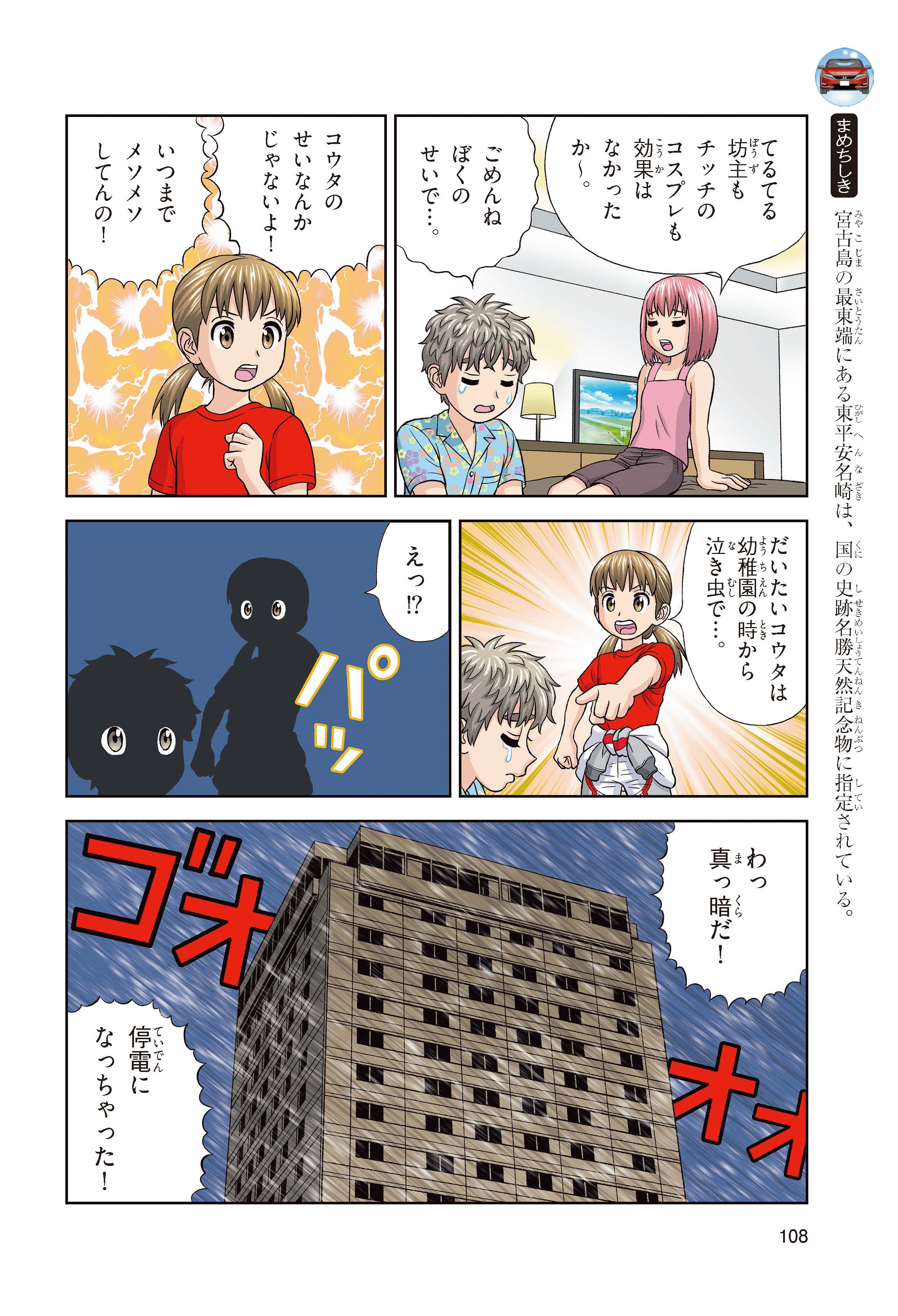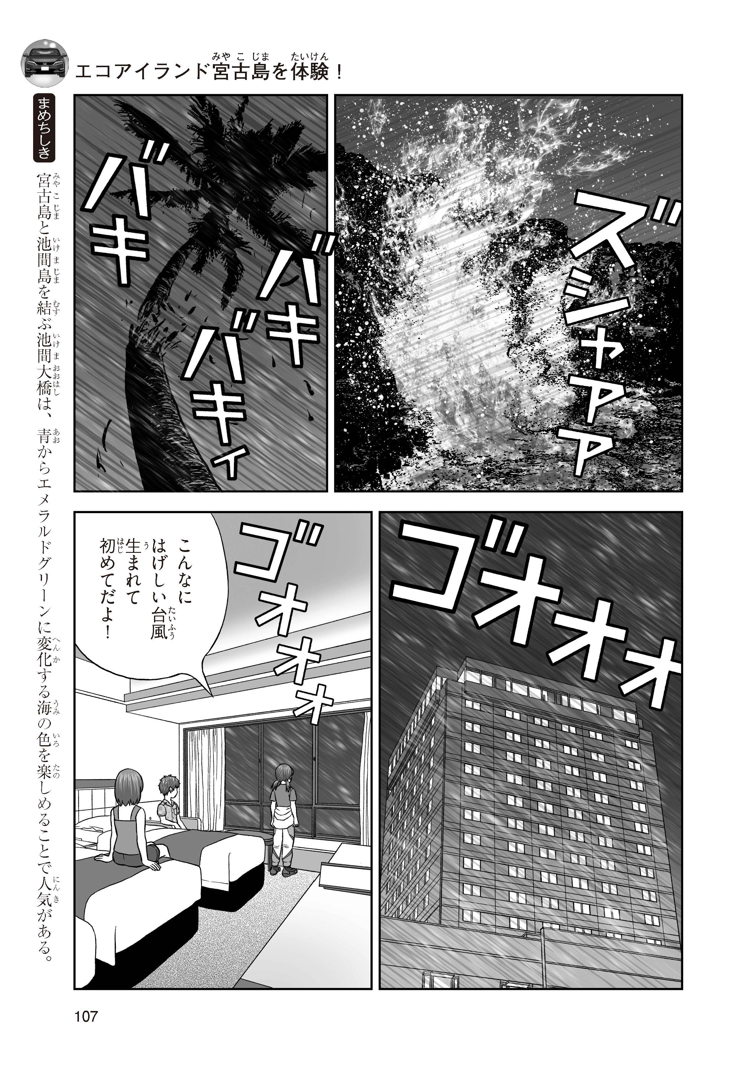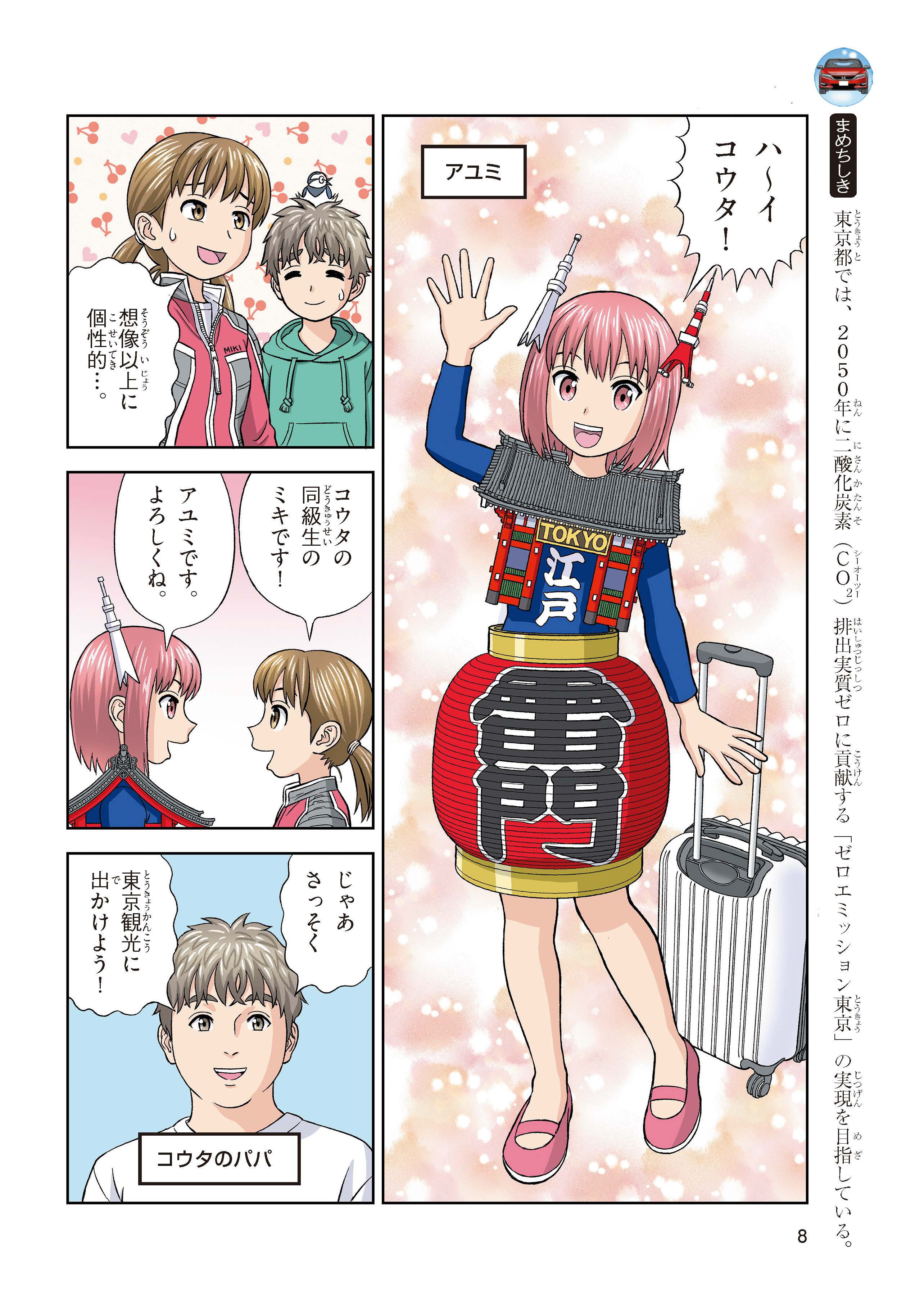 春休み、小学5年生のコウタのいとこ・アユミが遊びにくることに。同級生のミキといっしょに東京案内中、異常気象(いじょうきしょう)で停電が起こって、電気の大切さを改めて知るよ。そこで聞いたのが「燃料電池自動車」。水素という気体が燃料で、「究極のエコカー(地球にやさしい車)」と言われているんだって。電気をつくることもできて、移動発電機としての役割も期待されているんだよ。この本でひみつを探ろう!