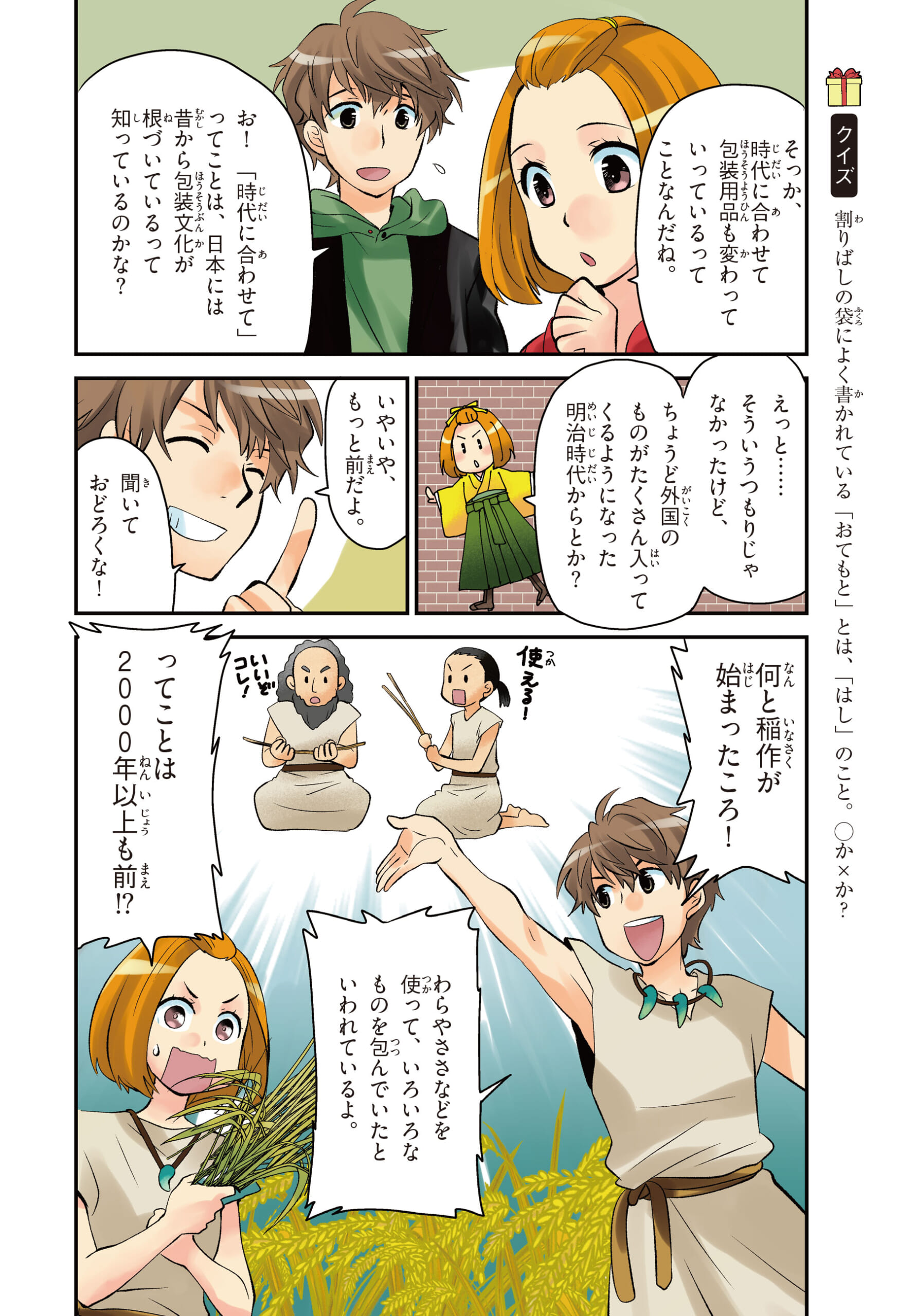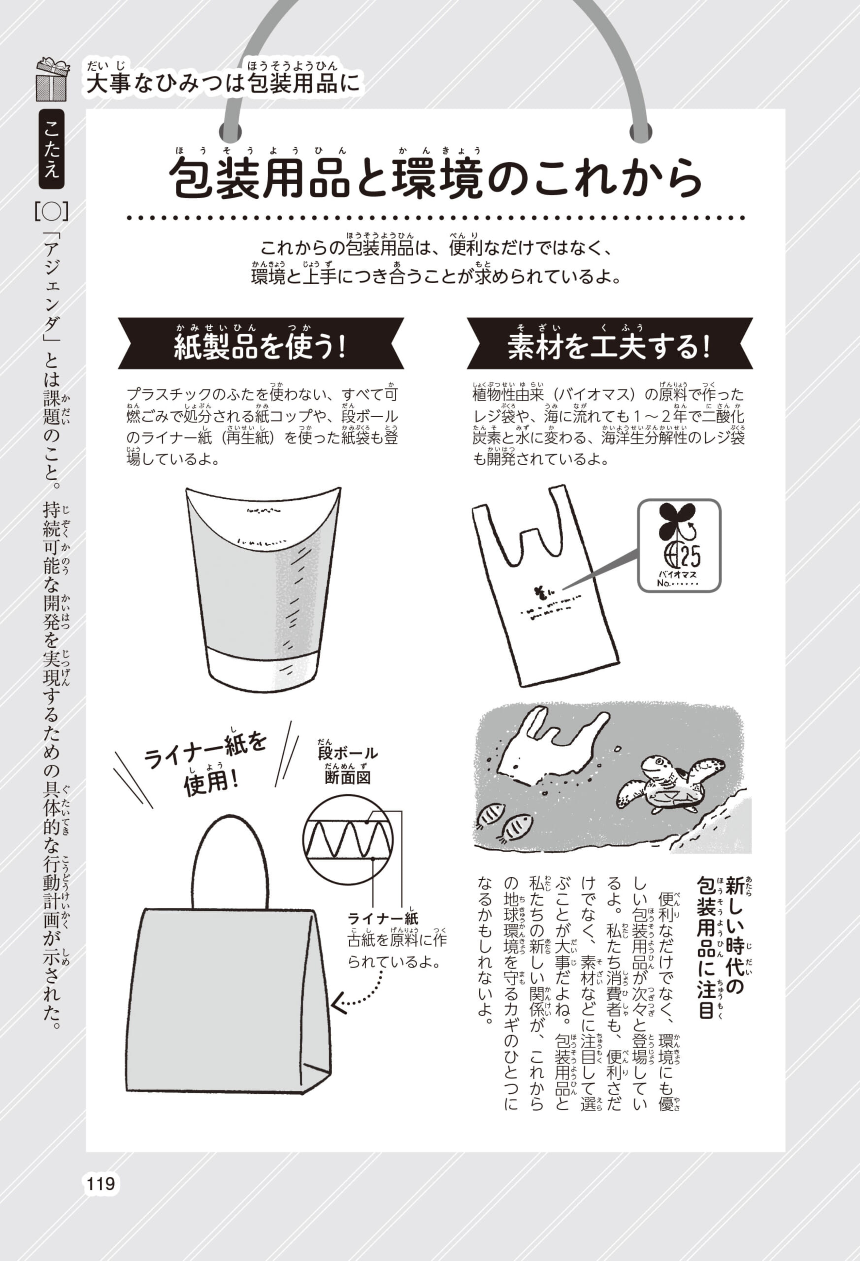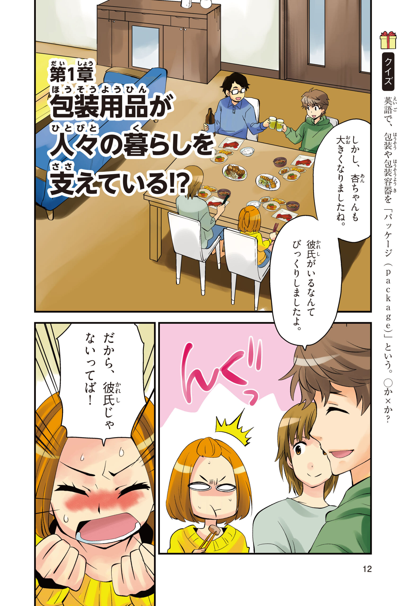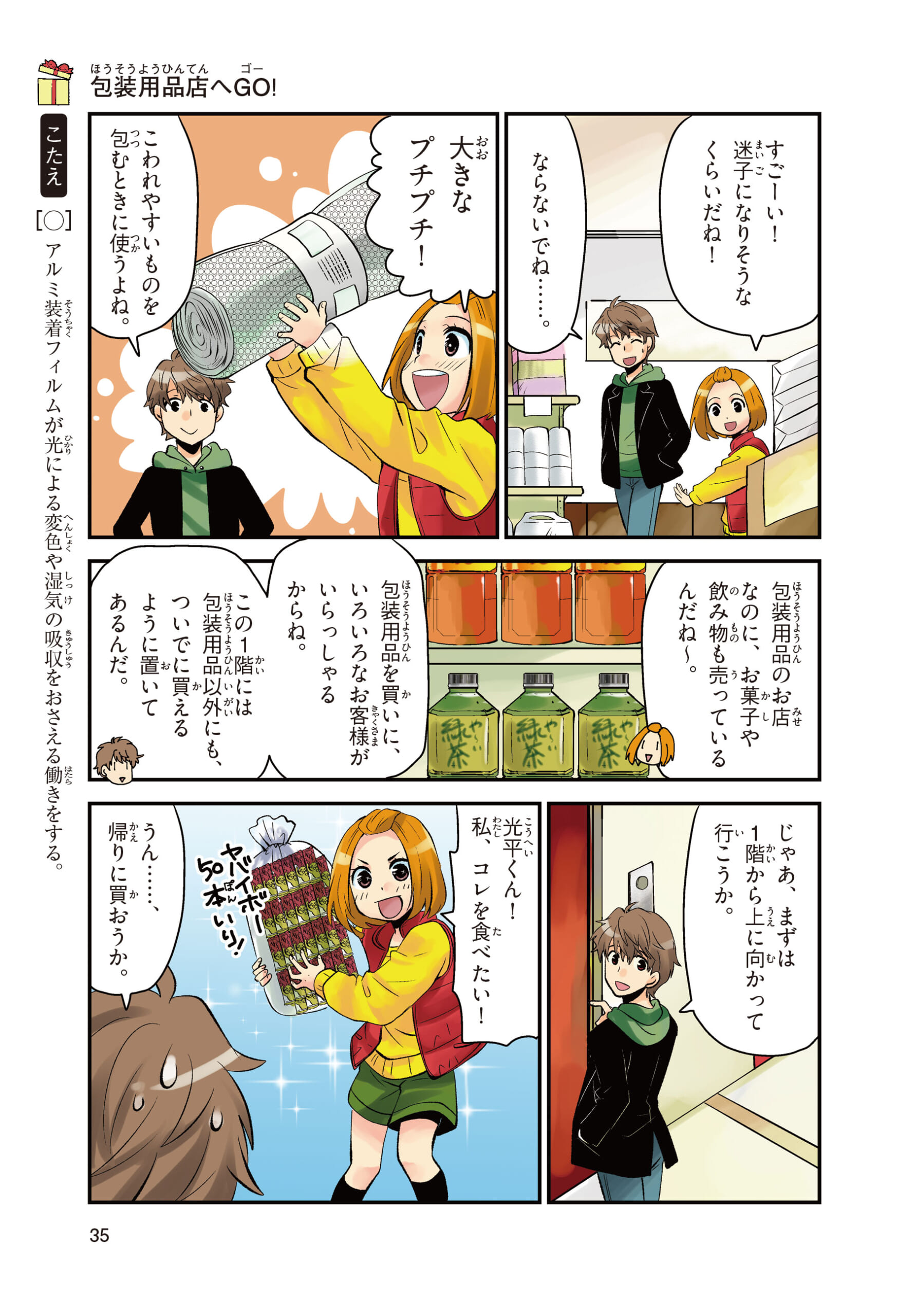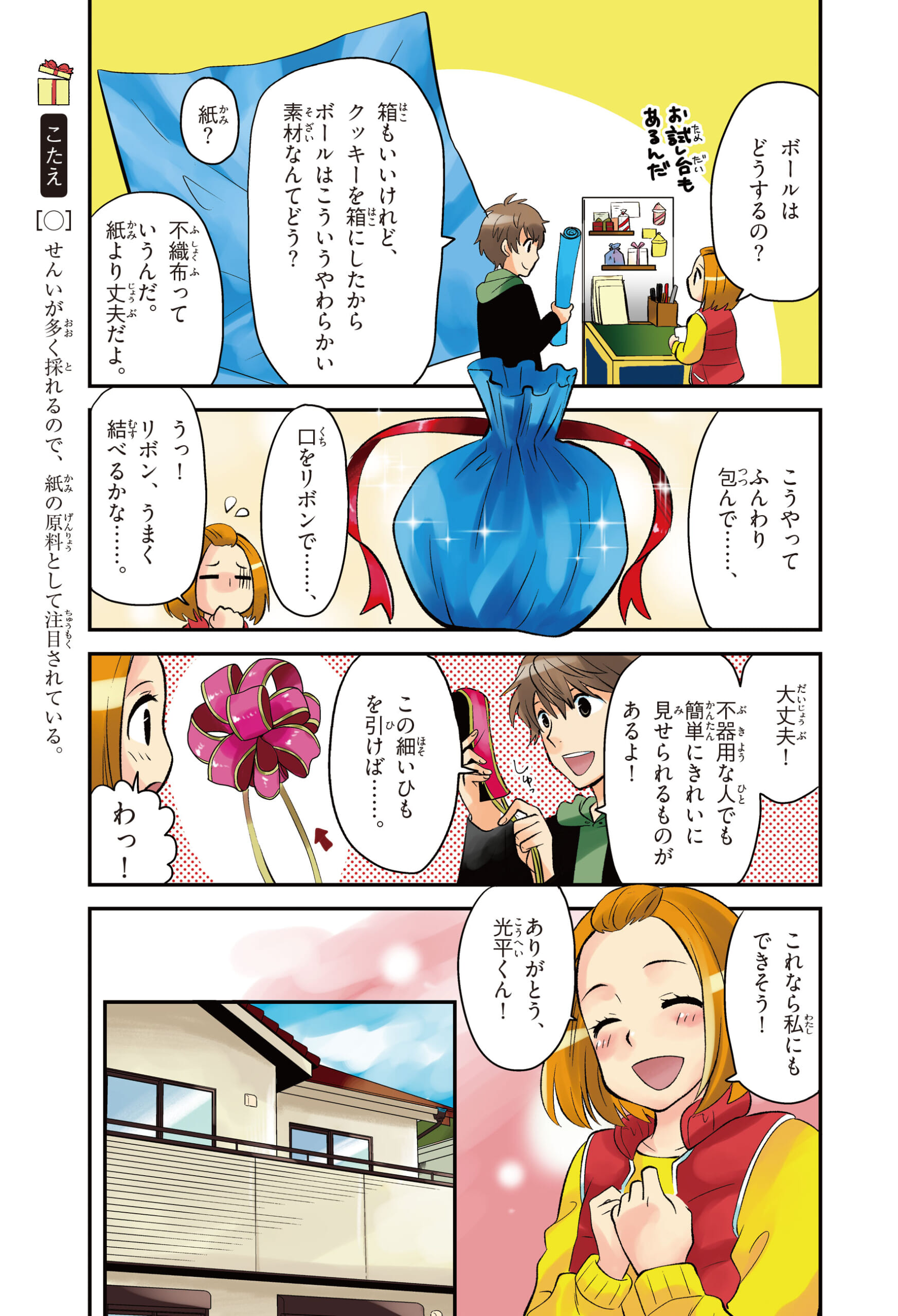 包装用品って、どんなものを想像する? プレゼントに使う、ラッピングペーパーやリボンはもちろん、おかずやお菓子を入れるバックや箱、書類などを入れるふうとう、ものを持ち運ぶ手提げ袋なども全部、包装用品の仲間なんだ。人の気持ちを伝えるのにも、人の暮らしを支えるのにも包装は役立っているんだよ。そして今、地球に優しい包装用品もたくさんできているんだ。さあ、みんなも「包装のひみつ」をいっしょにさぐってみよう!