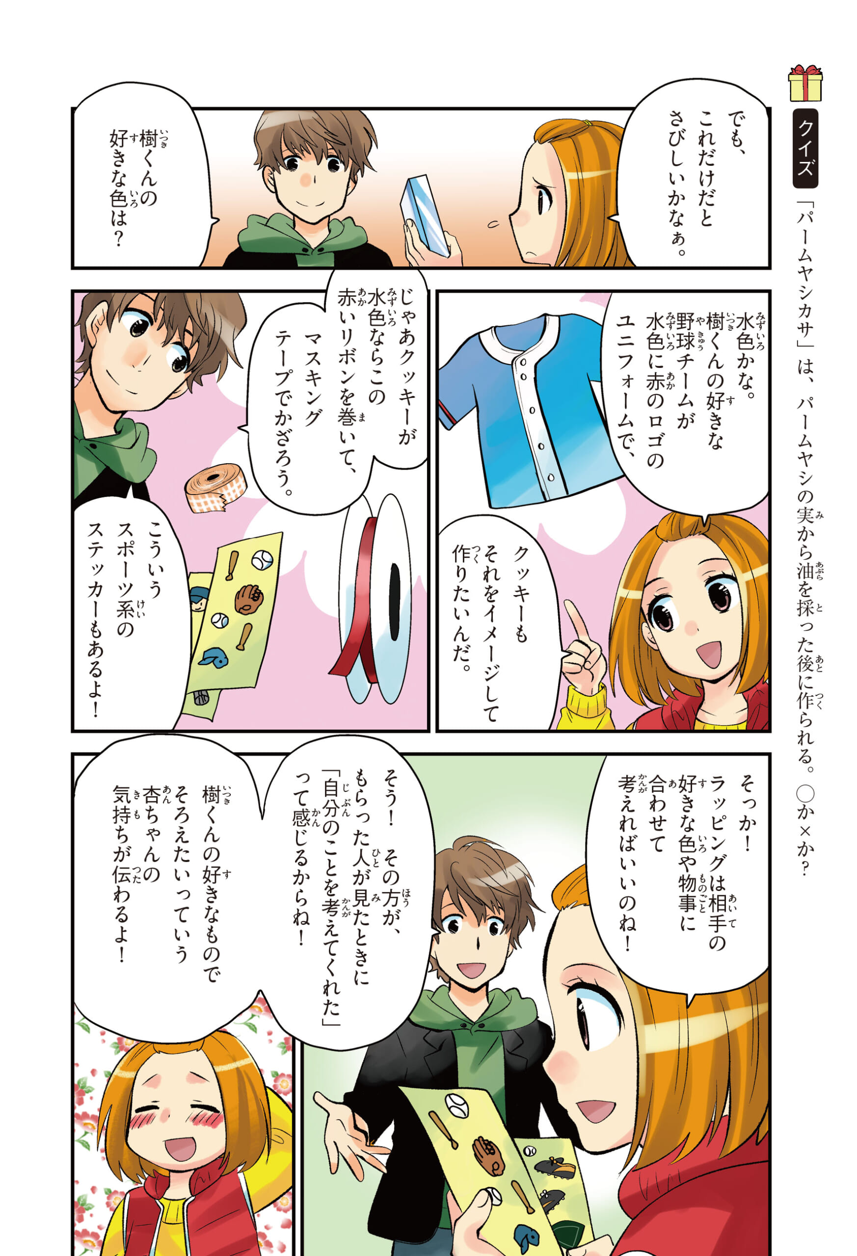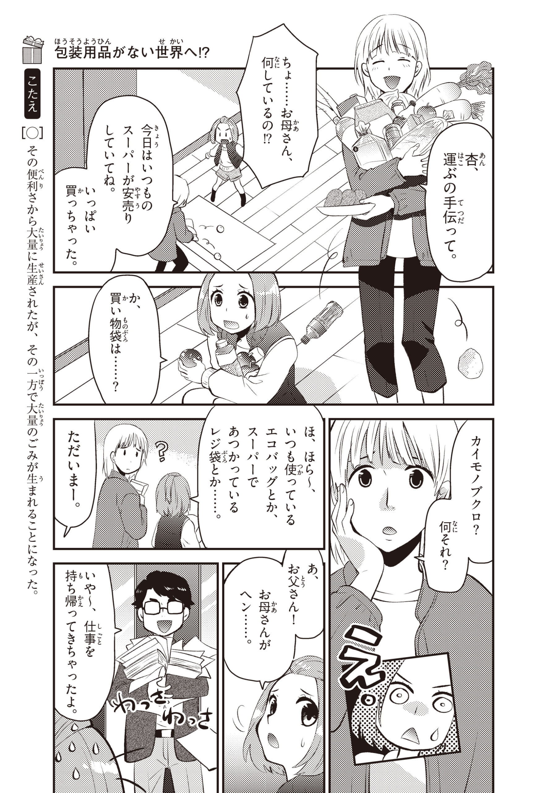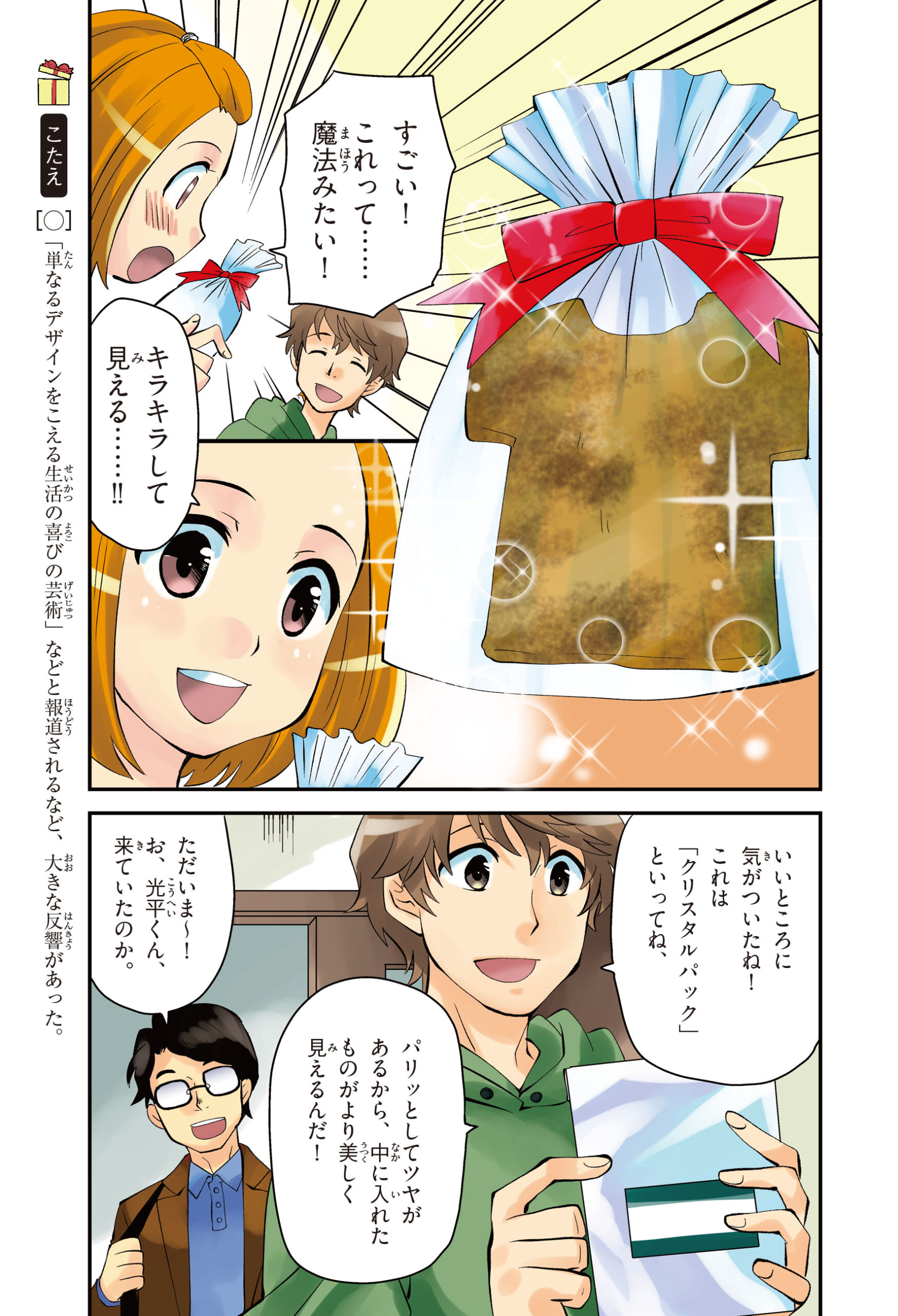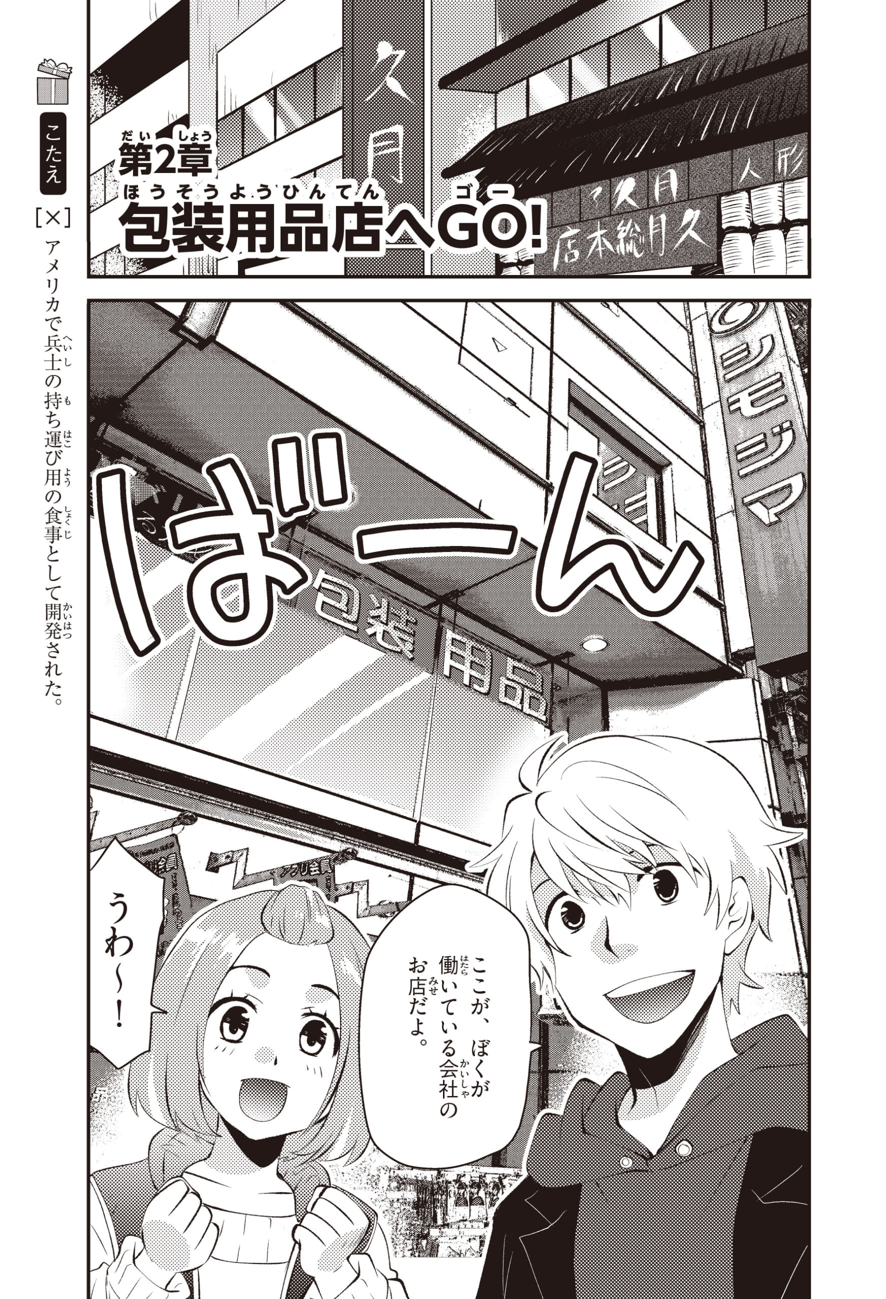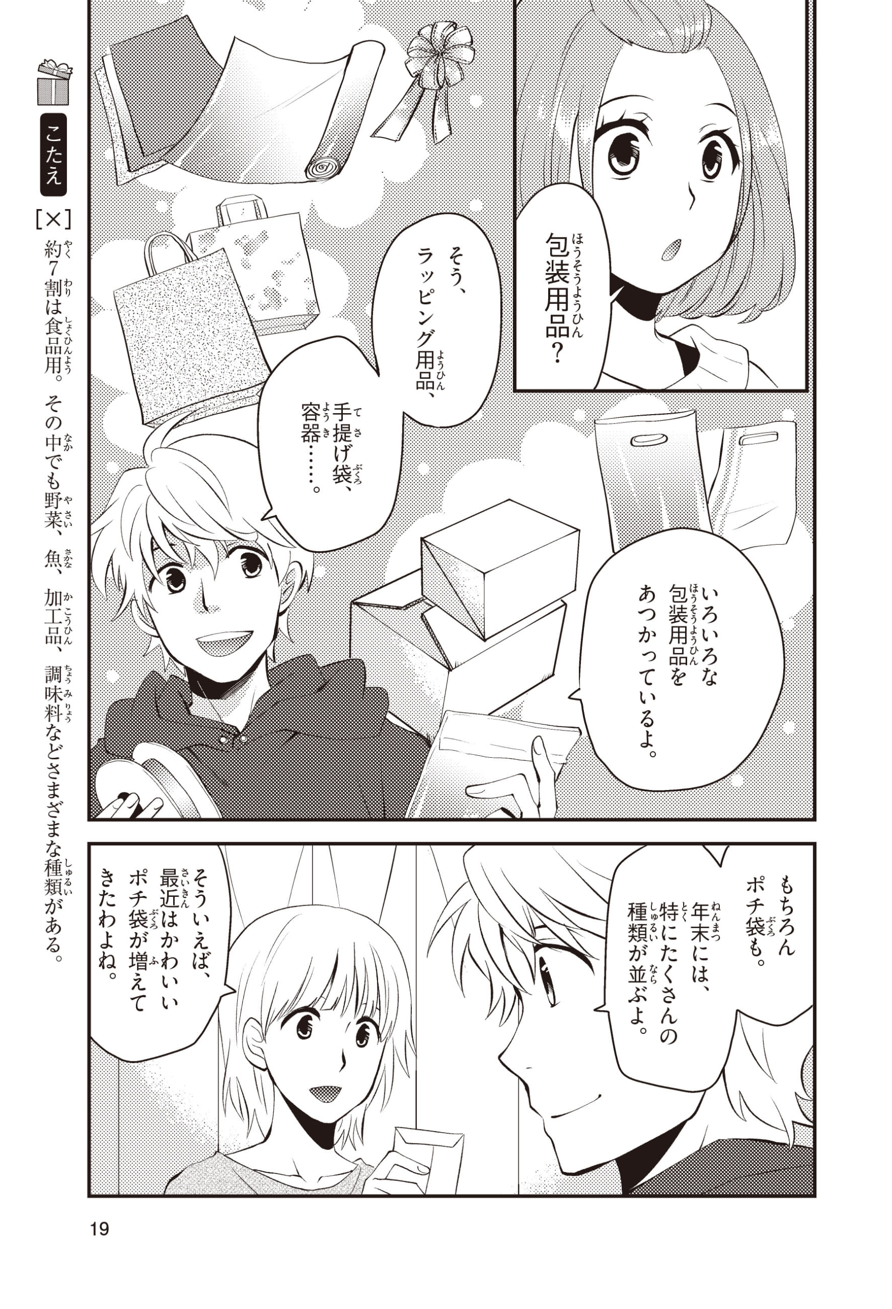 包装用品って、どんなものを想像する? プレゼントに使う、ラッピングペーパーやリボンはもちろん、おかずやお菓子を入れるバックや箱、書類などを入れるふうとう、ものを持ち運ぶ手提げ袋なども全部、包装用品の仲間なんだ。人の気持ちを伝えるのにも、人の暮らしを支えるのにも包装は役立っているんだよ。そして今、地球に優しい包装用品もたくさんできているんだ。さあ、みんなも「包装のひみつ」をいっしょにさぐってみよう!