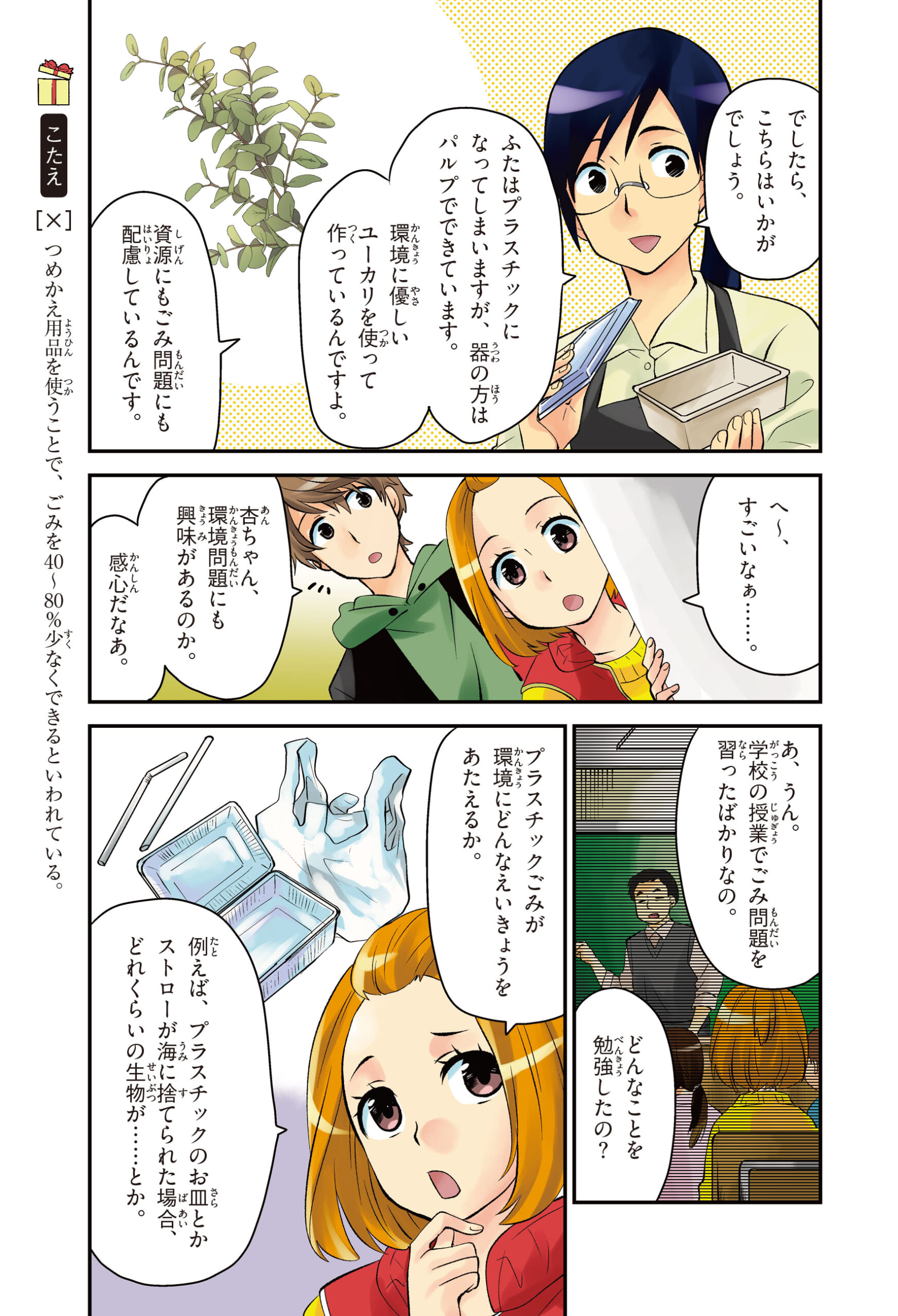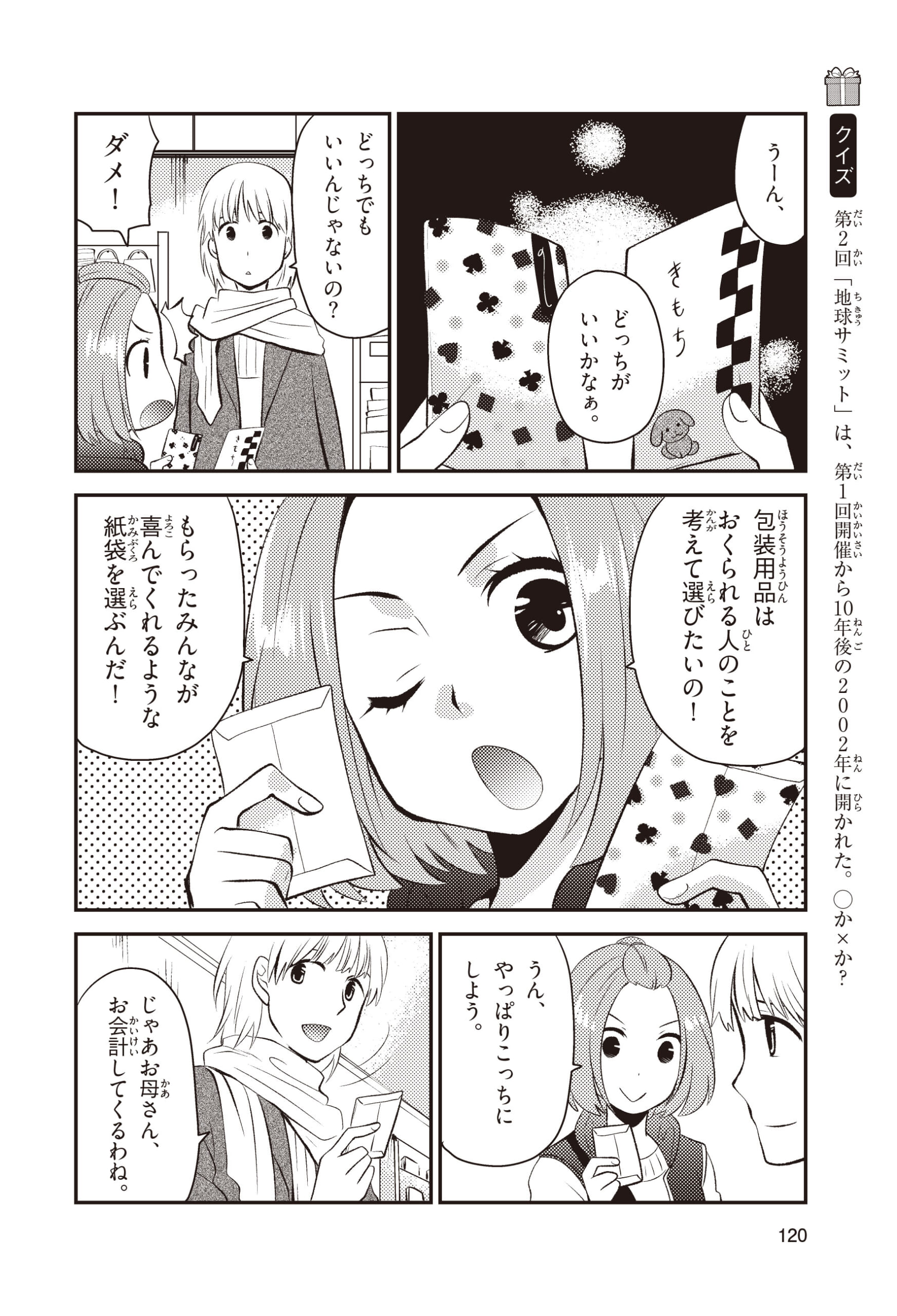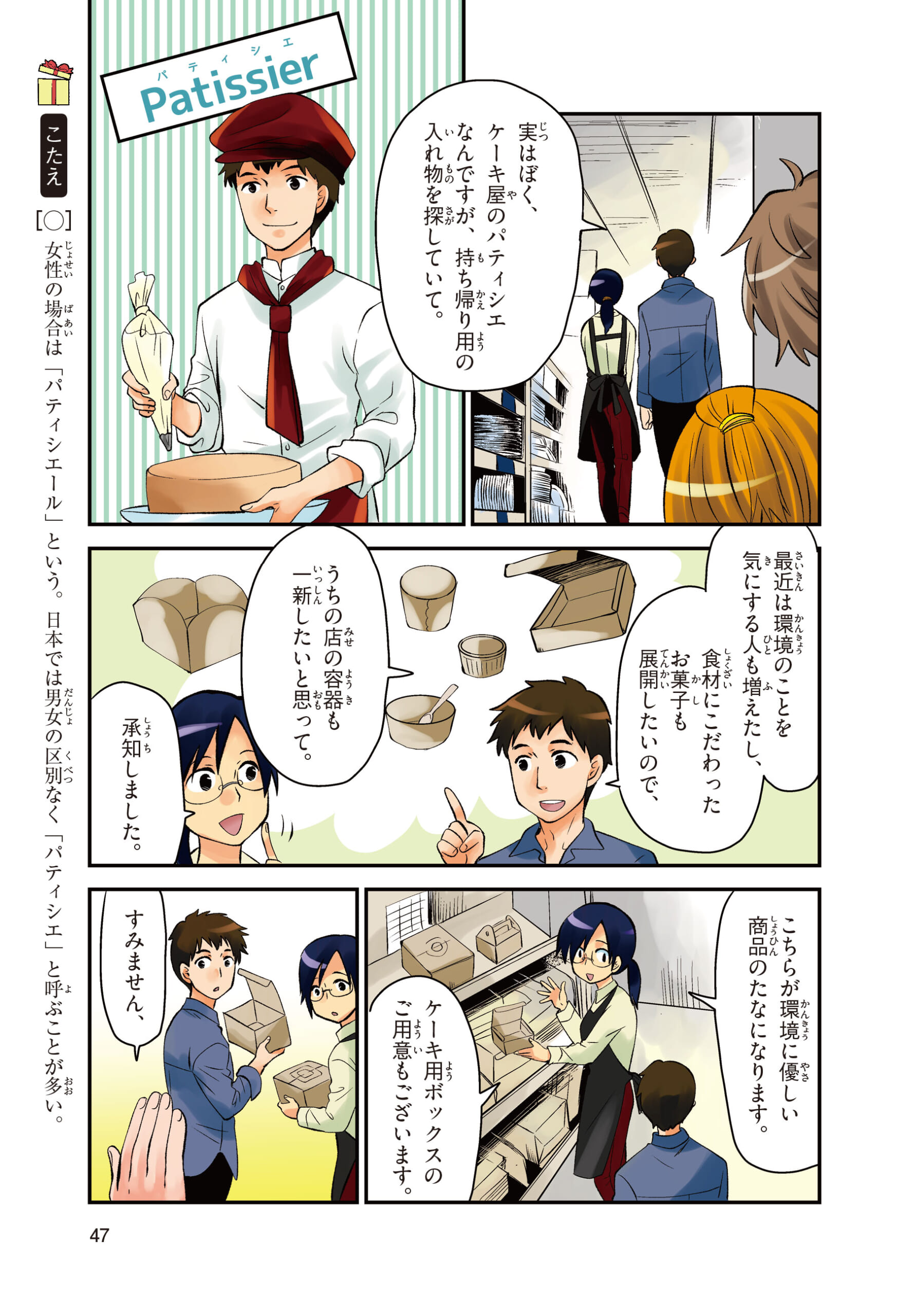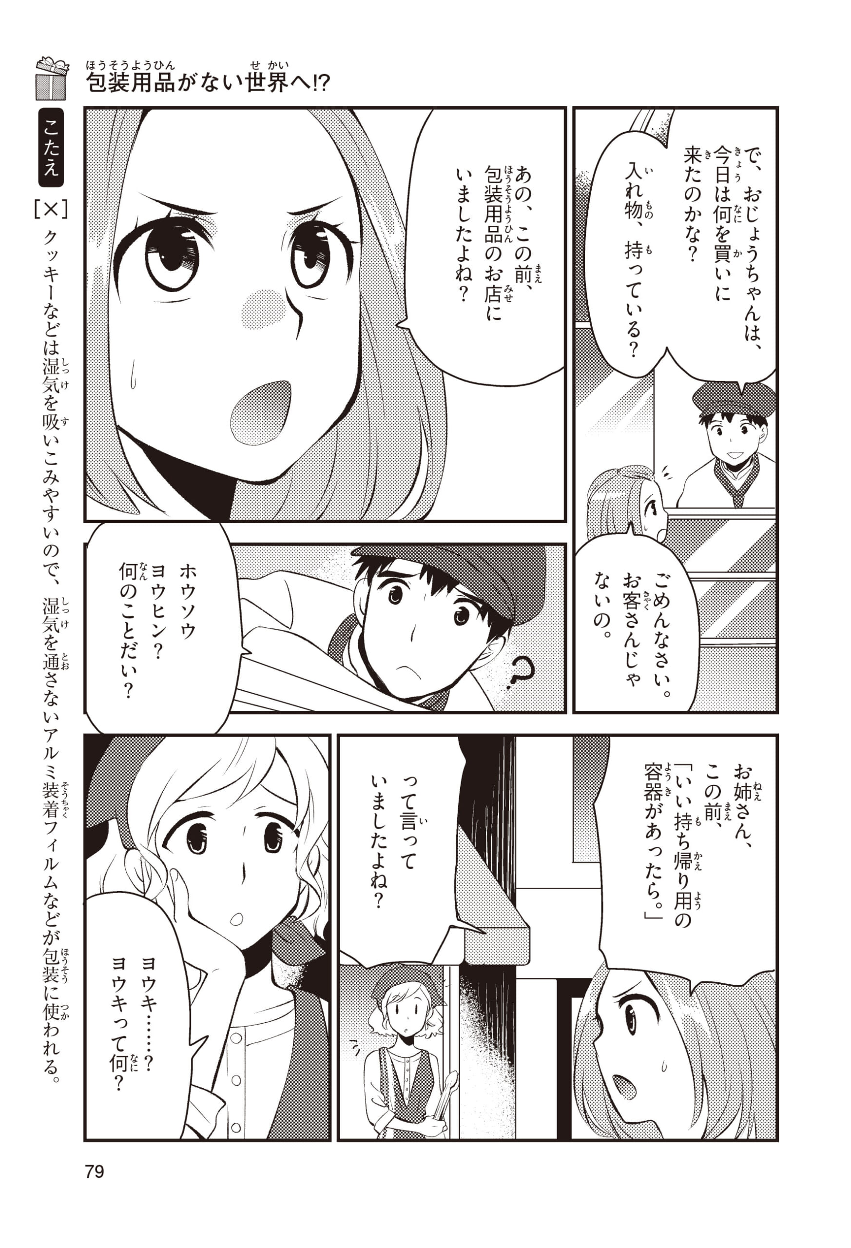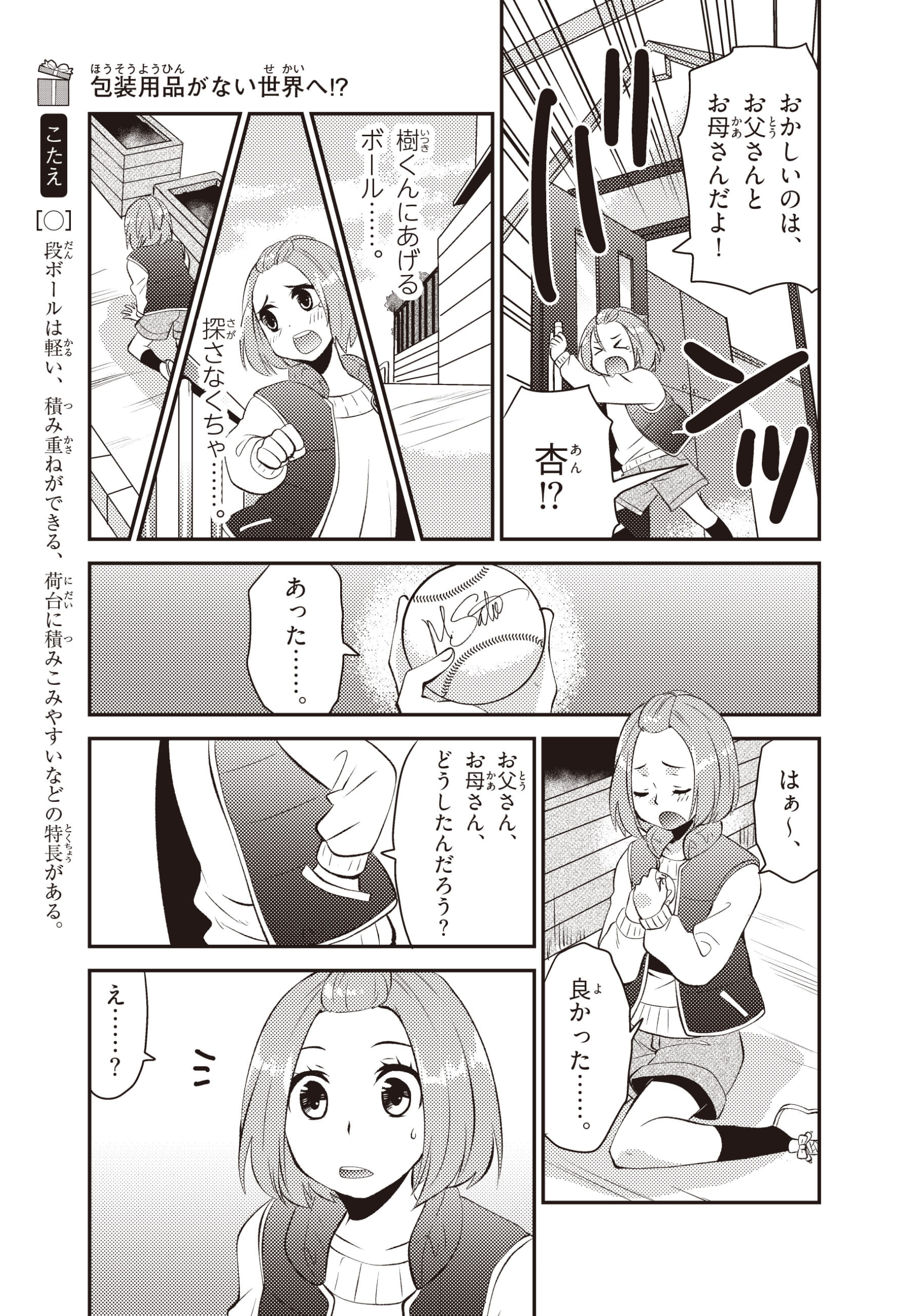 包装用品って、どんなものを想像する? プレゼントに使う、ラッピングペーパーやリボンはもちろん、おかずやお菓子を入れるバックや箱、書類などを入れるふうとう、ものを持ち運ぶ手提げ袋なども全部、包装用品の仲間なんだ。人の気持ちを伝えるのにも、人の暮らしを支えるのにも包装は役立っているんだよ。そして今、地球に優しい包装用品もたくさんできているんだ。さあ、みんなも「包装のひみつ」をいっしょにさぐってみよう!