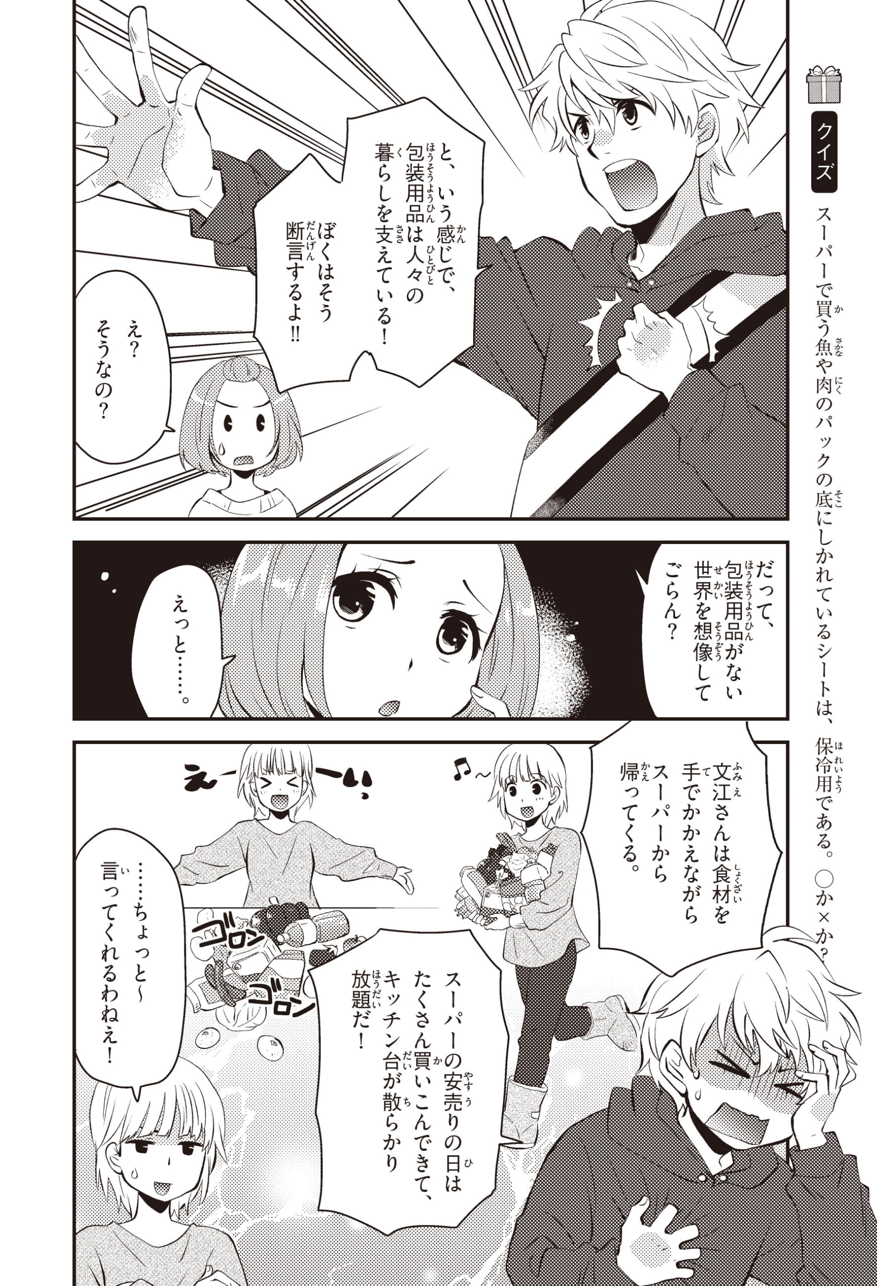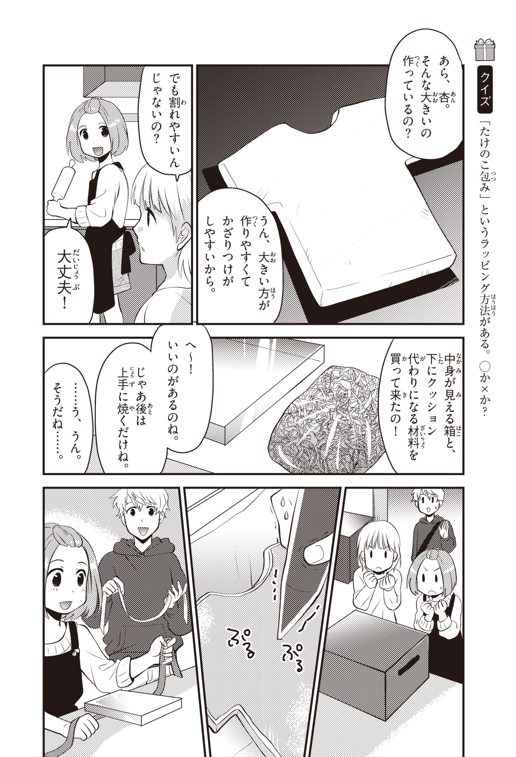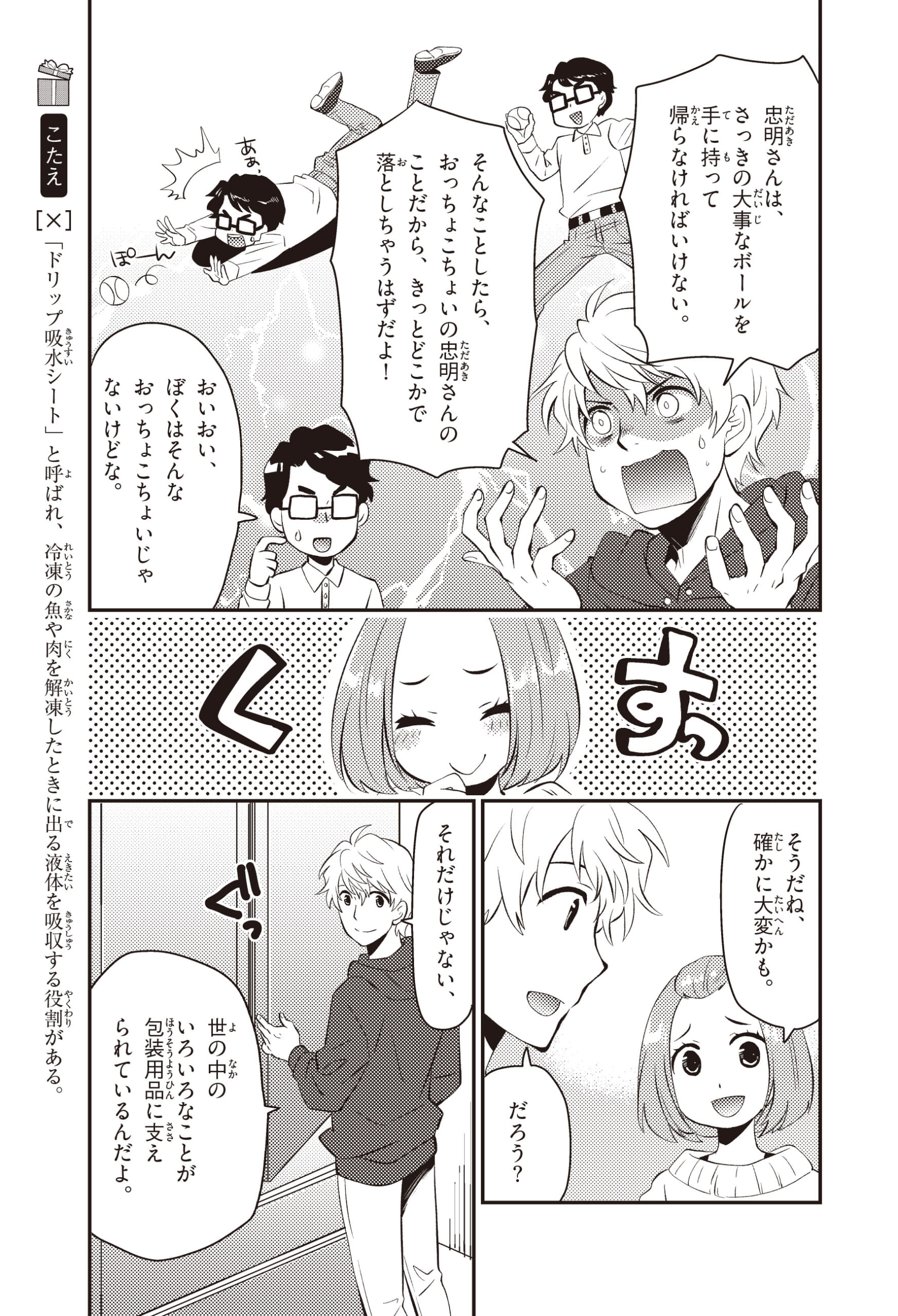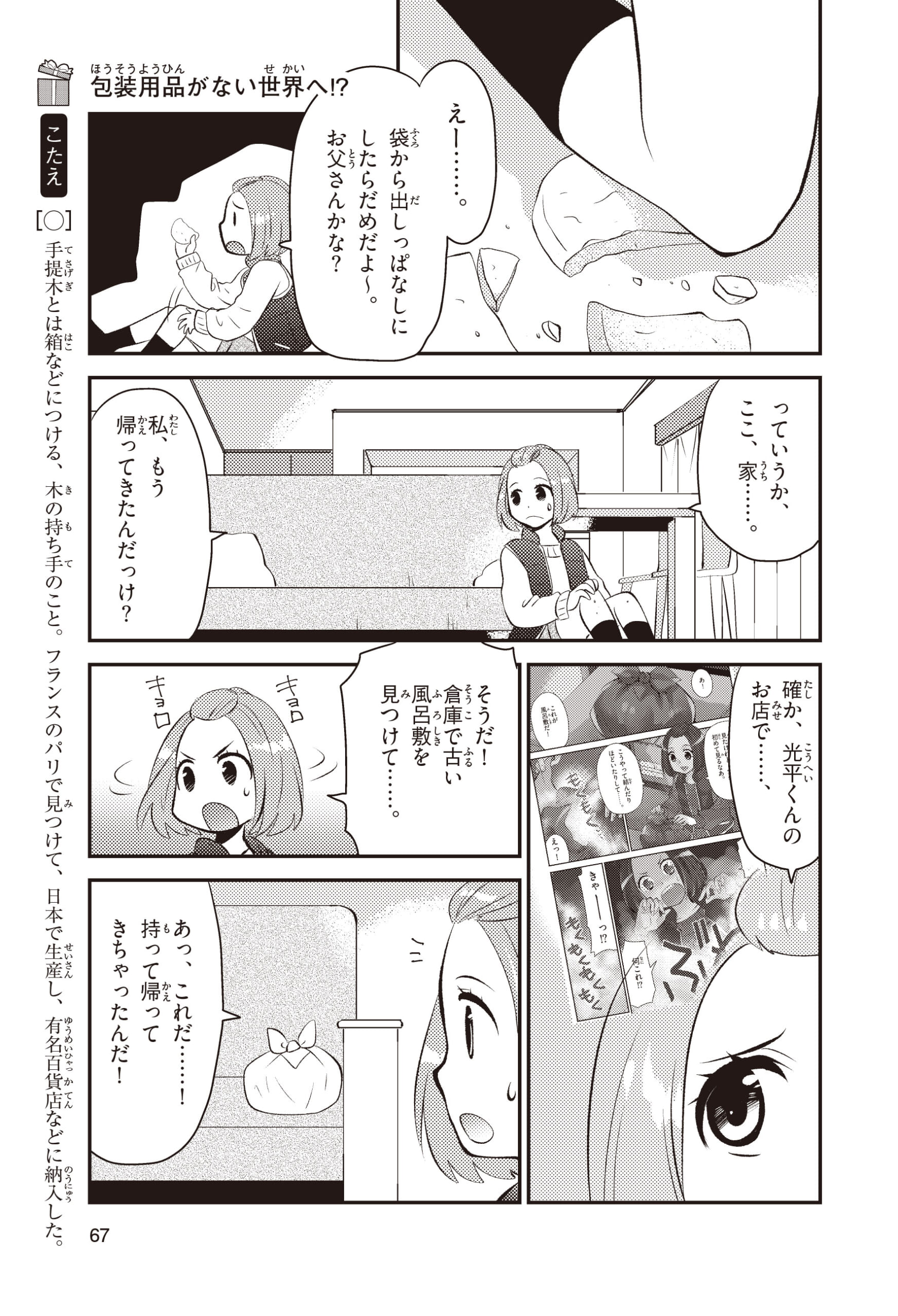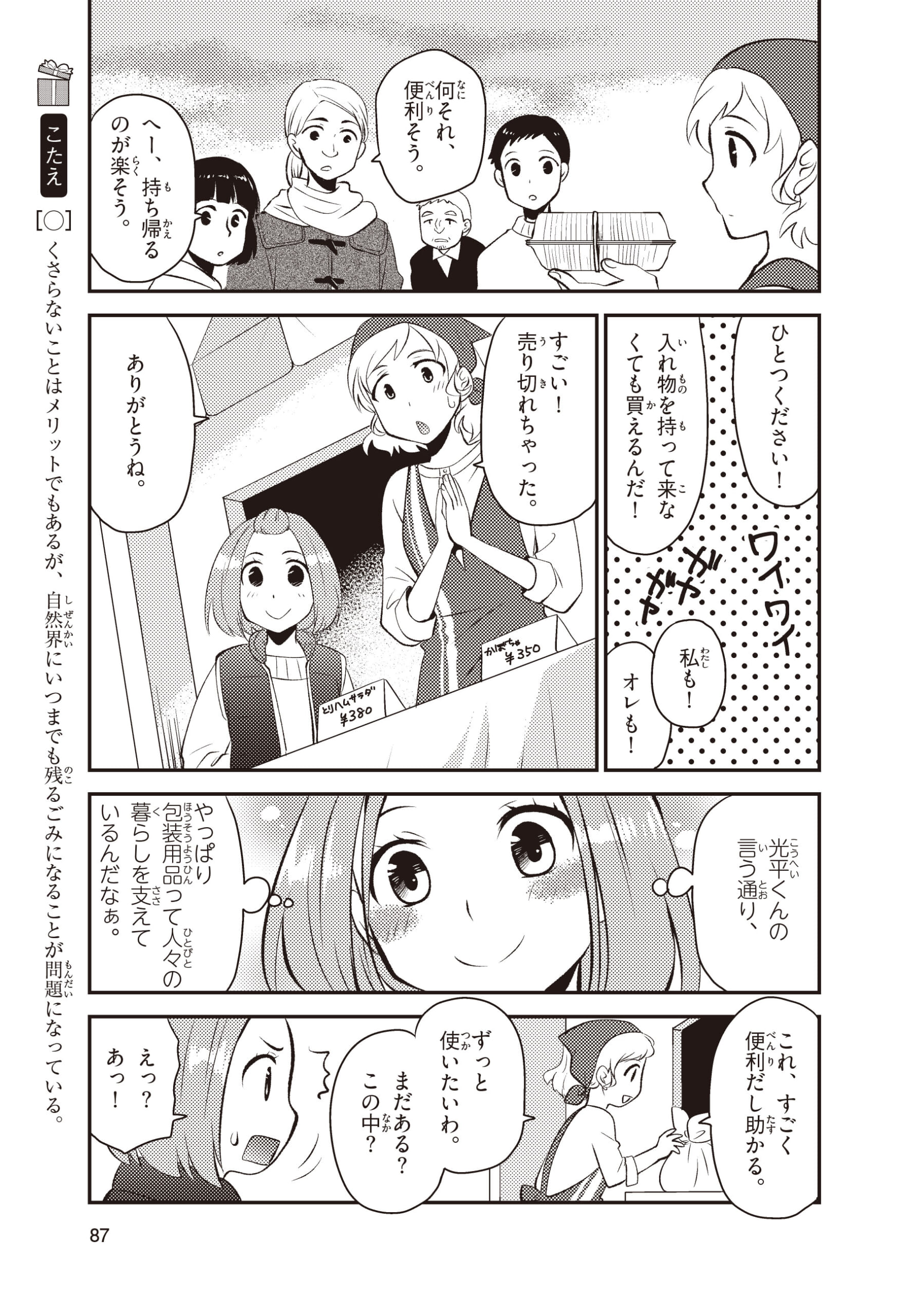 包装用品って、どんなものを想像する? プレゼントに使う、ラッピングペーパーやリボンはもちろん、おかずやお菓子を入れるバックや箱、書類などを入れるふうとう、ものを持ち運ぶ手提げ袋なども全部、包装用品の仲間なんだ。人の気持ちを伝えるのにも、人の暮らしを支えるのにも包装は役立っているんだよ。そして今、地球に優しい包装用品もたくさんできているんだ。さあ、みんなも「包装のひみつ」をいっしょにさぐってみよう!