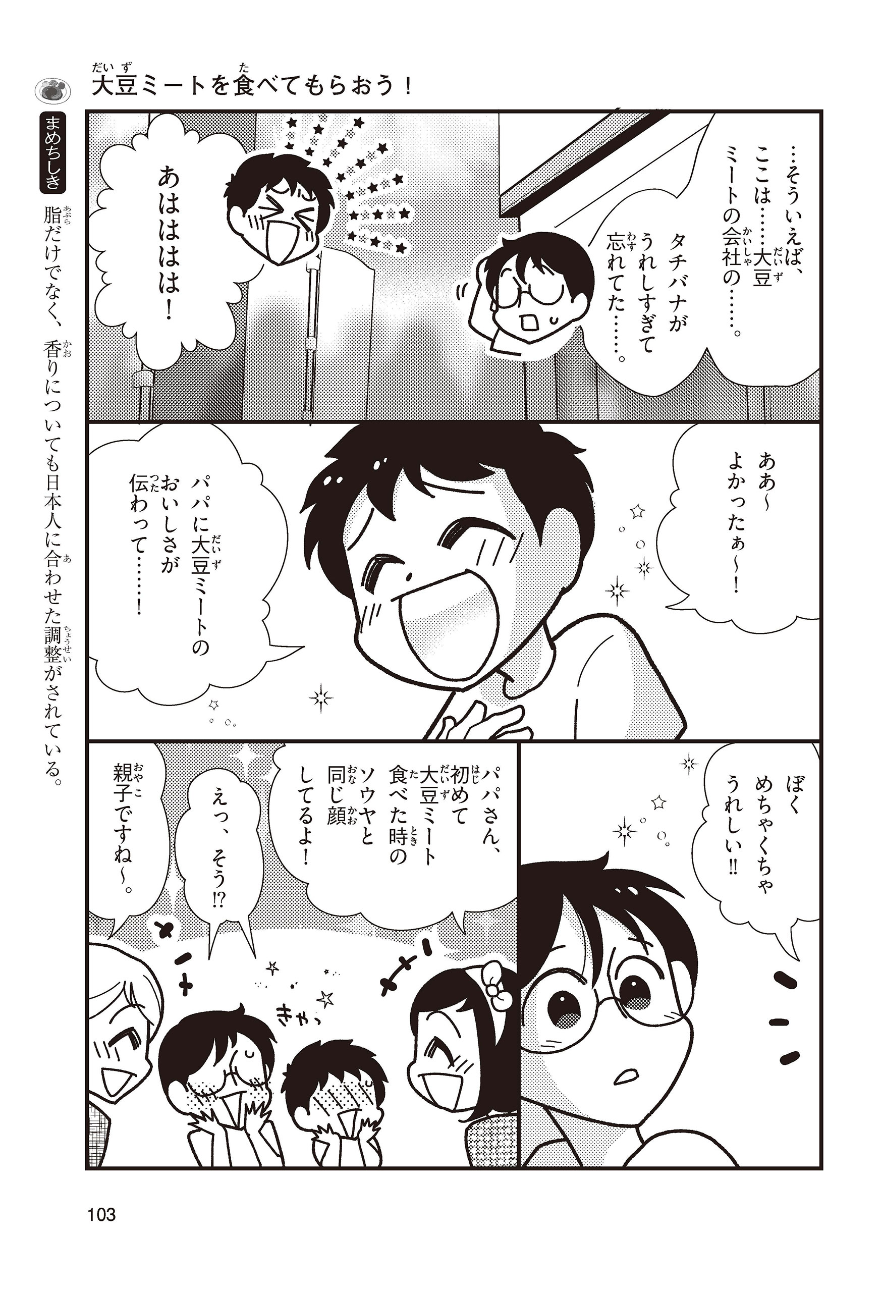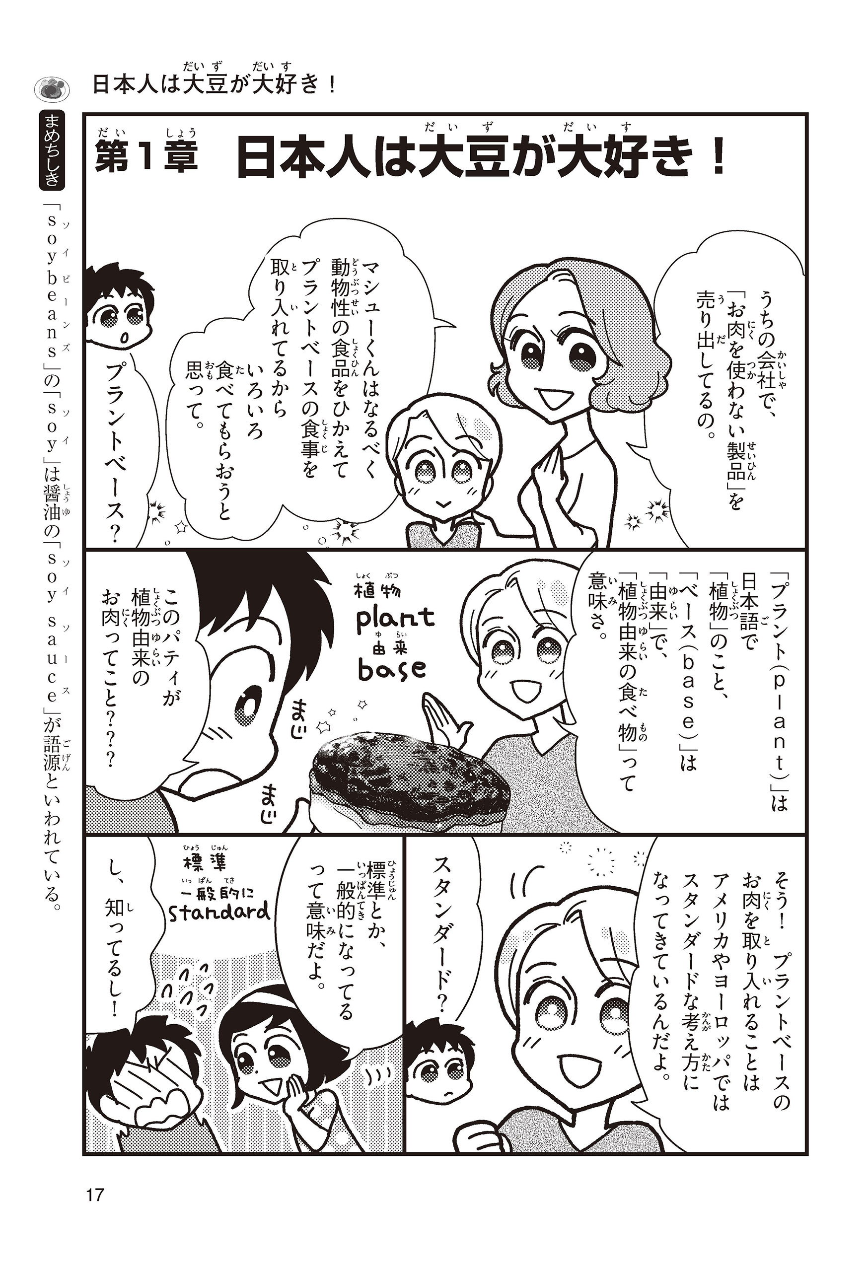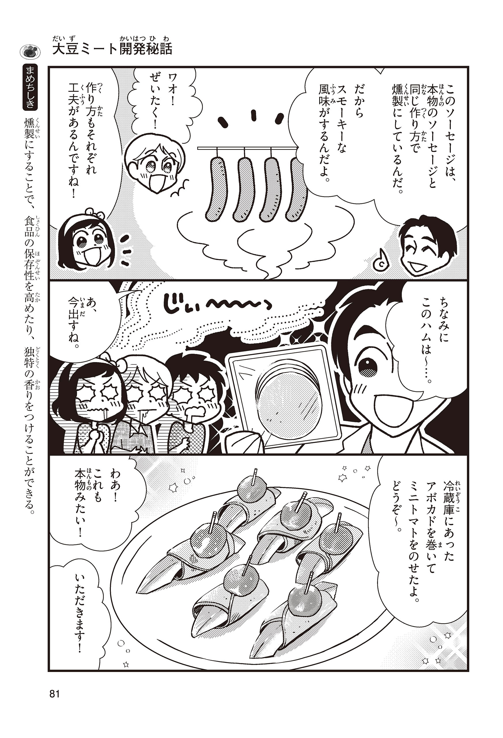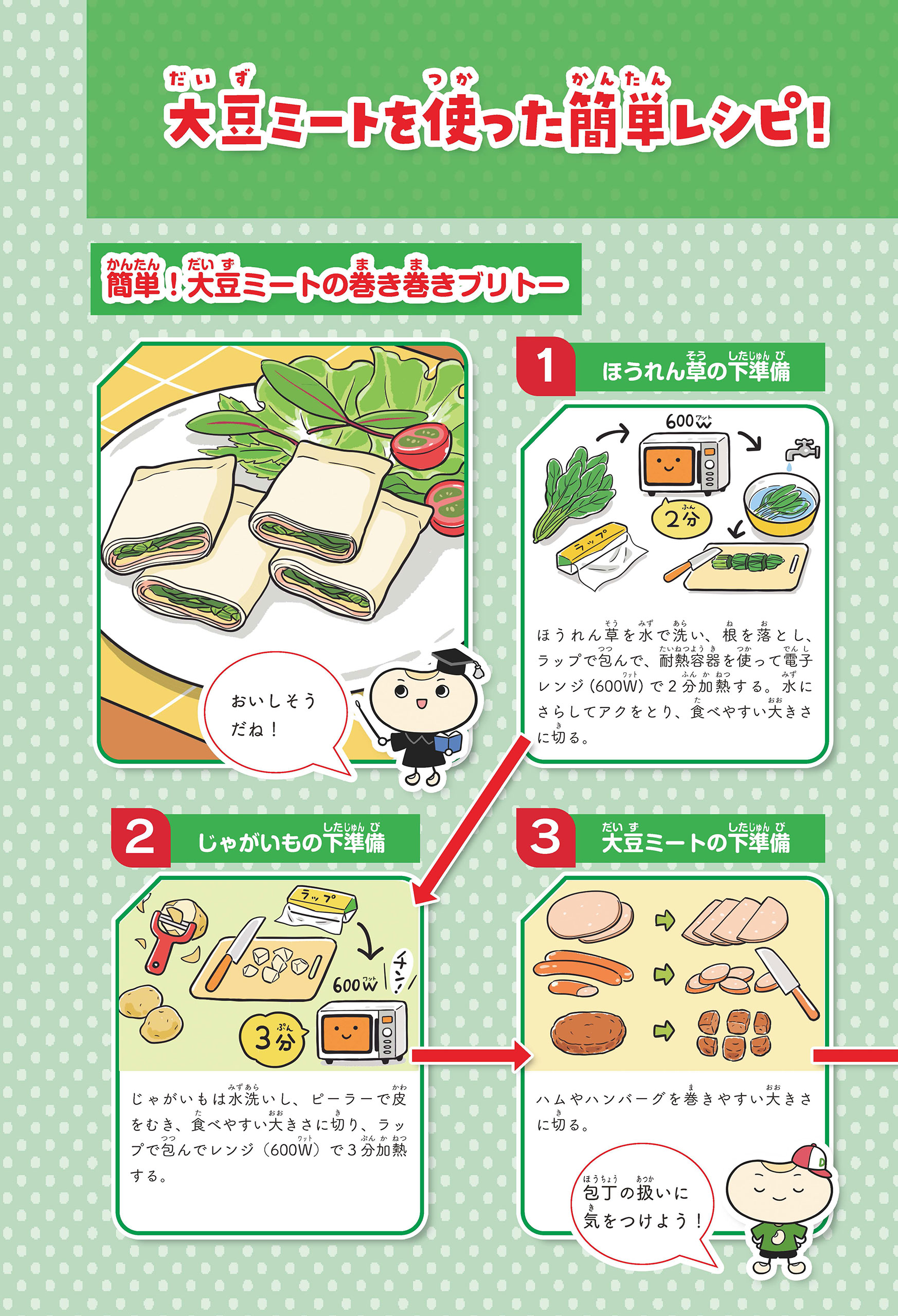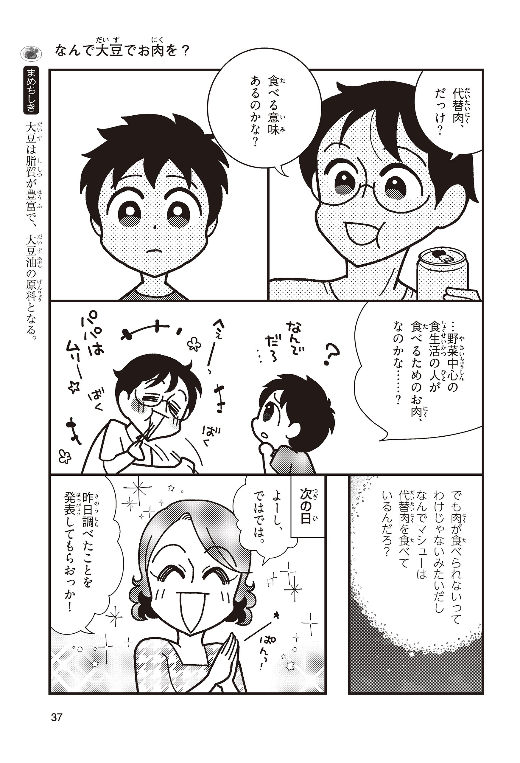 みんな「大豆ミート」を知っているかな? 大豆を使って作られた食べ物で、本物のお肉とかわらないぐらいおいしいんだよ! おいしいだけじゃなくて、大豆ミートを食べて、お肉をひかえることで、地球の環境に、いいえいきょうがあるんだって! この本には、大豆ミートのひみつがたくさんのっているから、みんなも読んで知ってみよう!