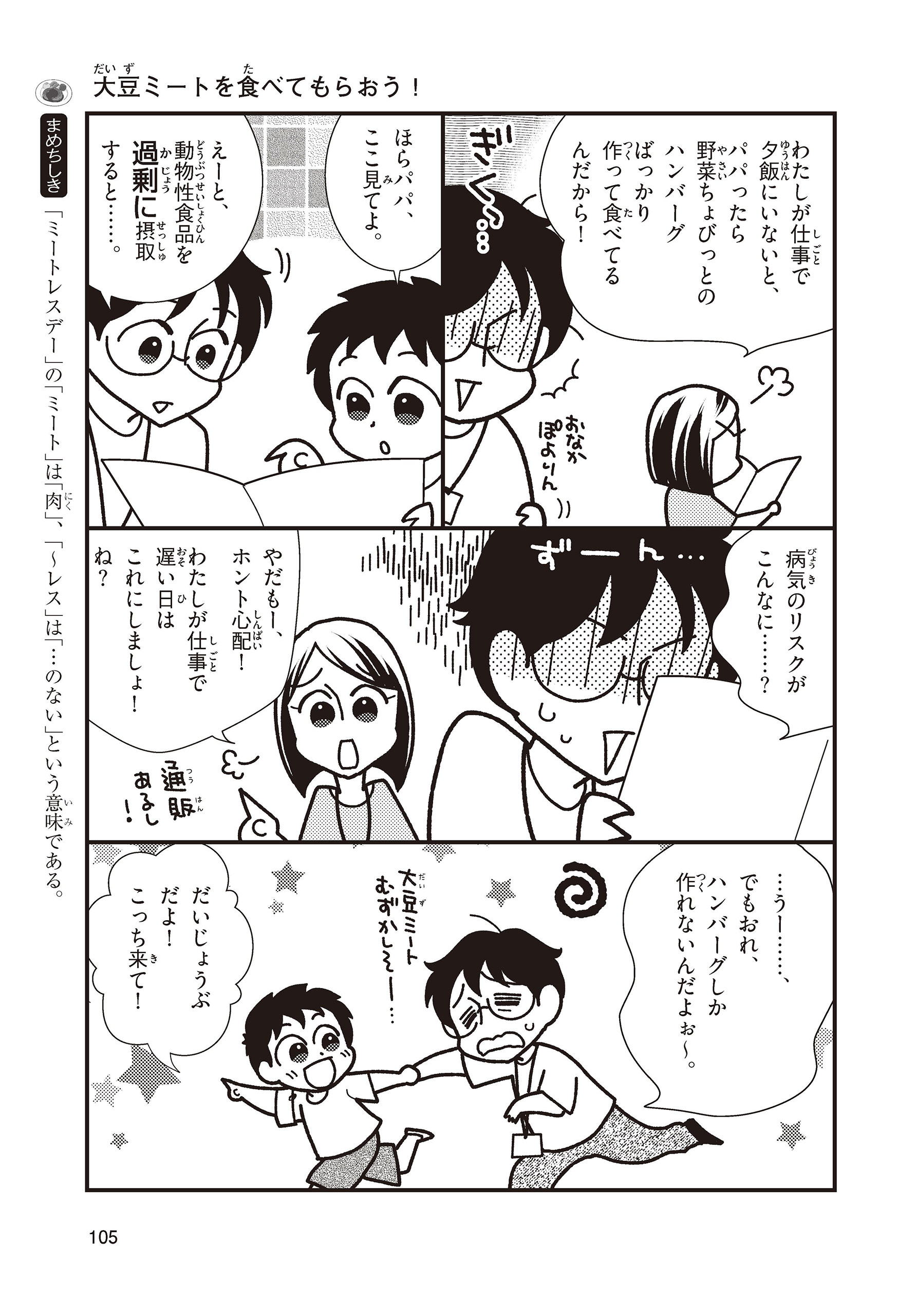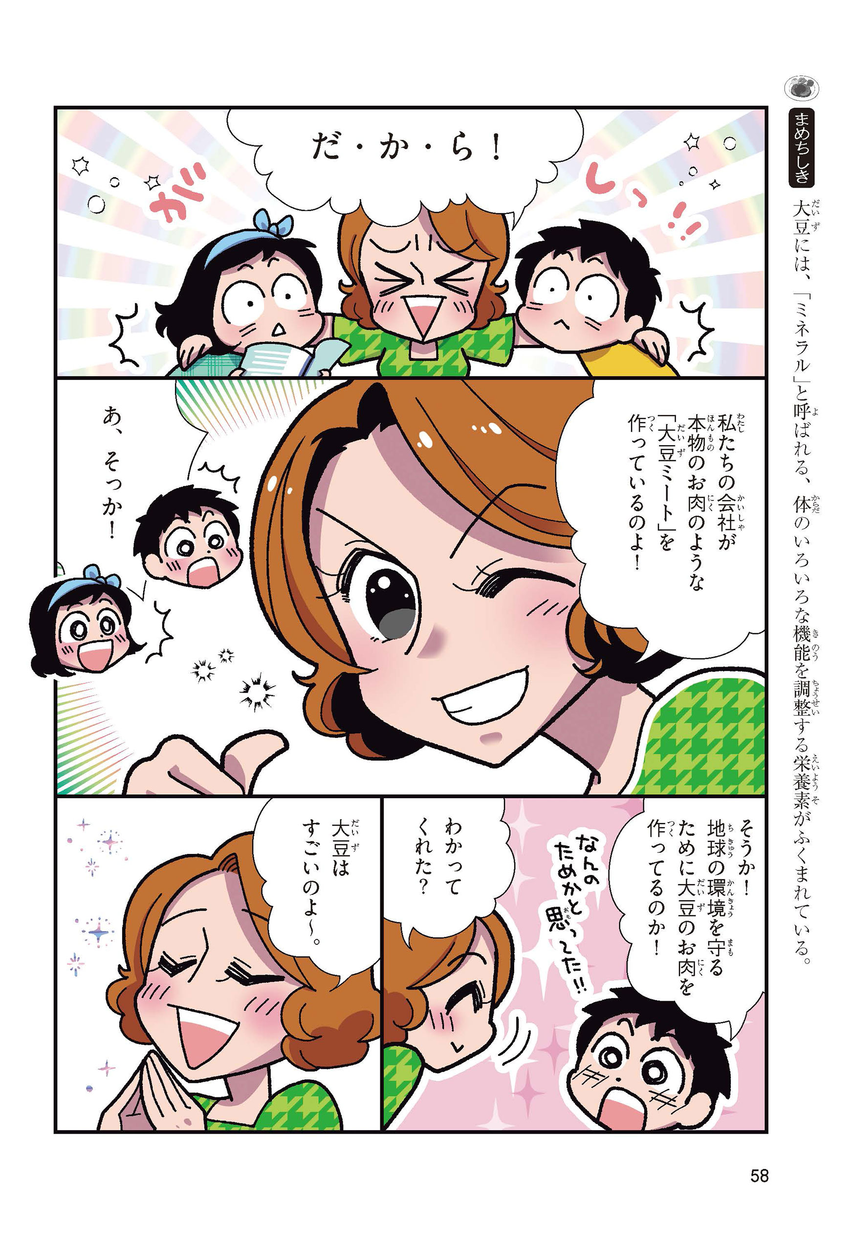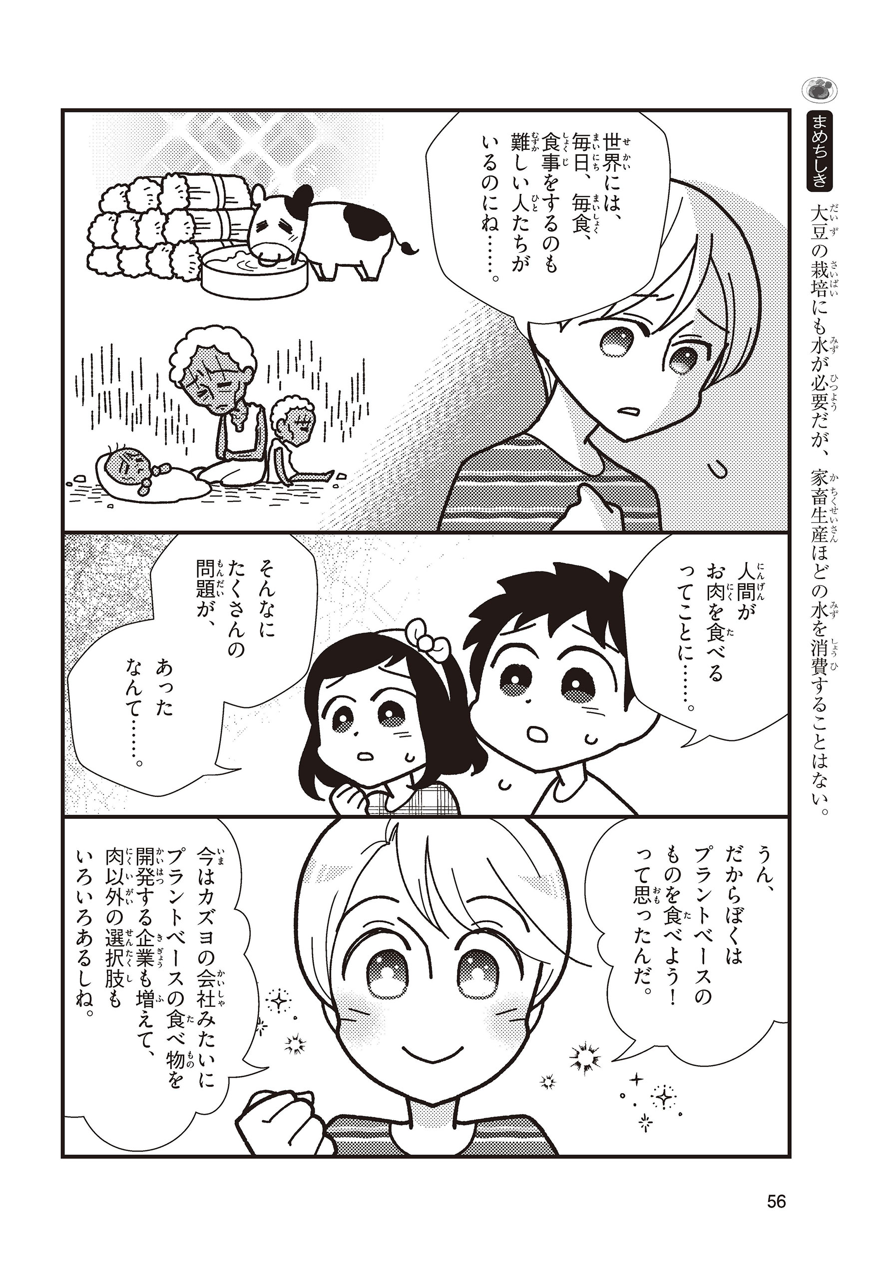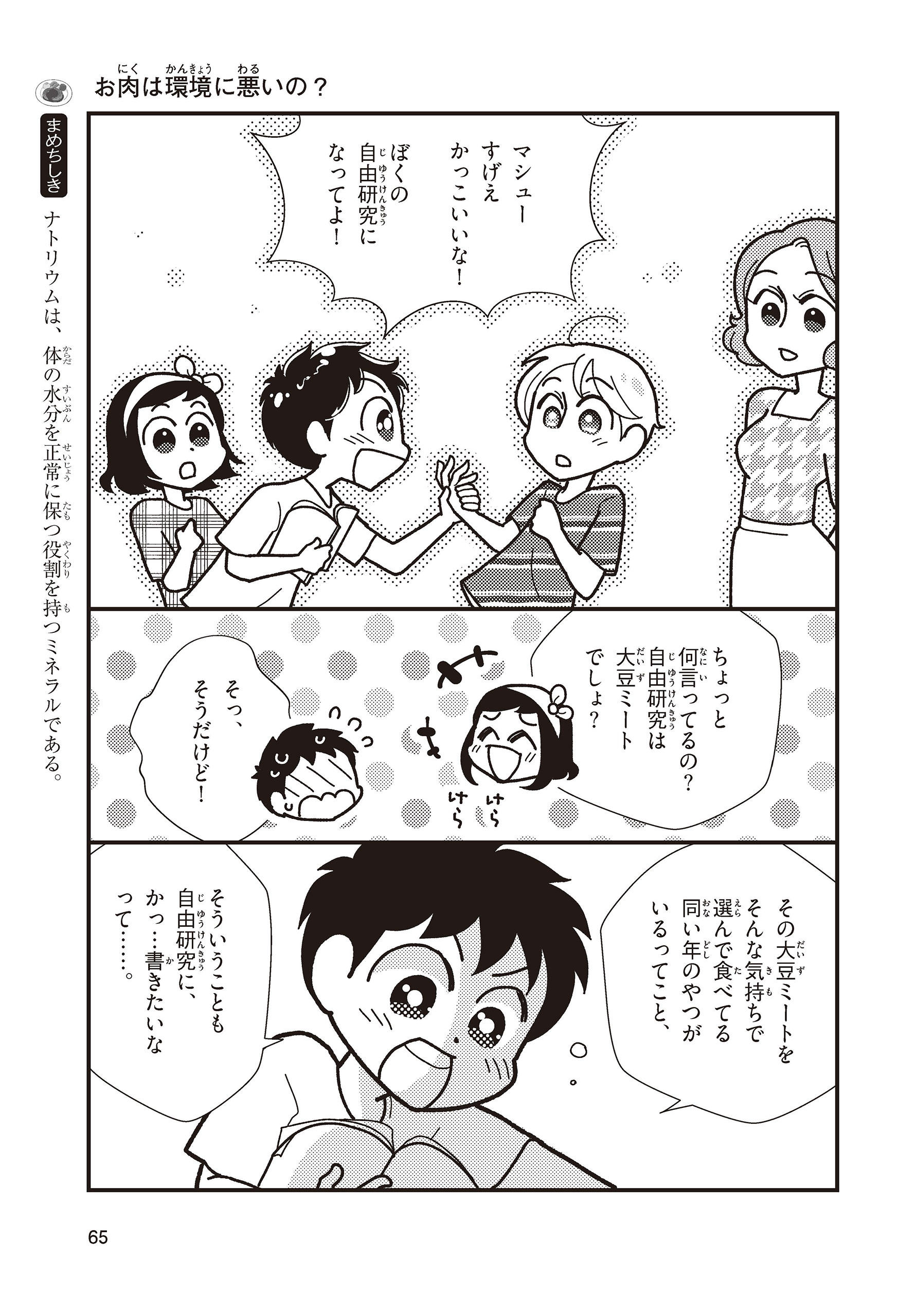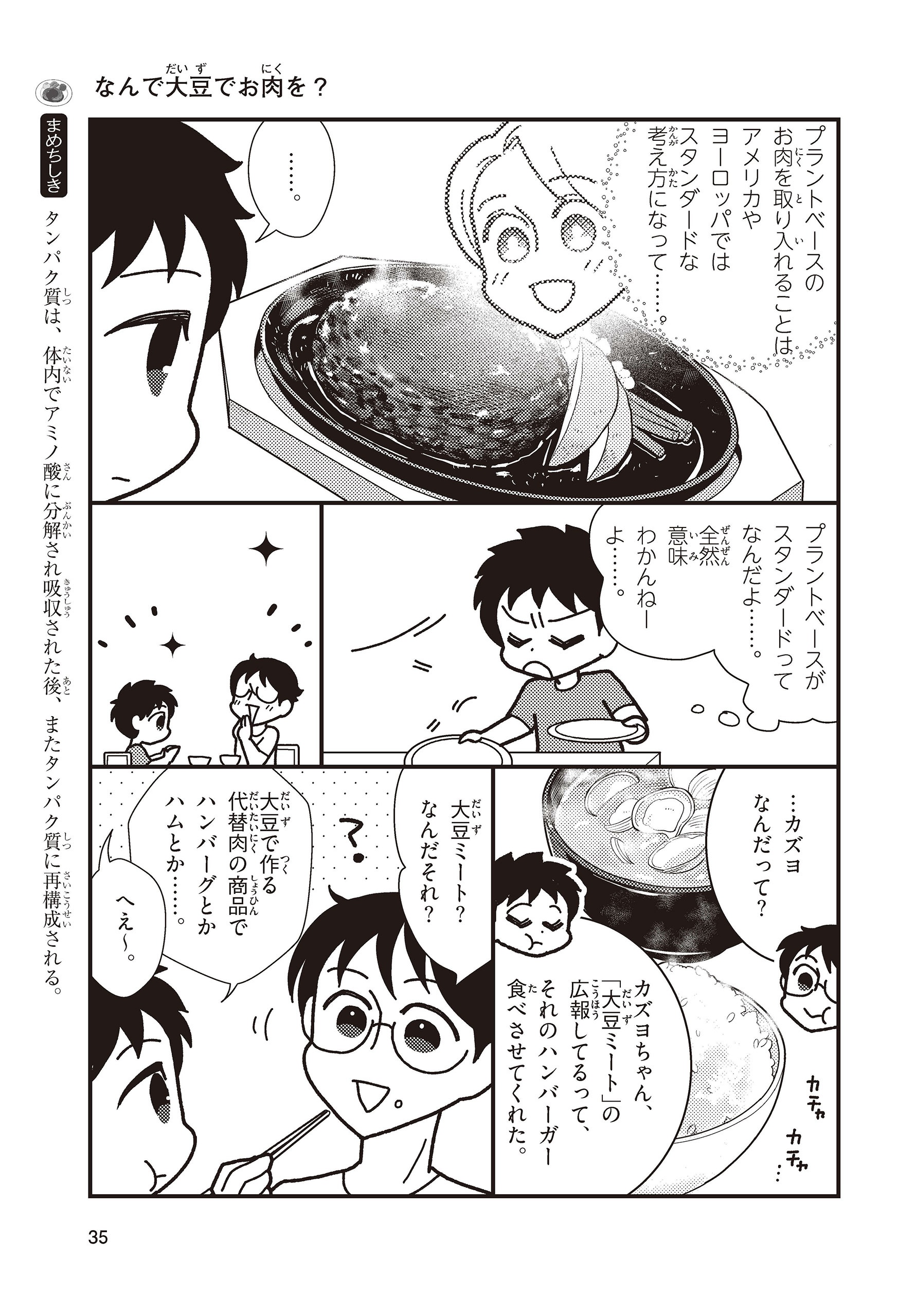 みんな「大豆ミート」を知っているかな? 大豆を使って作られた食べ物で、本物のお肉とかわらないぐらいおいしいんだよ! おいしいだけじゃなくて、大豆ミートを食べて、お肉をひかえることで、地球の環境に、いいえいきょうがあるんだって! この本には、大豆ミートのひみつがたくさんのっているから、みんなも読んで知ってみよう!
