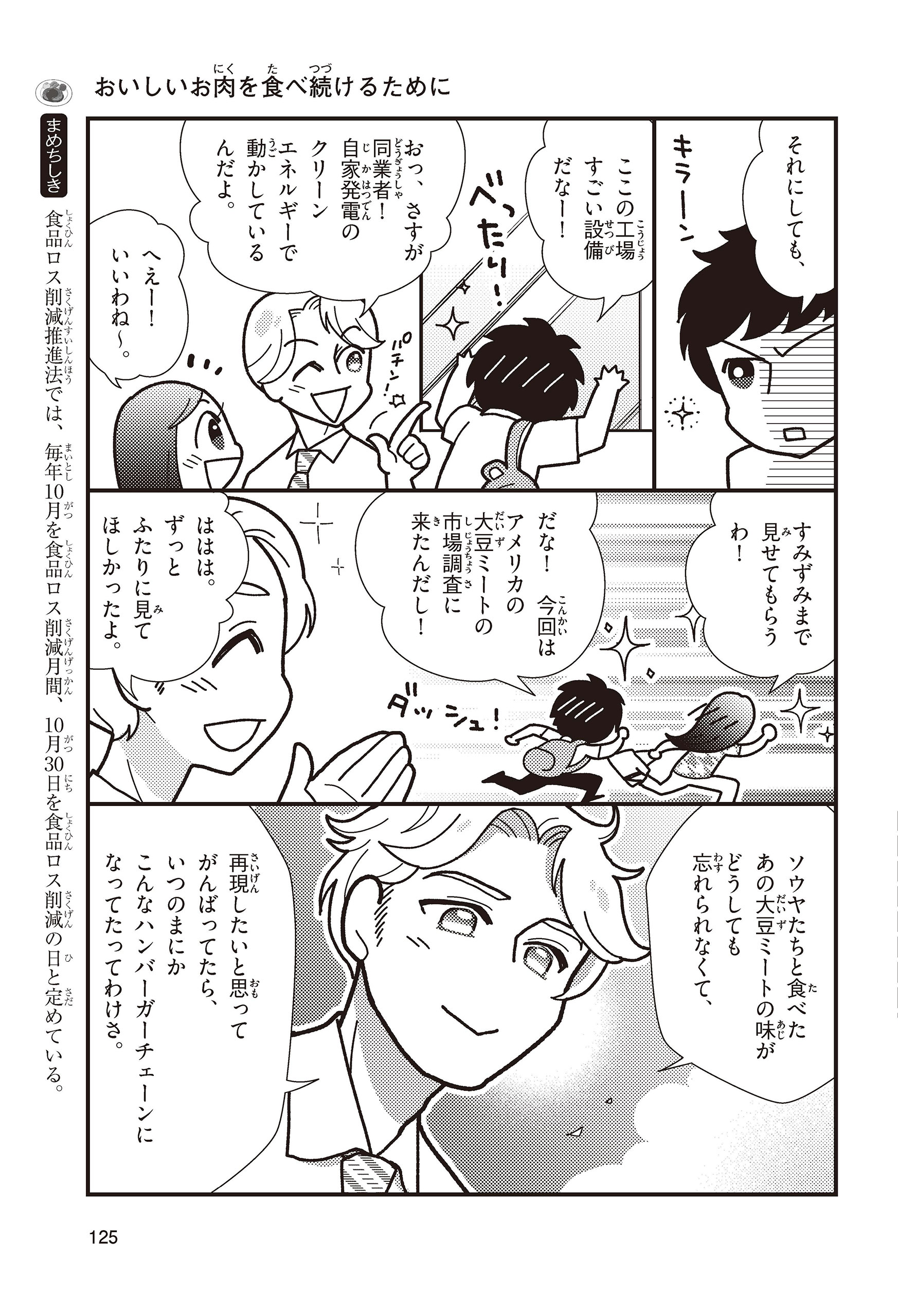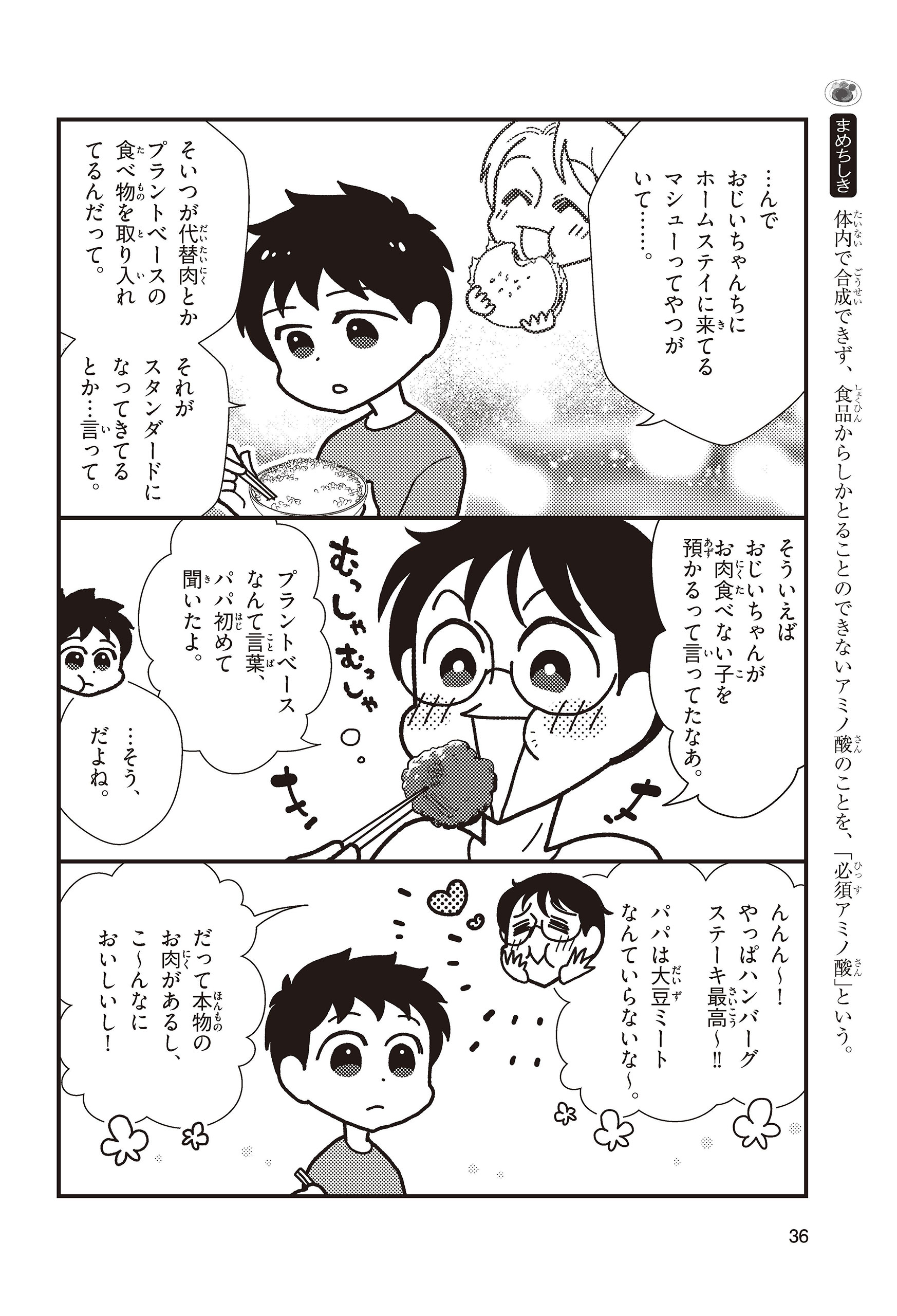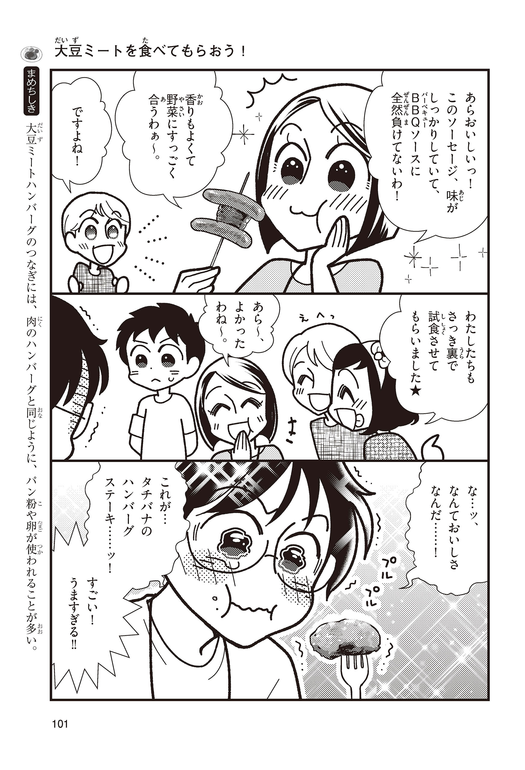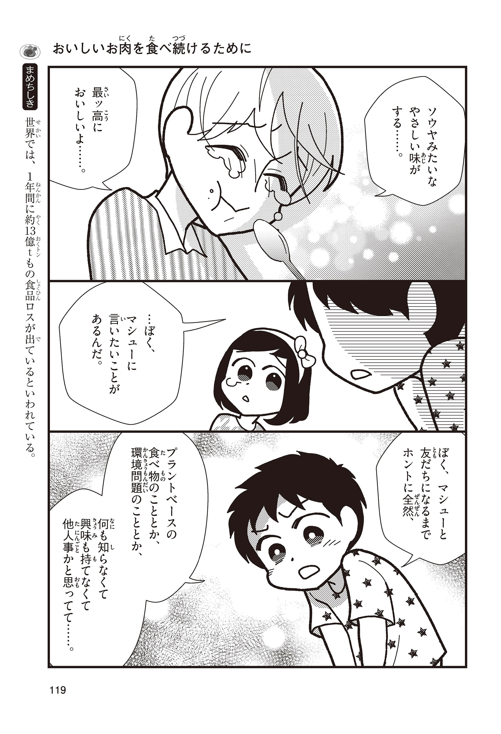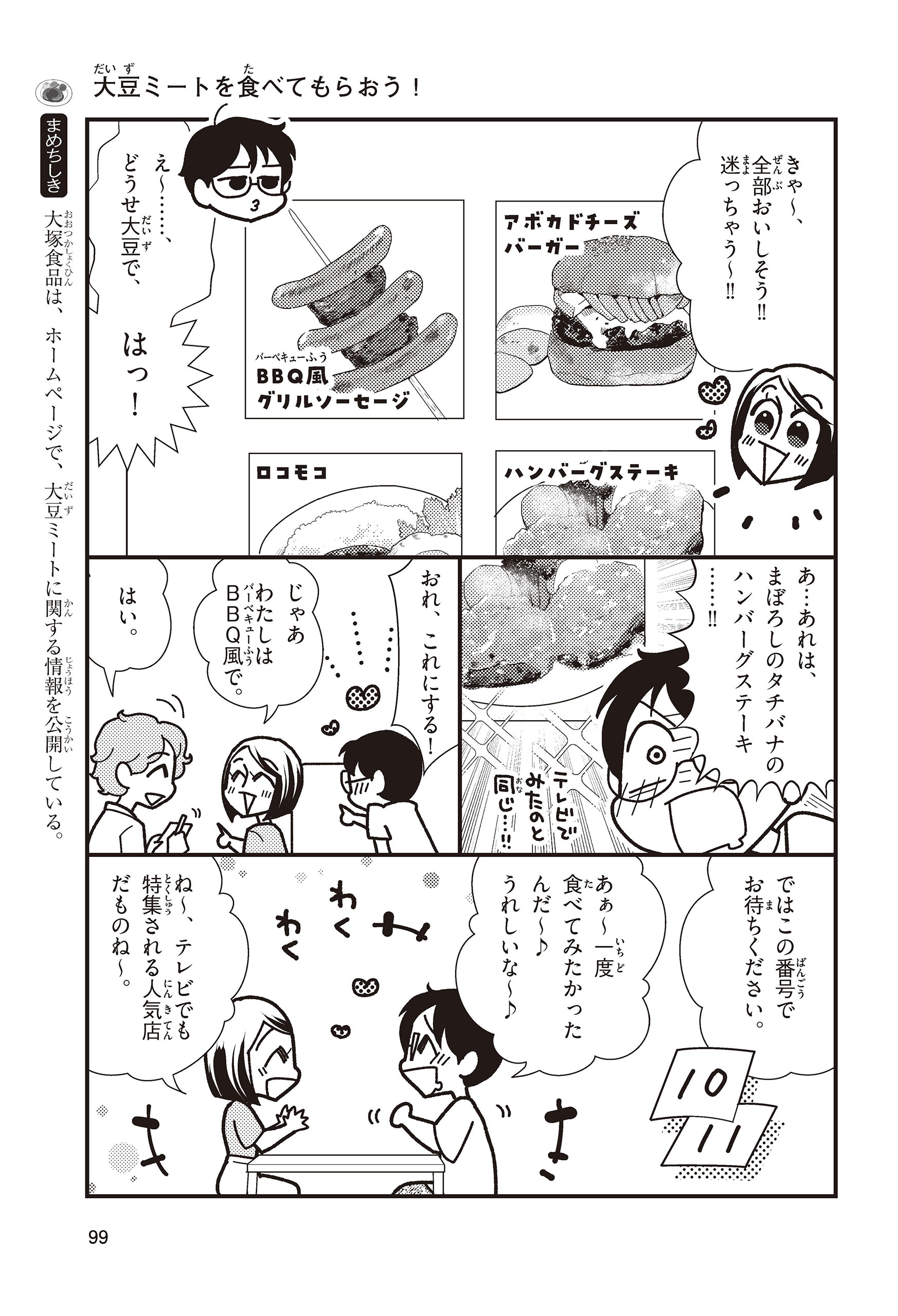 みんな「大豆ミート」を知っているかな? 大豆を使って作られた食べ物で、本物のお肉とかわらないぐらいおいしいんだよ! おいしいだけじゃなくて、大豆ミートを食べて、お肉をひかえることで、地球の環境に、いいえいきょうがあるんだって! この本には、大豆ミートのひみつがたくさんのっているから、みんなも読んで知ってみよう!