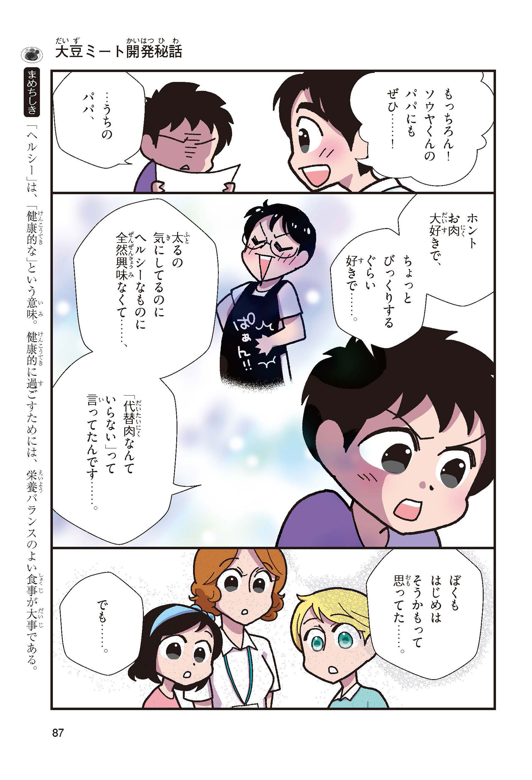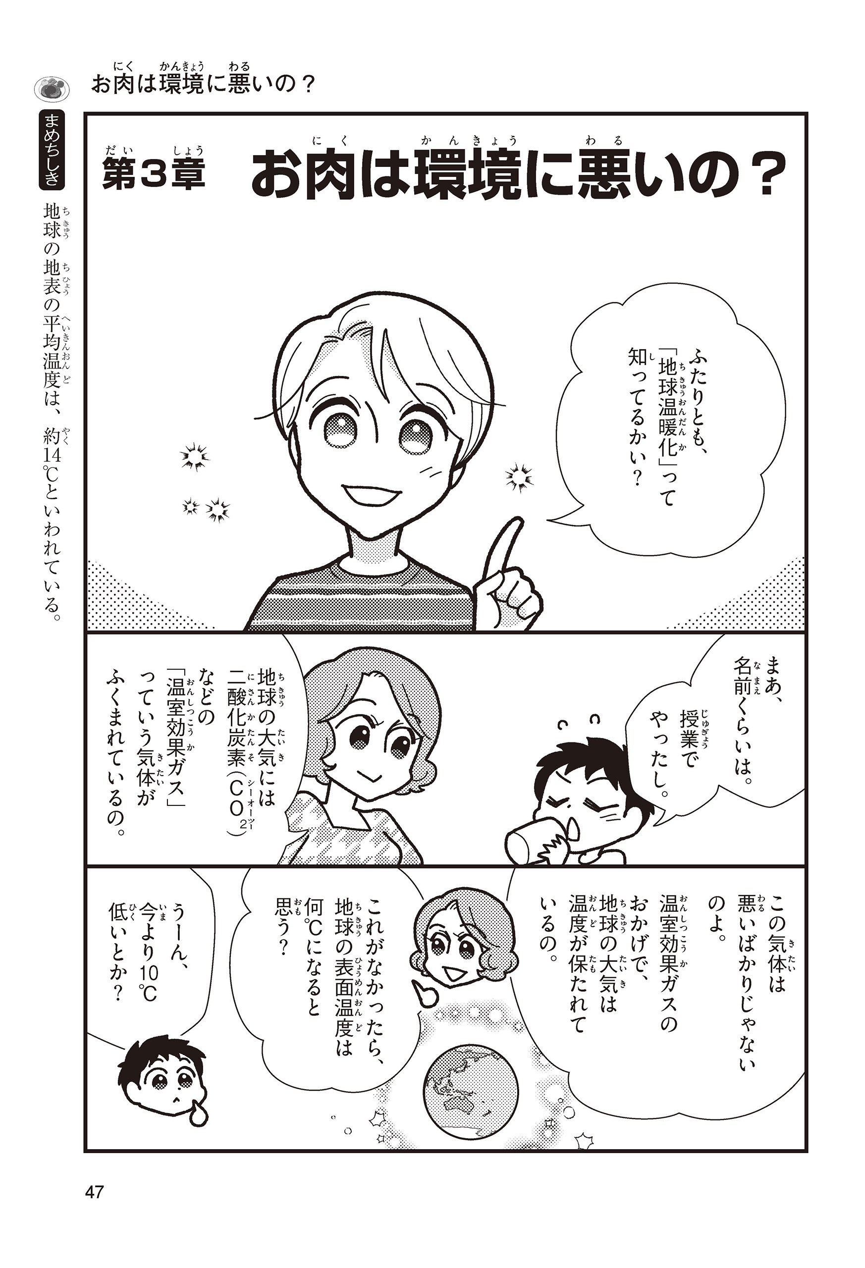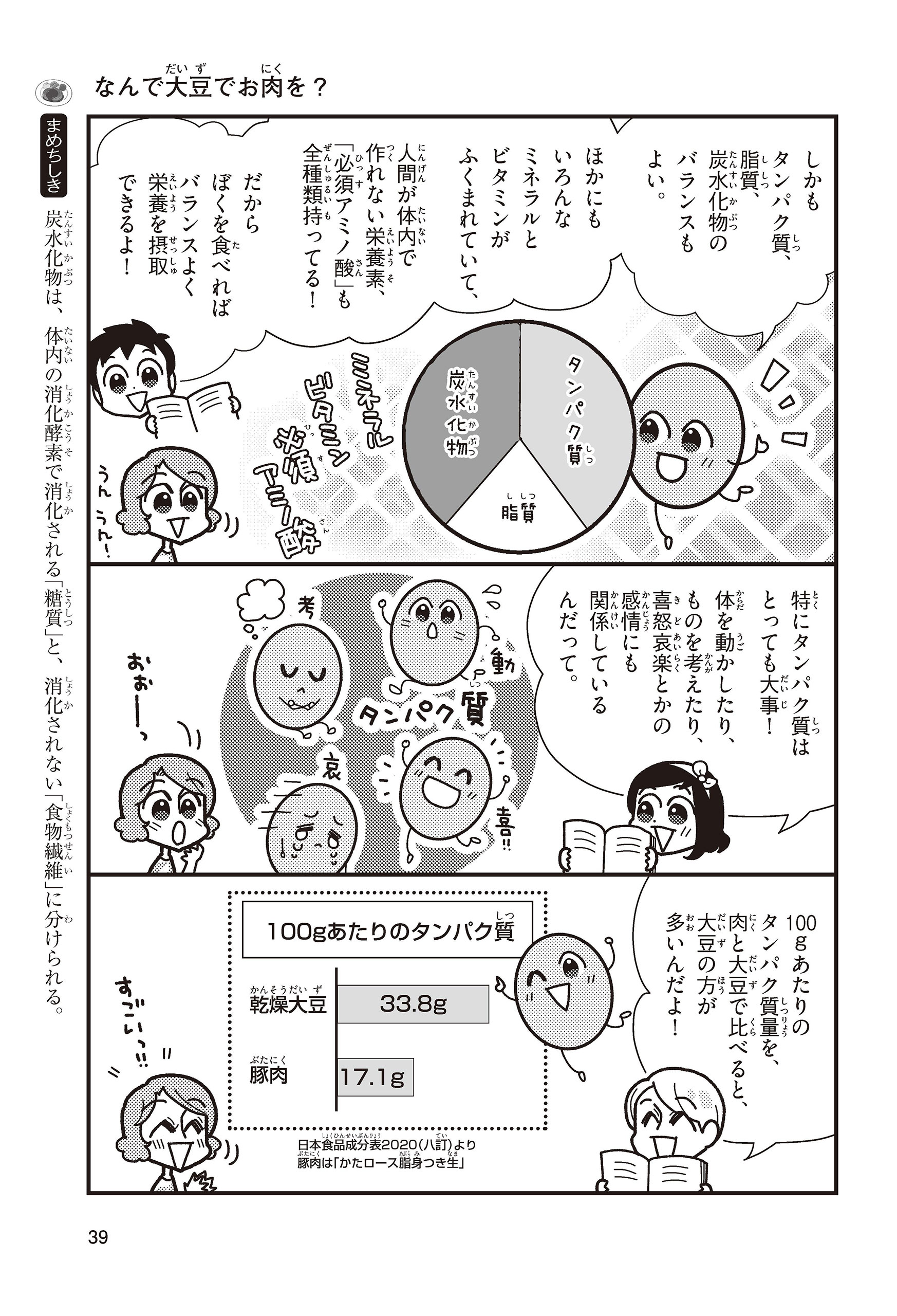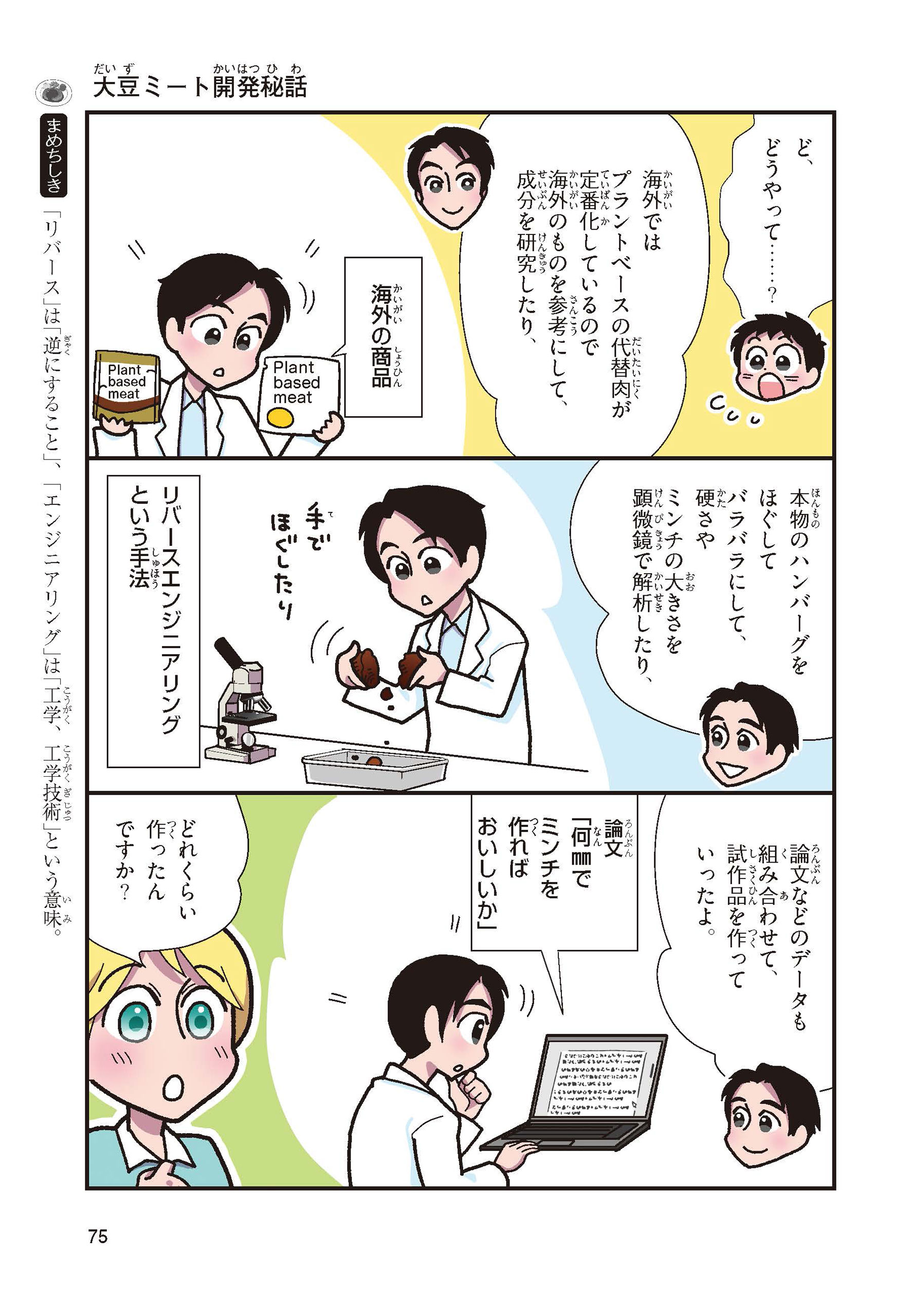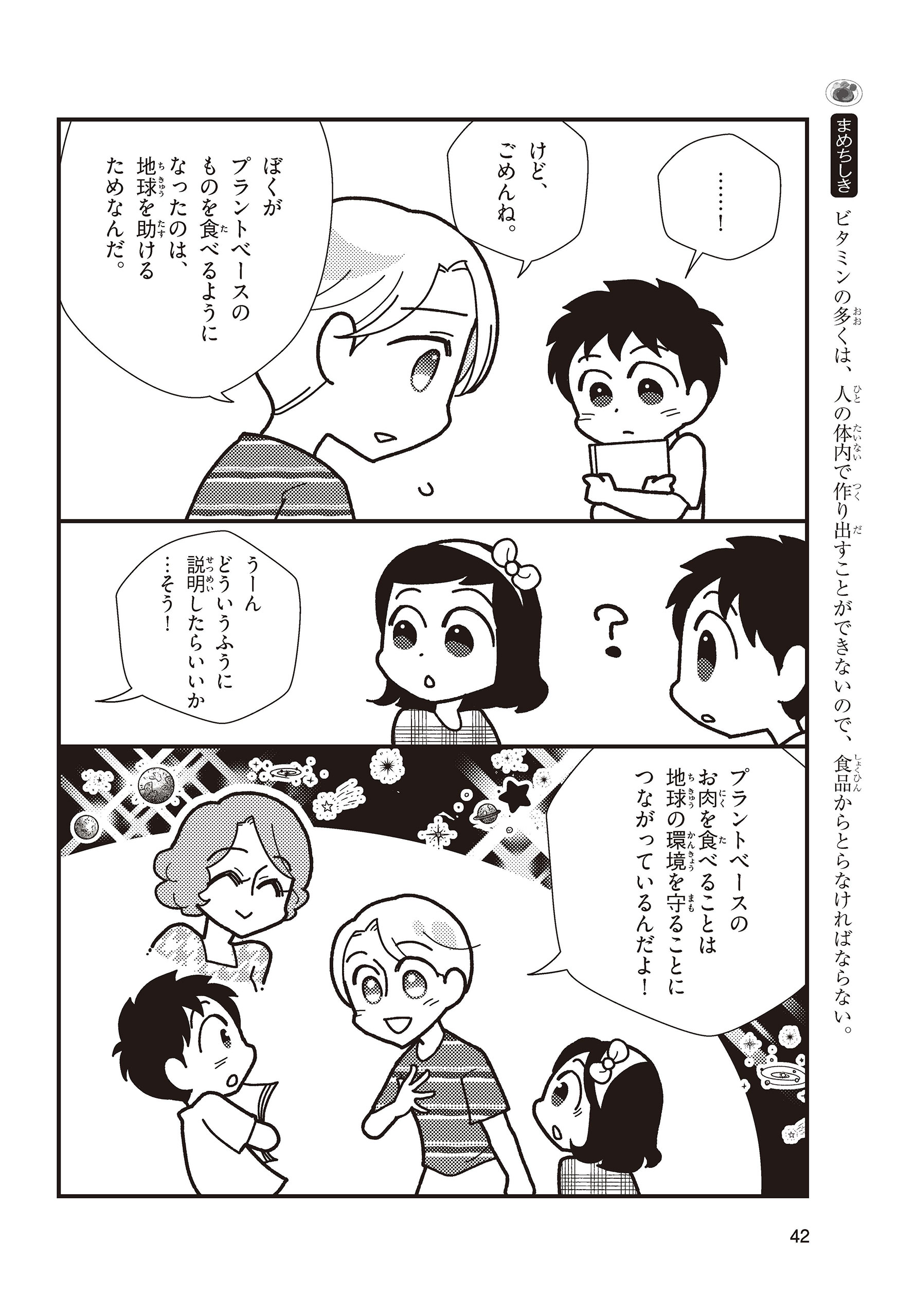 みんな「大豆ミート」を知っているかな? 大豆を使って作られた食べ物で、本物のお肉とかわらないぐらいおいしいんだよ! おいしいだけじゃなくて、大豆ミートを食べて、お肉をひかえることで、地球の環境に、いいえいきょうがあるんだって! この本には、大豆ミートのひみつがたくさんのっているから、みんなも読んで知ってみよう!
