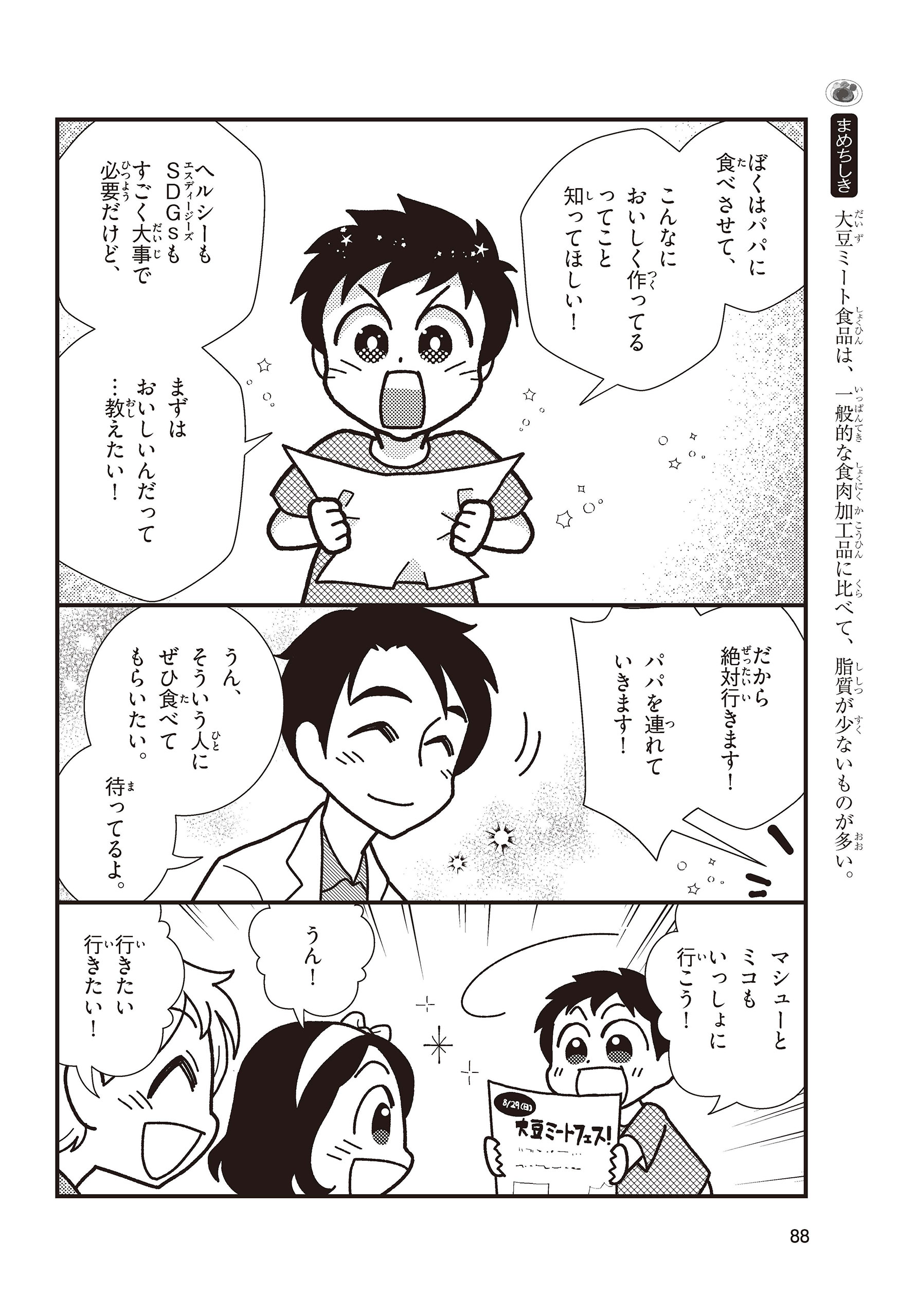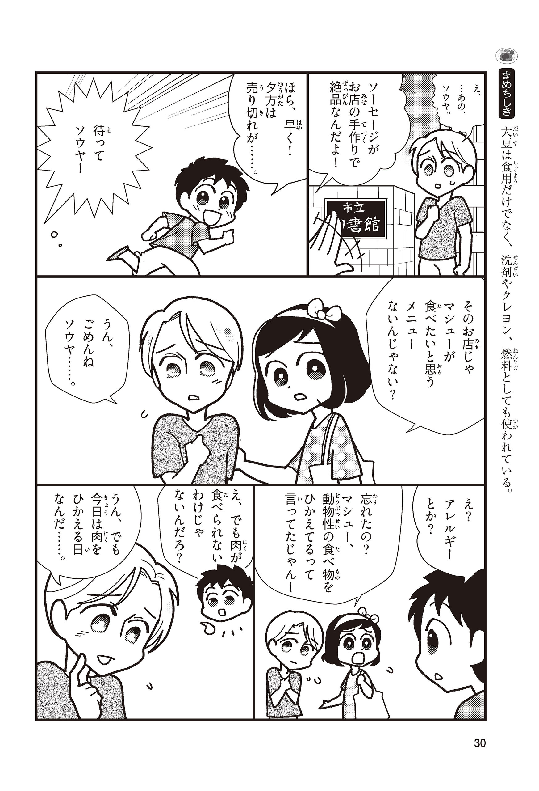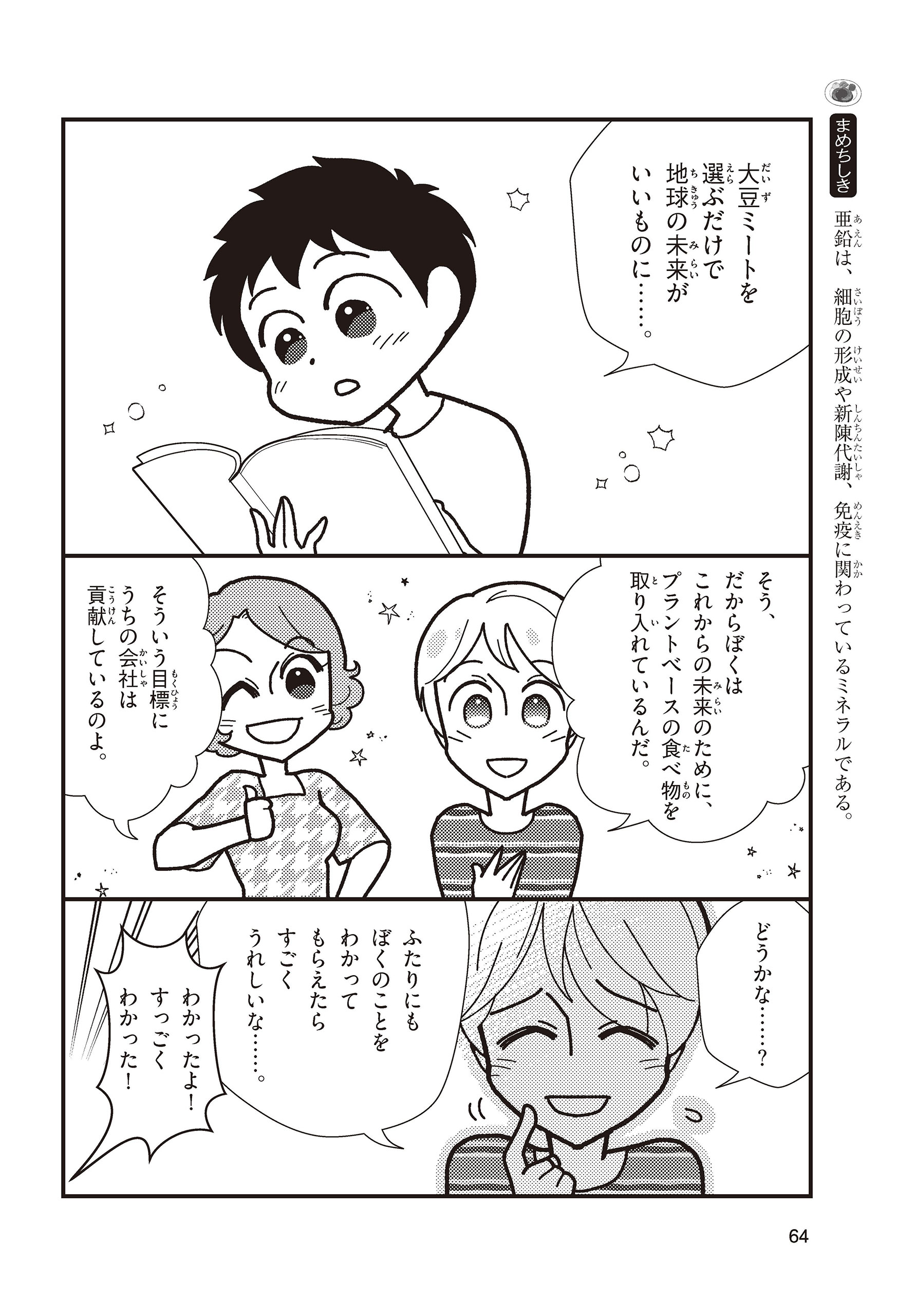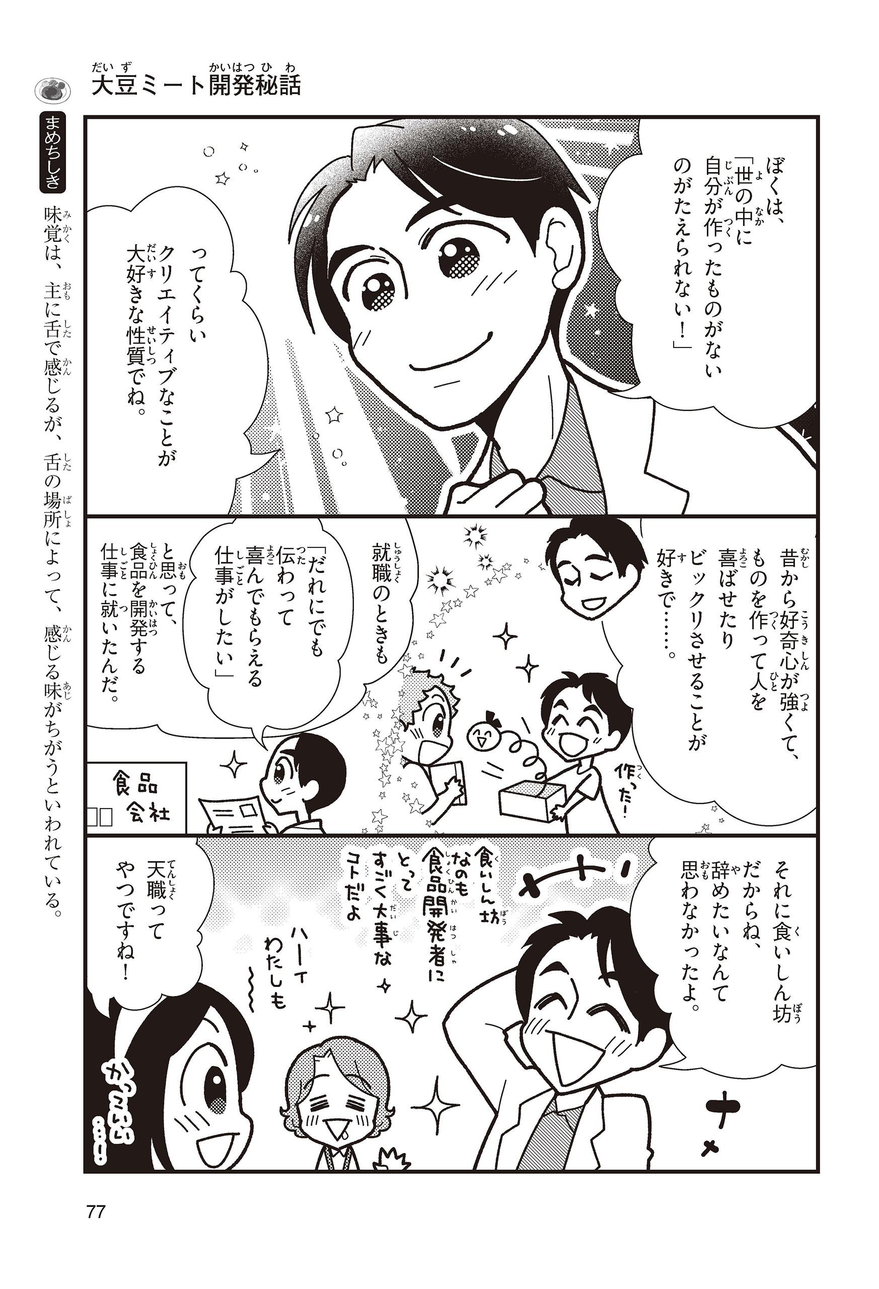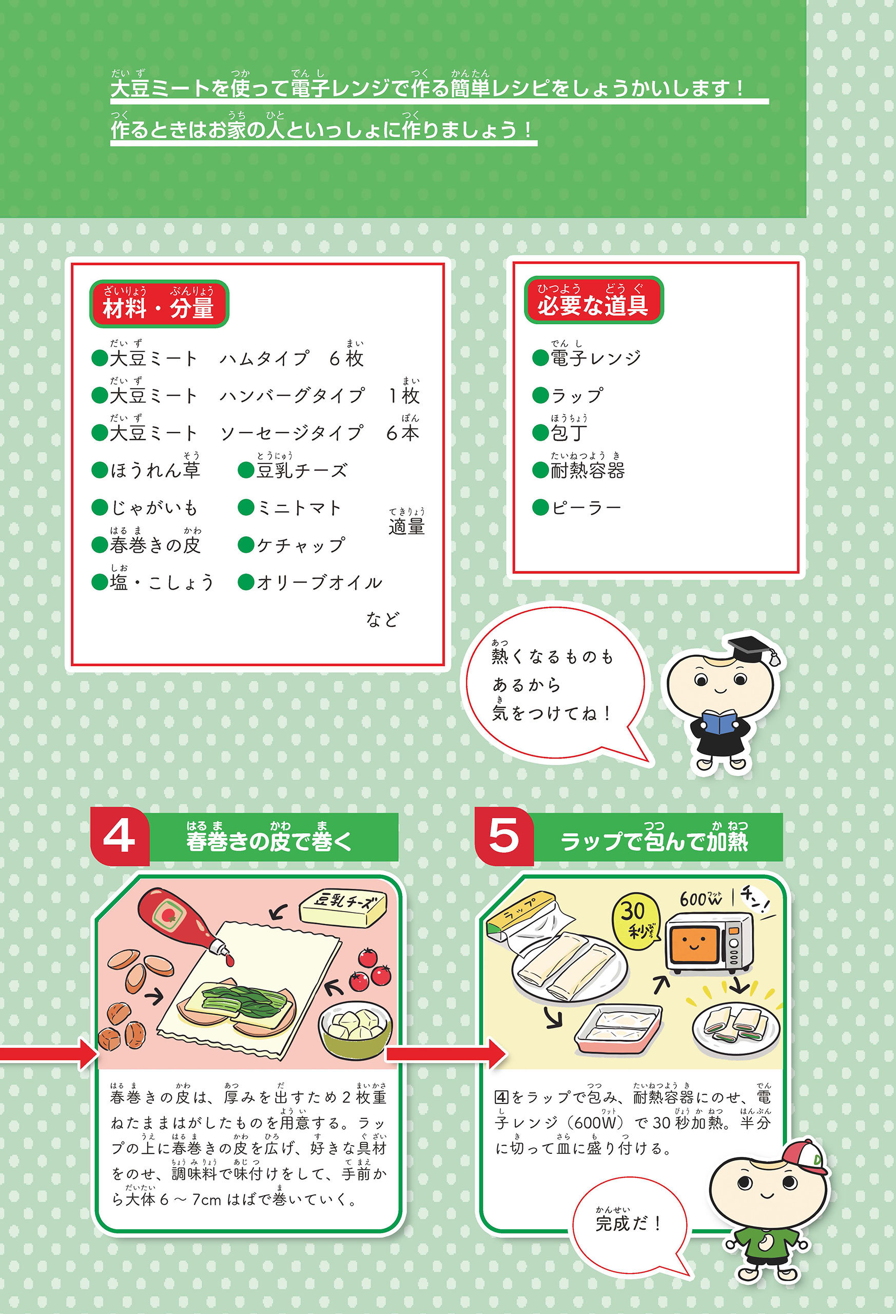 みんな「大豆ミート」を知っているかな? 大豆を使って作られた食べ物で、本物のお肉とかわらないぐらいおいしいんだよ! おいしいだけじゃなくて、大豆ミートを食べて、お肉をひかえることで、地球の環境に、いいえいきょうがあるんだって! この本には、大豆ミートのひみつがたくさんのっているから、みんなも読んで知ってみよう!