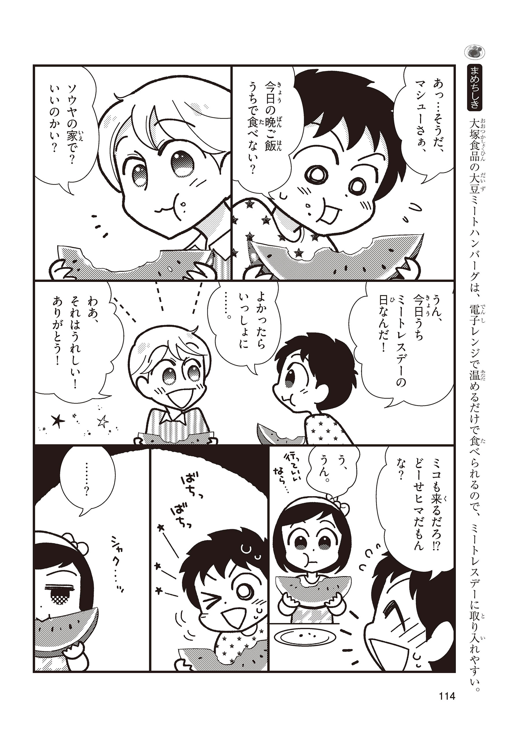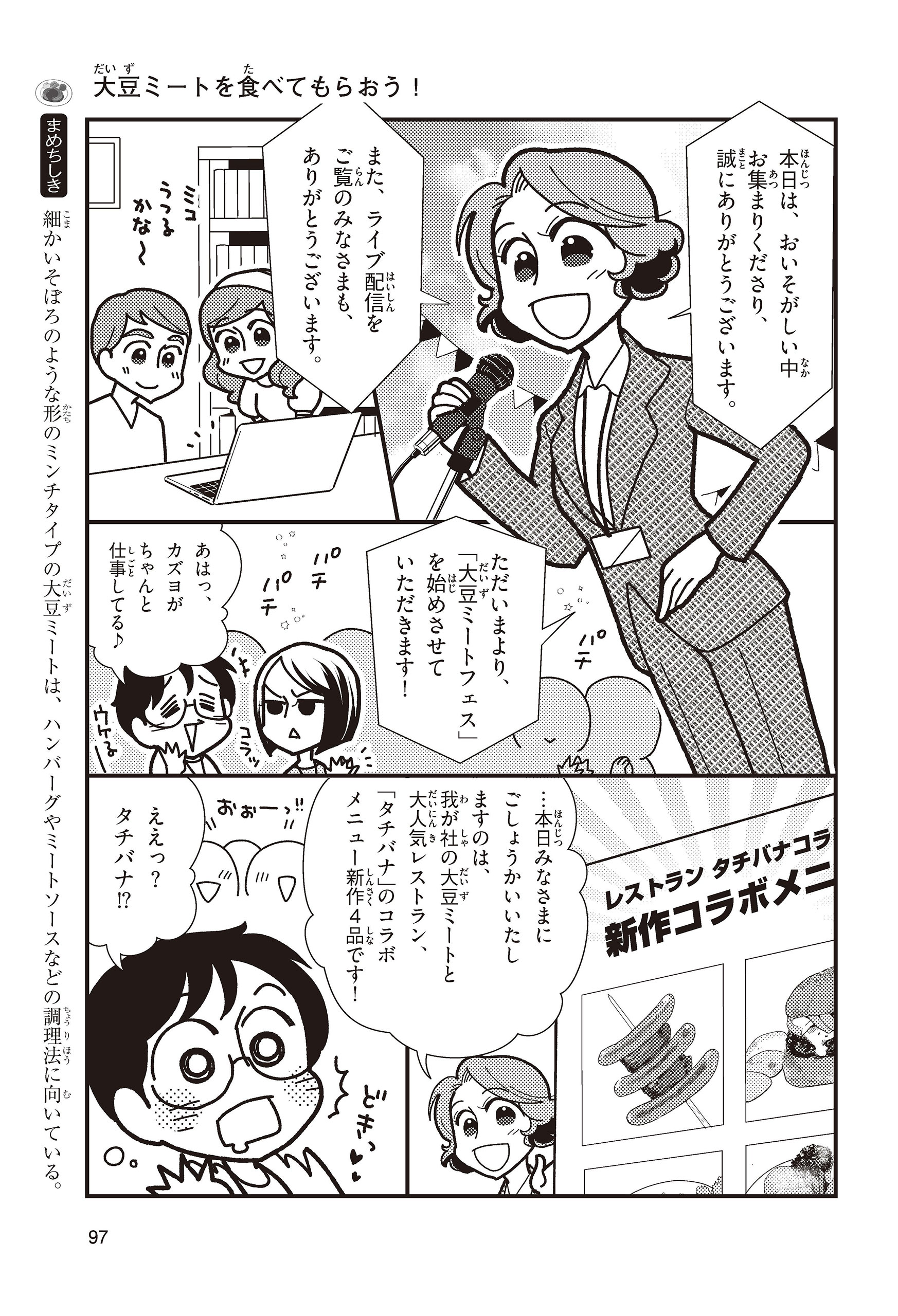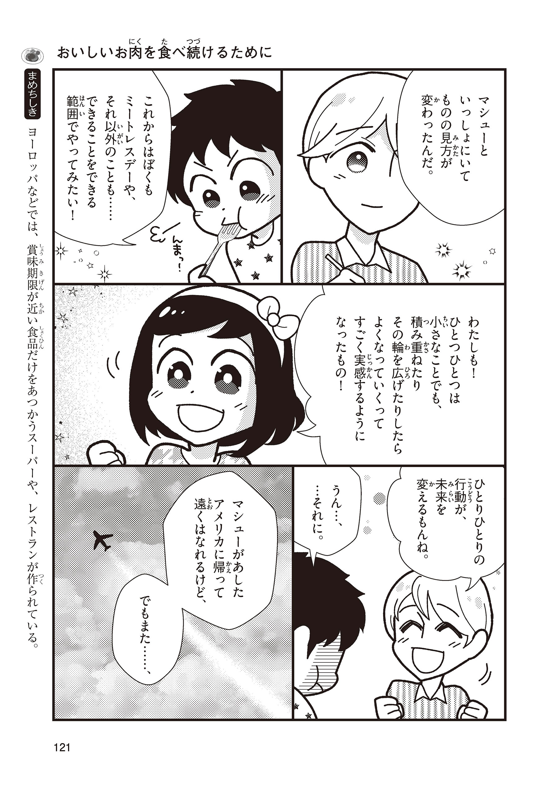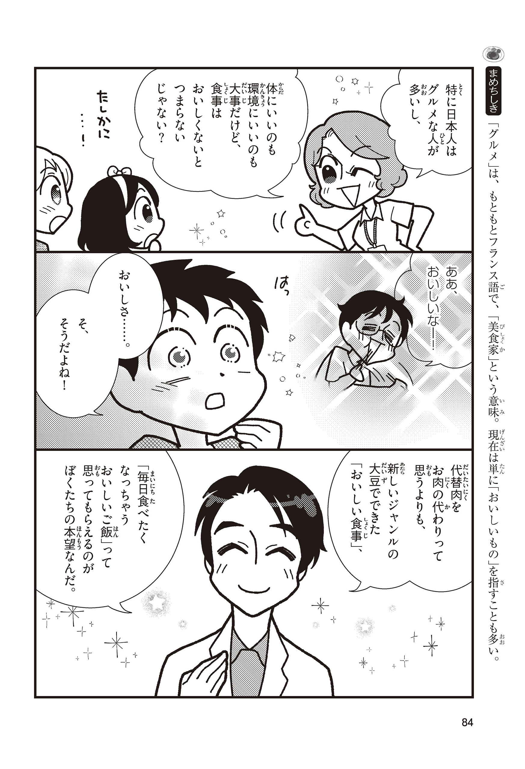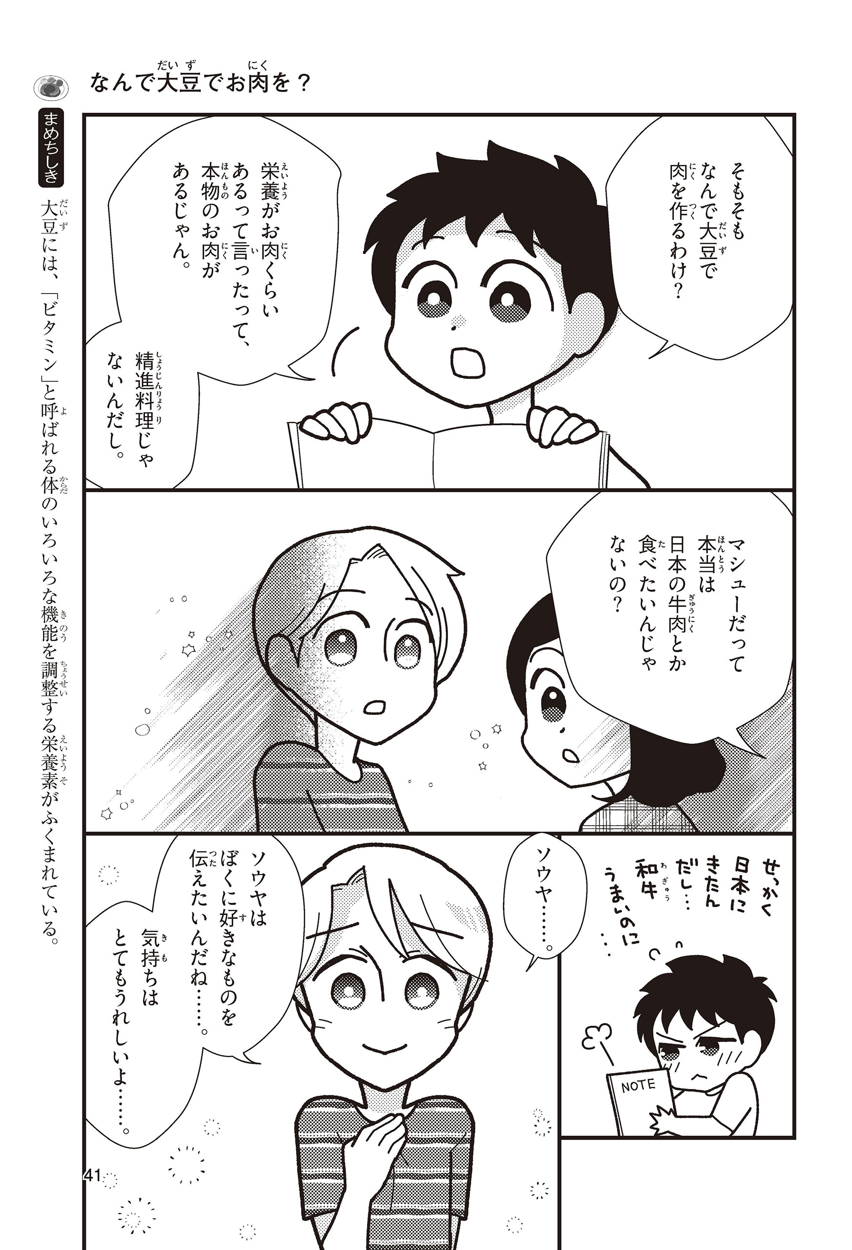 みんな「大豆ミート」を知っているかな? 大豆を使って作られた食べ物で、本物のお肉とかわらないぐらいおいしいんだよ! おいしいだけじゃなくて、大豆ミートを食べて、お肉をひかえることで、地球の環境に、いいえいきょうがあるんだって! この本には、大豆ミートのひみつがたくさんのっているから、みんなも読んで知ってみよう!