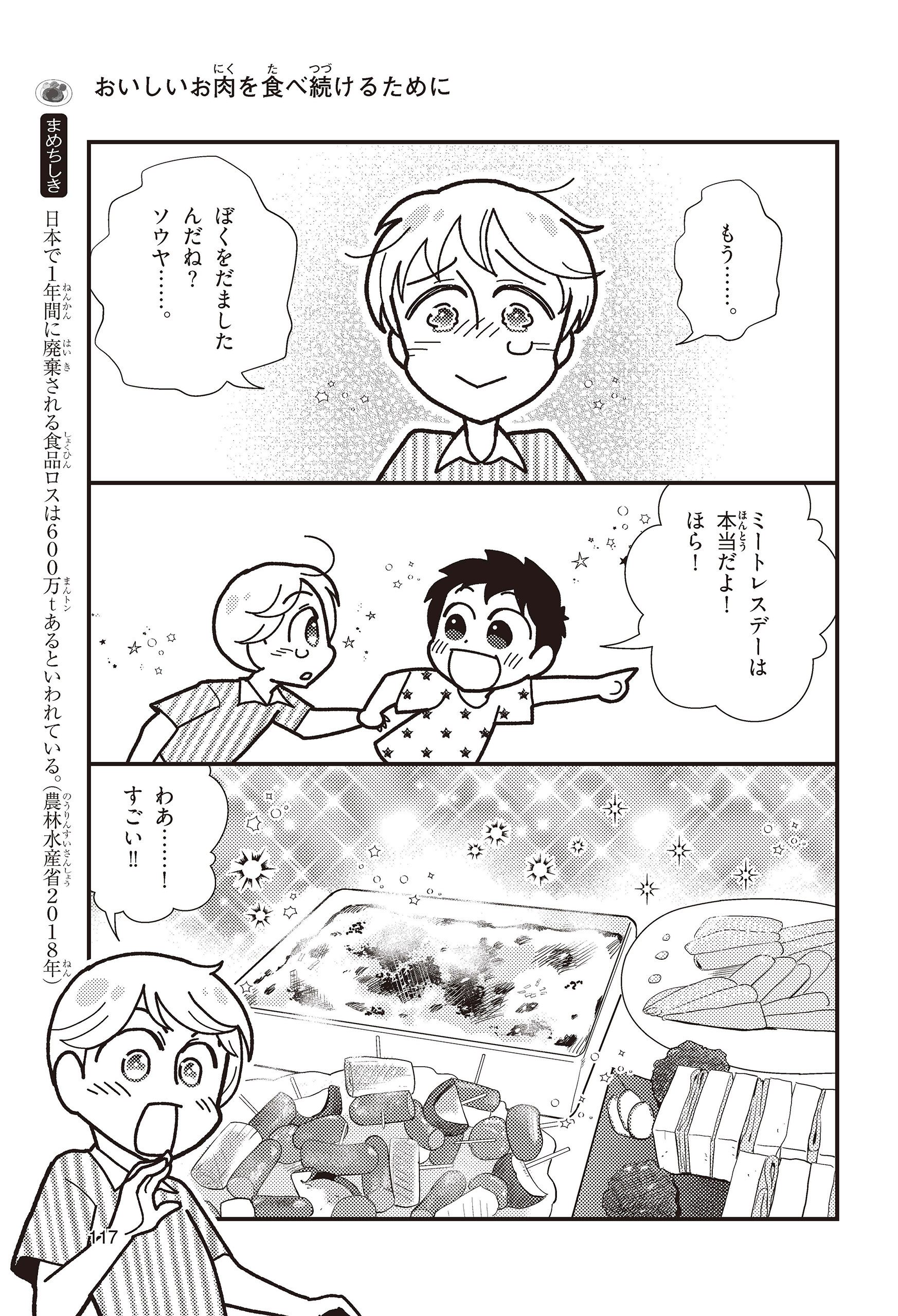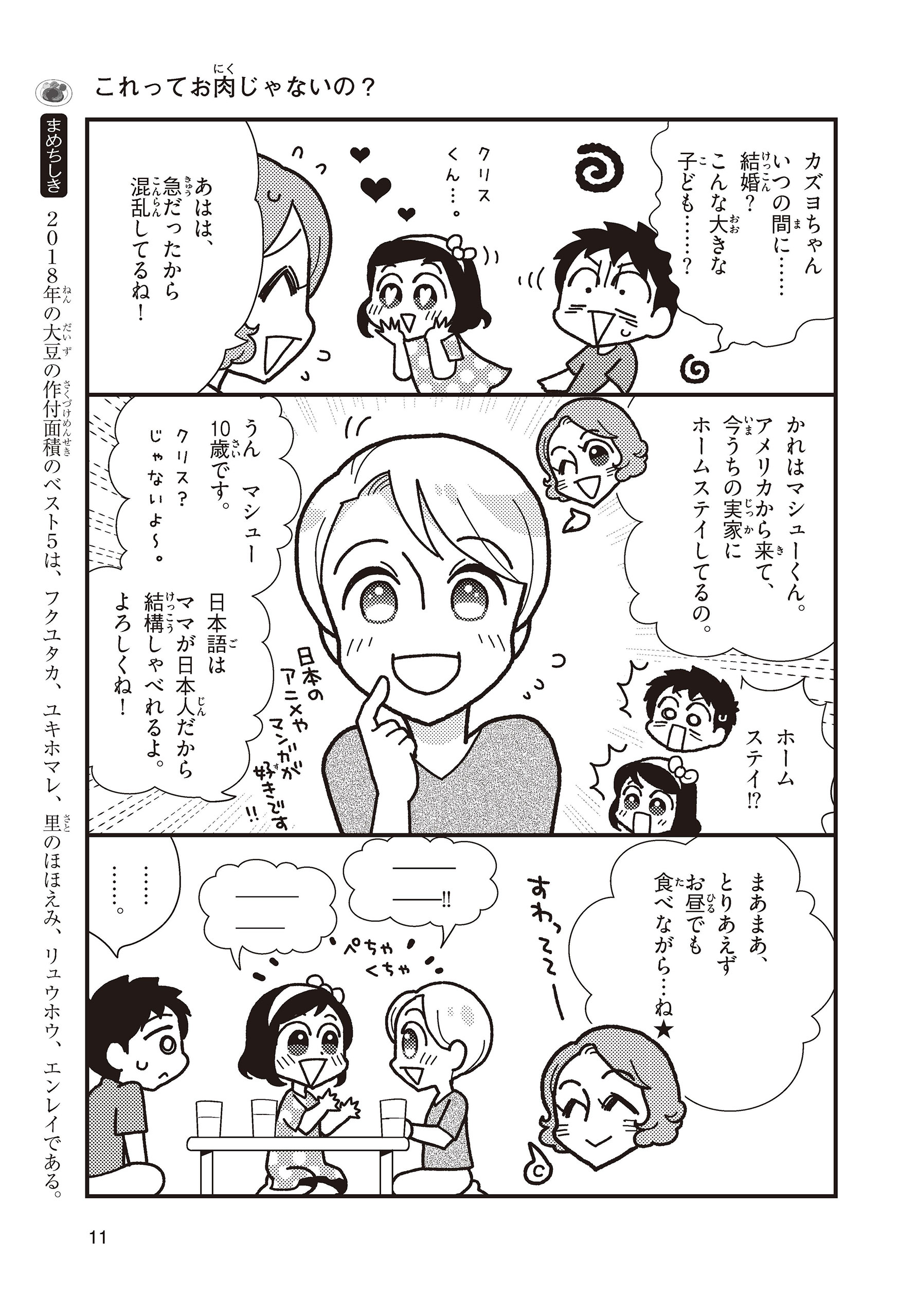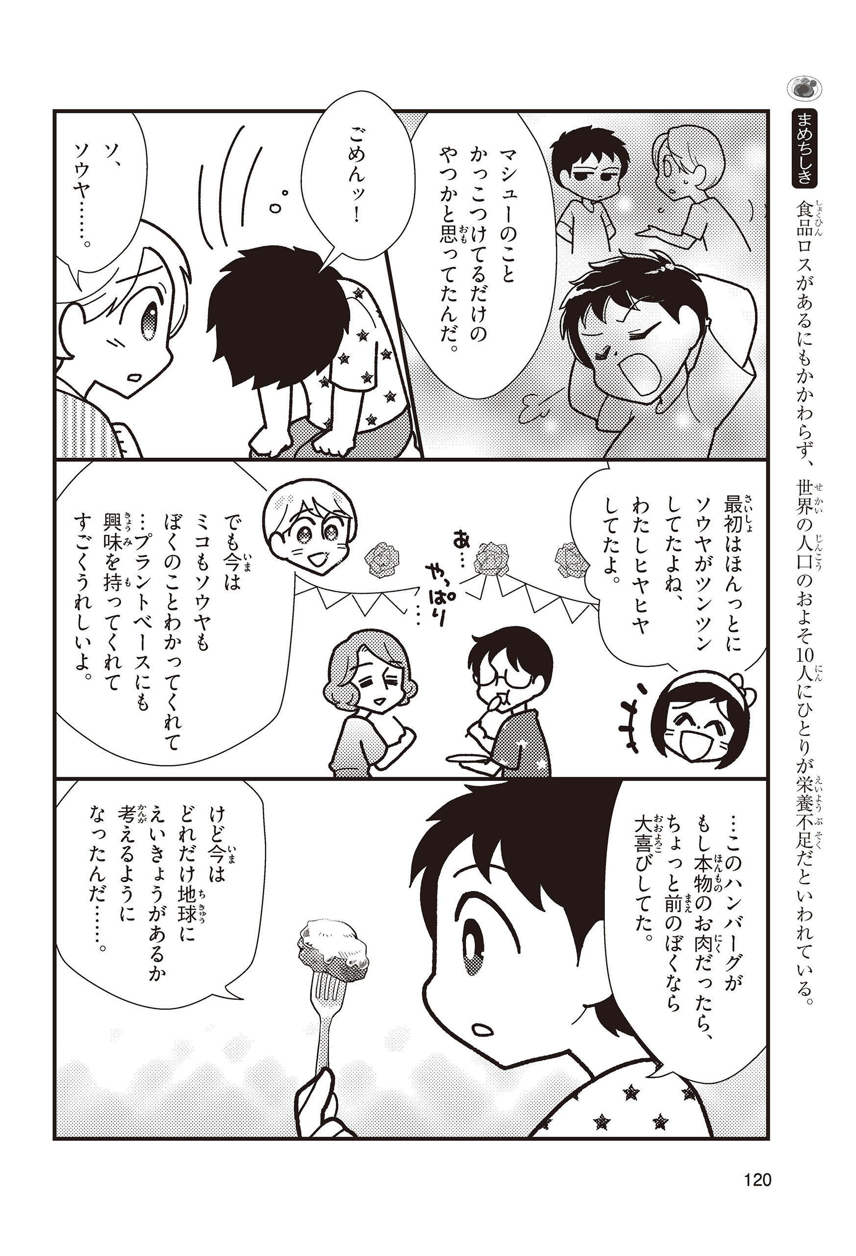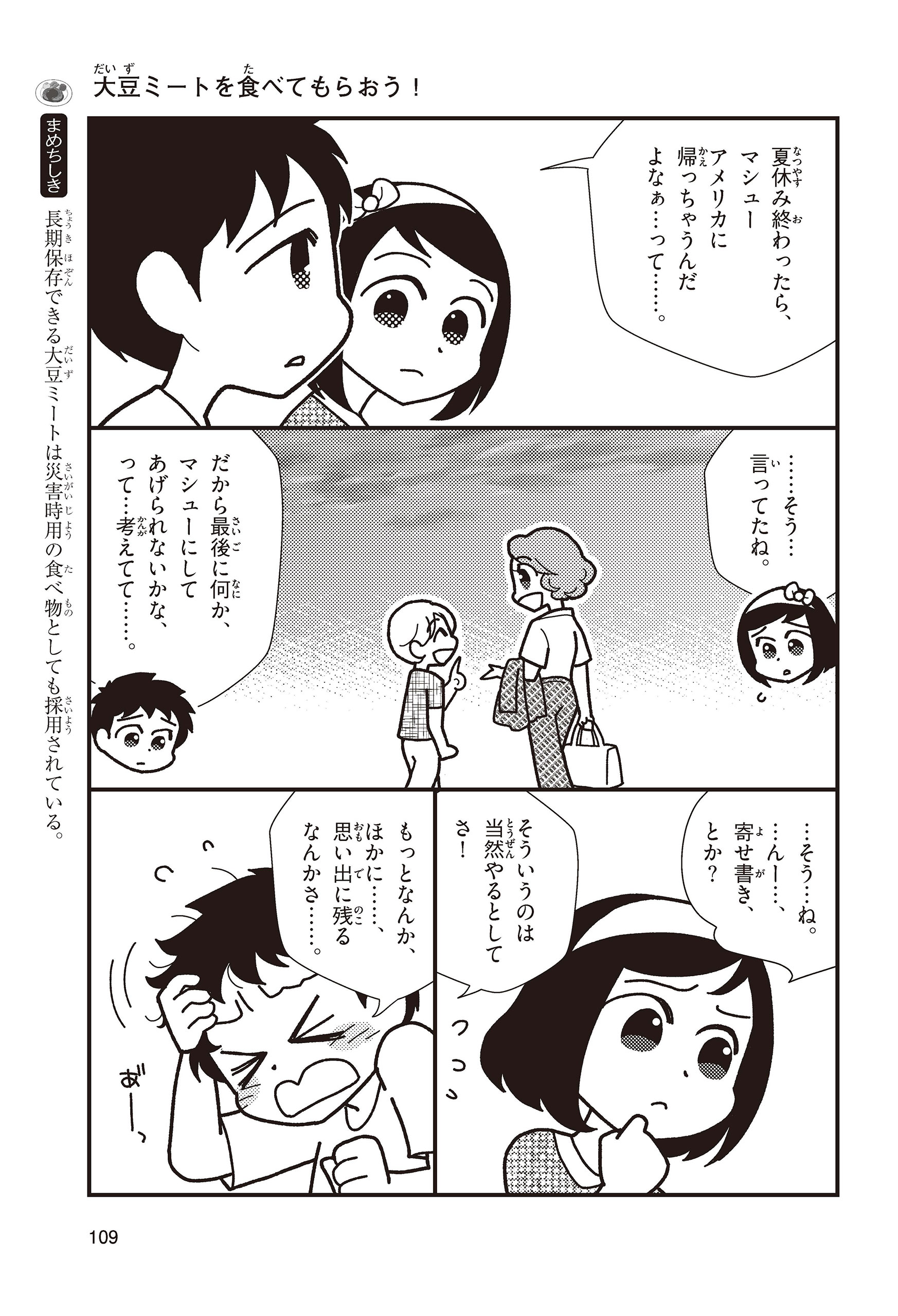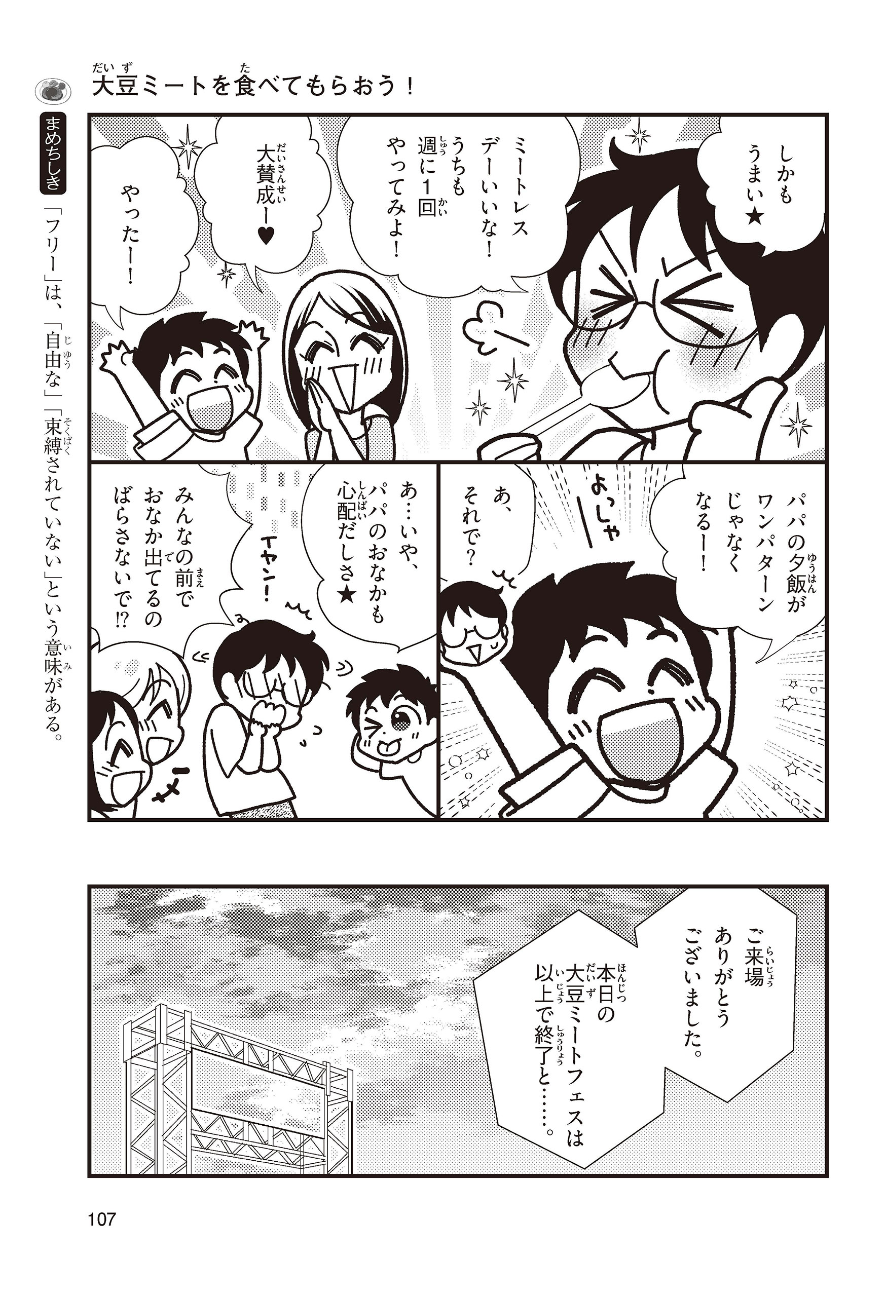 みんな「大豆ミート」を知っているかな? 大豆を使って作られた食べ物で、本物のお肉とかわらないぐらいおいしいんだよ! おいしいだけじゃなくて、大豆ミートを食べて、お肉をひかえることで、地球の環境に、いいえいきょうがあるんだって! この本には、大豆ミートのひみつがたくさんのっているから、みんなも読んで知ってみよう!