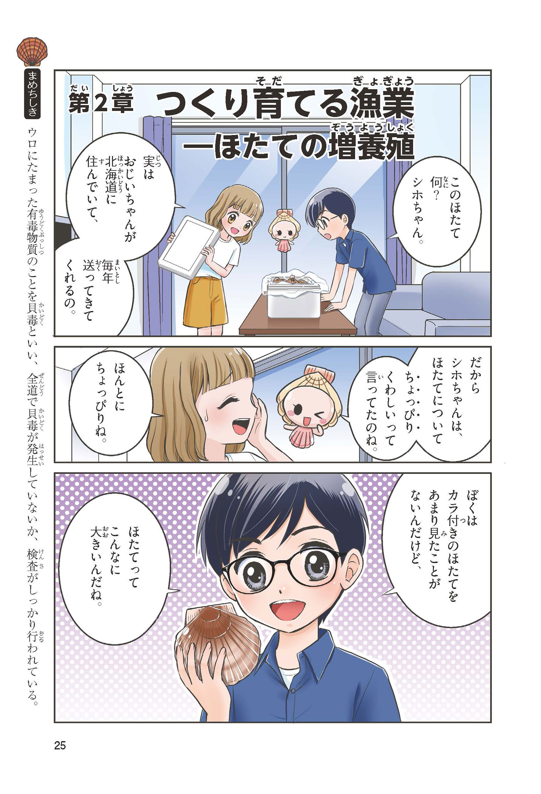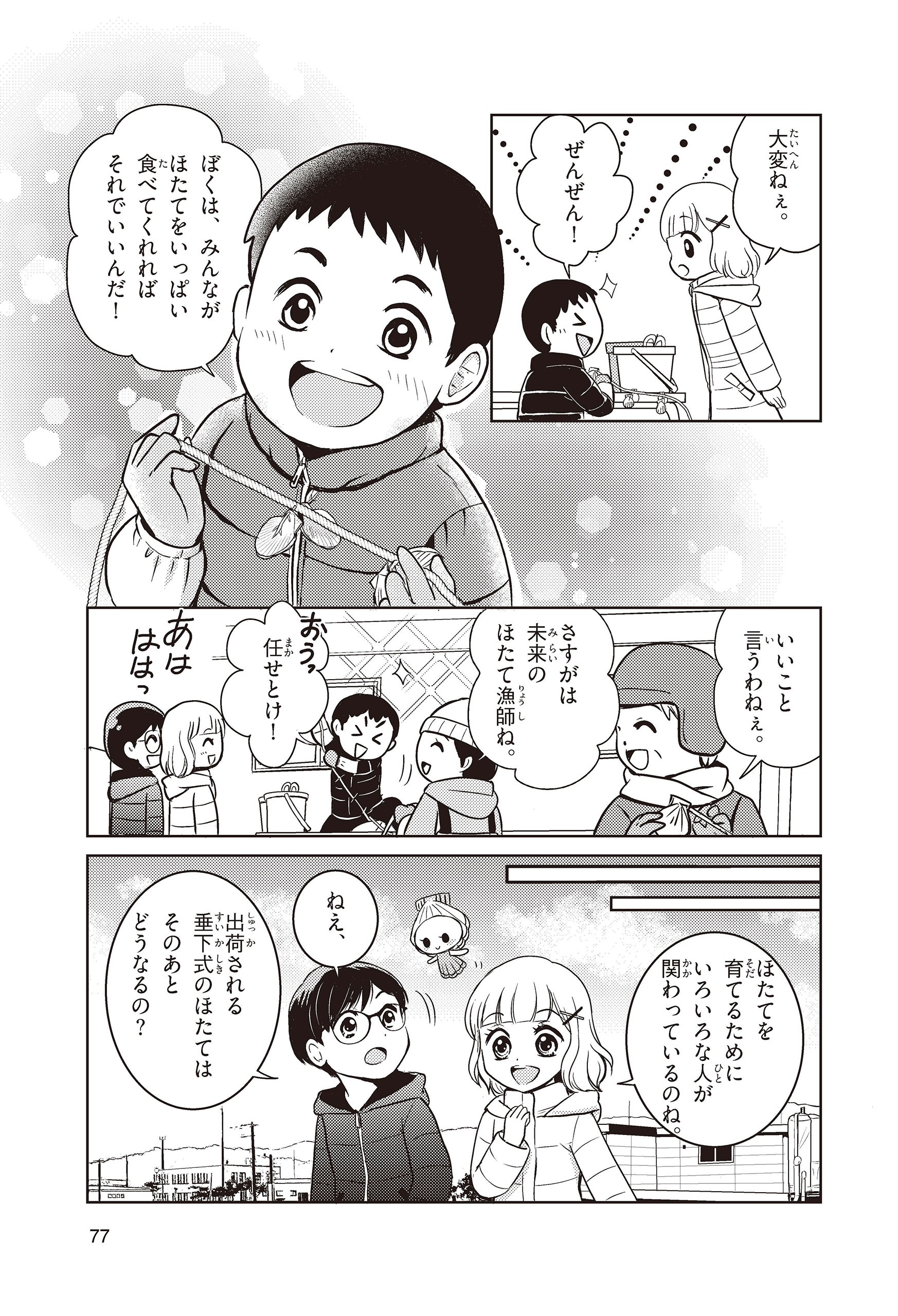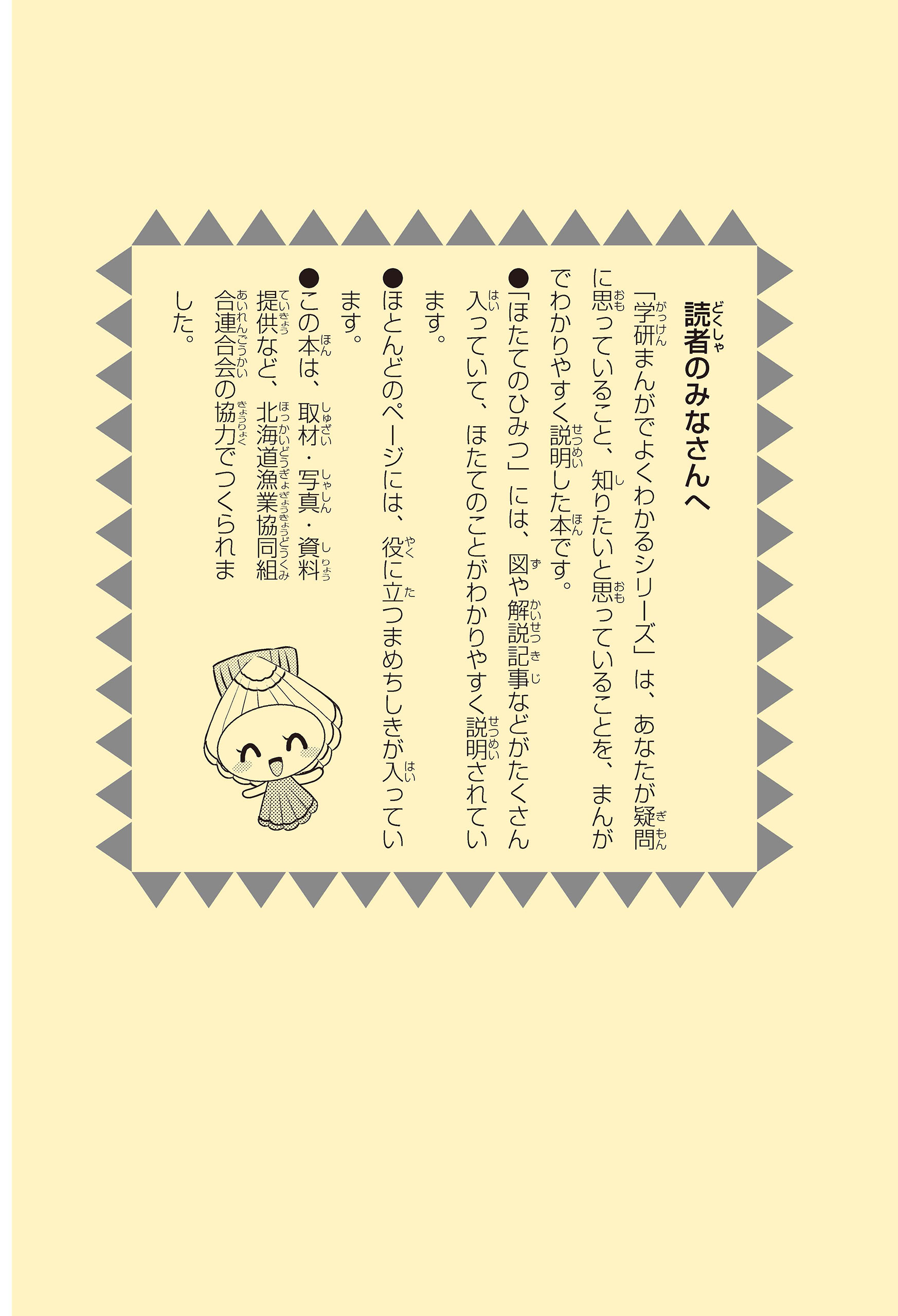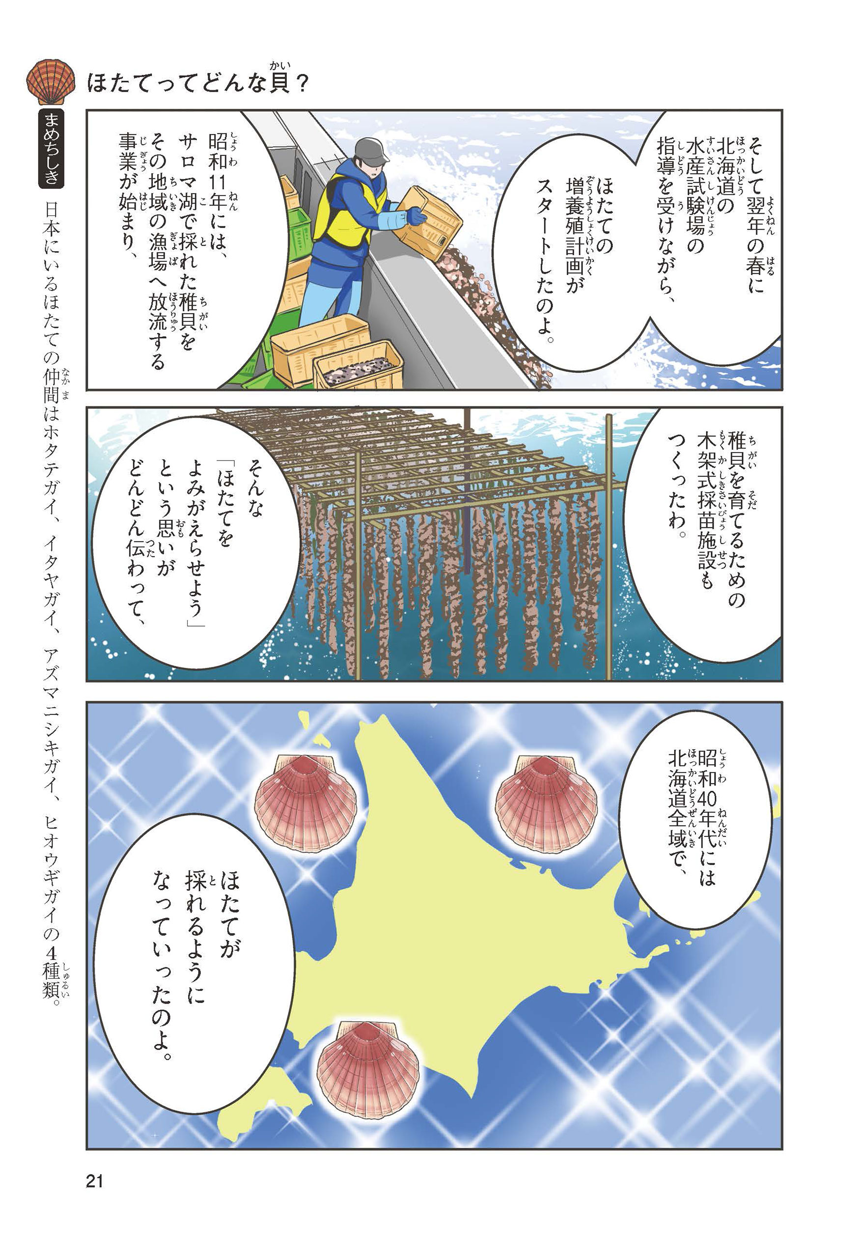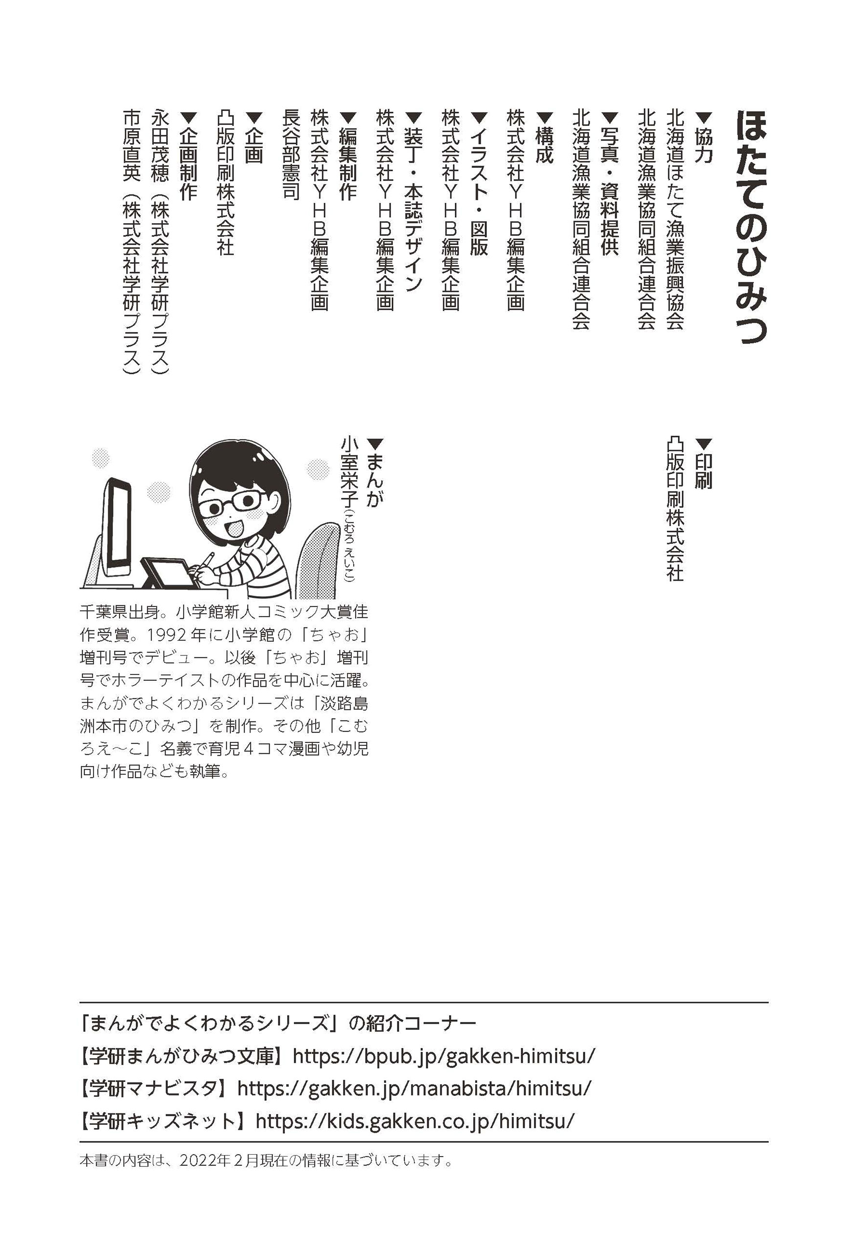 ほたてって、どんな貝なのかな? どんな所で、どんなふうに育つのかな? 漁師さんが大切に守り、育てているって知ってるかな? 育て方や漁には、ふたつの方法があるんだって。どうやって育てて、どんな漁をしているんだろう。ヘルシーで栄養満点、1年中食べられるほたては、海外でも大人気なんだって。そんなほたてのことが、この本を読めばとてもよくわかるよ!