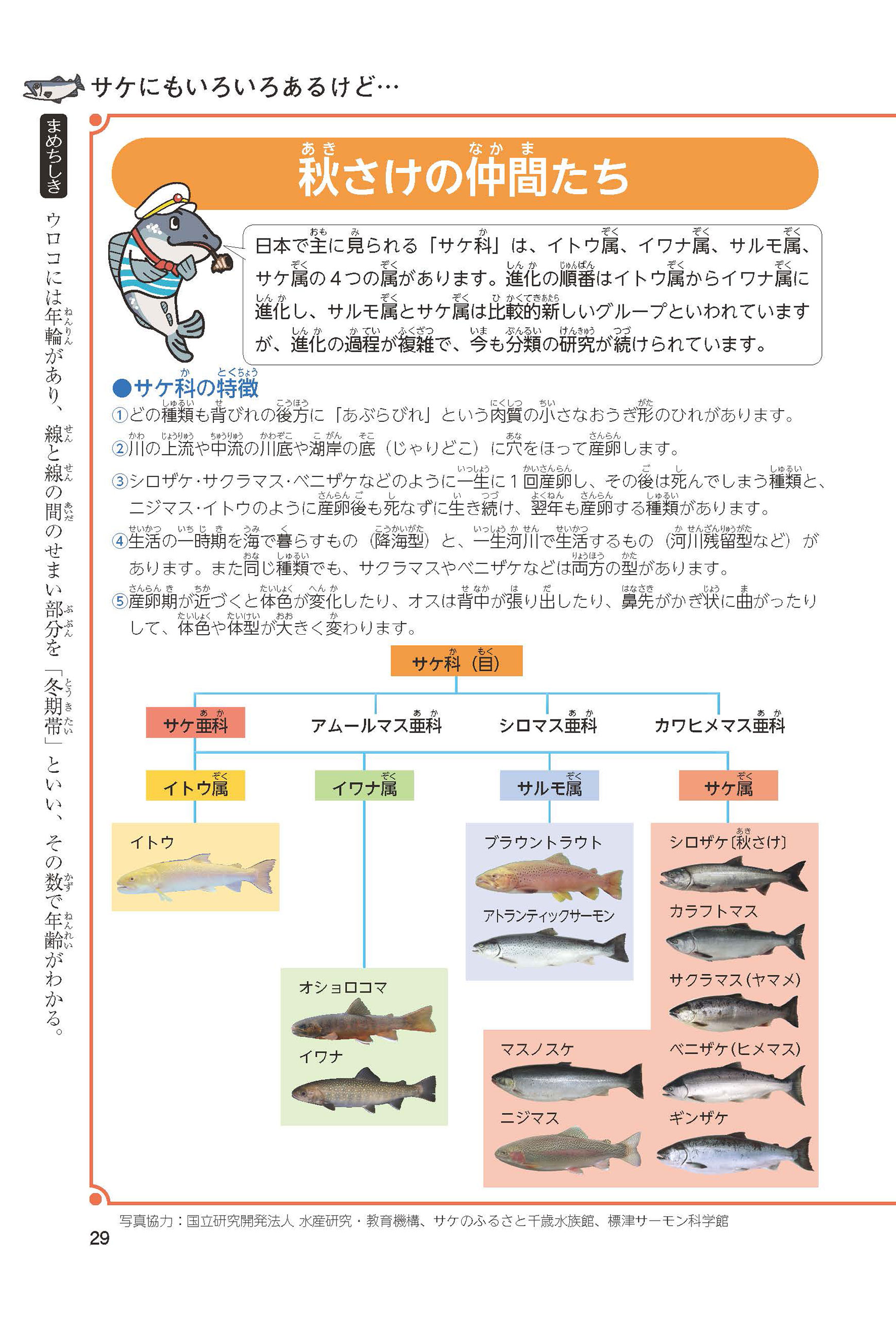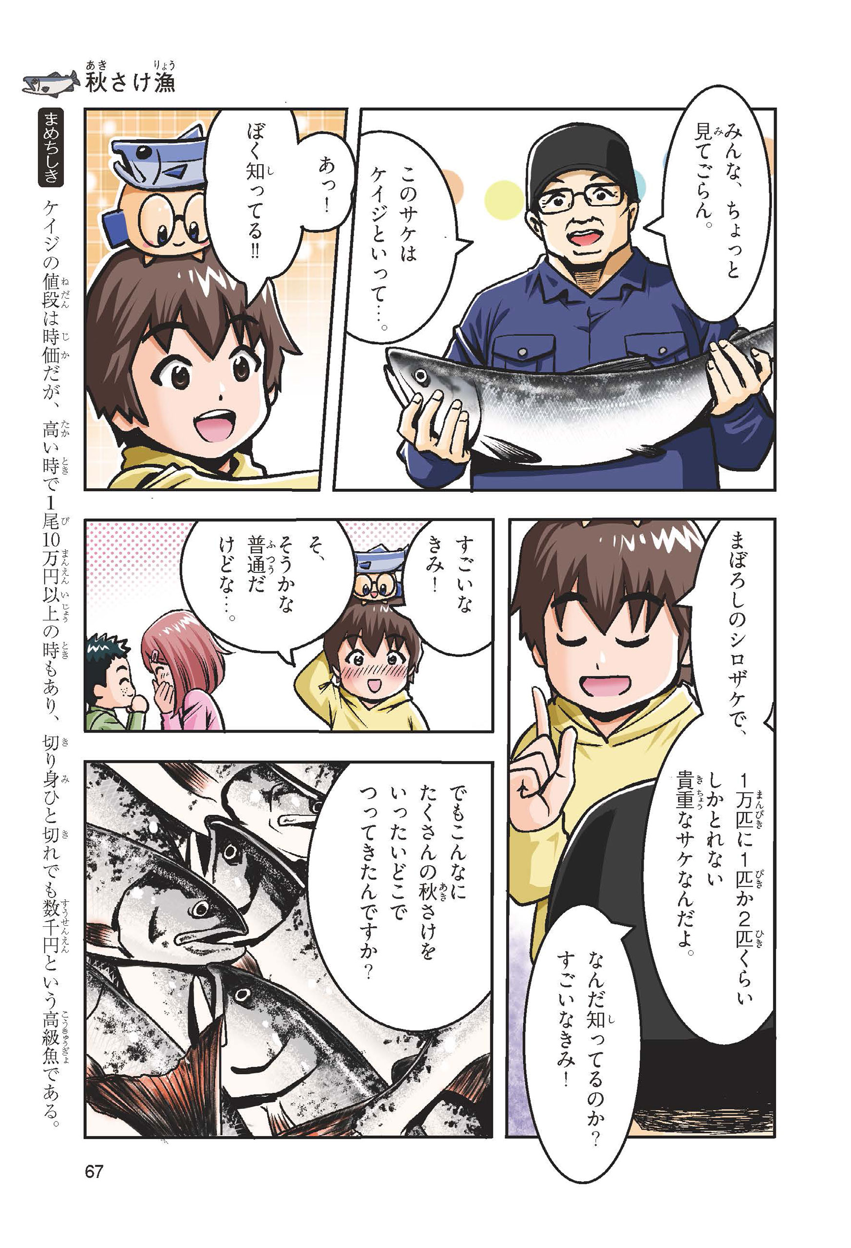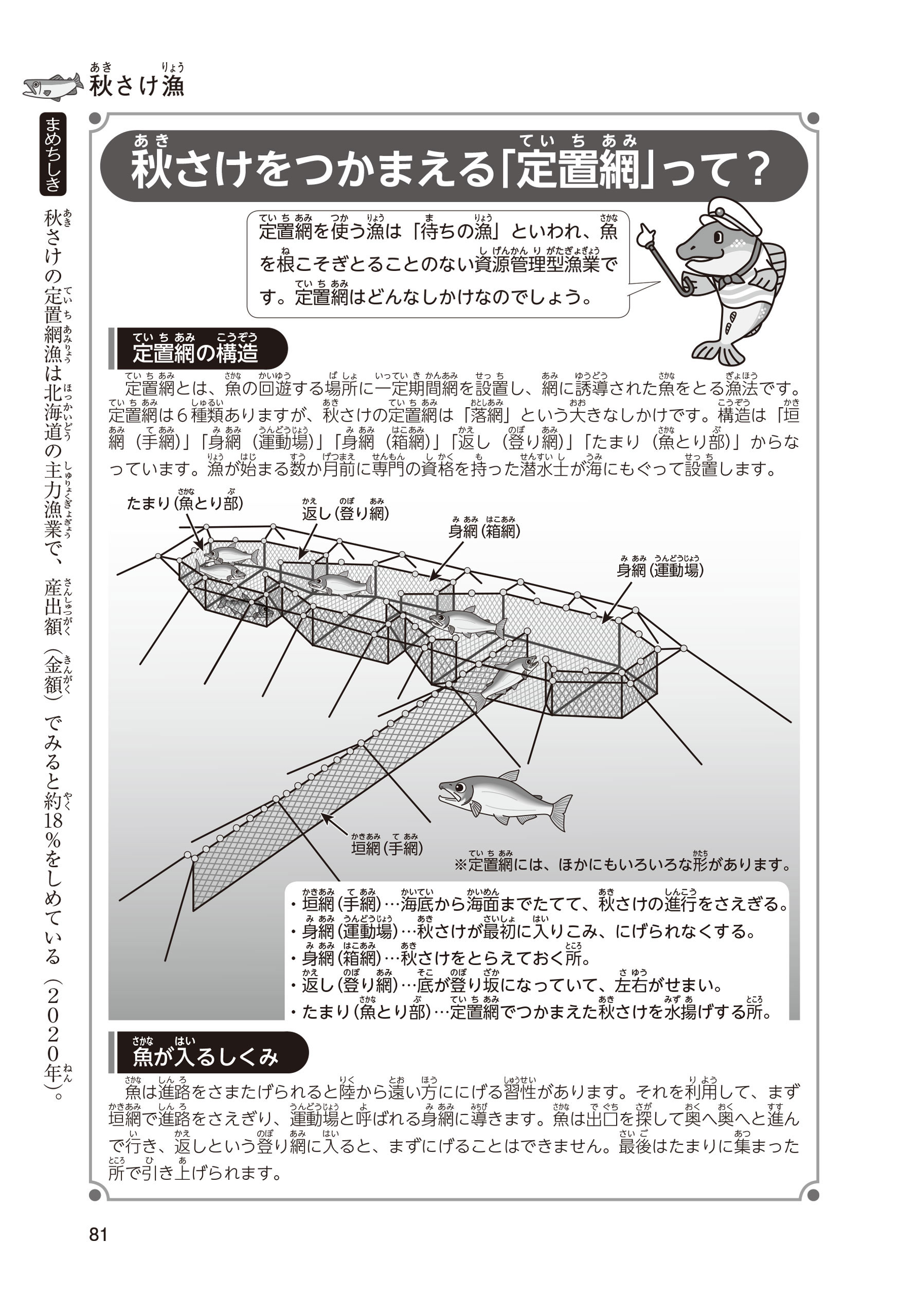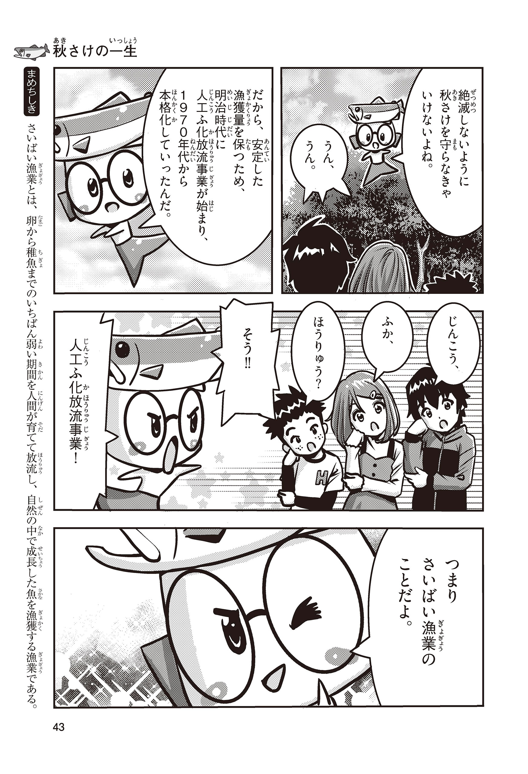 秋さけはサケ科の魚、シロザケのことなんだ。川で生まれて、海で育つって知ってた? 毎年秋になると、成長した秋さけが遠くはなれた広い海から生まれた川にもどってくるんだって。どんな一生を送るのかな? どんな特徴があるのかな? 漁師さんは、どんな方法で秋さけをとっているんだろう? この本を読めば、秋さけのことがとてもよくわかるよ!