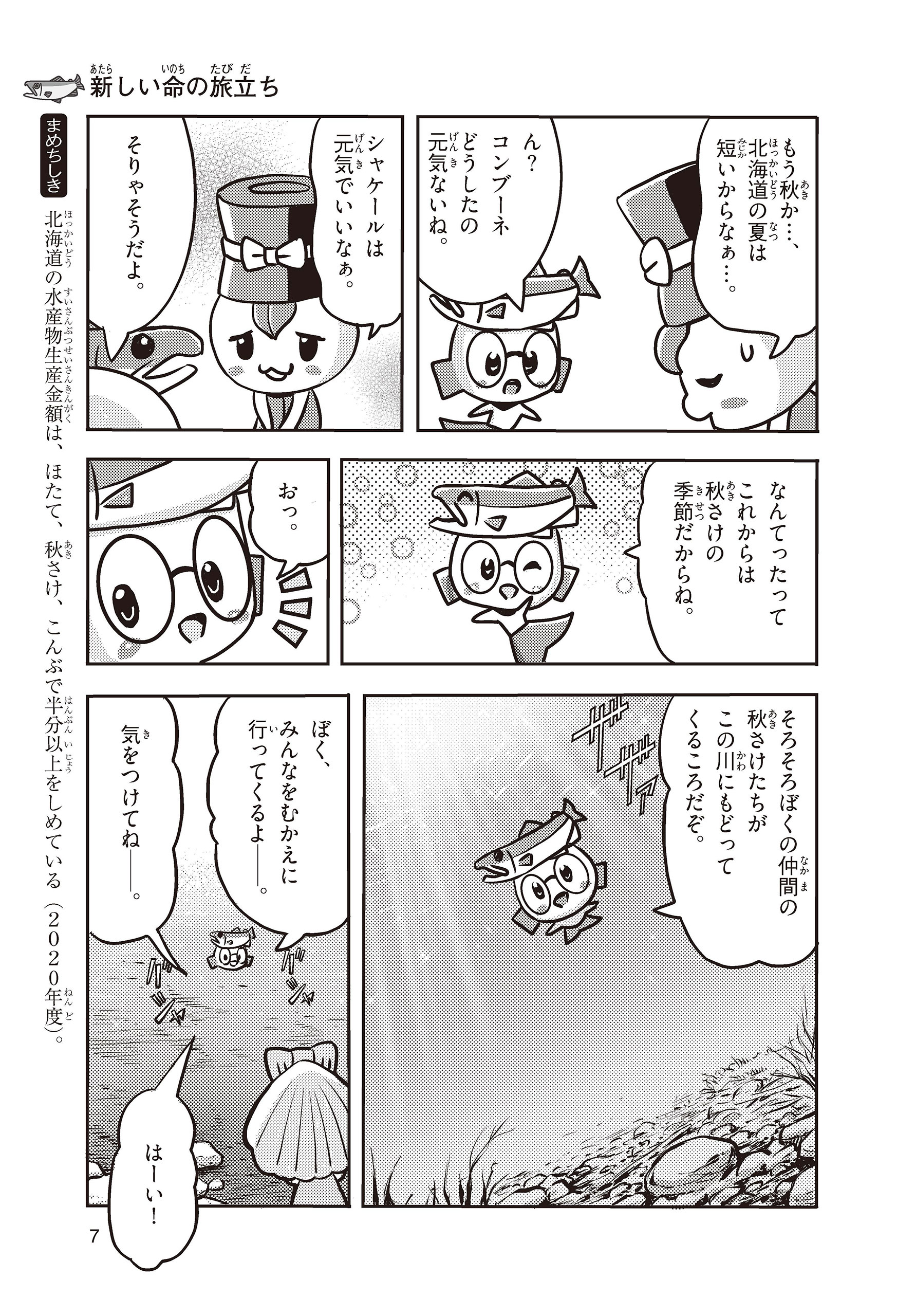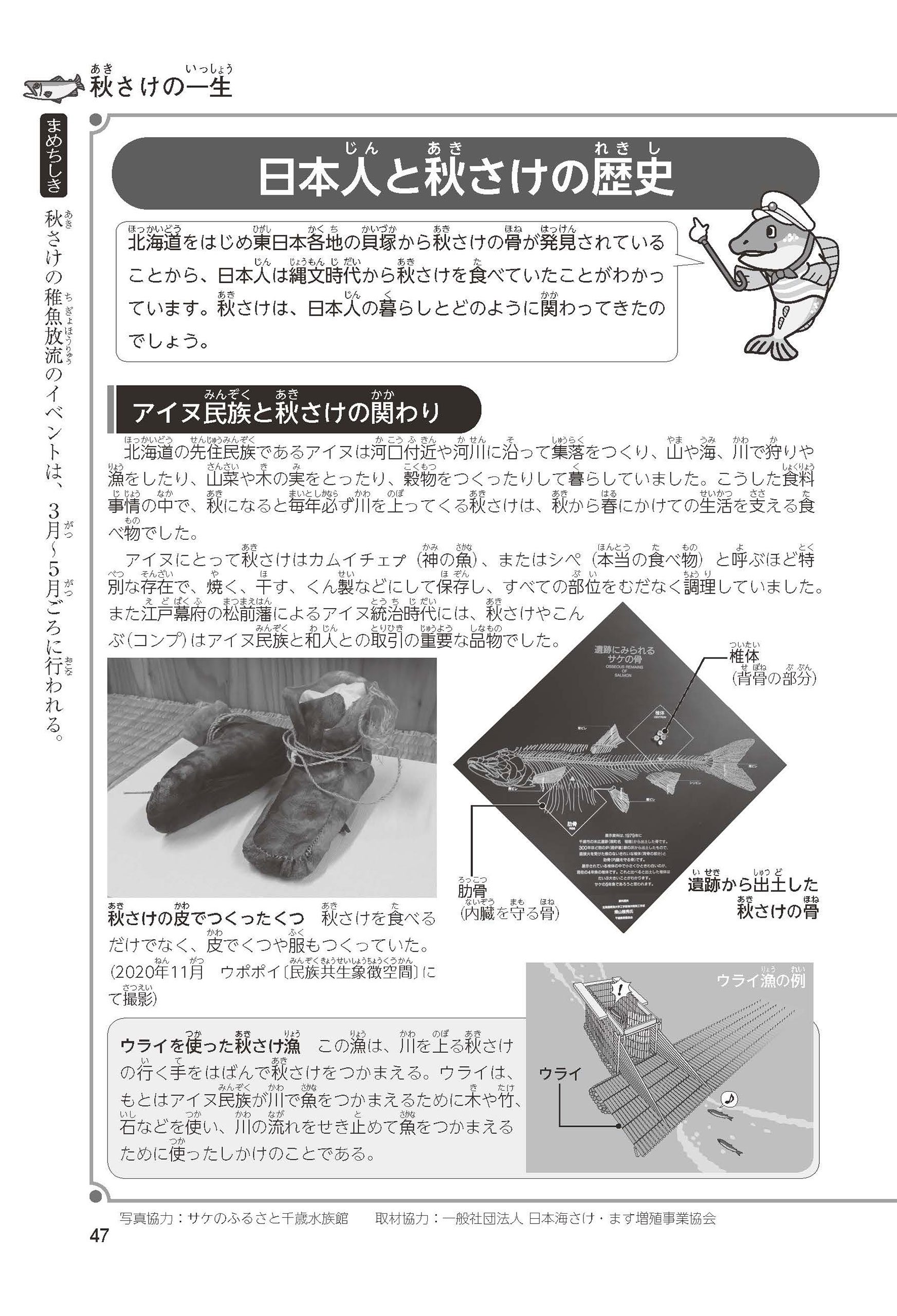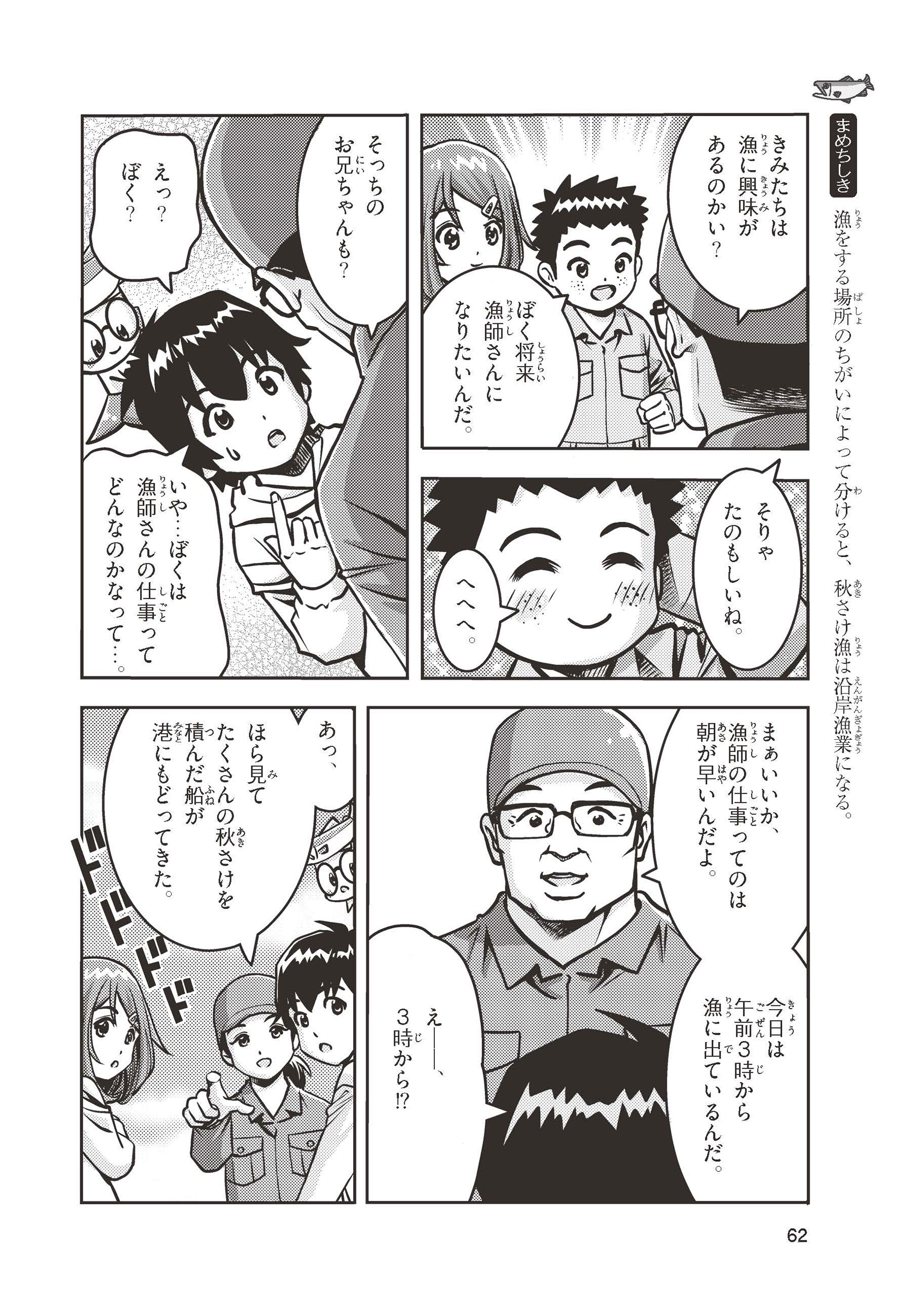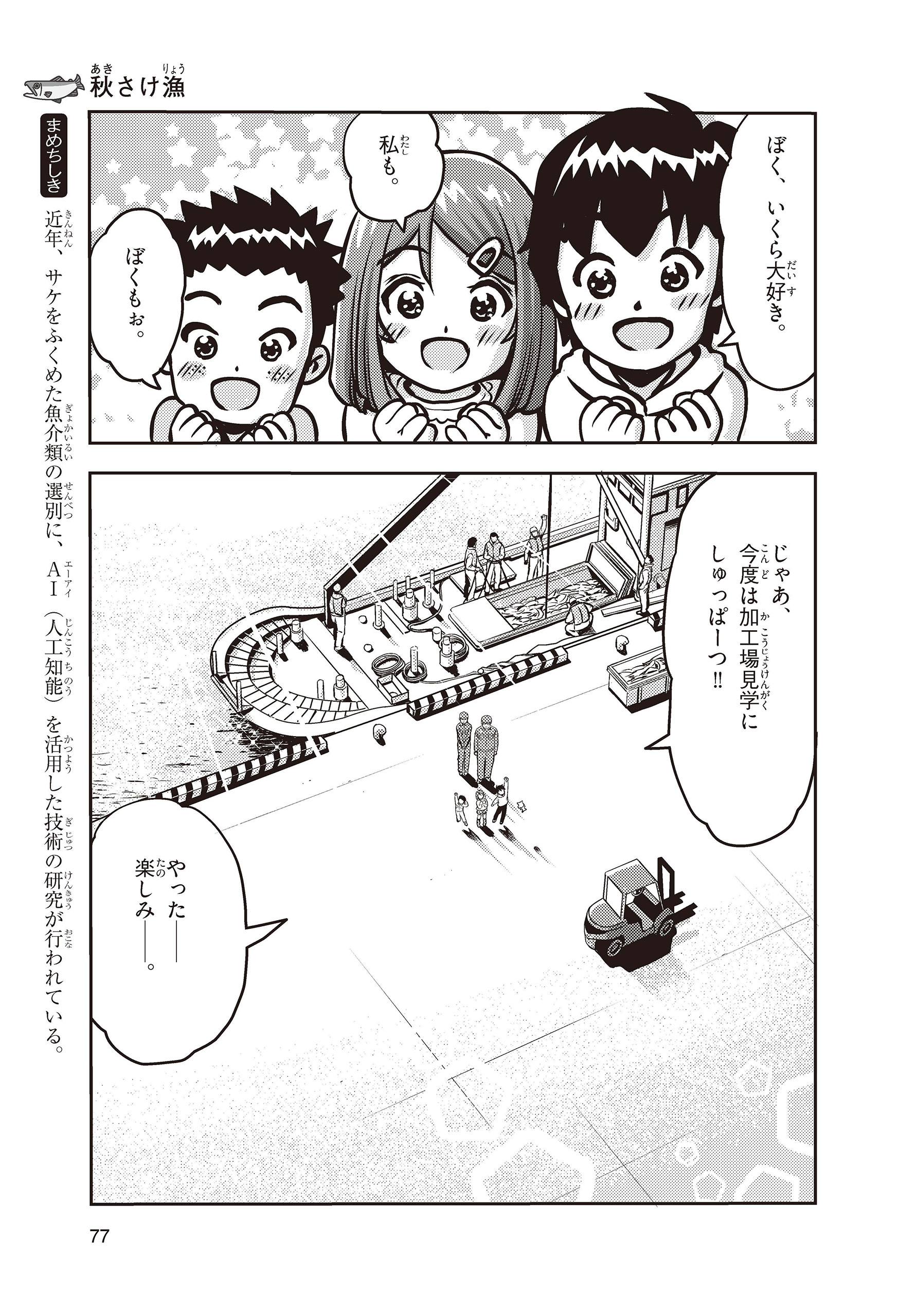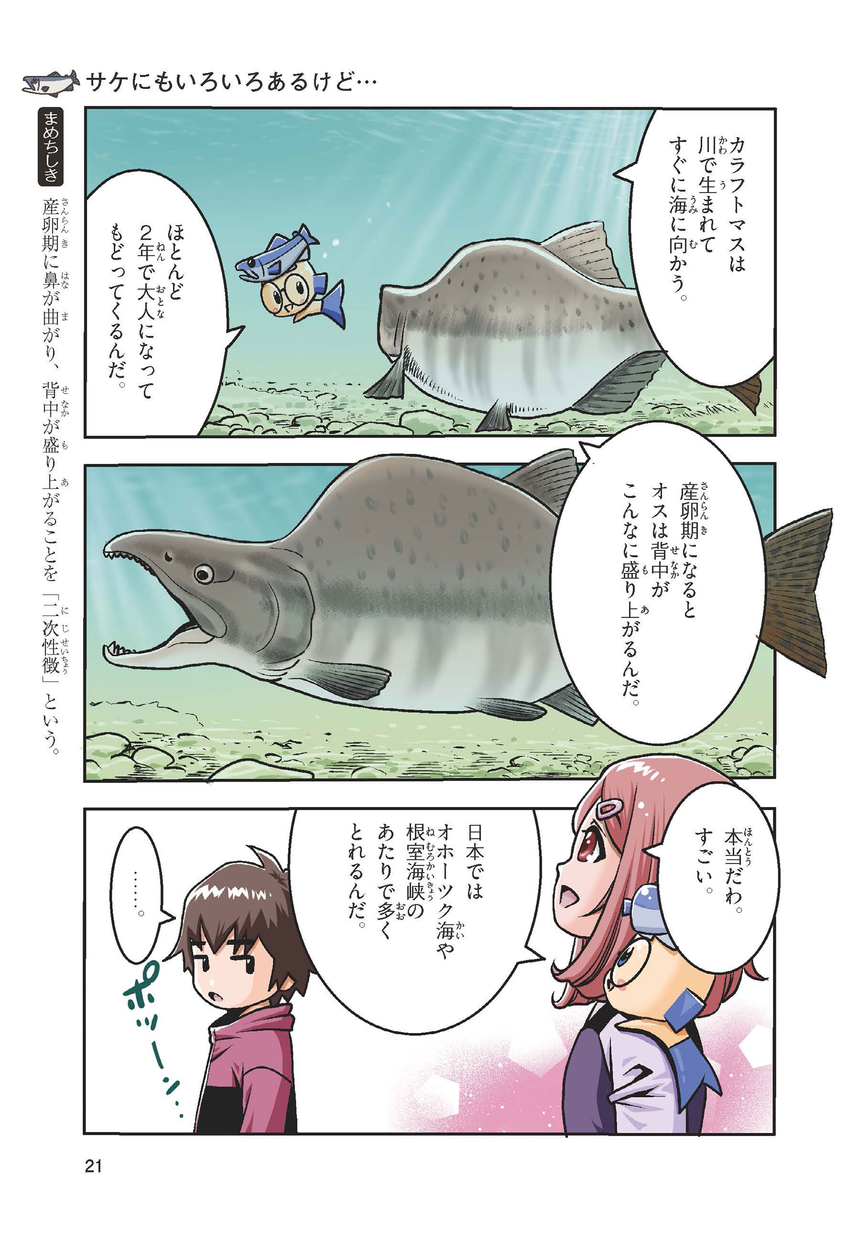 秋さけはサケ科の魚、シロザケのことなんだ。川で生まれて、海で育つって知ってた? 毎年秋になると、成長した秋さけが遠くはなれた広い海から生まれた川にもどってくるんだって。どんな一生を送るのかな? どんな特徴があるのかな? 漁師さんは、どんな方法で秋さけをとっているんだろう? この本を読めば、秋さけのことがとてもよくわかるよ!