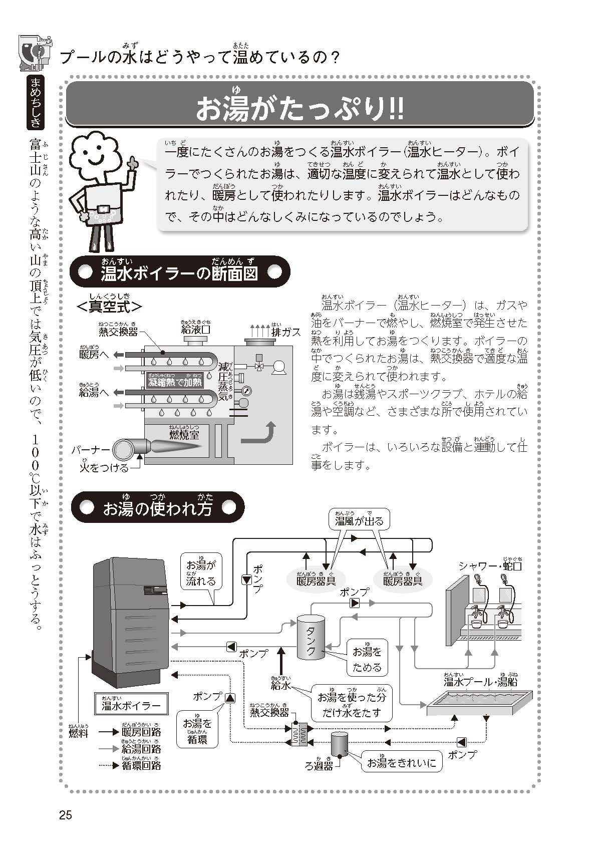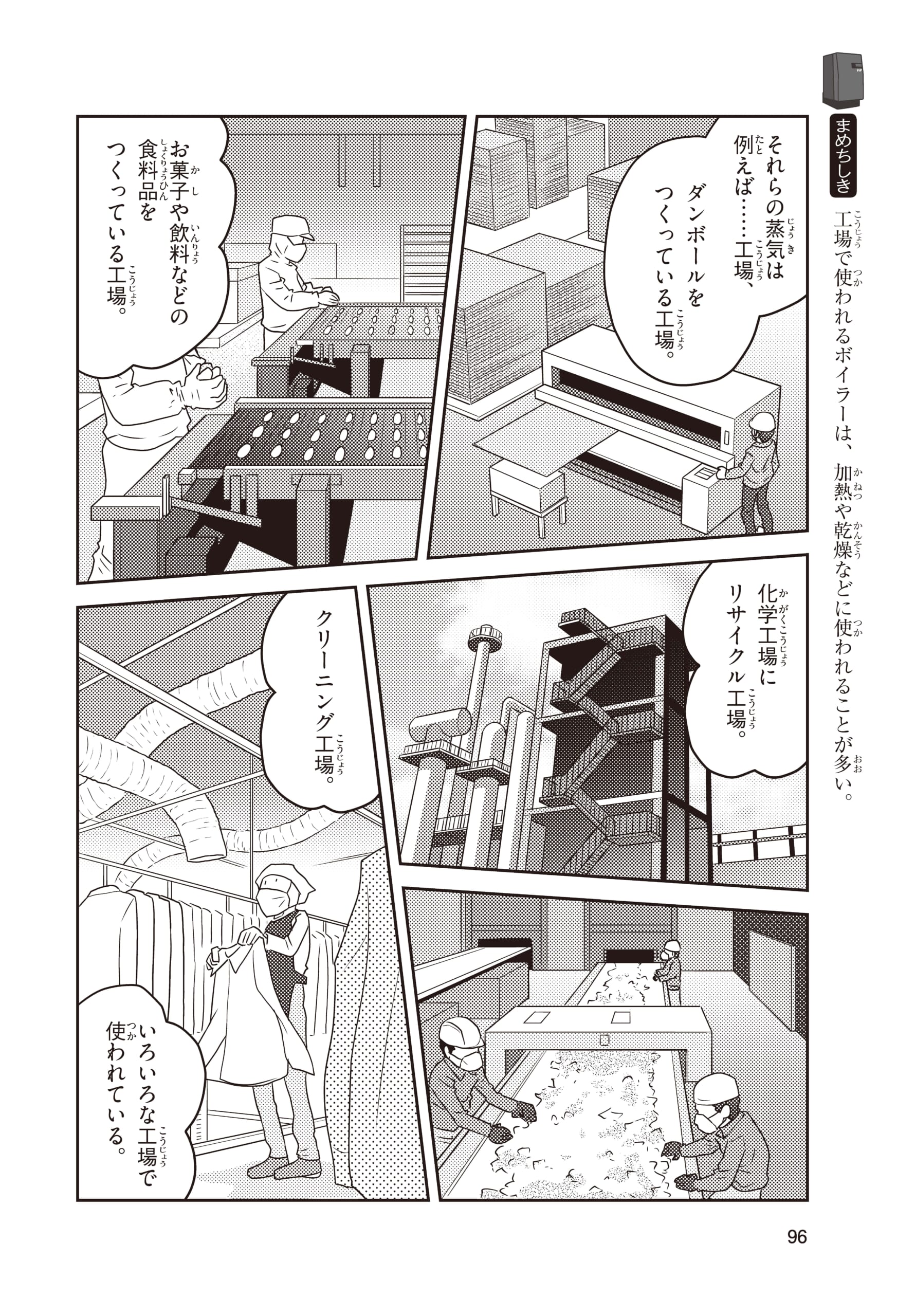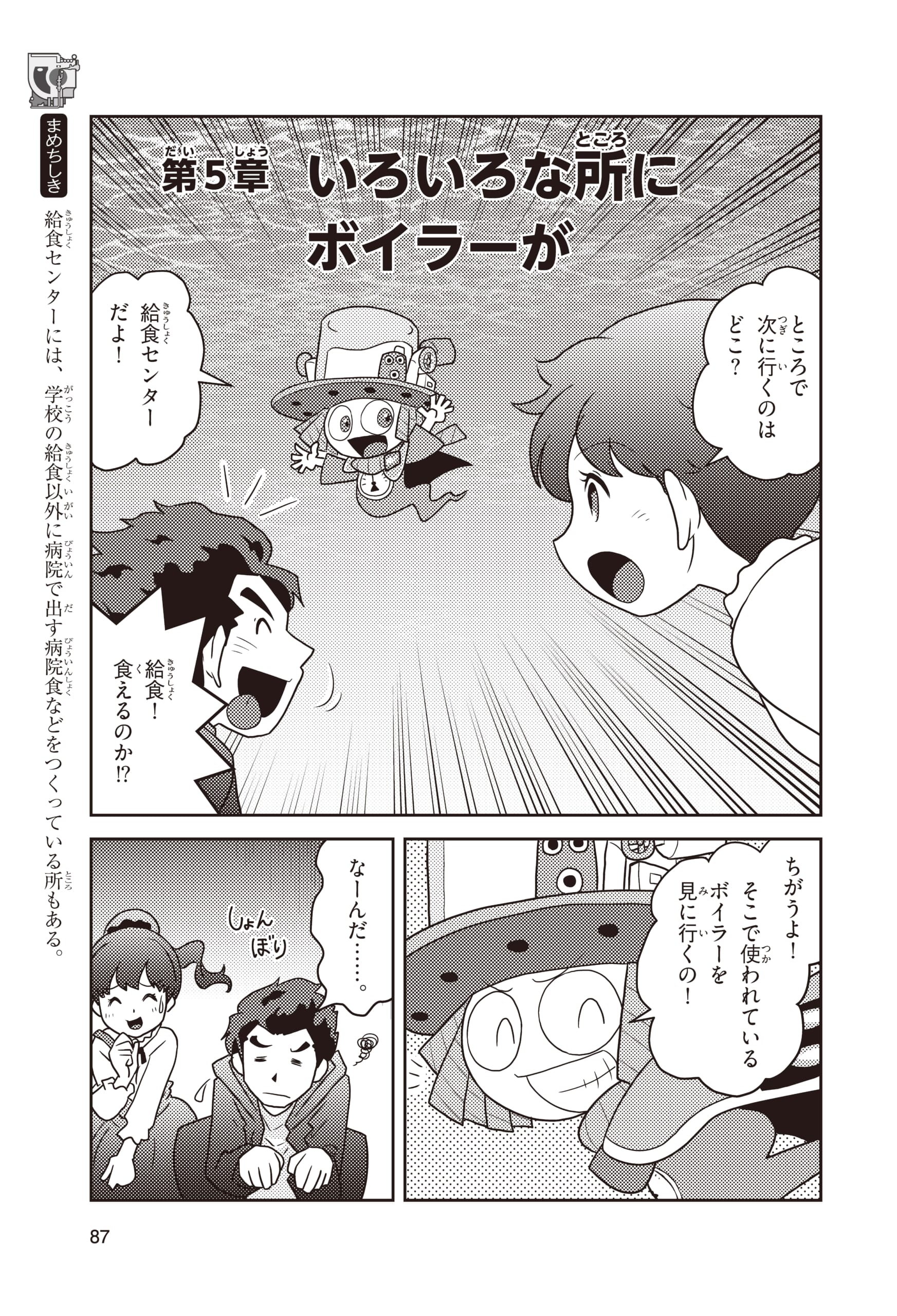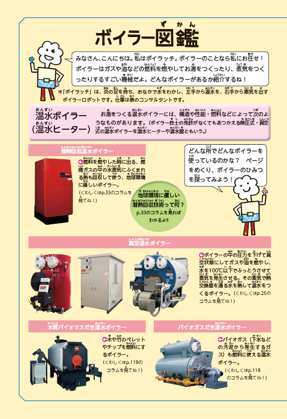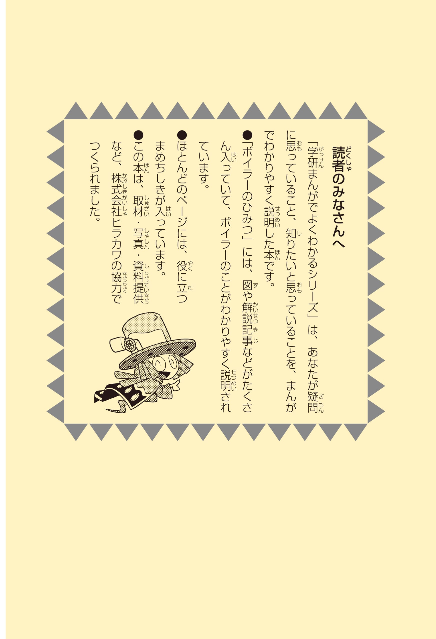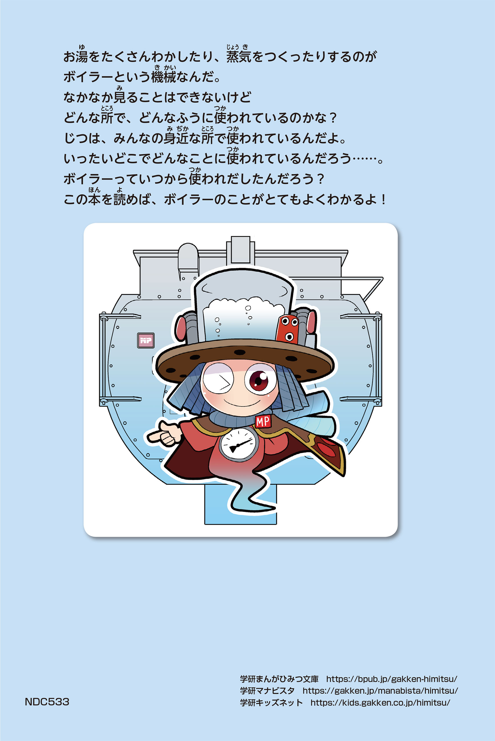 お湯をたくさんわかしたり、蒸気をつくったりするのがボイラーという機械なんだ。なかなか見ることはできないけど、どんな所で、どんなふうに使われているのかな? じつは、みんなの身近な所で使われているんだよ。いったいどこでどんなことに使われているんだろう……。ボイラーっていつから使われだしたんだろう? この本を読めば、ボイラーのことがとてもよくわかるよ!