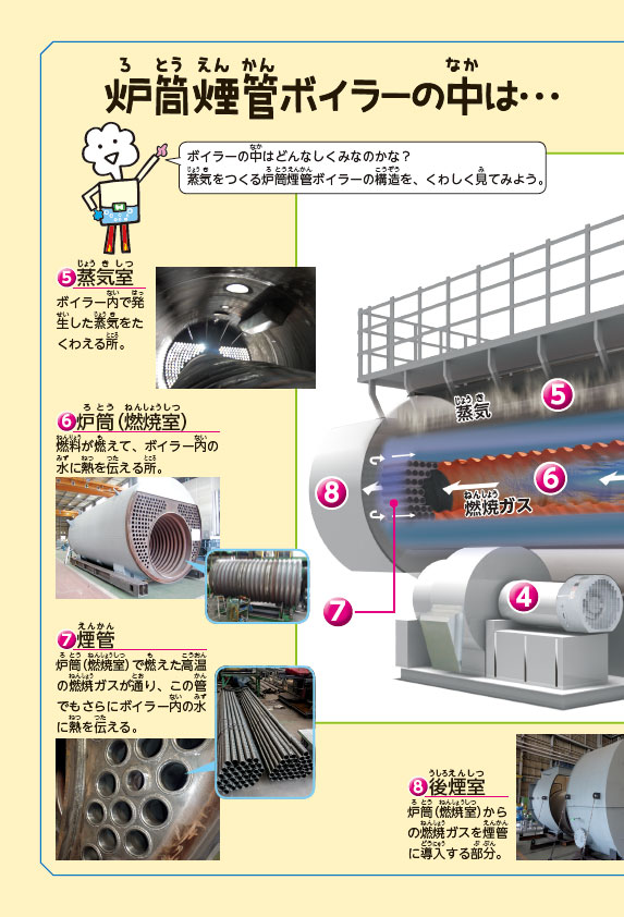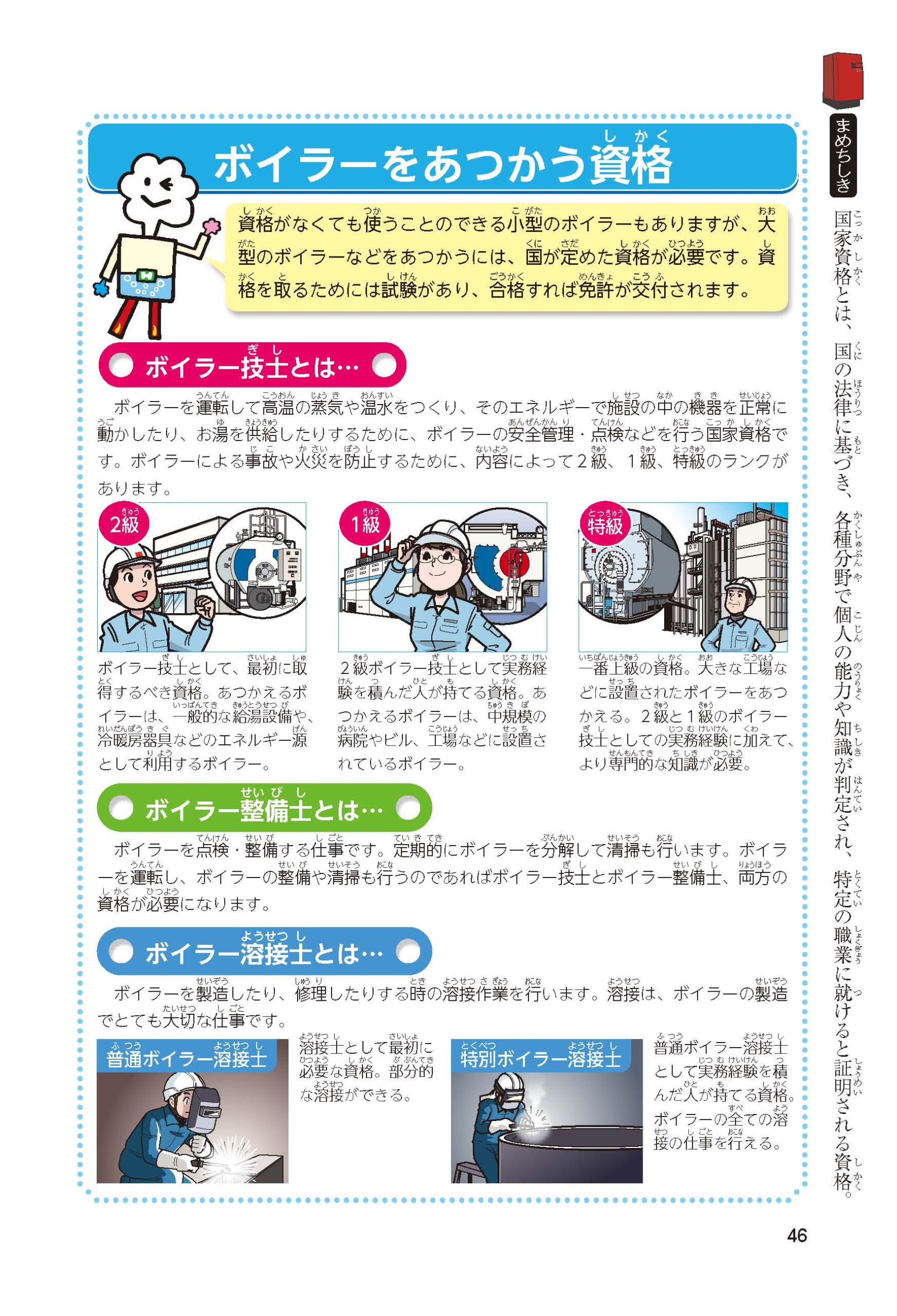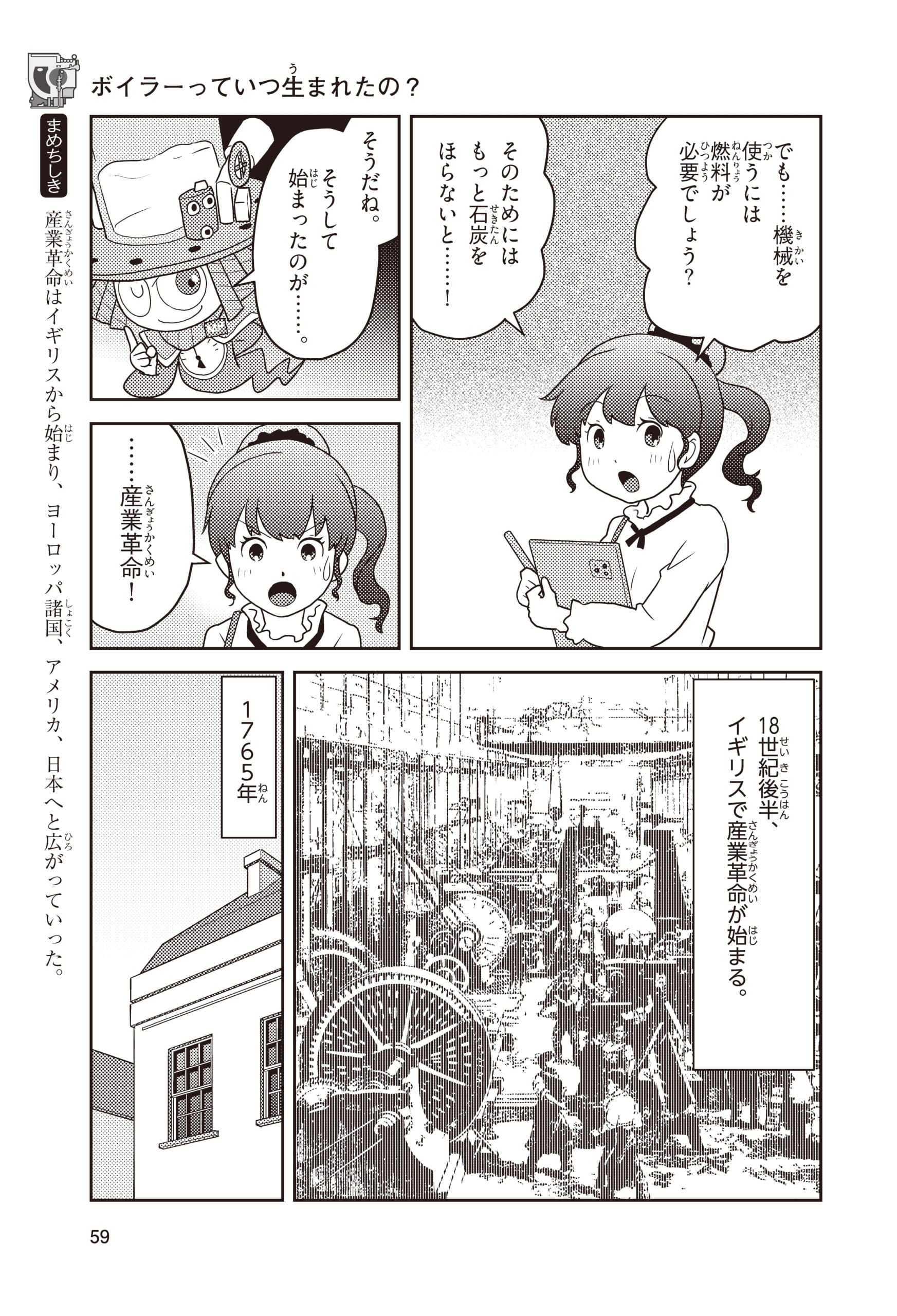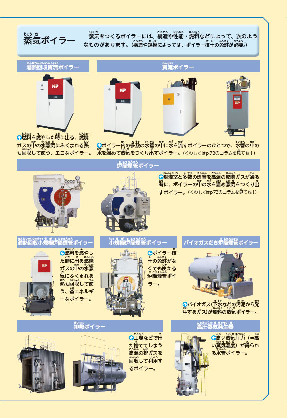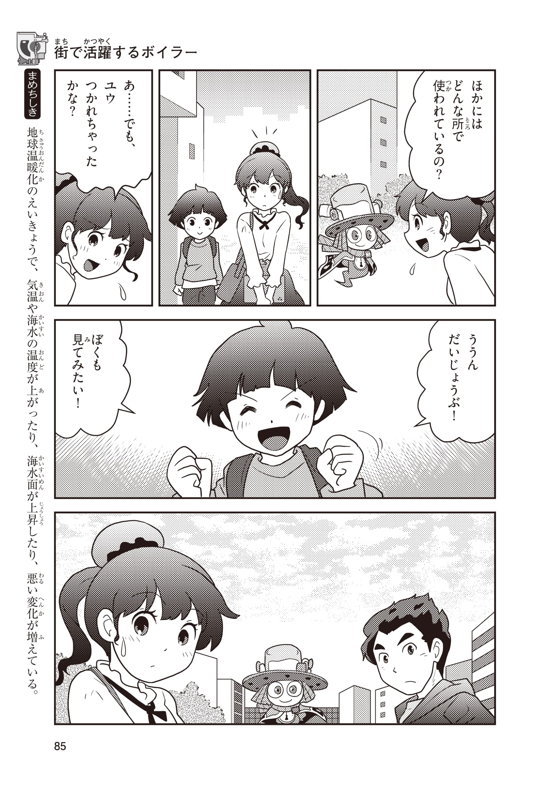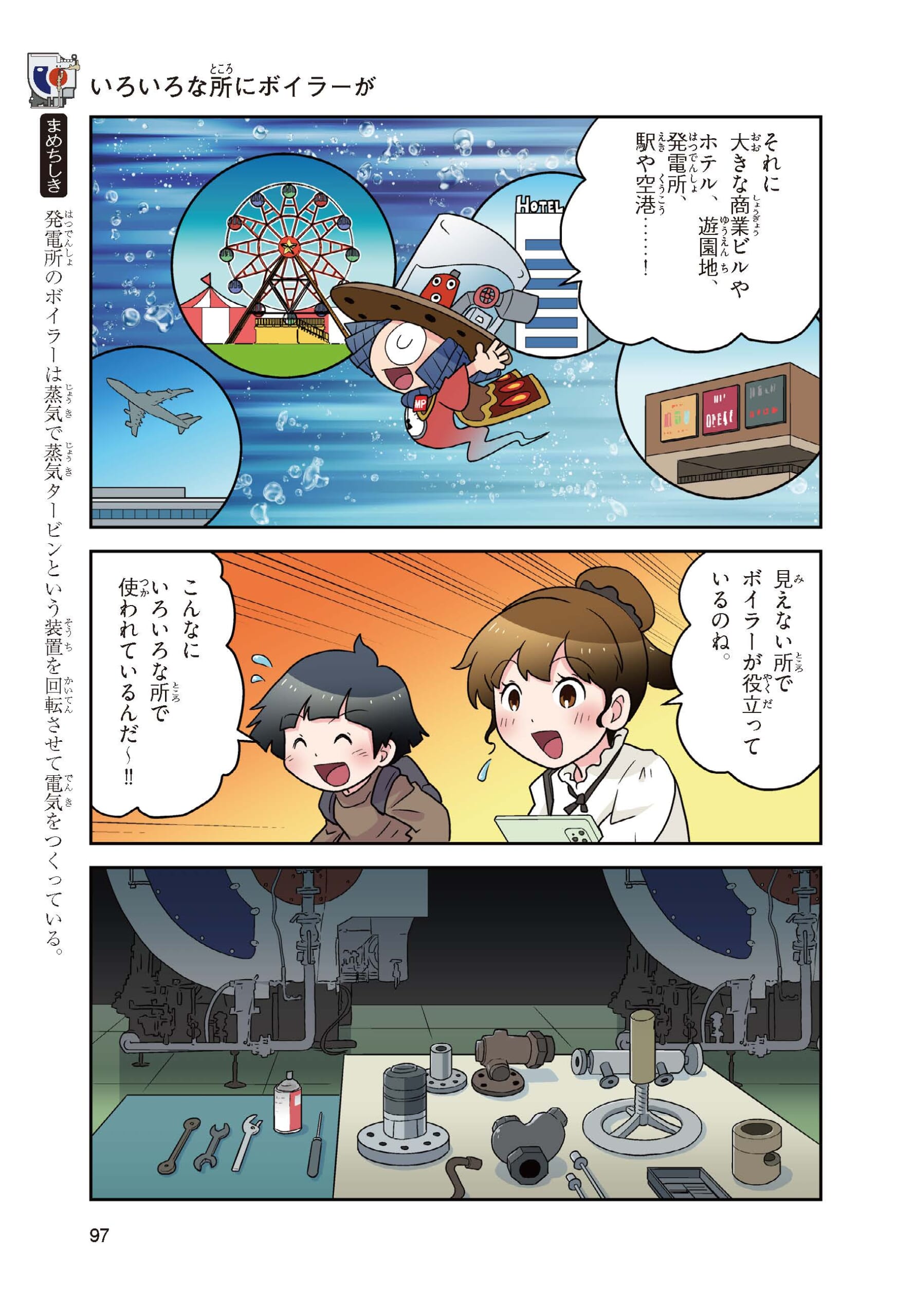 お湯をたくさんわかしたり、蒸気をつくったりするのがボイラーという機械なんだ。なかなか見ることはできないけど、どんな所で、どんなふうに使われているのかな? じつは、みんなの身近な所で使われているんだよ。いったいどこでどんなことに使われているんだろう……。ボイラーっていつから使われだしたんだろう? この本を読めば、ボイラーのことがとてもよくわかるよ!
