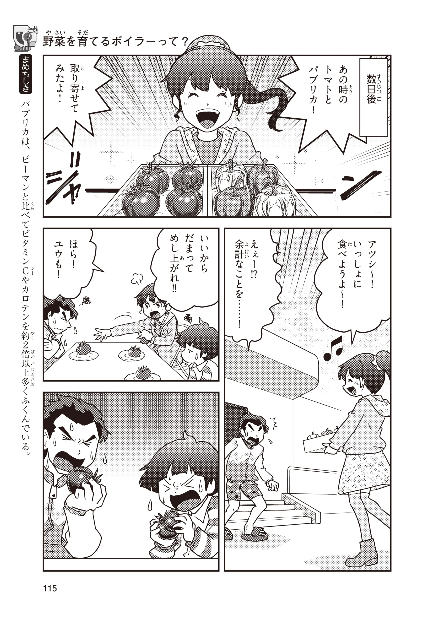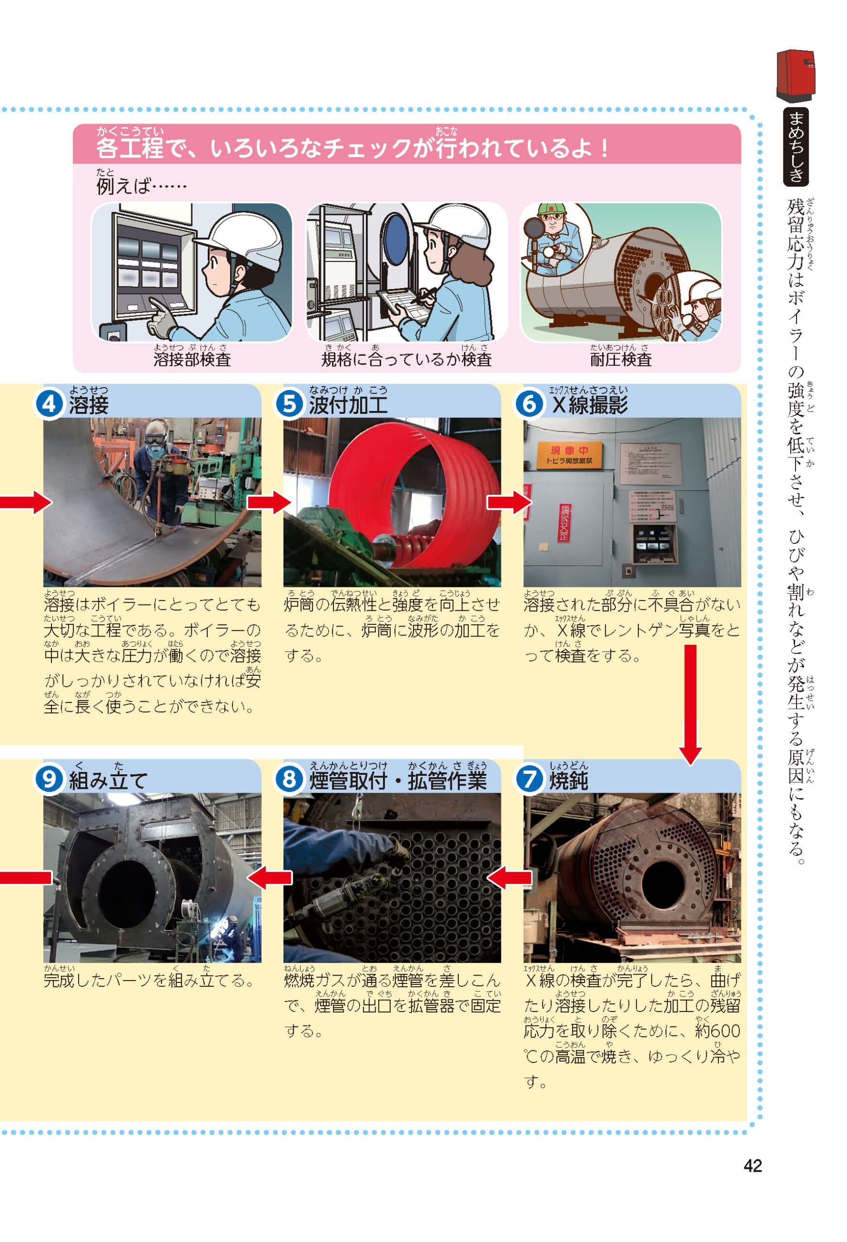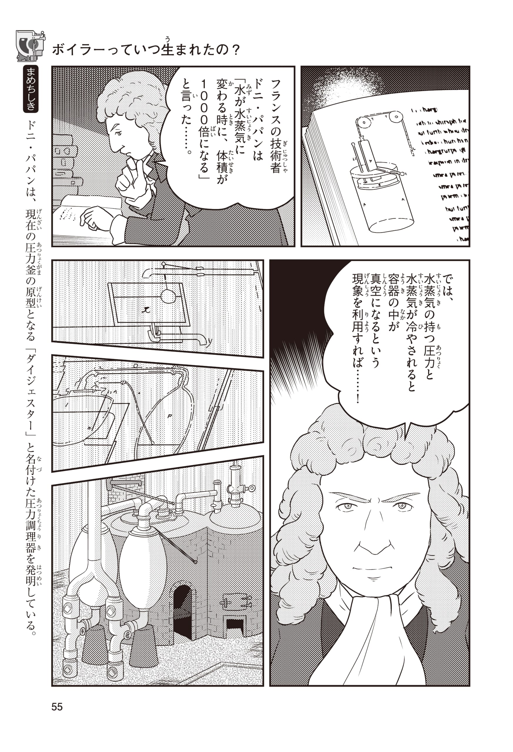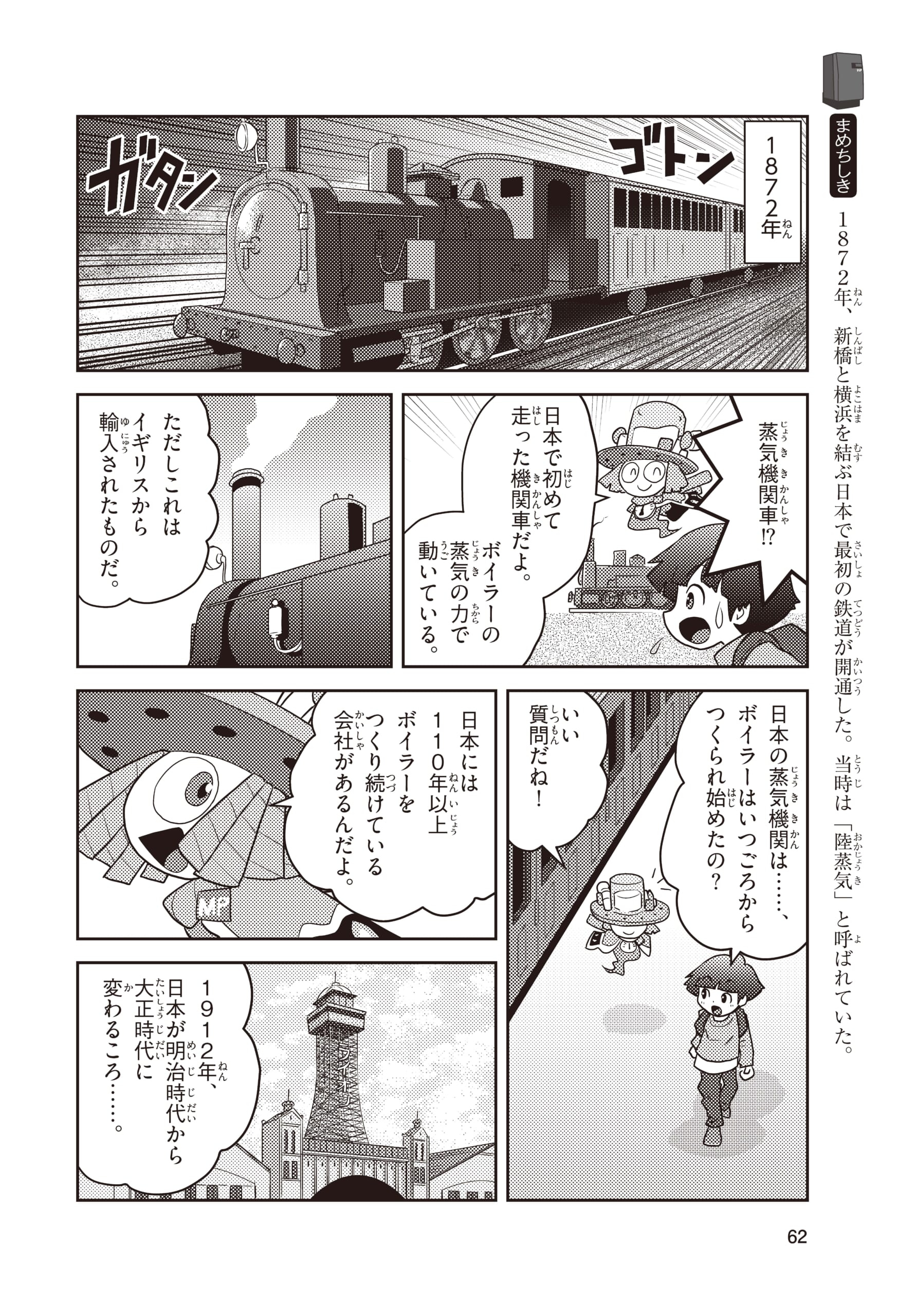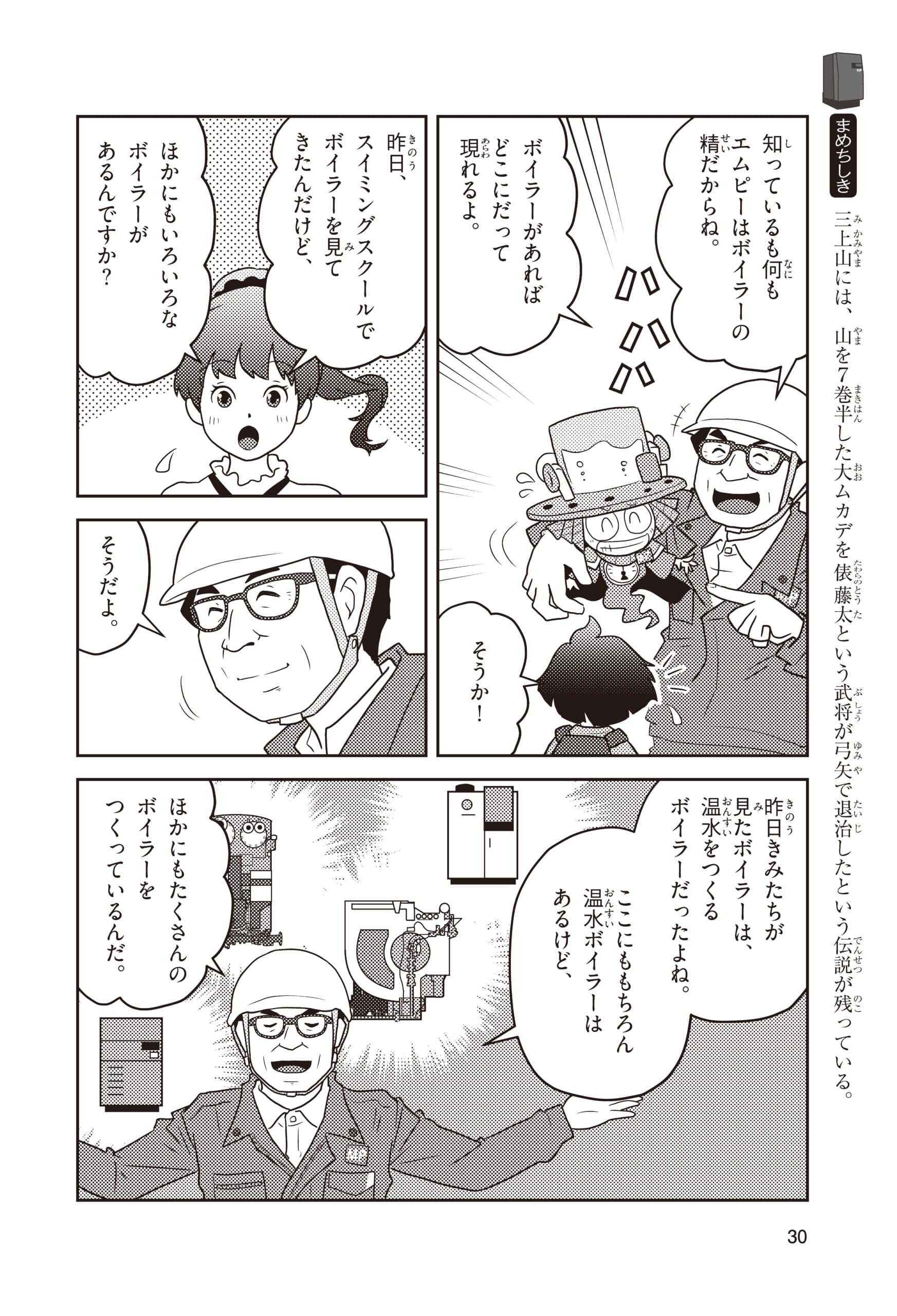 お湯をたくさんわかしたり、蒸気をつくったりするのがボイラーという機械なんだ。なかなか見ることはできないけど、どんな所で、どんなふうに使われているのかな? じつは、みんなの身近な所で使われているんだよ。いったいどこでどんなことに使われているんだろう……。ボイラーっていつから使われだしたんだろう? この本を読めば、ボイラーのことがとてもよくわかるよ!