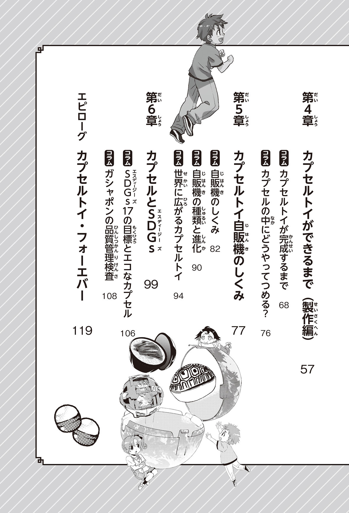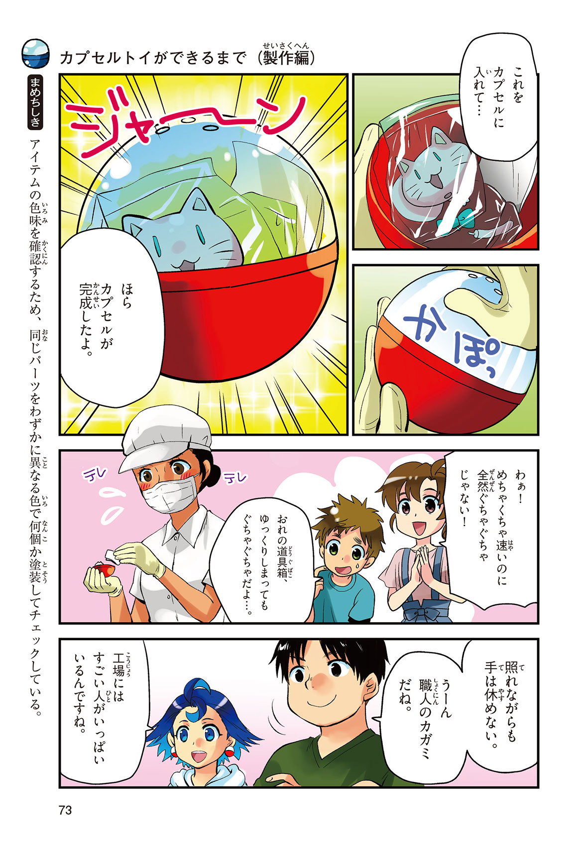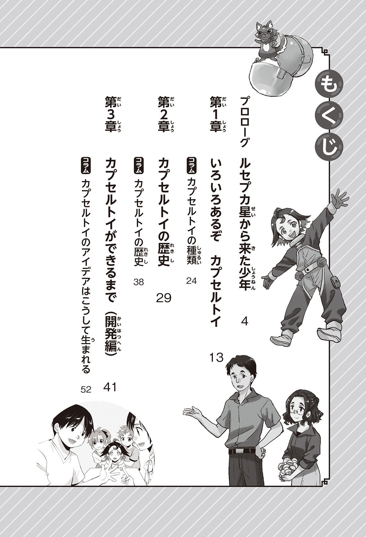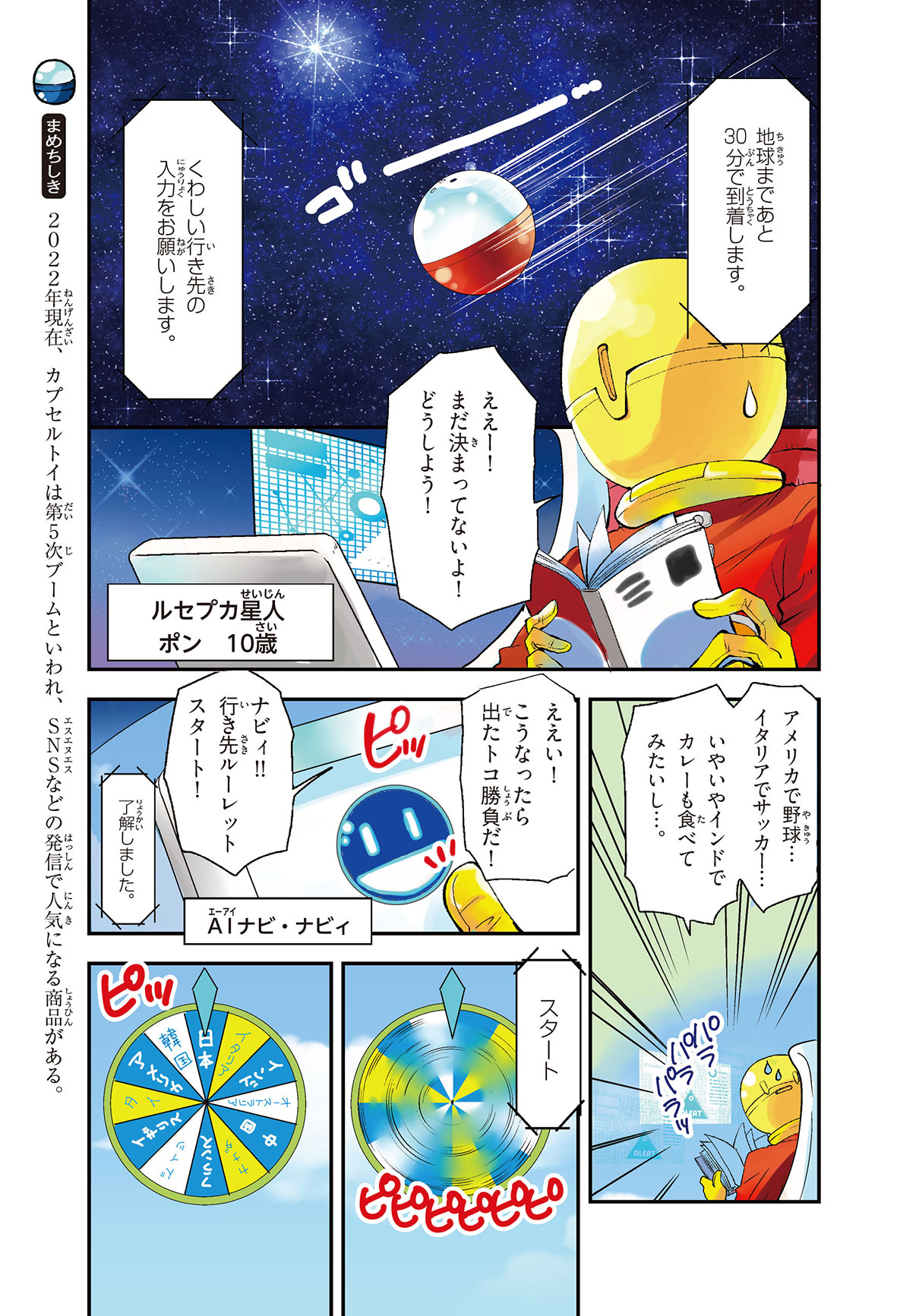 子どもから大人まで人気のカプセルトイ。アニメキャラのマスコットや雑貨など、いろいろなアイテムがあるよね。そんなカプセルトイがどんなふうに作られているか、双子の小学生キズナ・アスカと、地球にやってきた宇宙人ポンといっしょに見ていこう。最新のカプセルトイの自販機や海外での展開、環境に配慮した取り組みなど、カプセルトイのことが全部わかるよ!