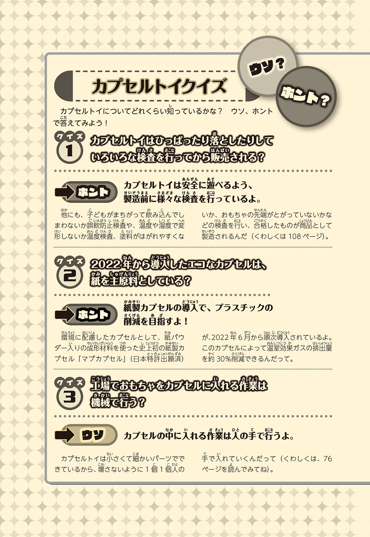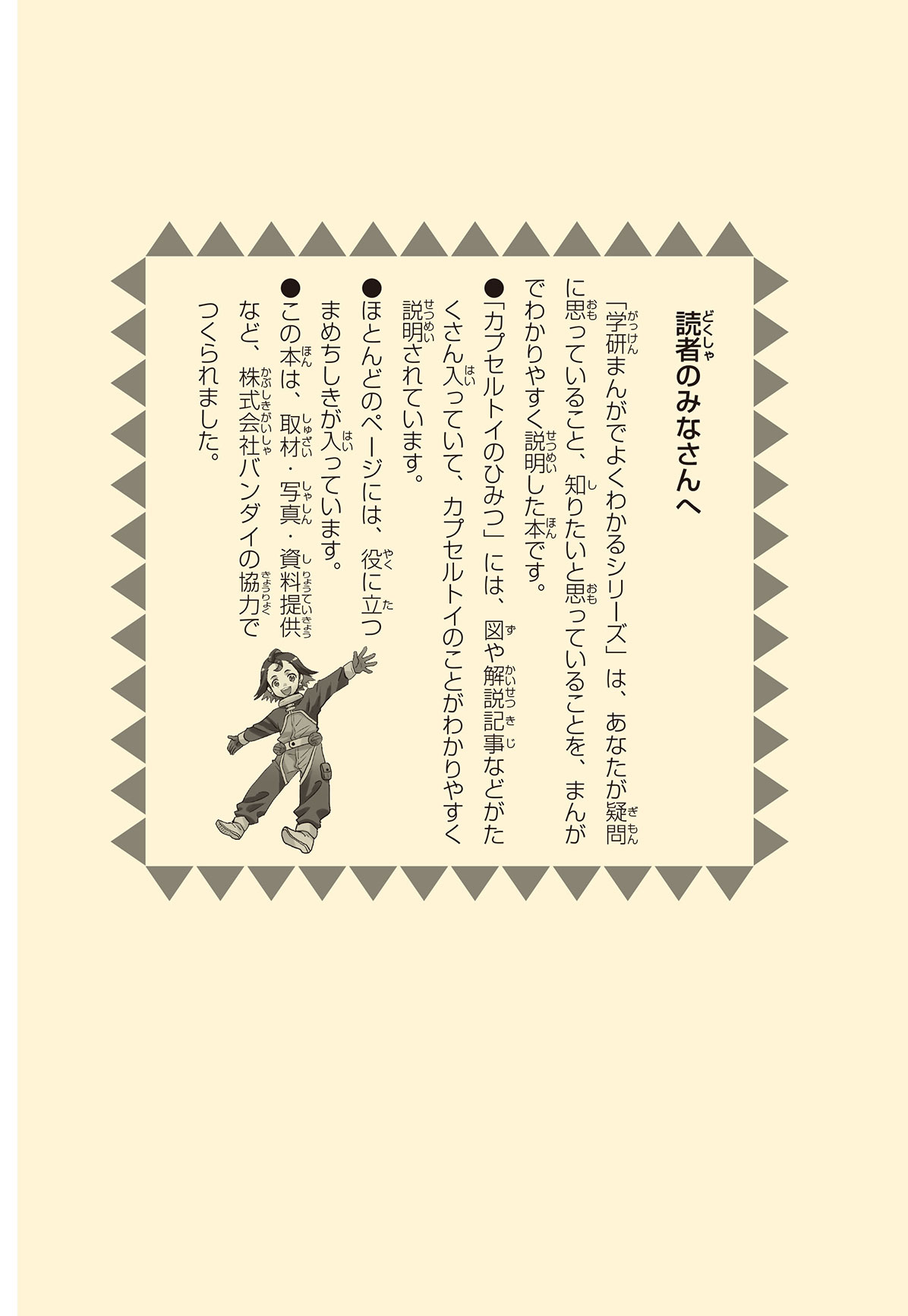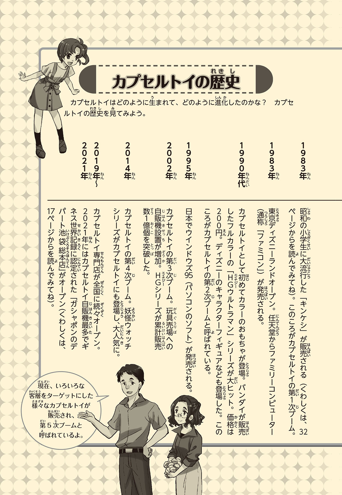 子どもから大人まで人気のカプセルトイ。アニメキャラのマスコットや雑貨など、いろいろなアイテムがあるよね。そんなカプセルトイがどんなふうに作られているか、双子の小学生キズナ・アスカと、地球にやってきた宇宙人ポンといっしょに見ていこう。最新のカプセルトイの自販機や海外での展開、環境に配慮した取り組みなど、カプセルトイのことが全部わかるよ!