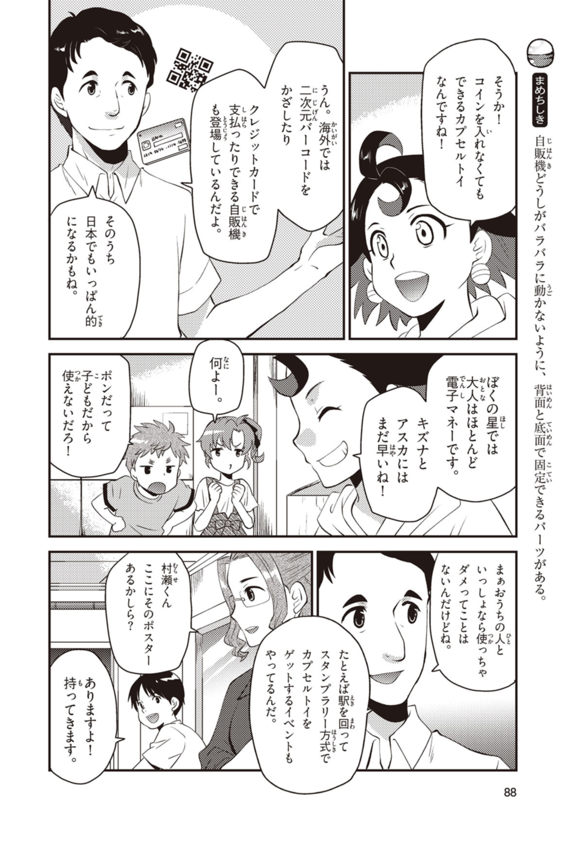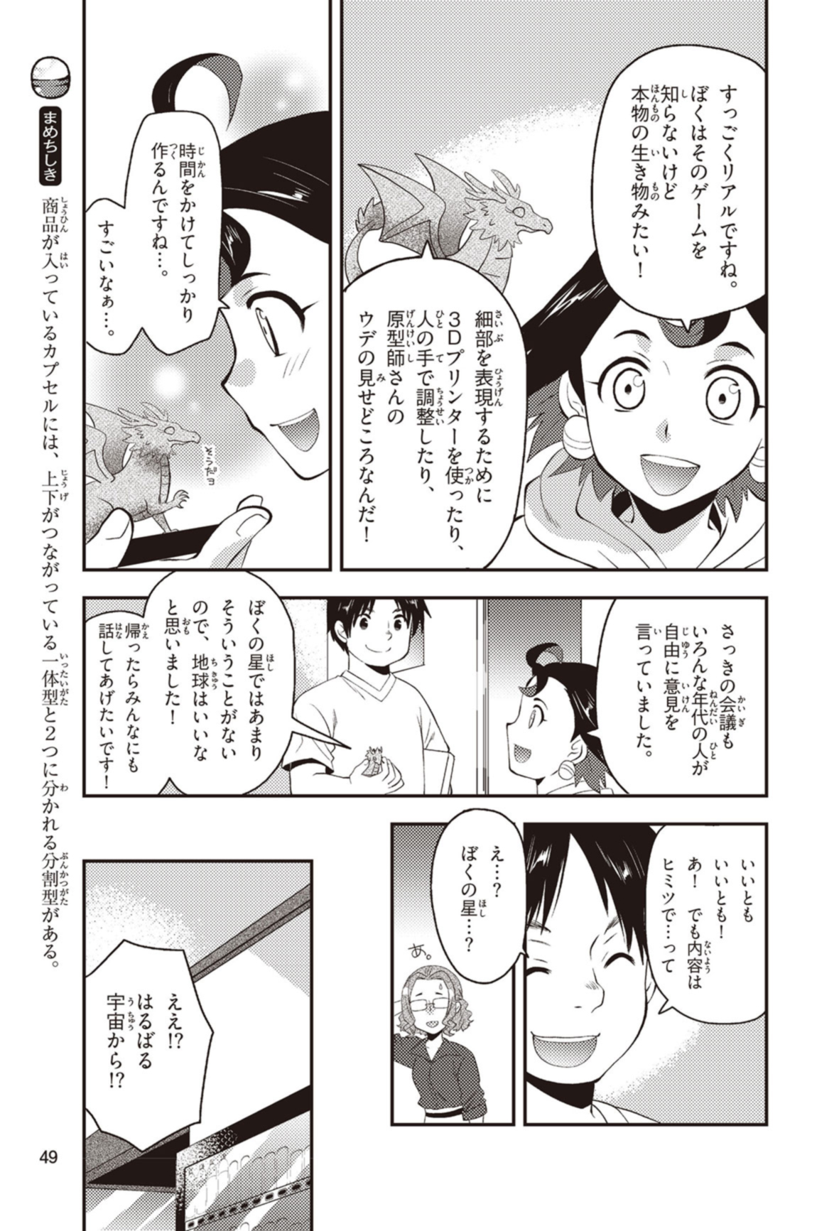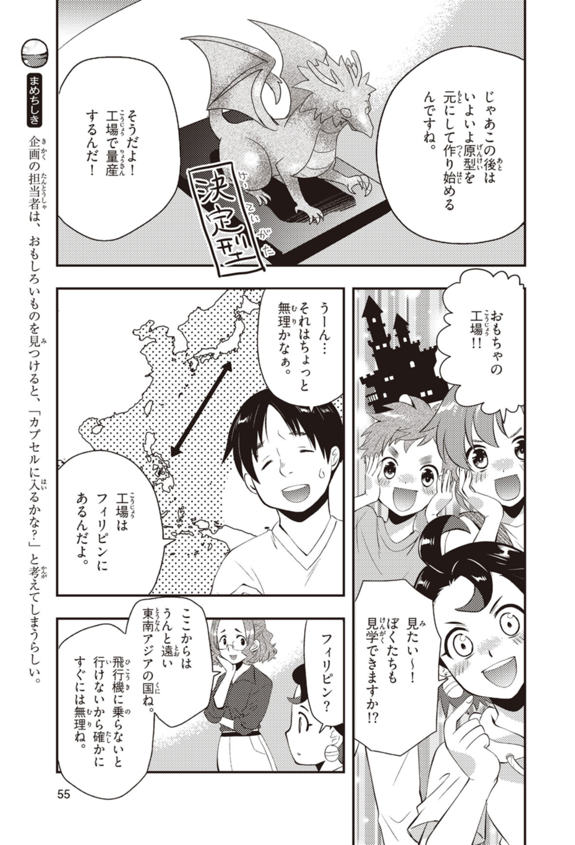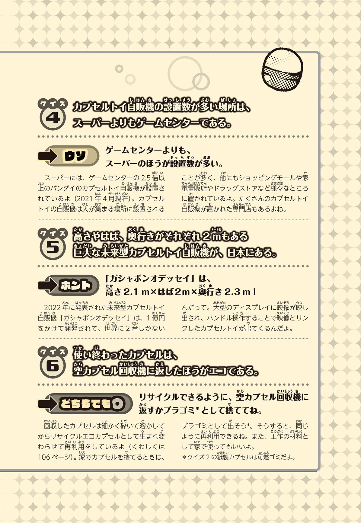 子どもから大人まで人気のカプセルトイ。アニメキャラのマスコットや雑貨など、いろいろなアイテムがあるよね。そんなカプセルトイがどんなふうに作られているか、双子の小学生キズナ・アスカと、地球にやってきた宇宙人ポンといっしょに見ていこう。最新のカプセルトイの自販機や海外での展開、環境に配慮した取り組みなど、カプセルトイのことが全部わかるよ!