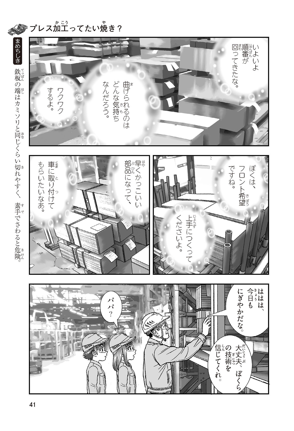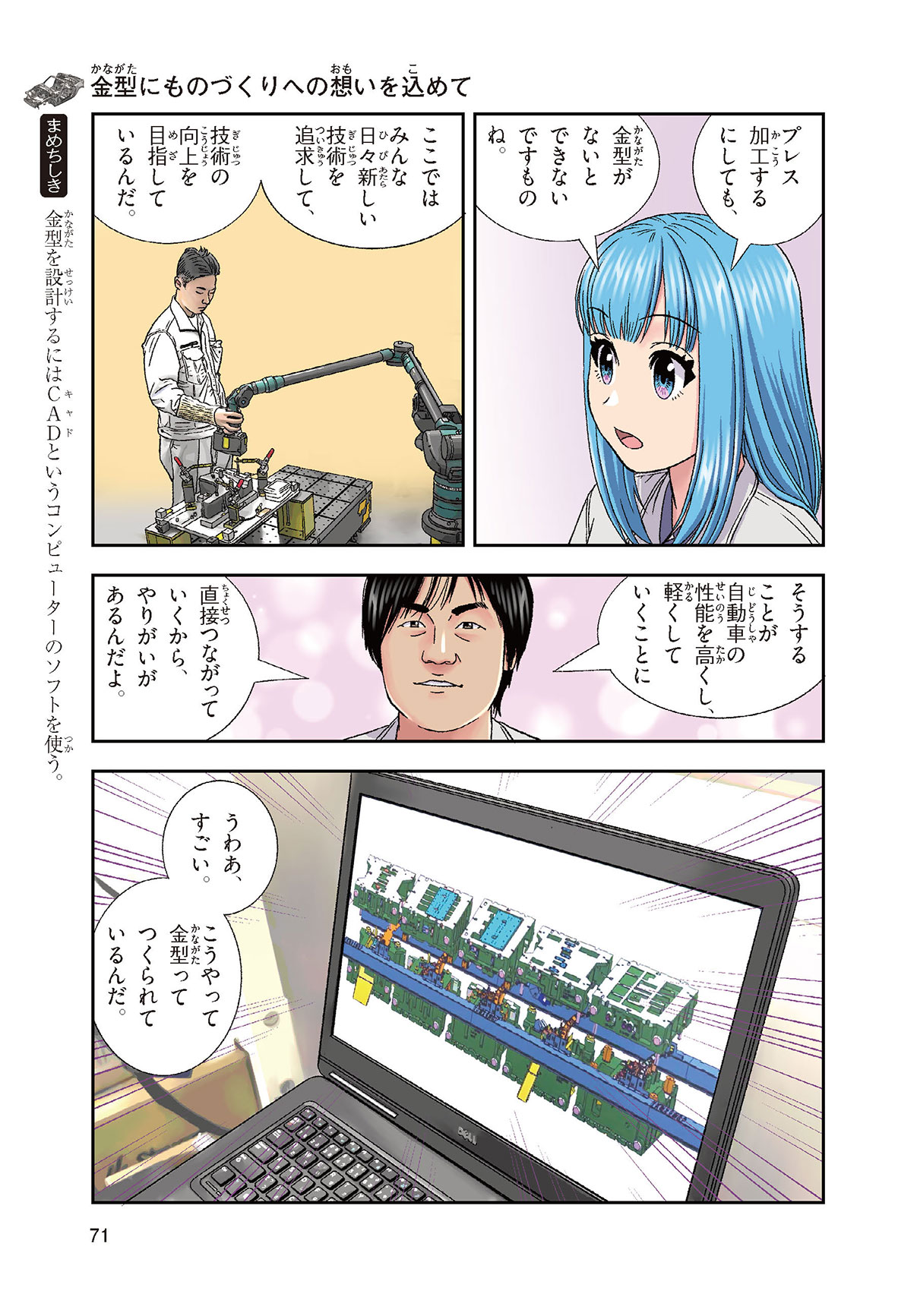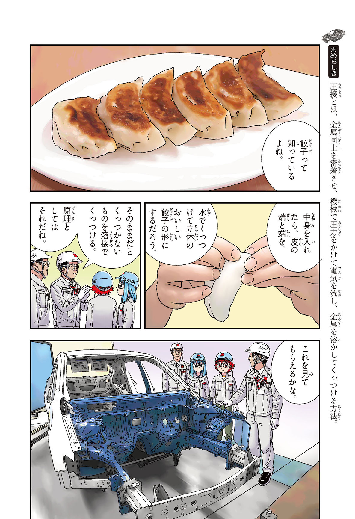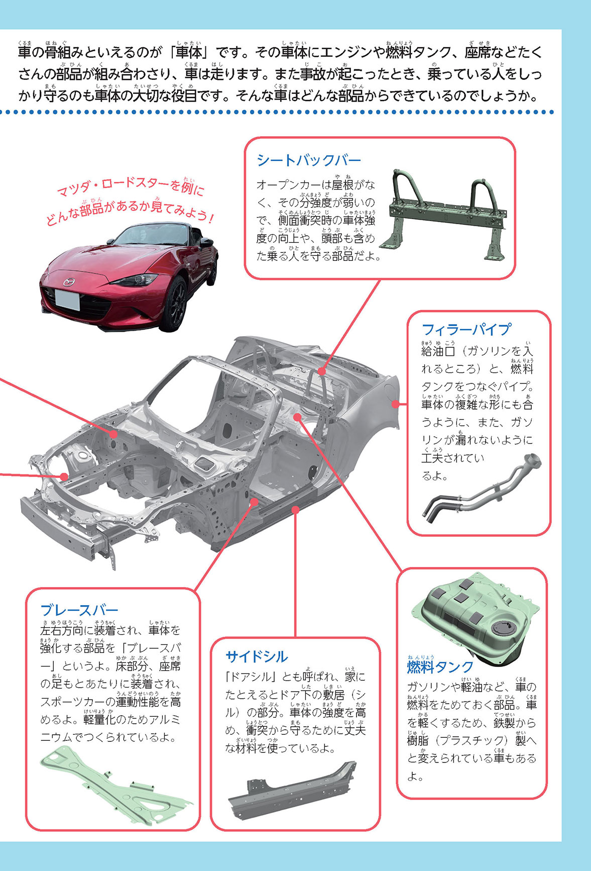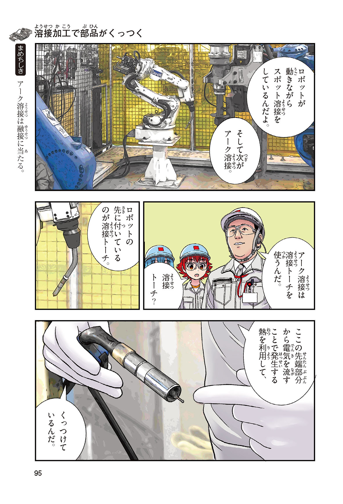 みんなは車に乗ったことはあるよね。かっこ良く走る車、力強く進む車、どの車にも魅力がいっぱい。では、その車の中の部品は見たことがあるかな。どんな部品があって、どんな風につくられているのかな。そこにはものづくりのプロの技があるんだよ。中でもプレス加工と溶接は部品づくりの要になるんだ。この本を読めば、そのひみつが、とてもよくわかるよ!
