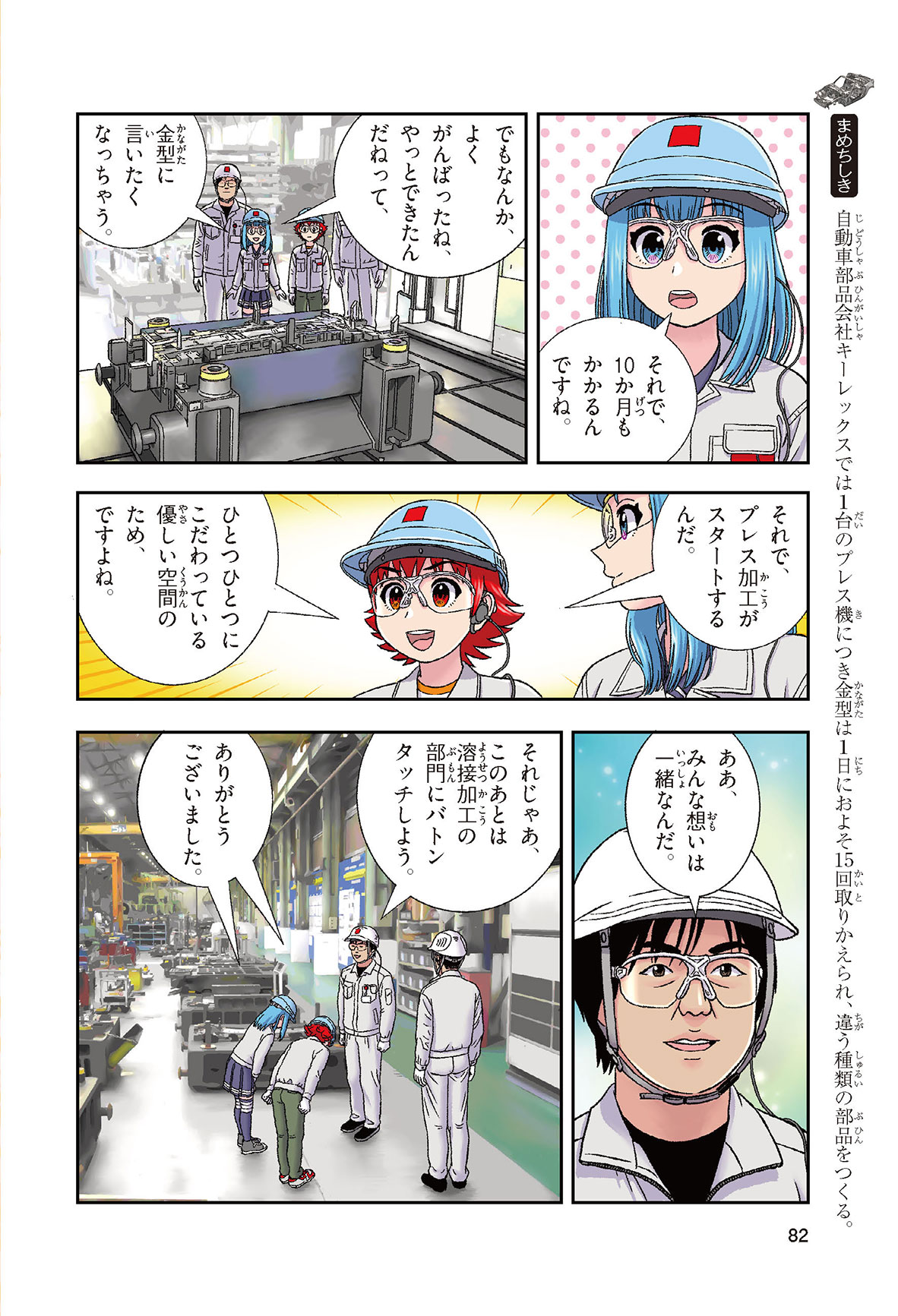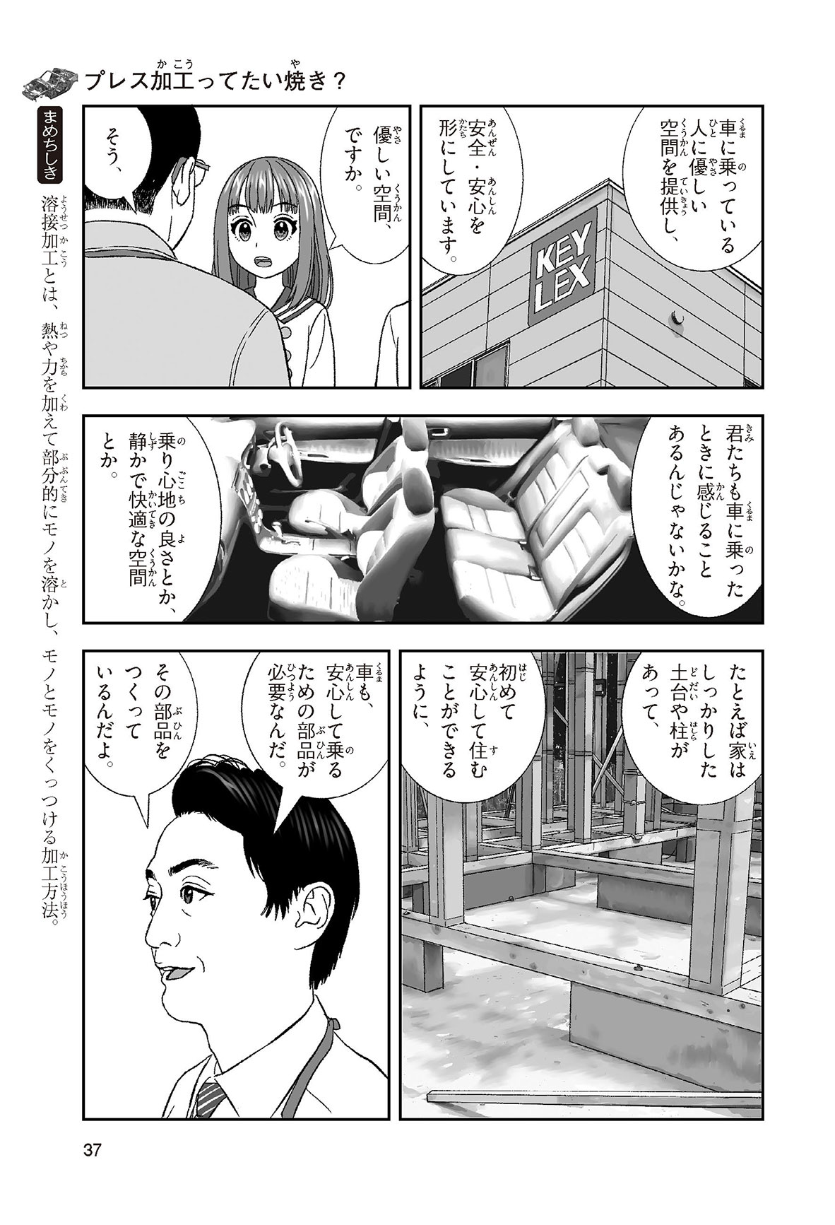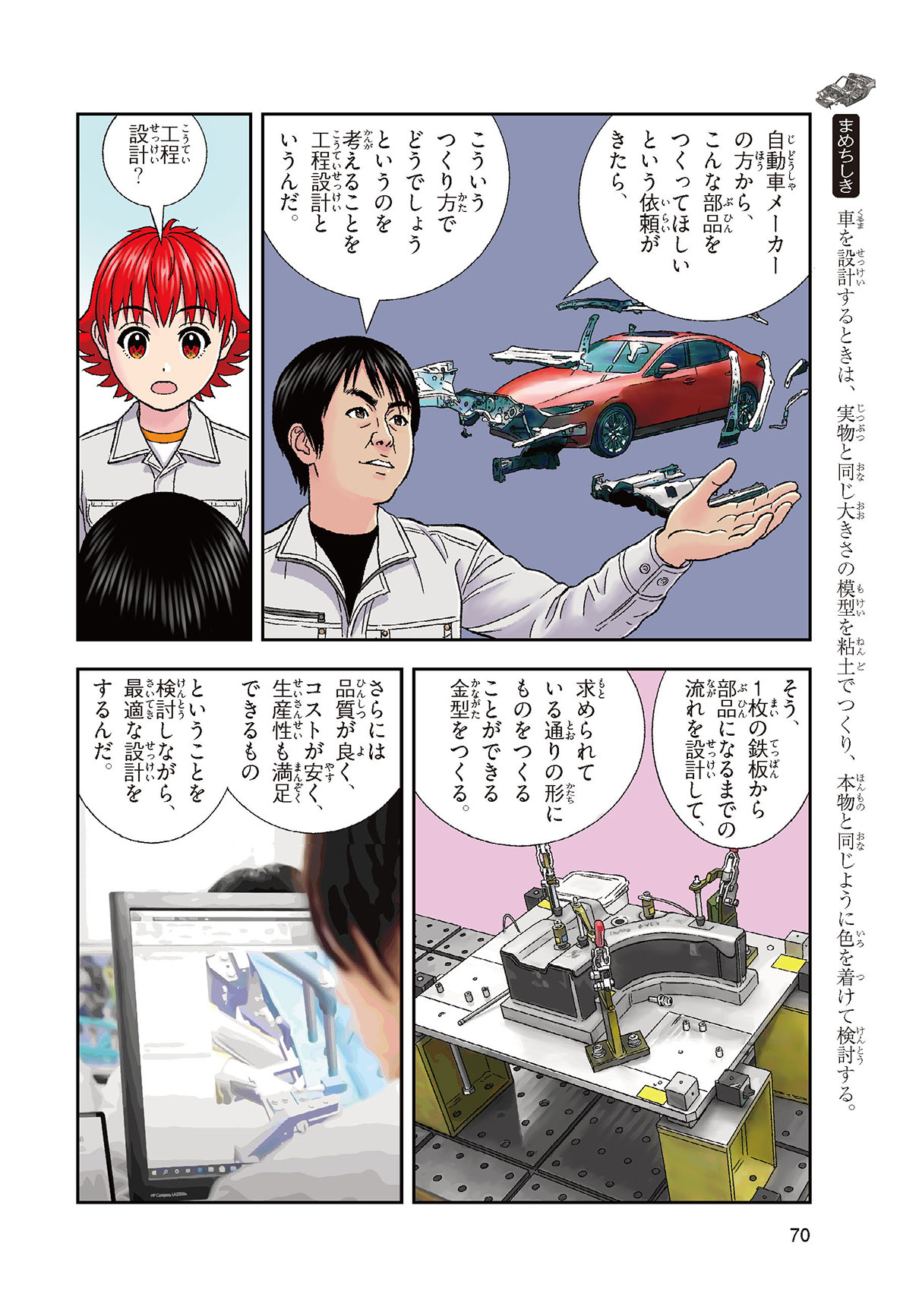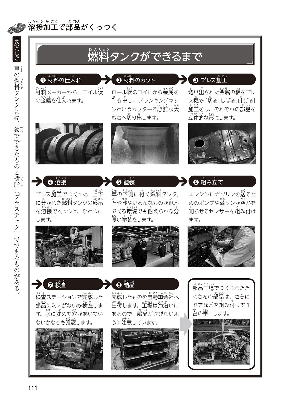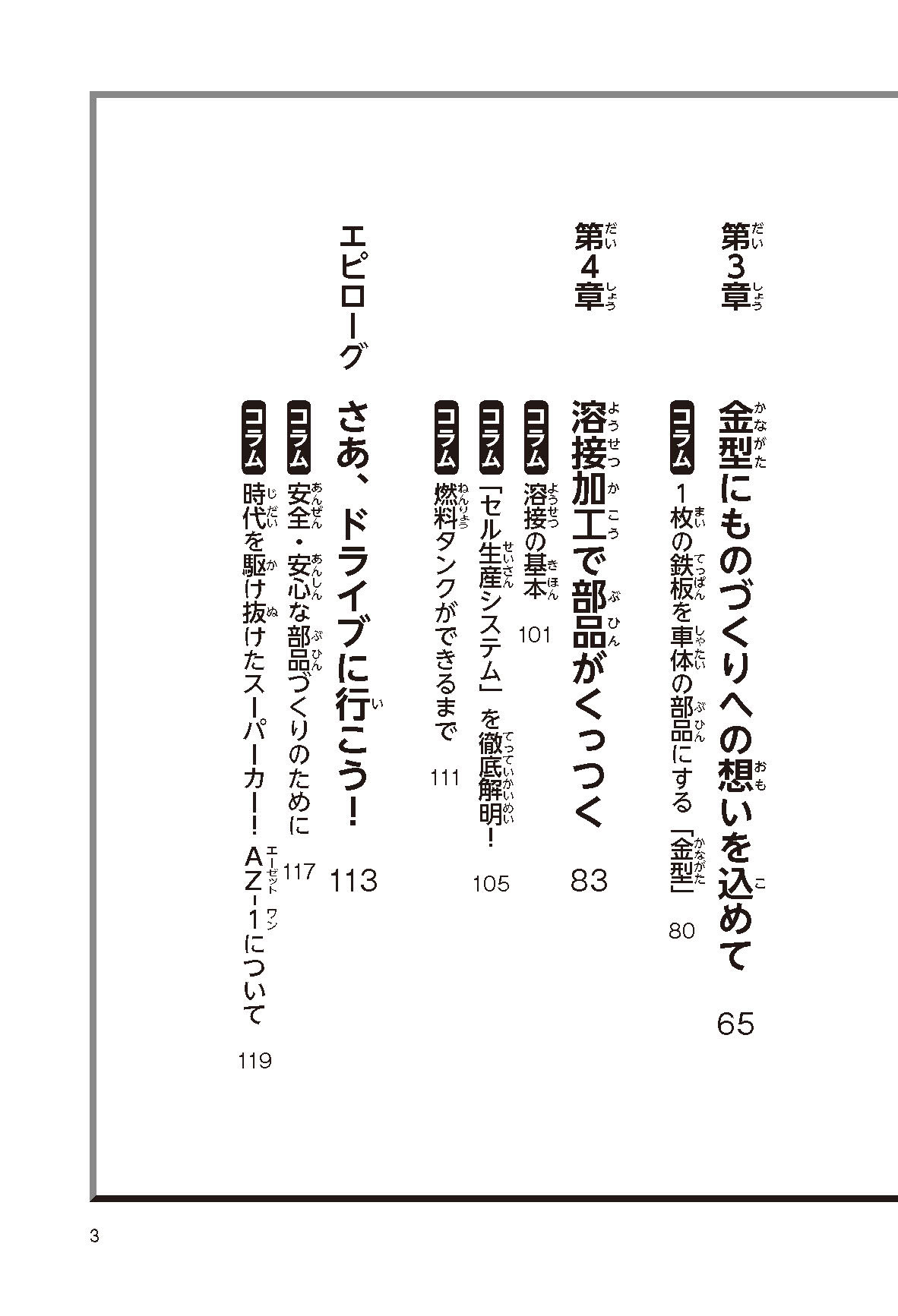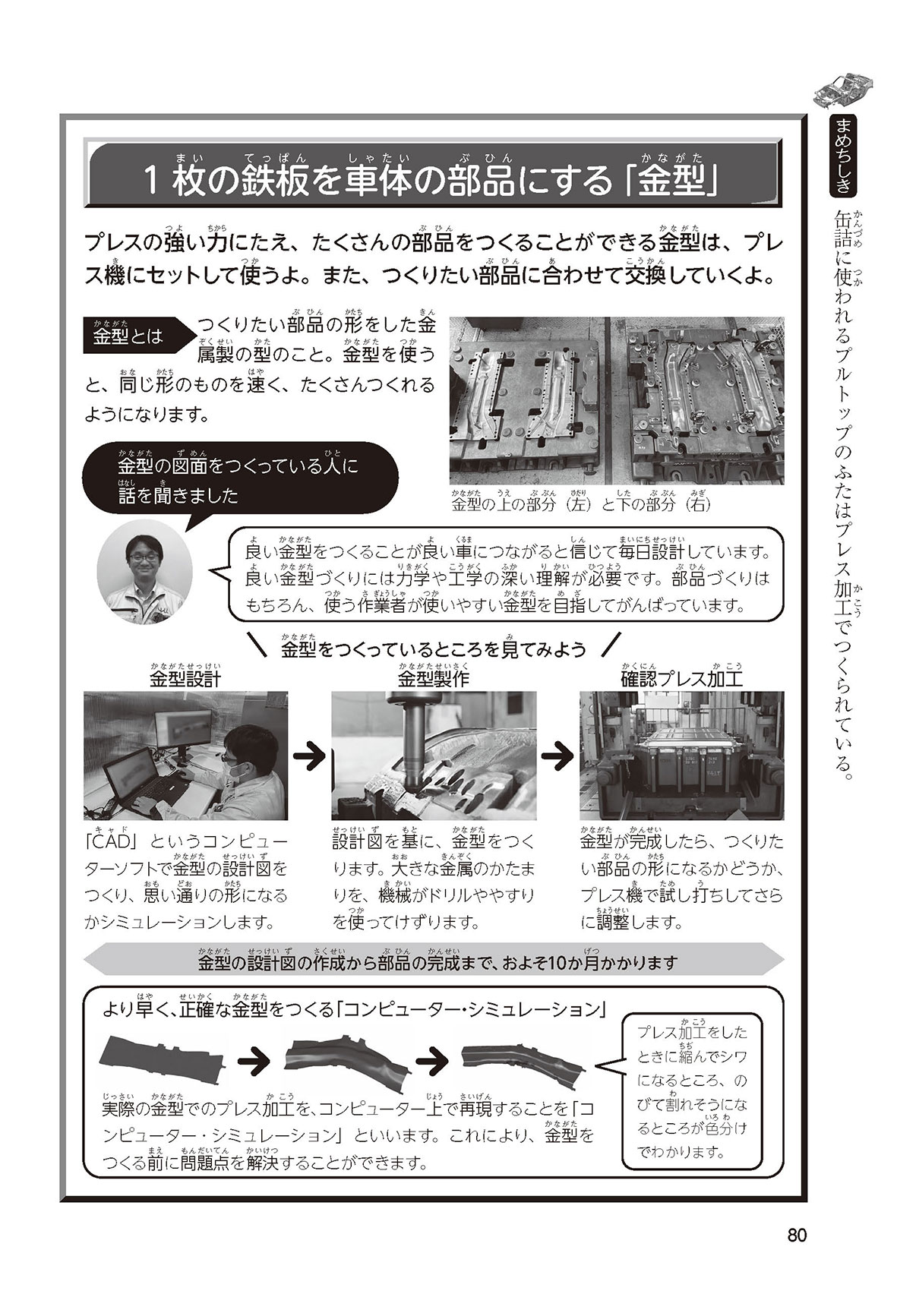 みんなは車に乗ったことはあるよね。かっこ良く走る車、力強く進む車、どの車にも魅力がいっぱい。では、その車の中の部品は見たことがあるかな。どんな部品があって、どんな風につくられているのかな。そこにはものづくりのプロの技があるんだよ。中でもプレス加工と溶接は部品づくりの要になるんだ。この本を読めば、そのひみつが、とてもよくわかるよ!
