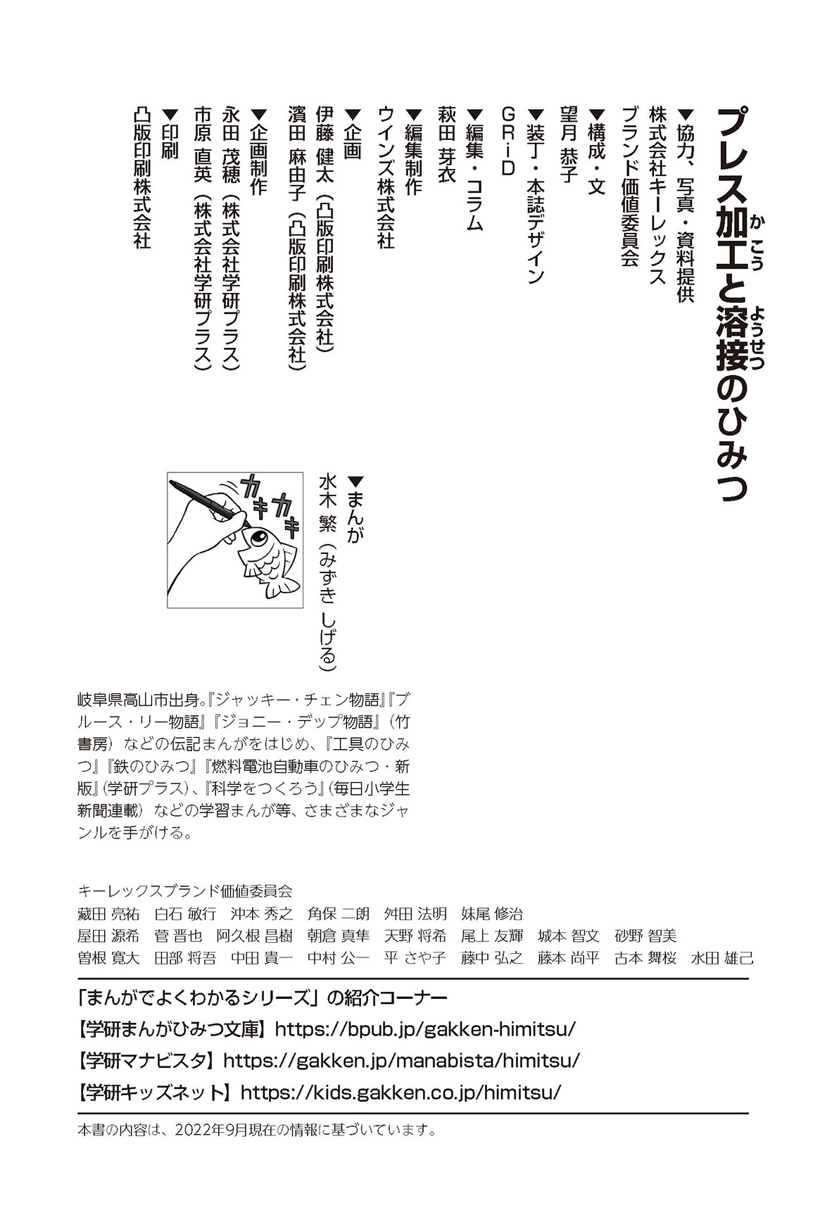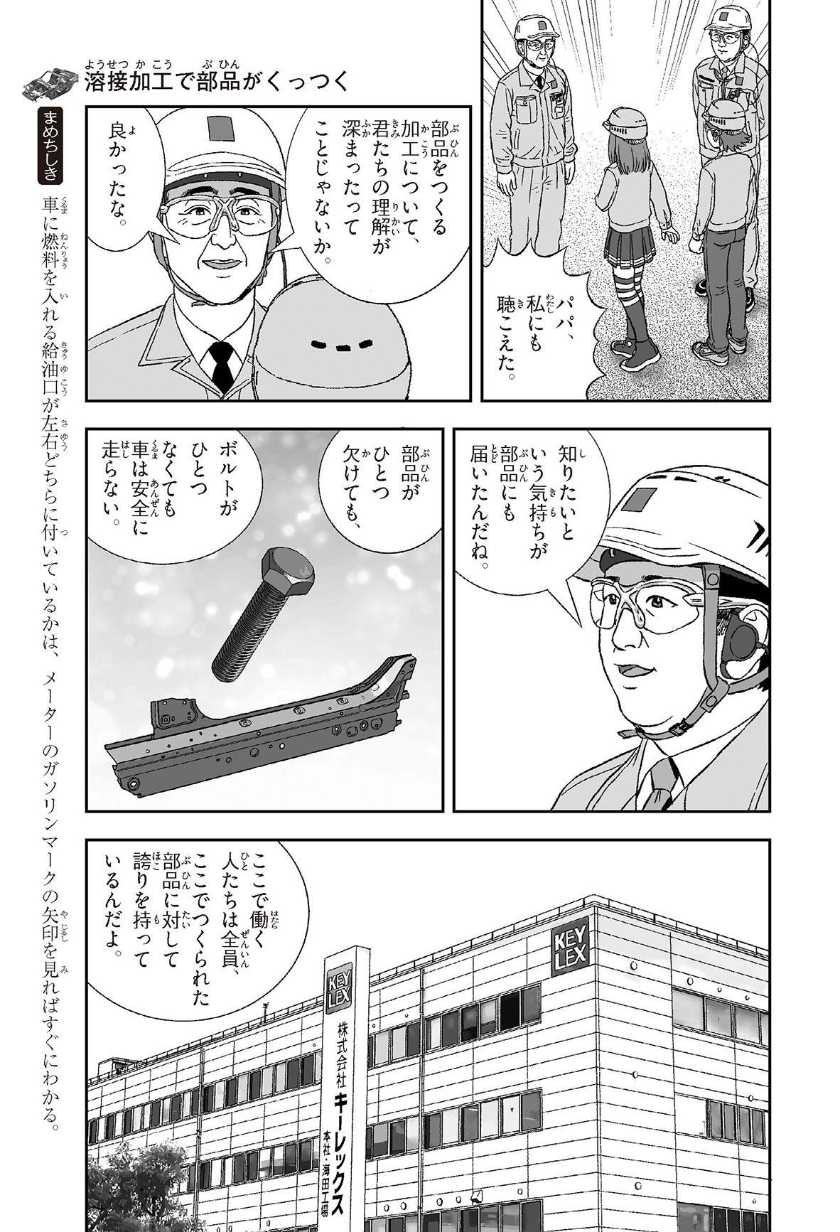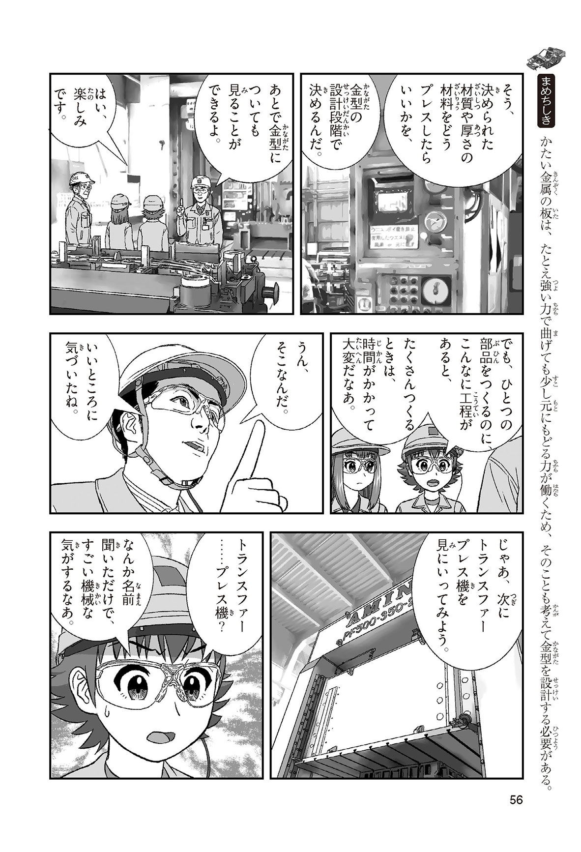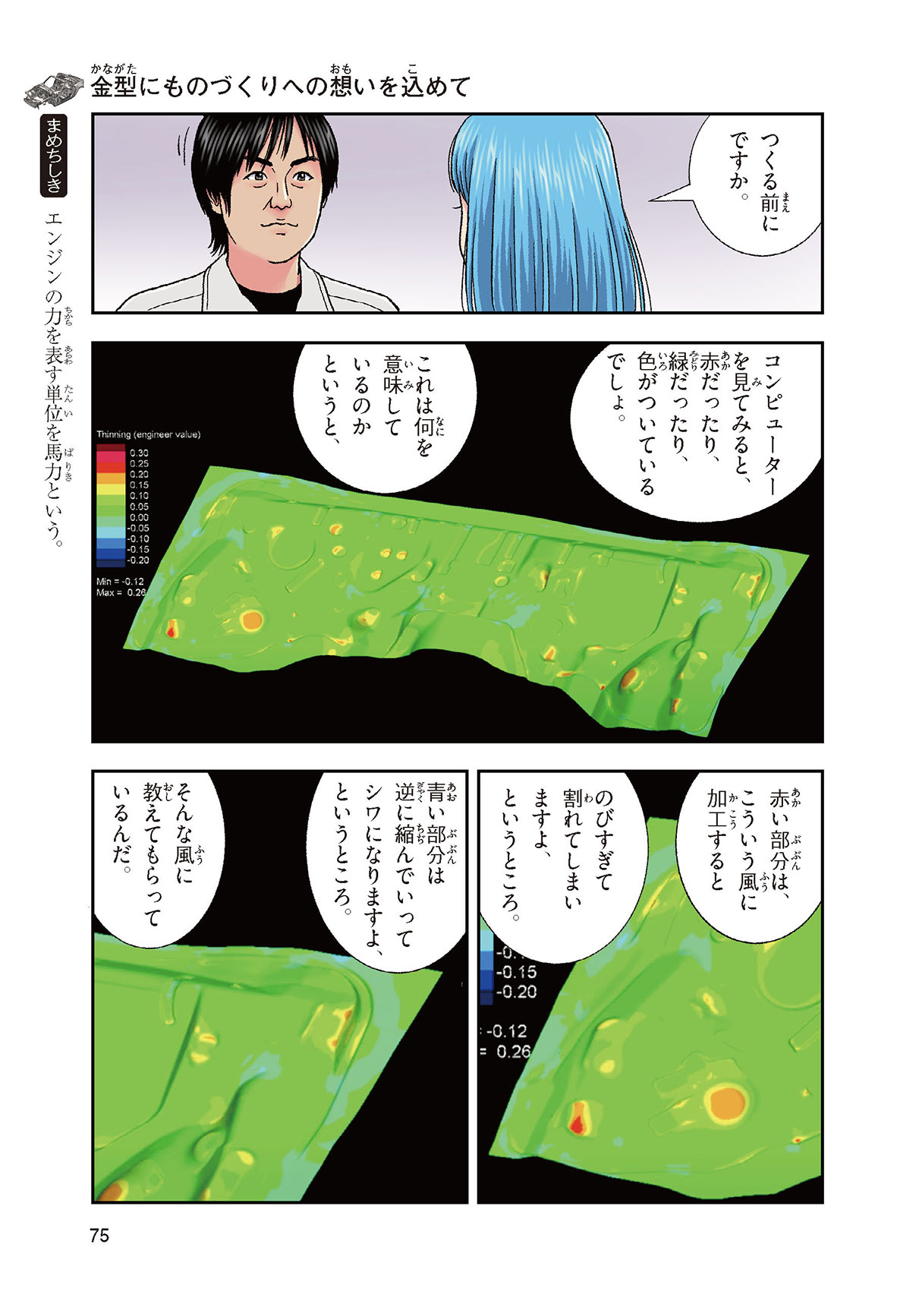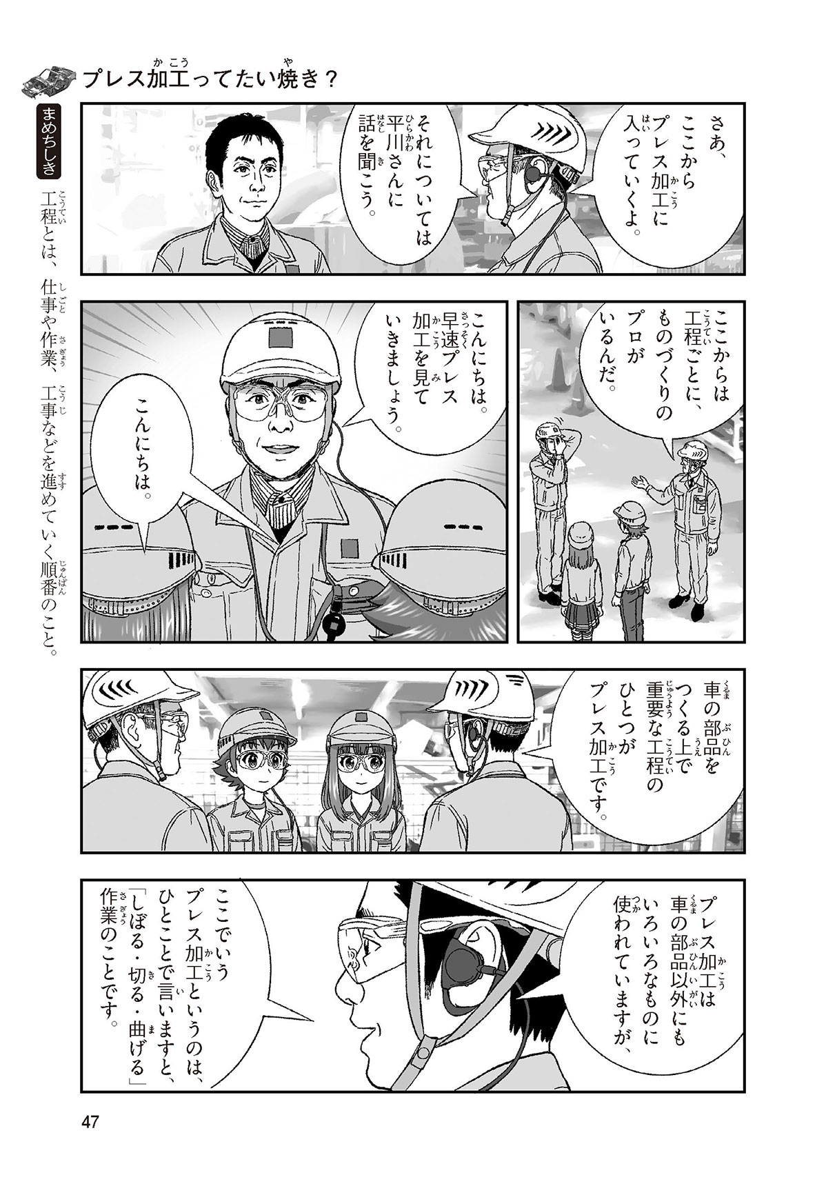 みんなは車に乗ったことはあるよね。かっこ良く走る車、力強く進む車、どの車にも魅力がいっぱい。では、その車の中の部品は見たことがあるかな。どんな部品があって、どんな風につくられているのかな。そこにはものづくりのプロの技があるんだよ。中でもプレス加工と溶接は部品づくりの要になるんだ。この本を読めば、そのひみつが、とてもよくわかるよ!