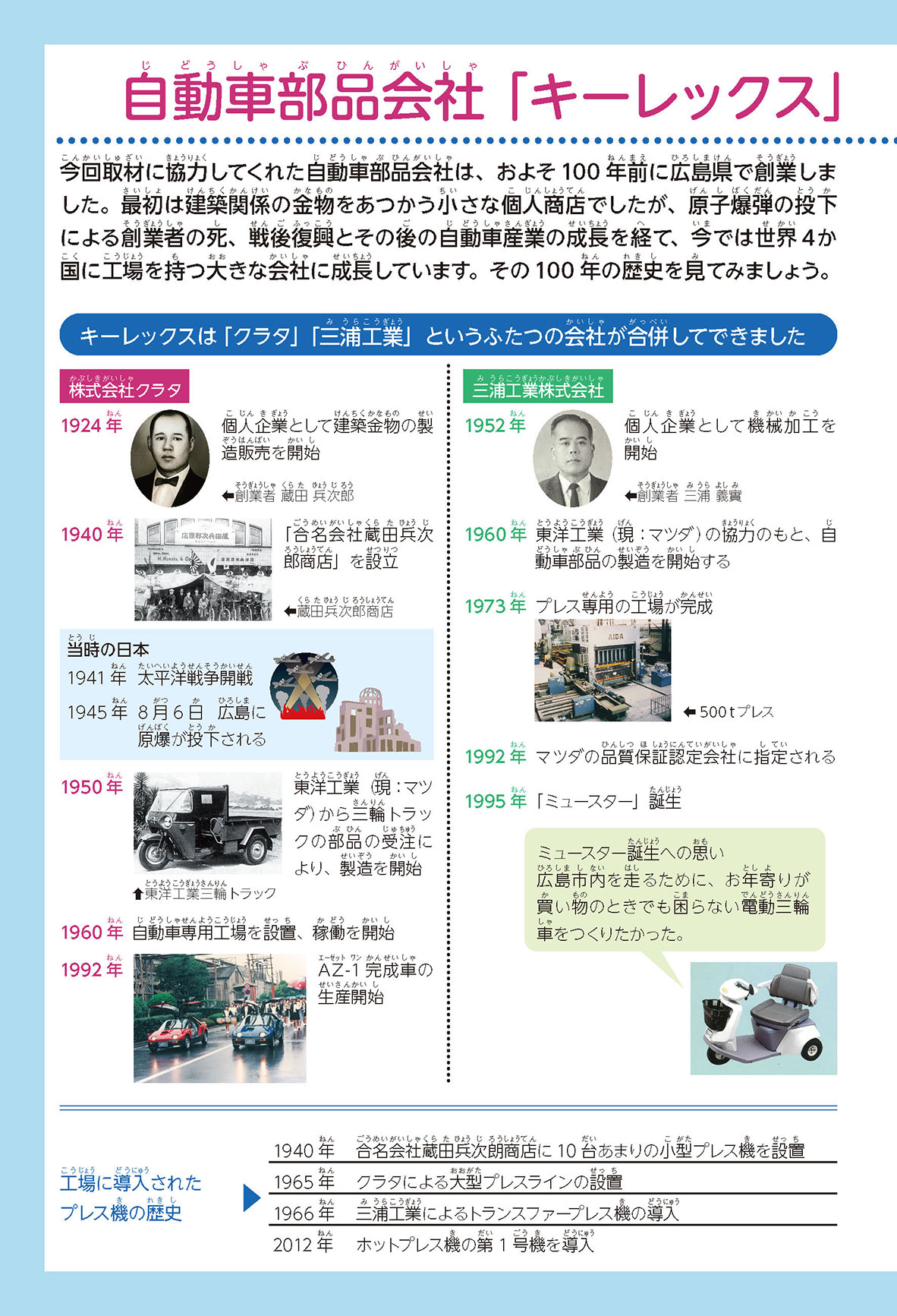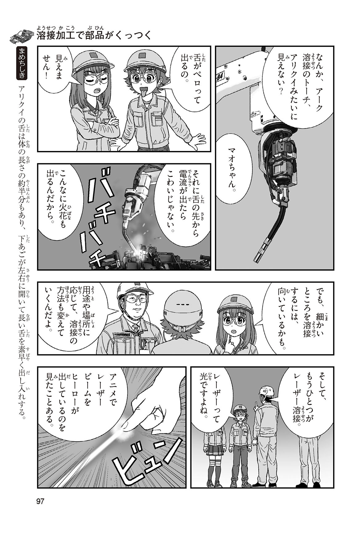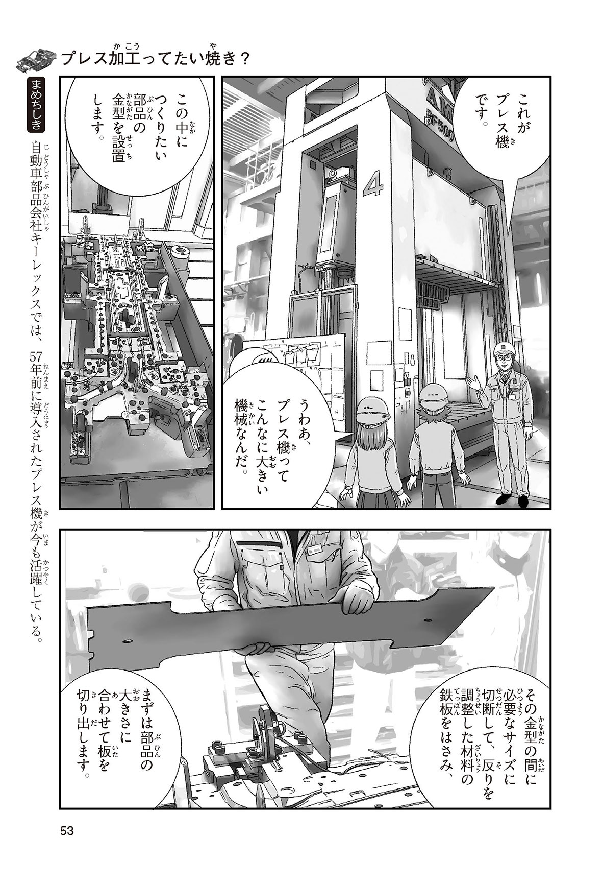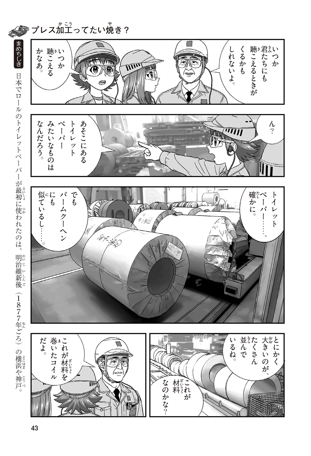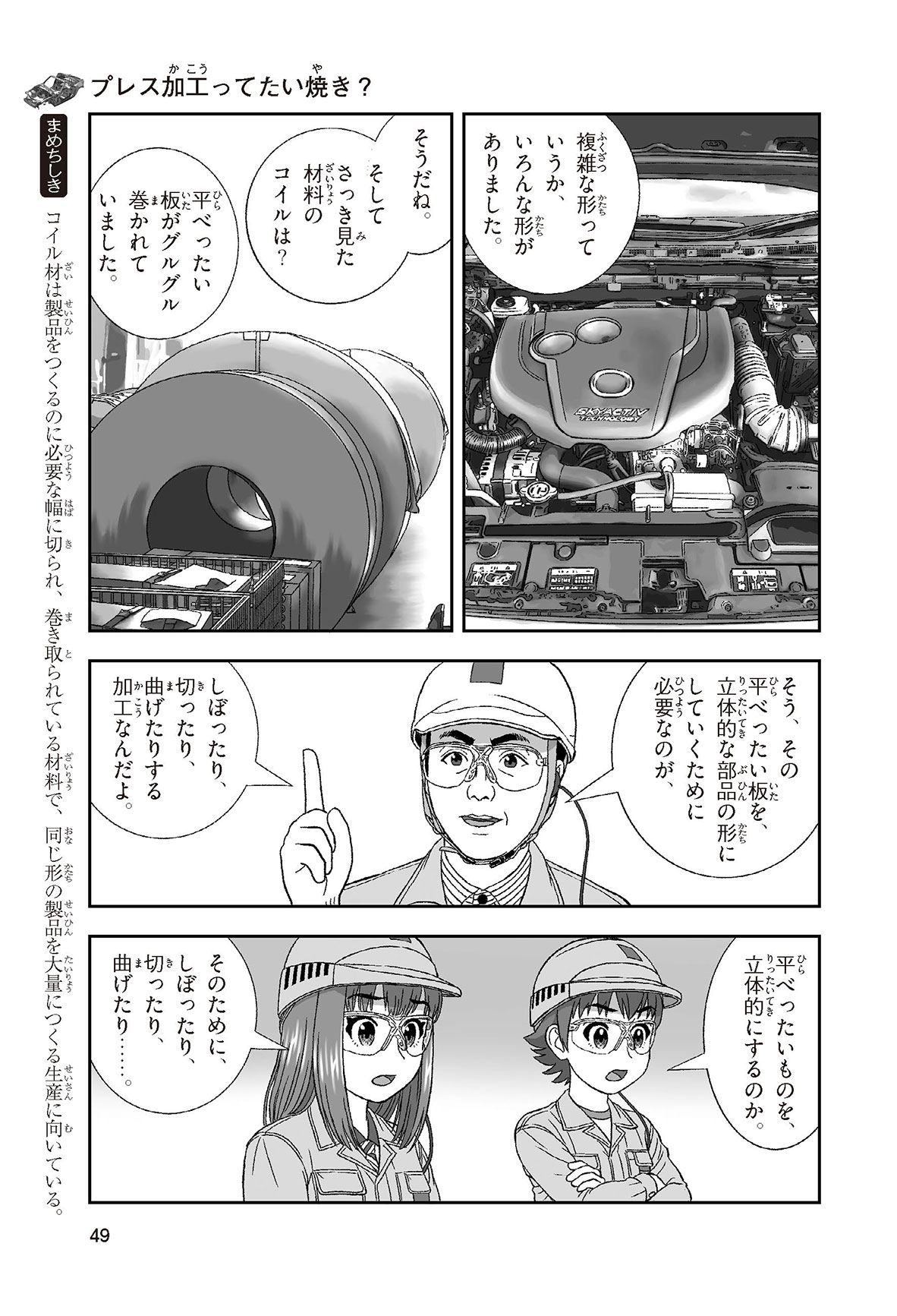 みんなは車に乗ったことはあるよね。かっこ良く走る車、力強く進む車、どの車にも魅力がいっぱい。では、その車の中の部品は見たことがあるかな。どんな部品があって、どんな風につくられているのかな。そこにはものづくりのプロの技があるんだよ。中でもプレス加工と溶接は部品づくりの要になるんだ。この本を読めば、そのひみつが、とてもよくわかるよ!