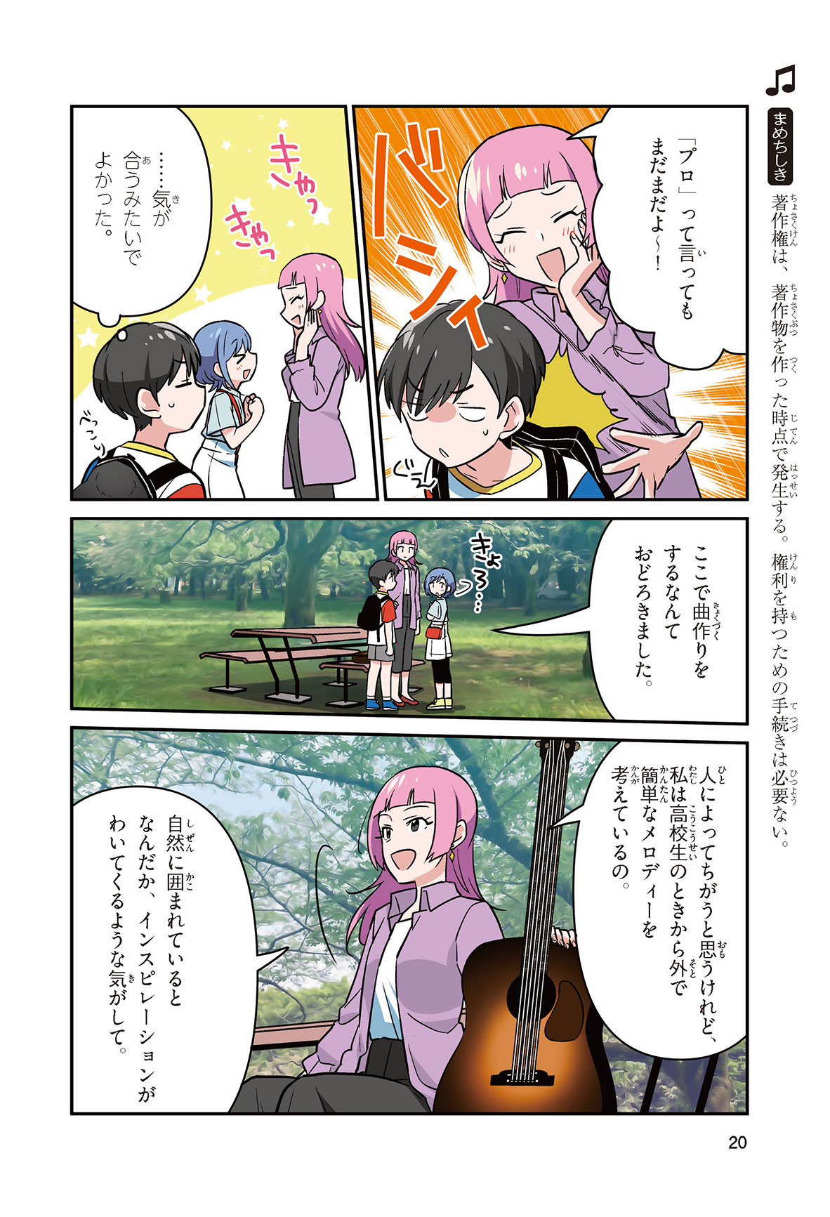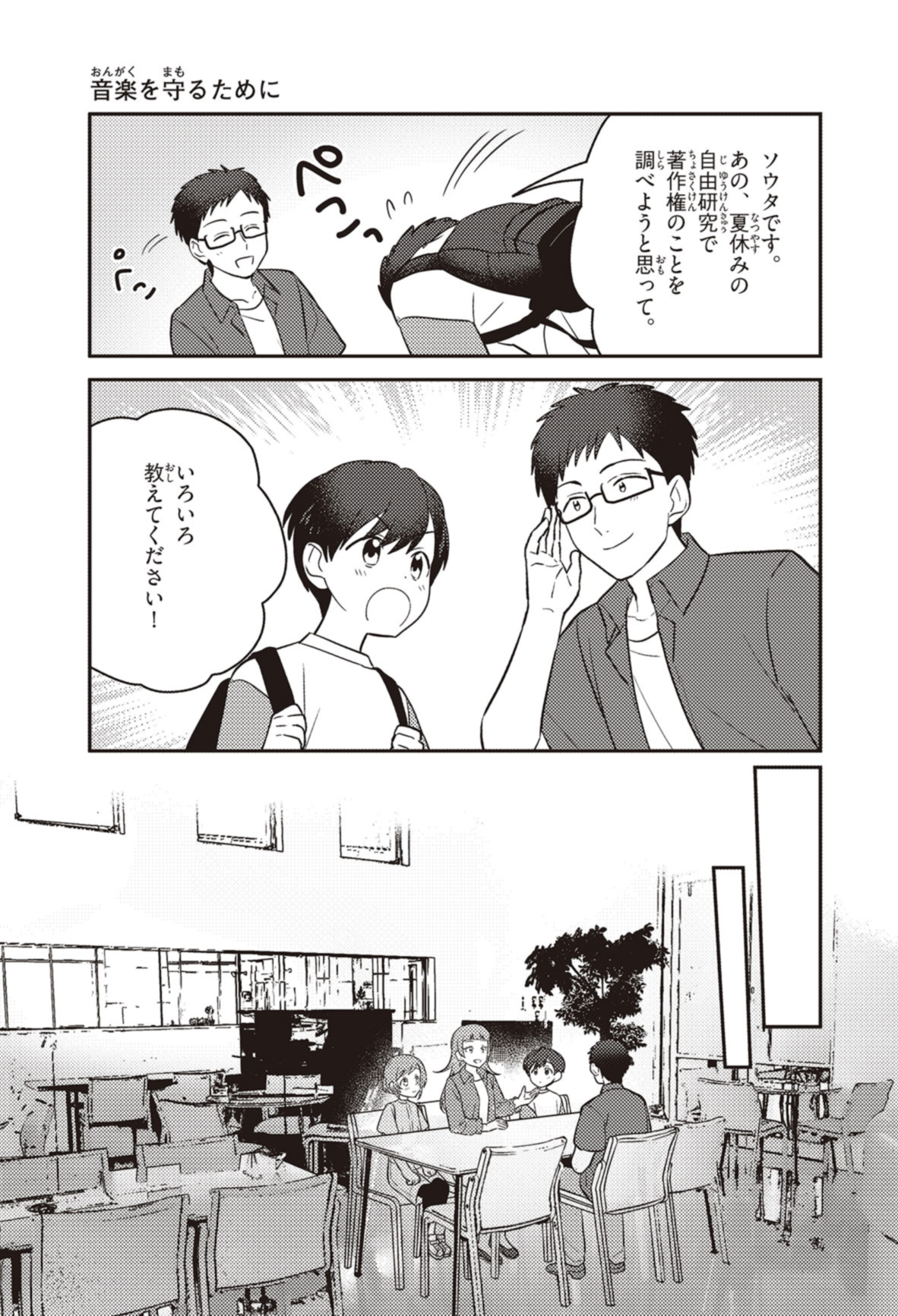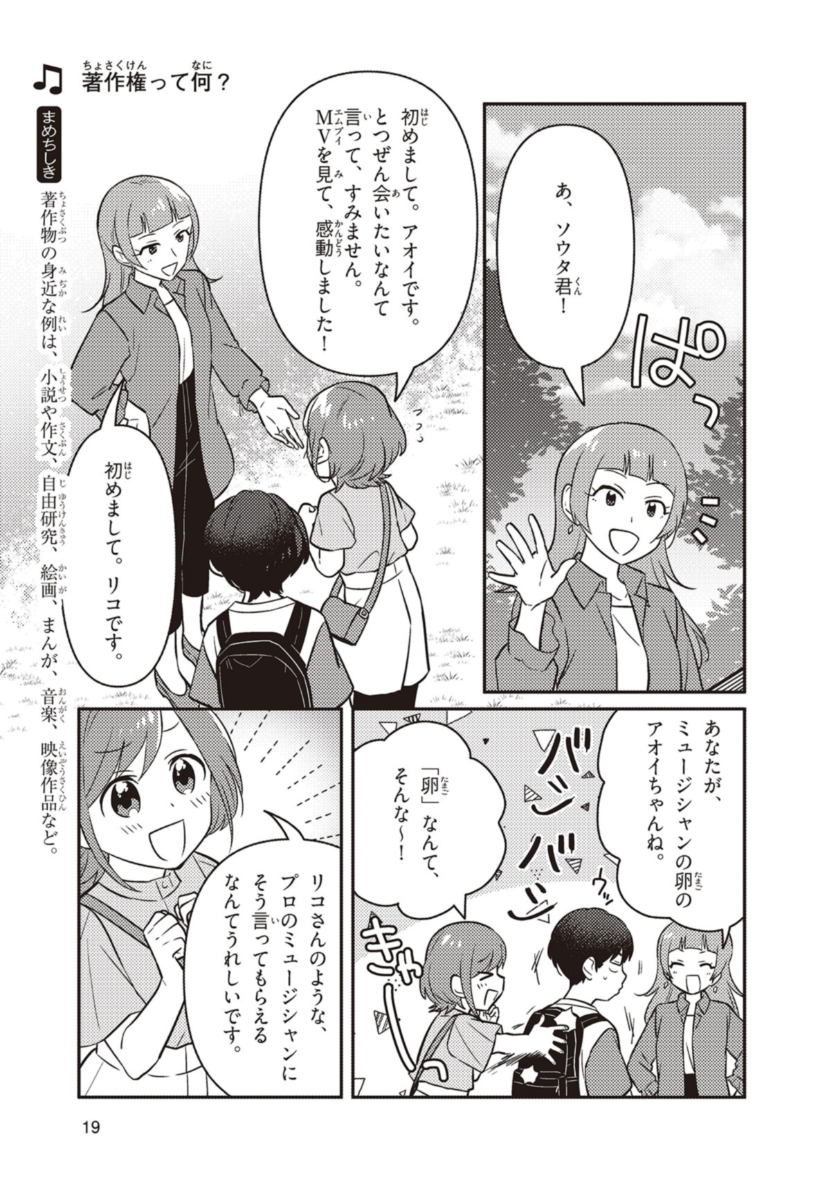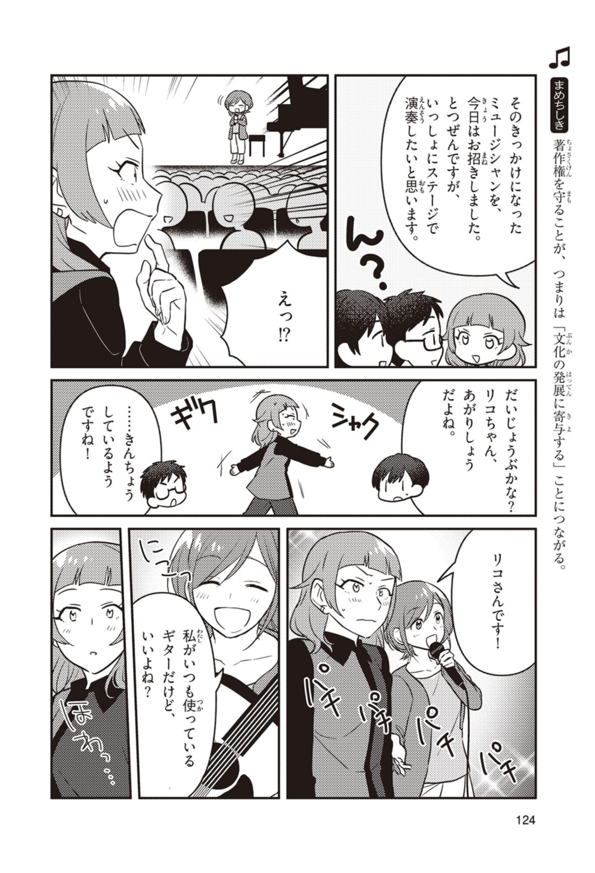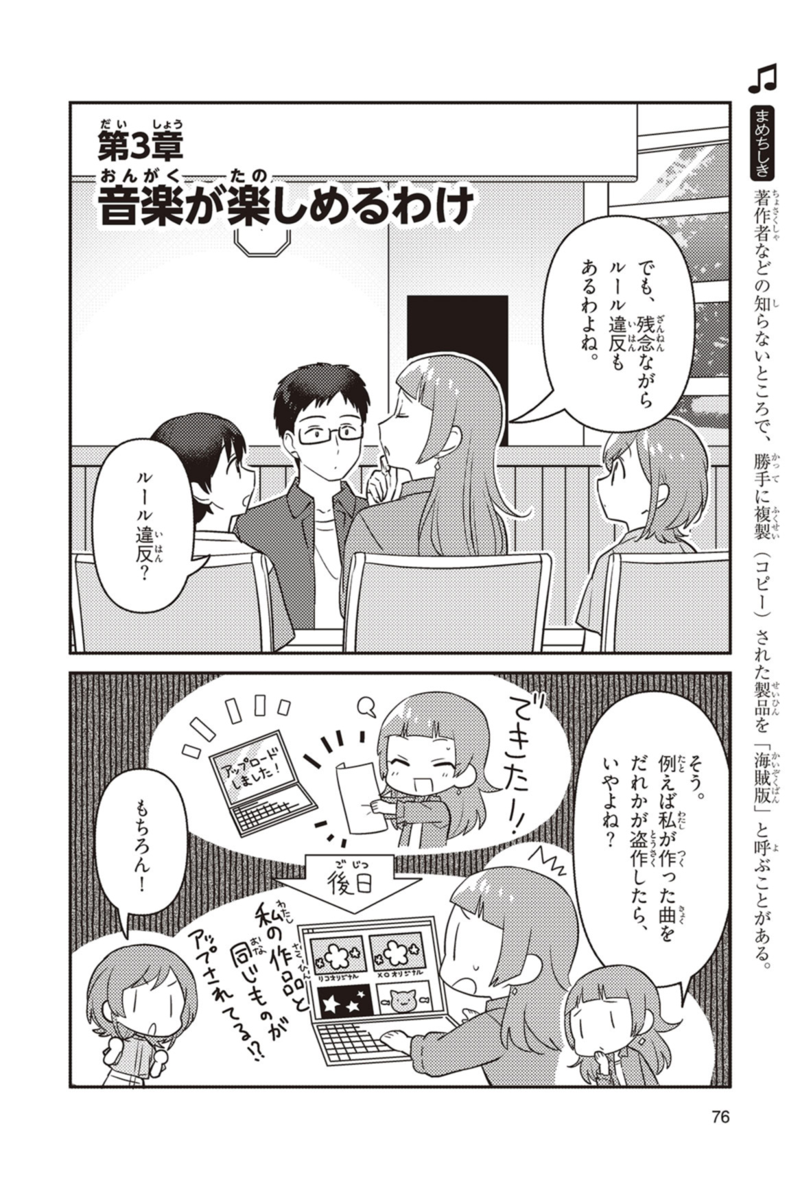 私たちの暮らしは、音楽と深く関わり合っているよね。テレビや動画投稿サイトで好きなミュージシャンの新曲を楽しんだり、お店のBGMで気分が盛り上がったり、学校の授業でみんなと歌ったり演奏したり。実は音楽には、「著作権」という、とても大切な権利があるんだ。 この本は、音楽の著作権について、楽しくしょうかいしているよ!