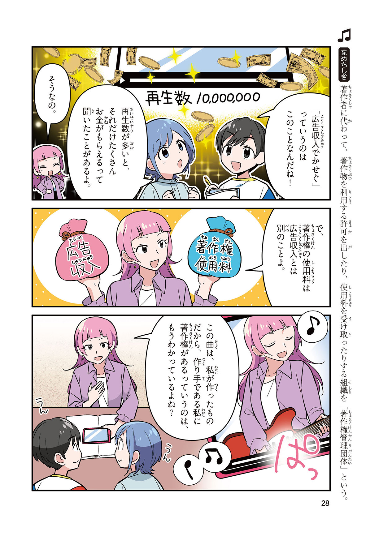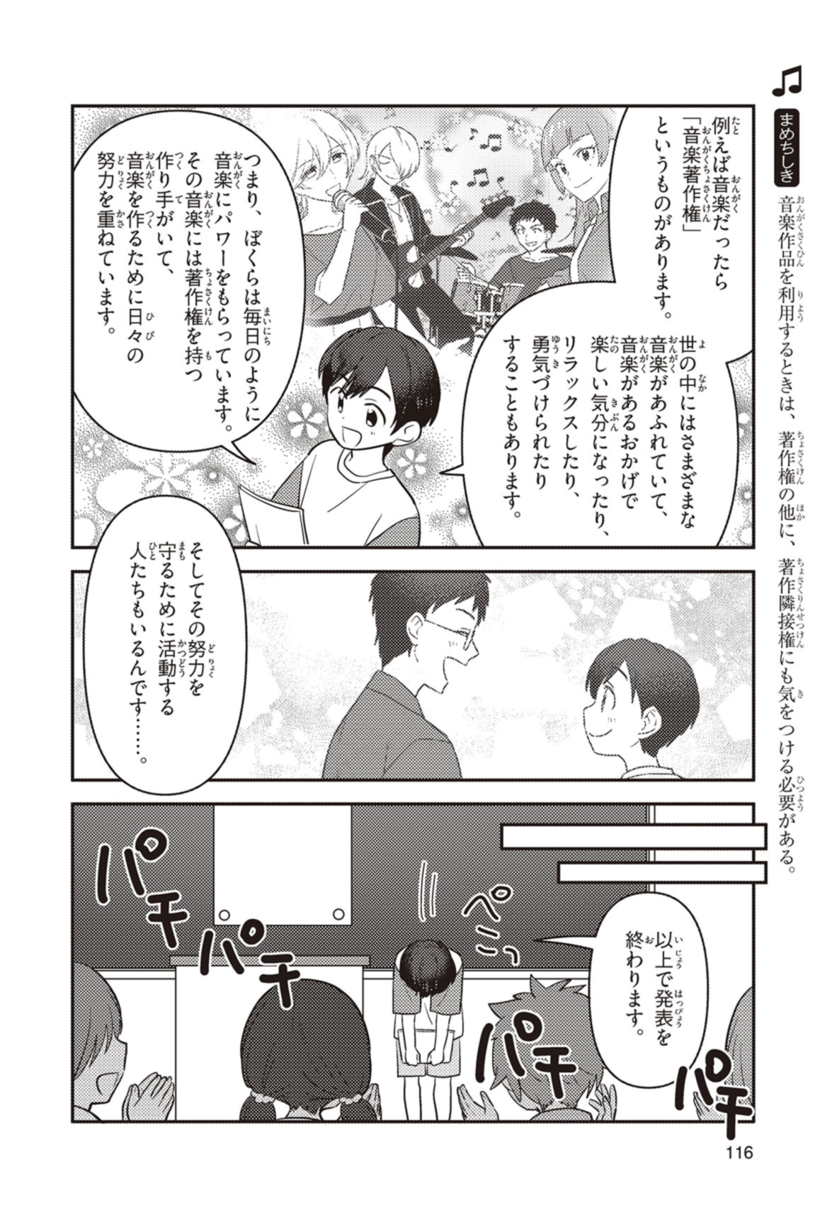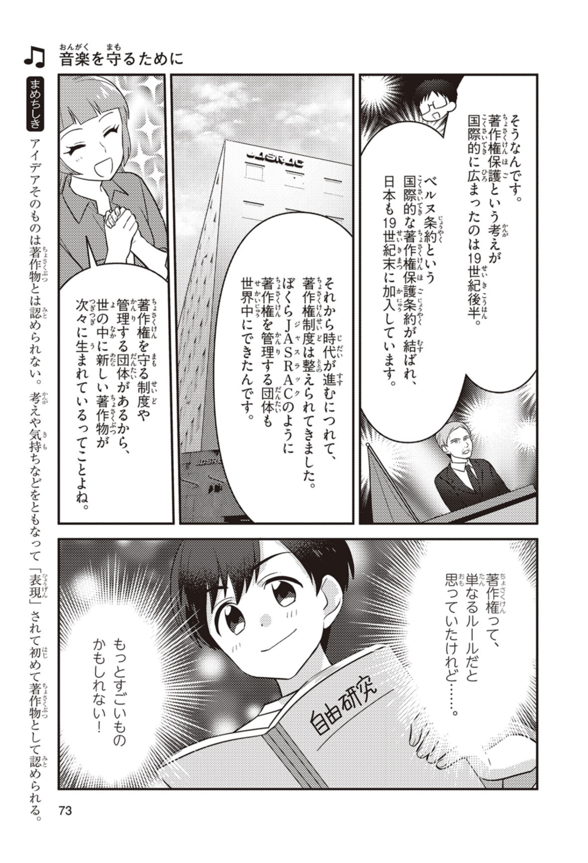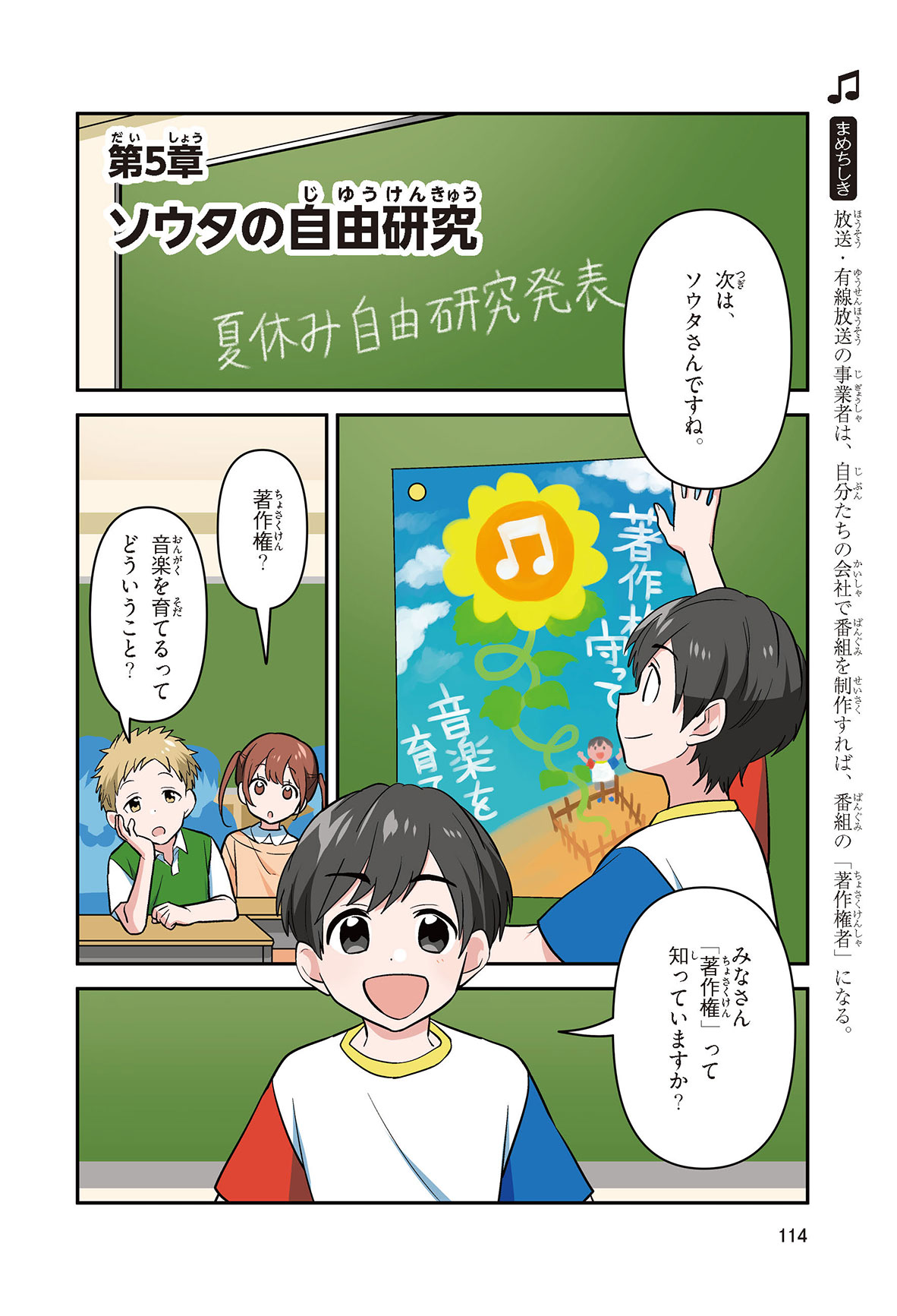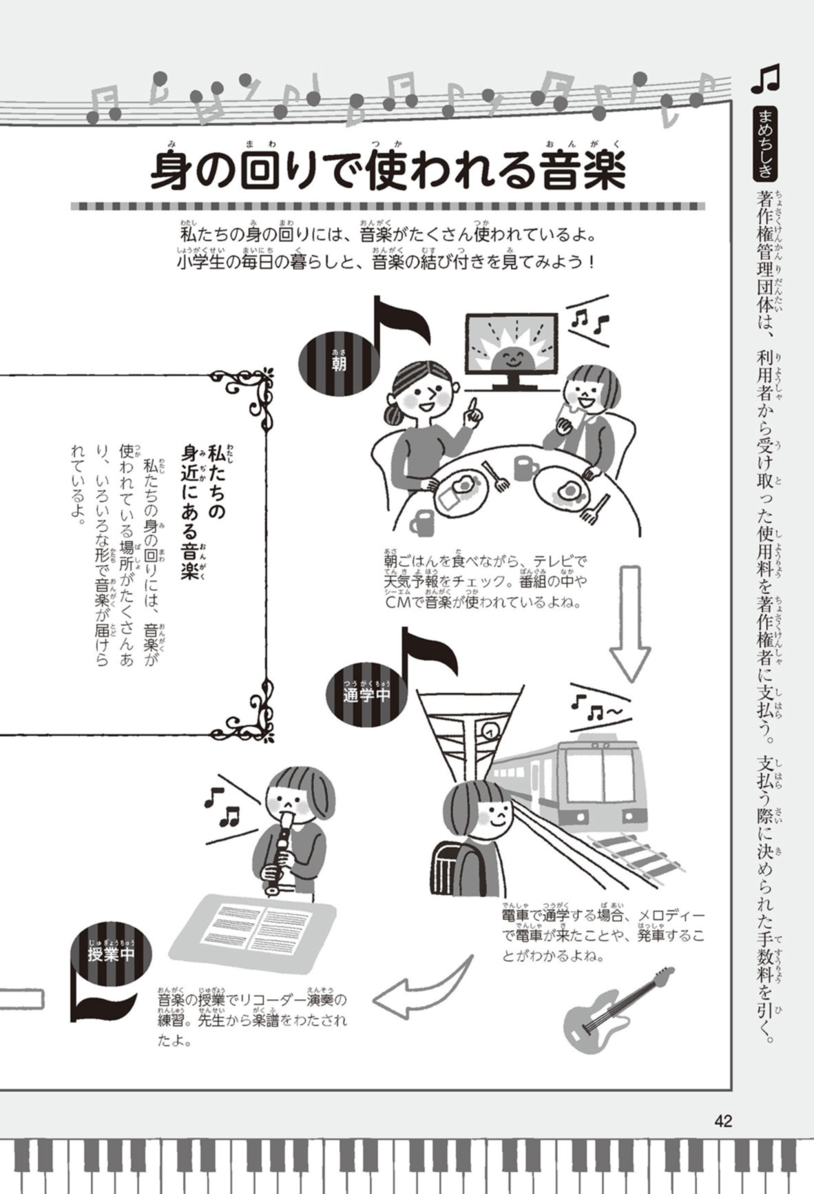 私たちの暮らしは、音楽と深く関わり合っているよね。テレビや動画投稿サイトで好きなミュージシャンの新曲を楽しんだり、お店のBGMで気分が盛り上がったり、学校の授業でみんなと歌ったり演奏したり。実は音楽には、「著作権」という、とても大切な権利があるんだ。 この本は、音楽の著作権について、楽しくしょうかいしているよ!