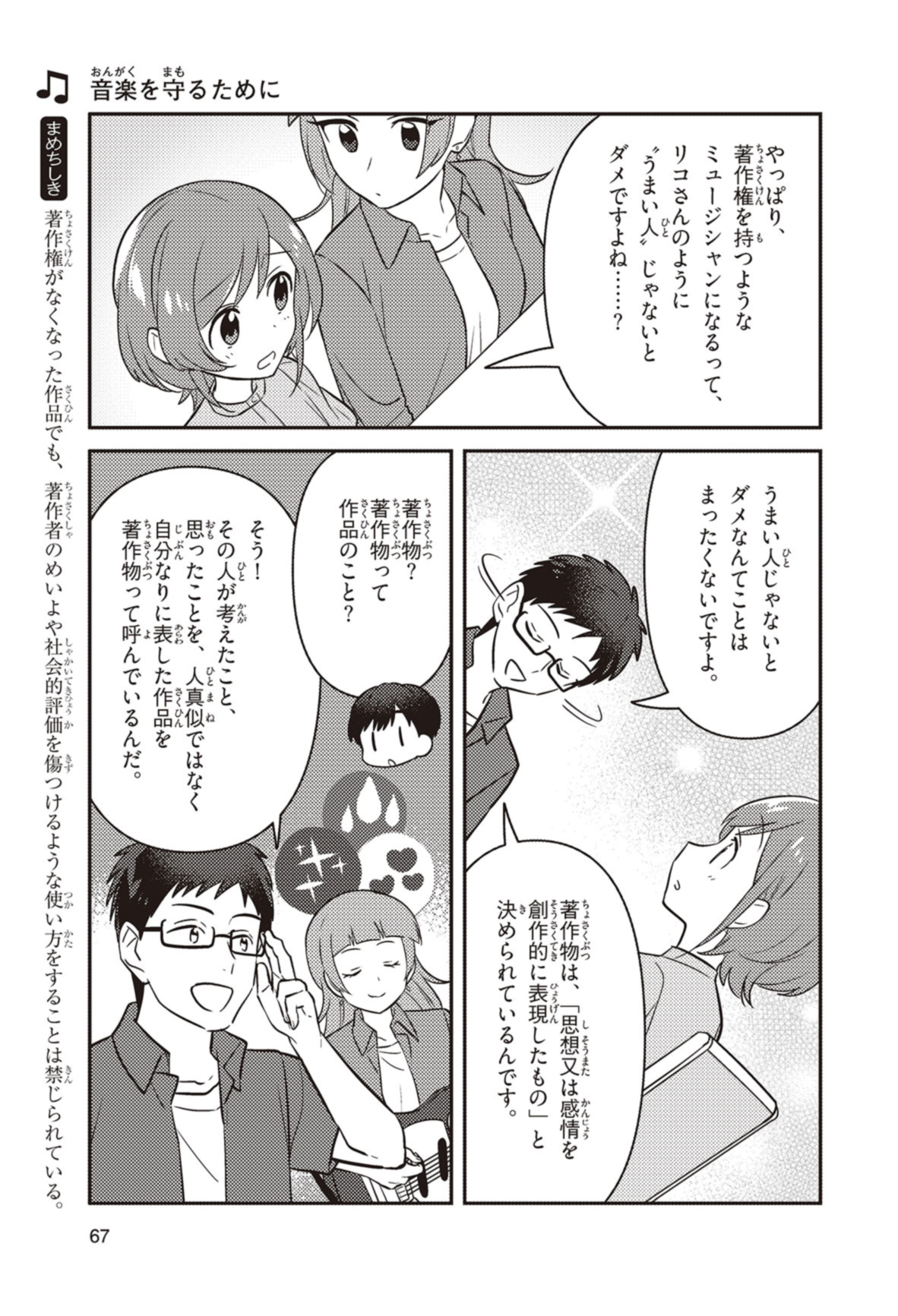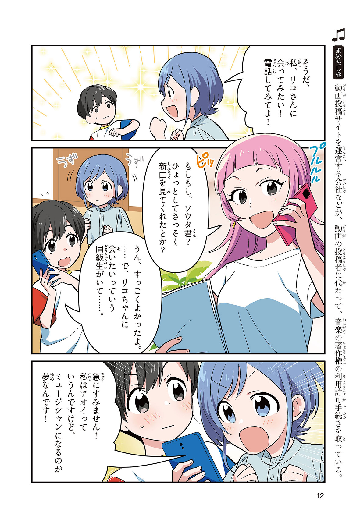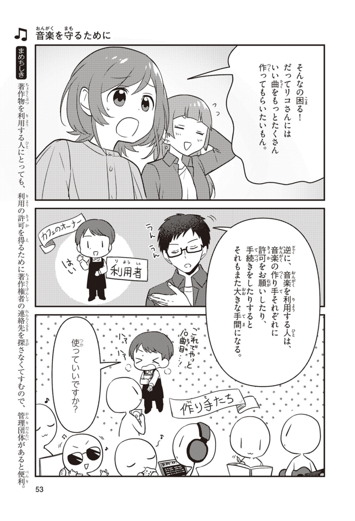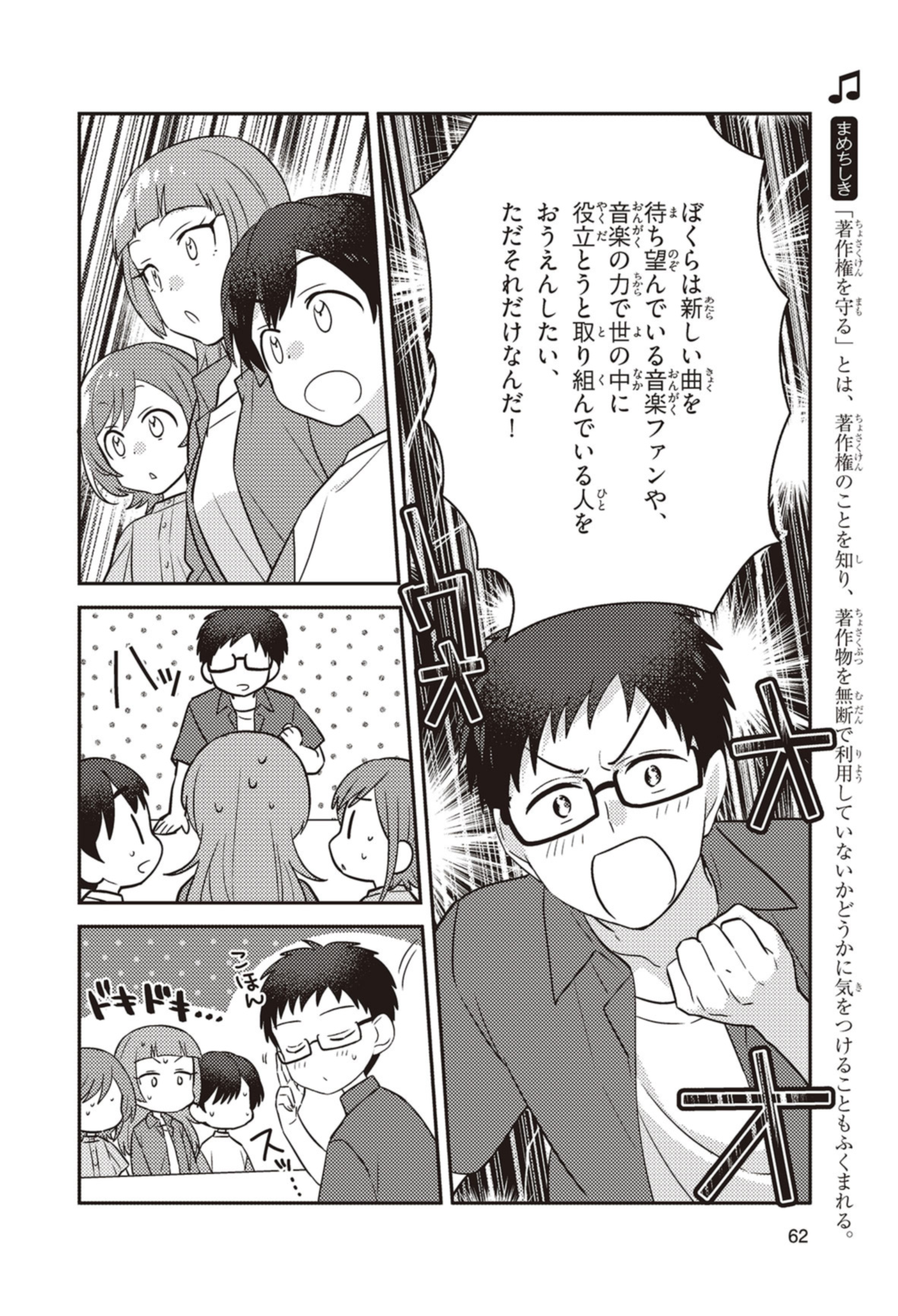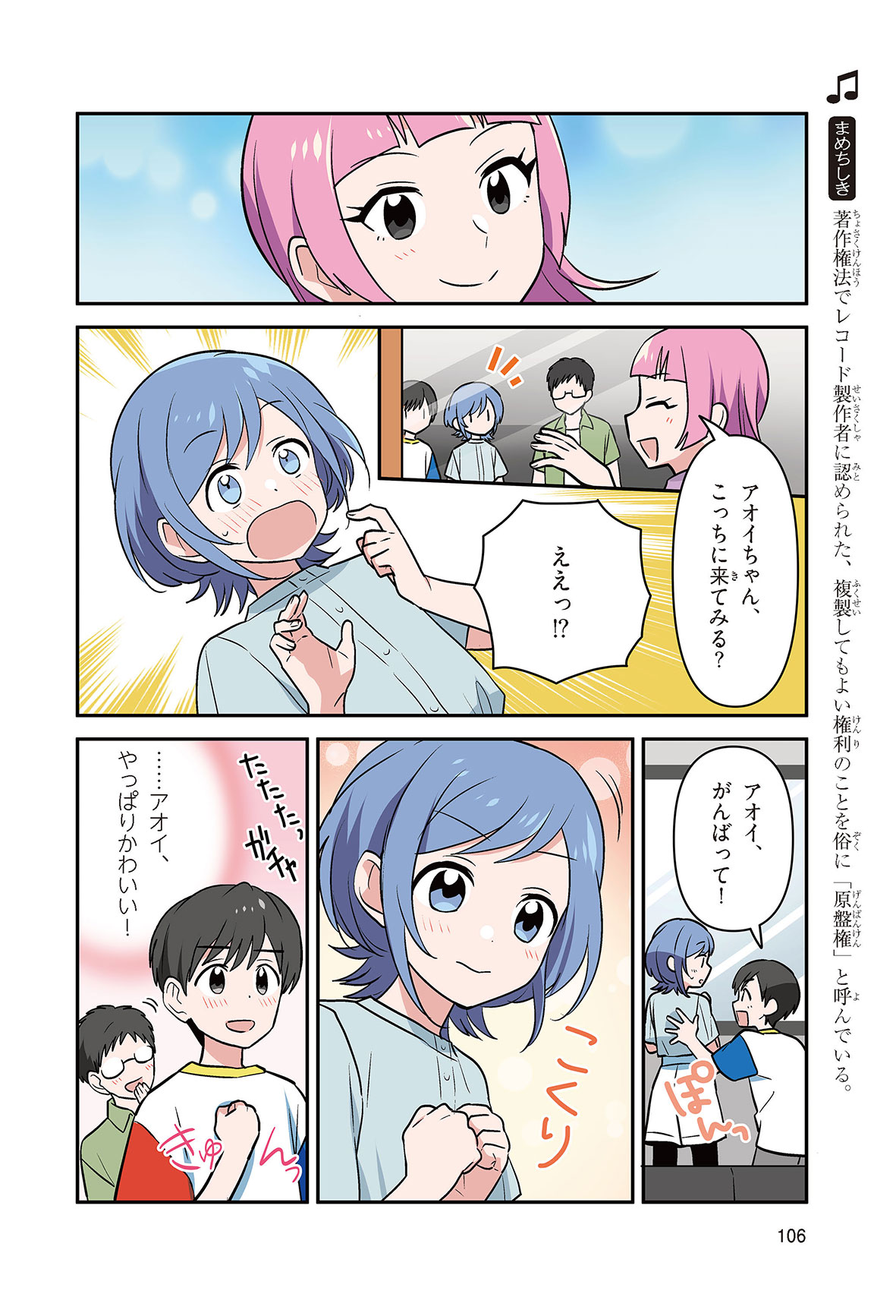 私たちの暮らしは、音楽と深く関わり合っているよね。テレビや動画投稿サイトで好きなミュージシャンの新曲を楽しんだり、お店のBGMで気分が盛り上がったり、学校の授業でみんなと歌ったり演奏したり。実は音楽には、「著作権」という、とても大切な権利があるんだ。 この本は、音楽の著作権について、楽しくしょうかいしているよ!