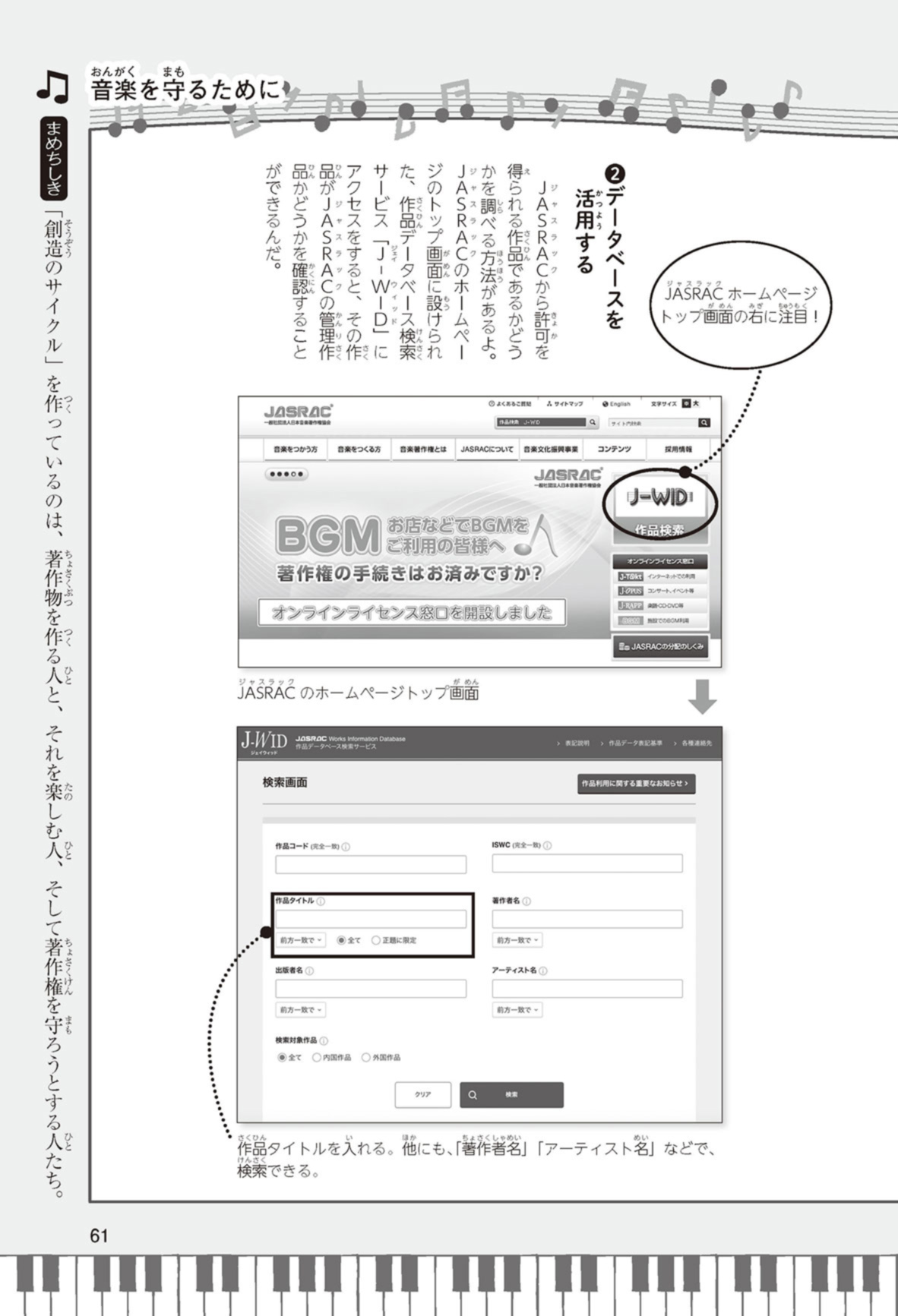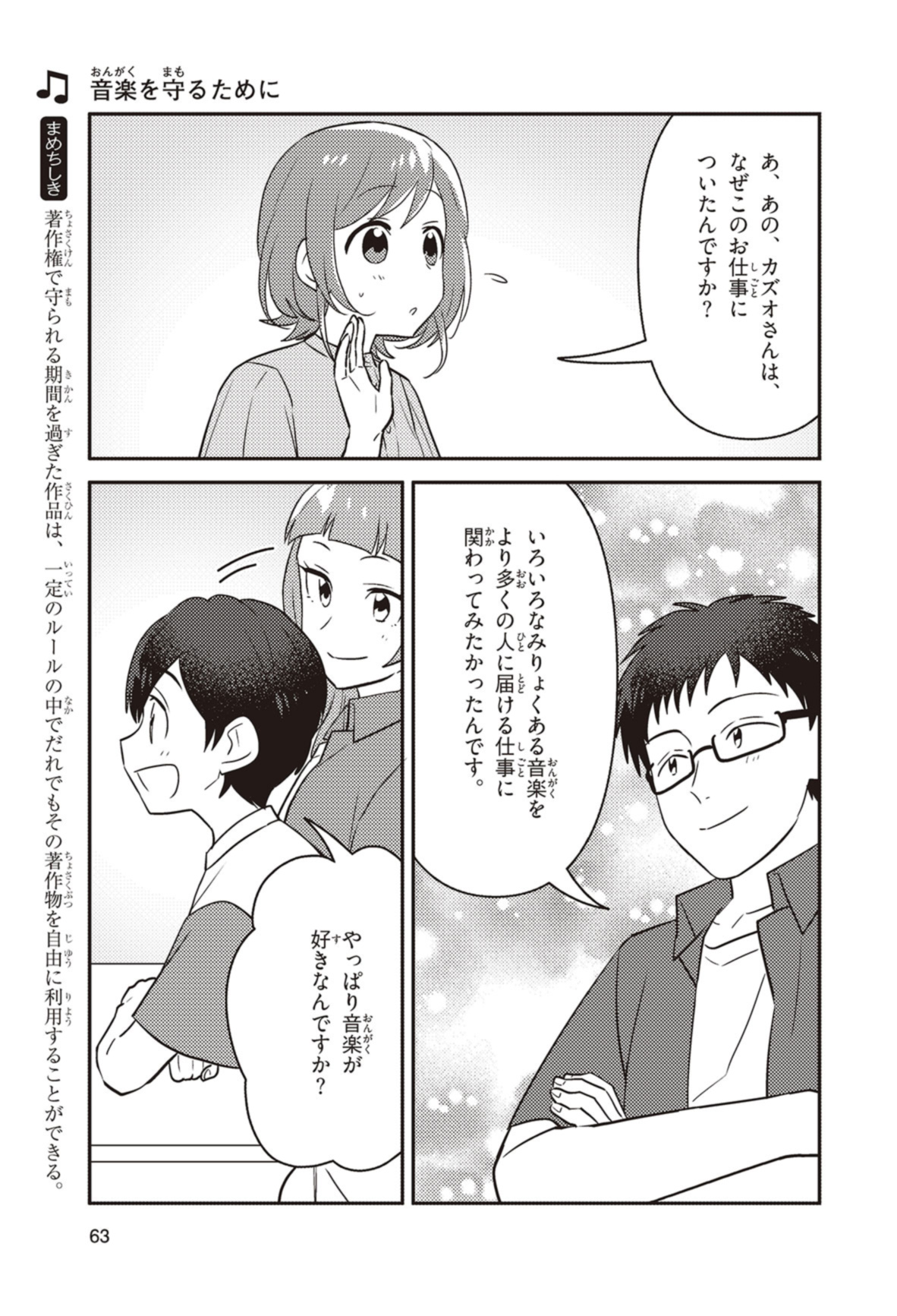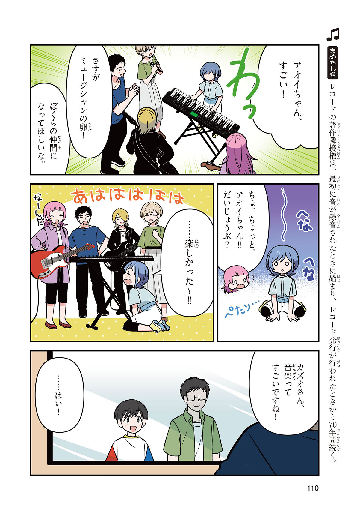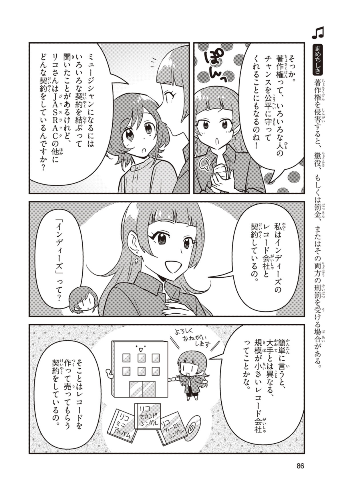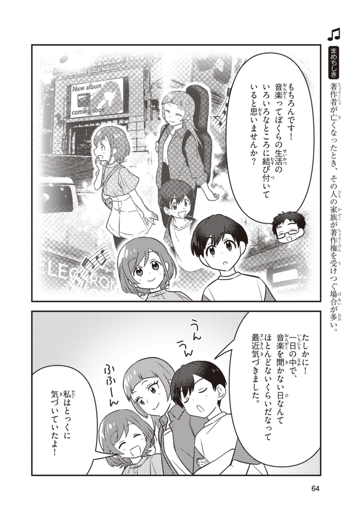 私たちの暮らしは、音楽と深く関わり合っているよね。テレビや動画投稿サイトで好きなミュージシャンの新曲を楽しんだり、お店のBGMで気分が盛り上がったり、学校の授業でみんなと歌ったり演奏したり。実は音楽には、「著作権」という、とても大切な権利があるんだ。 この本は、音楽の著作権について、楽しくしょうかいしているよ!