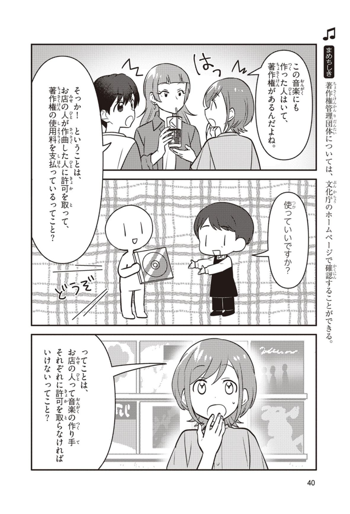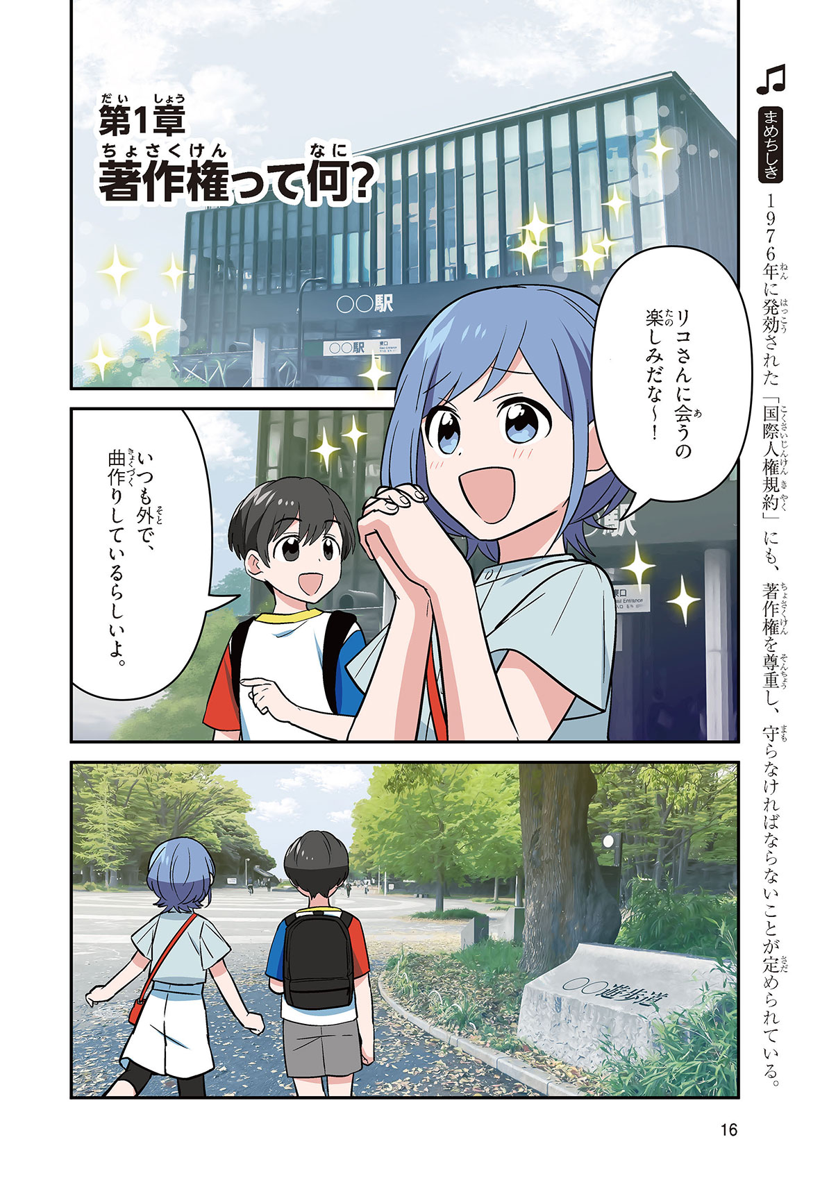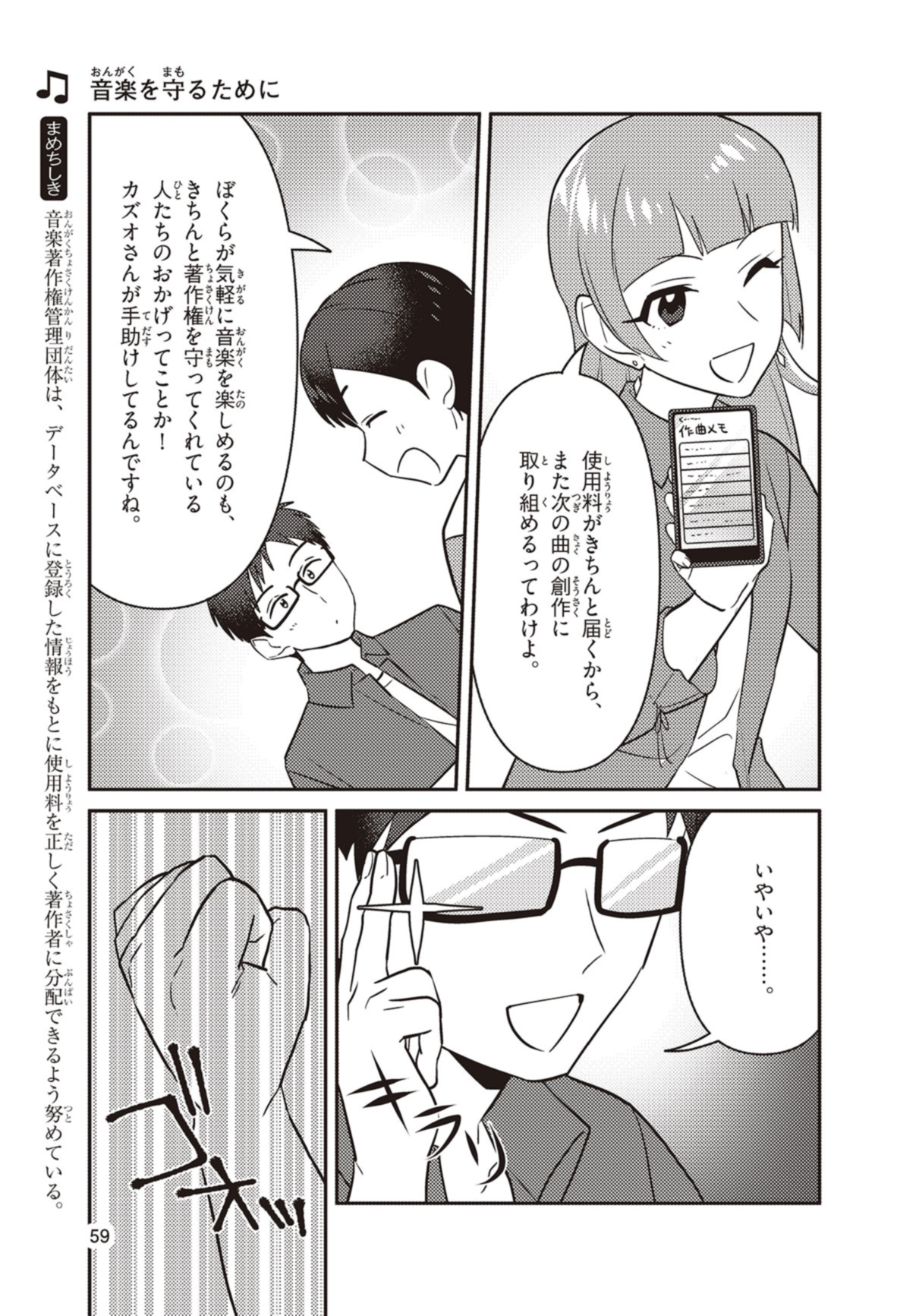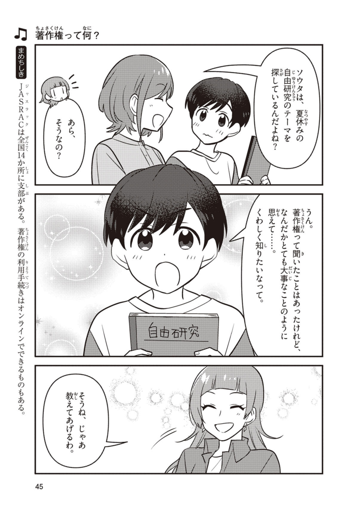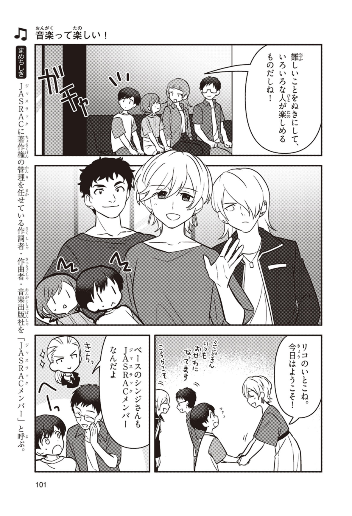 私たちの暮らしは、音楽と深く関わり合っているよね。テレビや動画投稿サイトで好きなミュージシャンの新曲を楽しんだり、お店のBGMで気分が盛り上がったり、学校の授業でみんなと歌ったり演奏したり。実は音楽には、「著作権」という、とても大切な権利があるんだ。 この本は、音楽の著作権について、楽しくしょうかいしているよ!