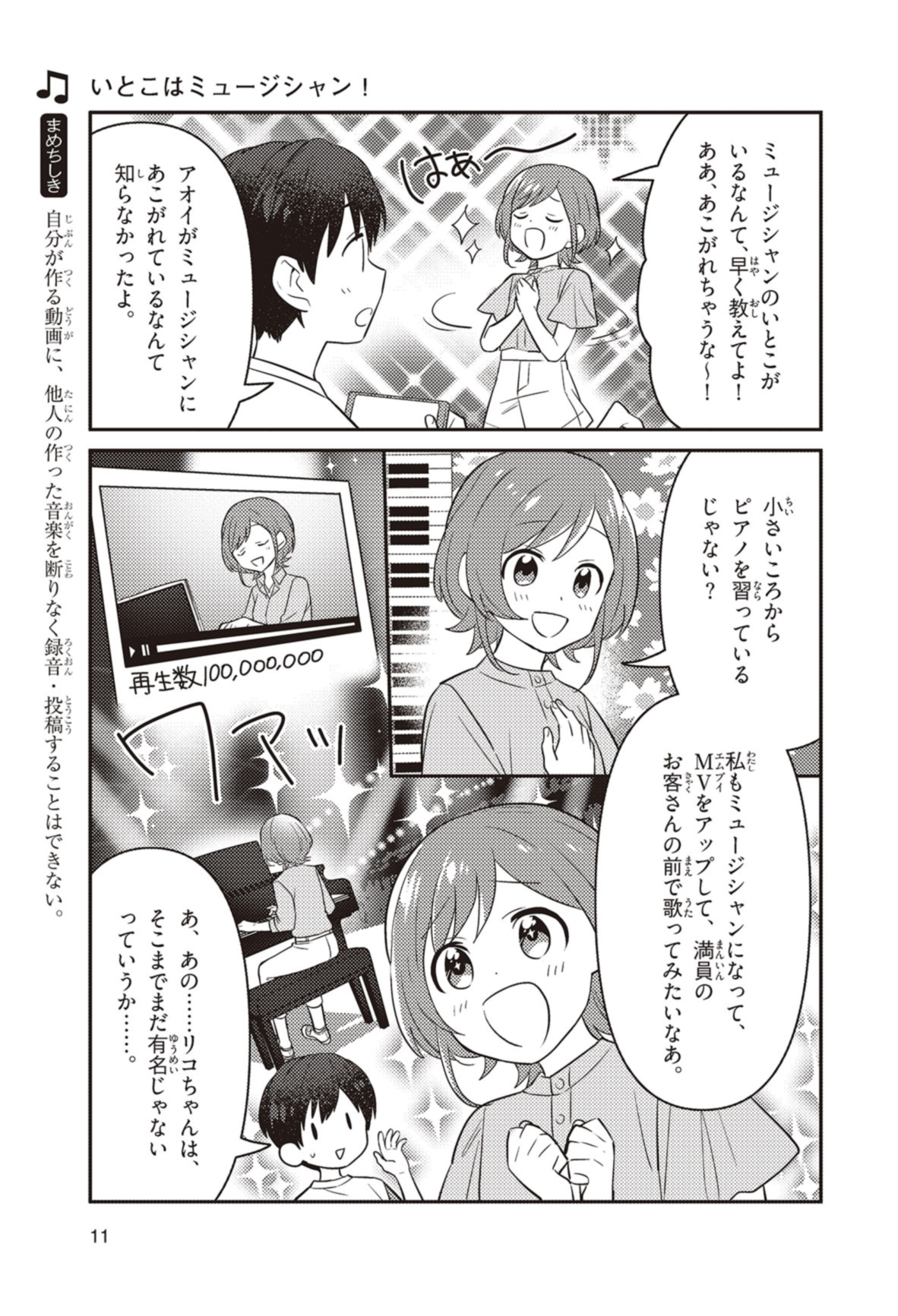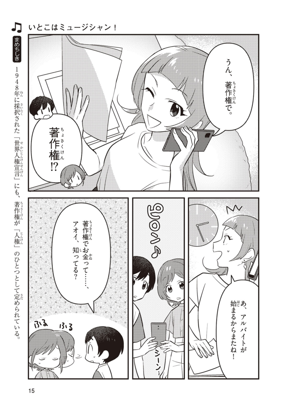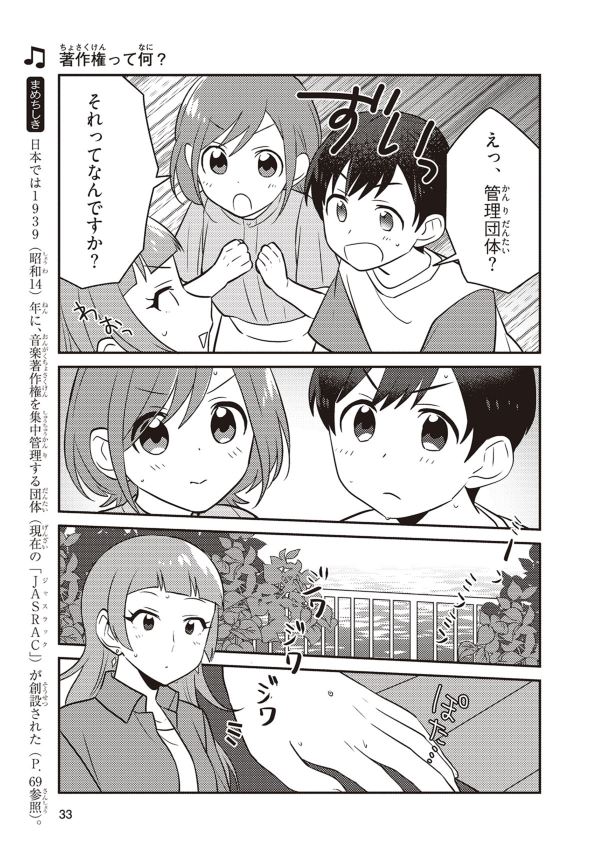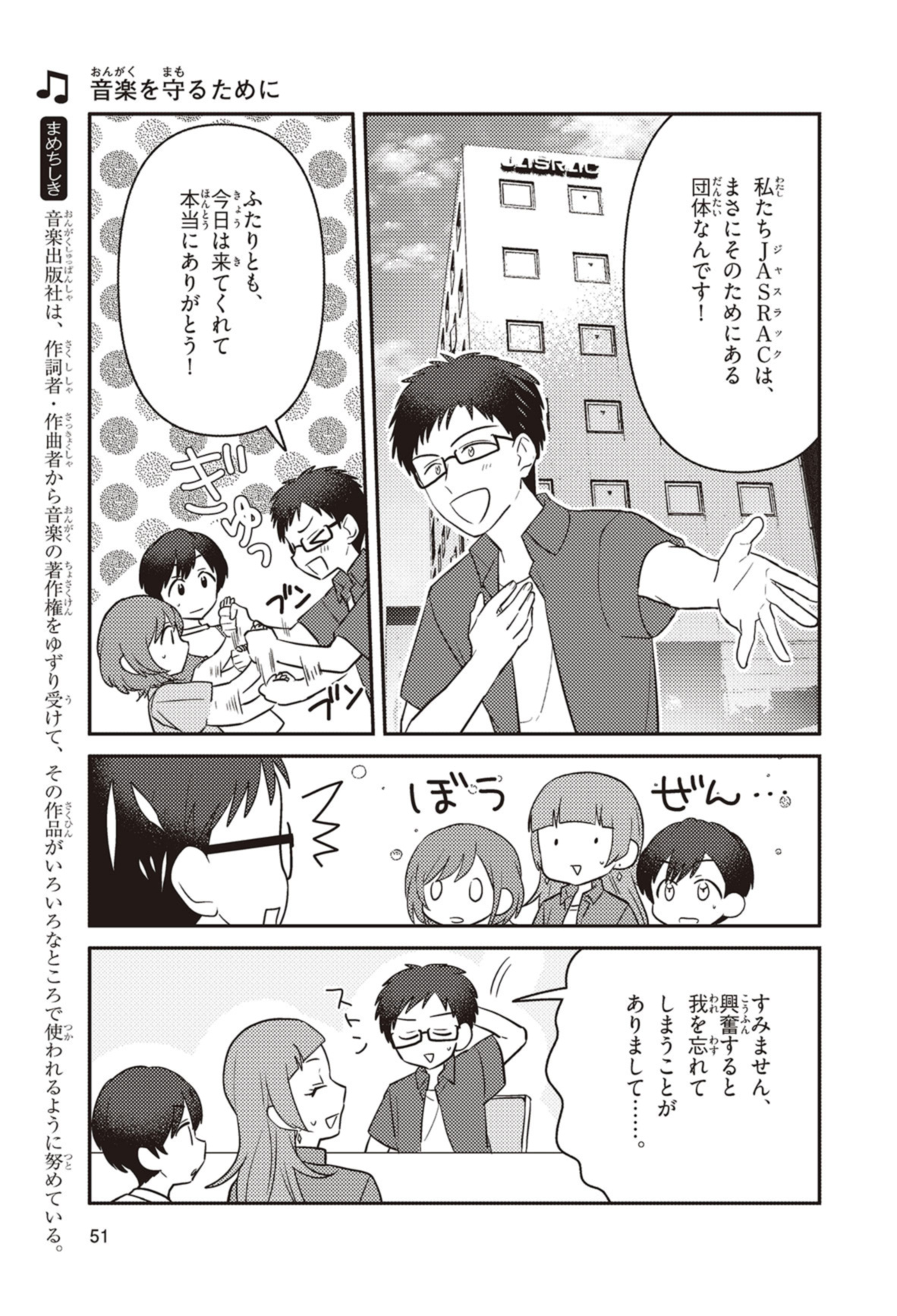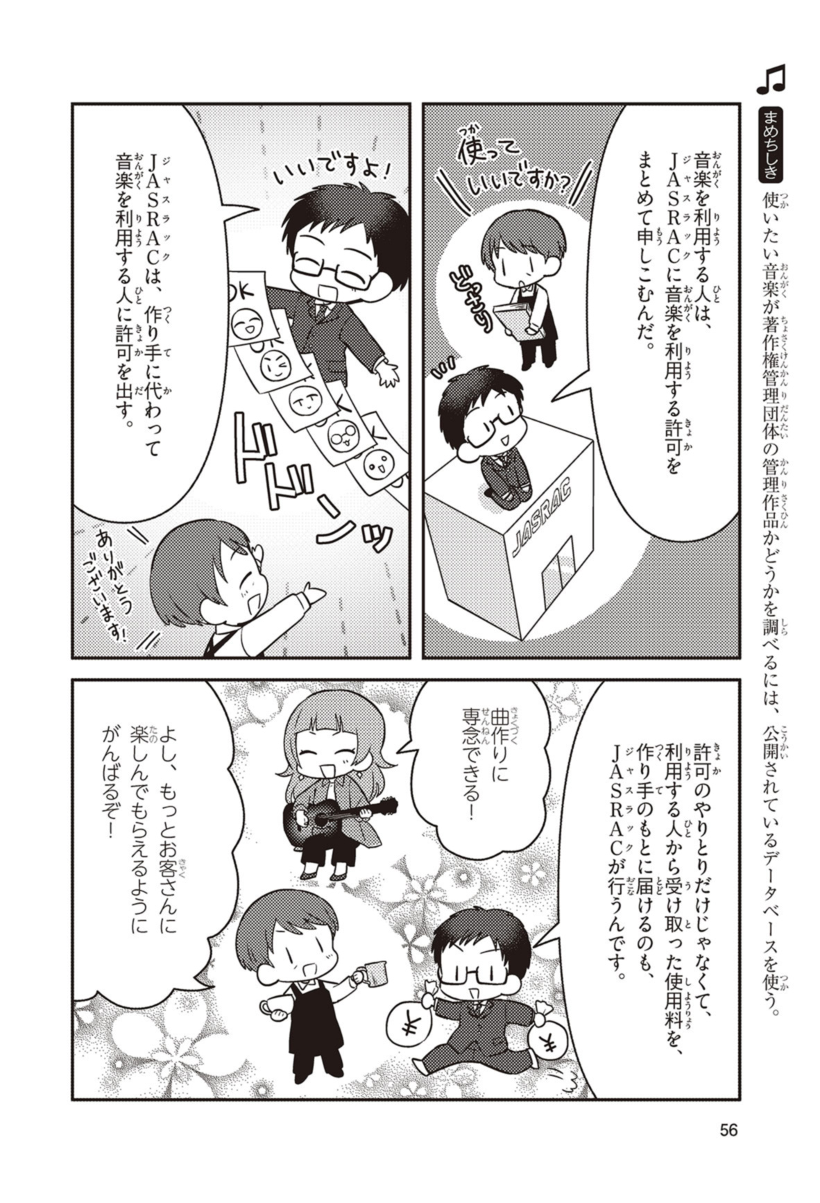 私たちの暮らしは、音楽と深く関わり合っているよね。テレビや動画投稿サイトで好きなミュージシャンの新曲を楽しんだり、お店のBGMで気分が盛り上がったり、学校の授業でみんなと歌ったり演奏したり。実は音楽には、「著作権」という、とても大切な権利があるんだ。 この本は、音楽の著作権について、楽しくしょうかいしているよ!