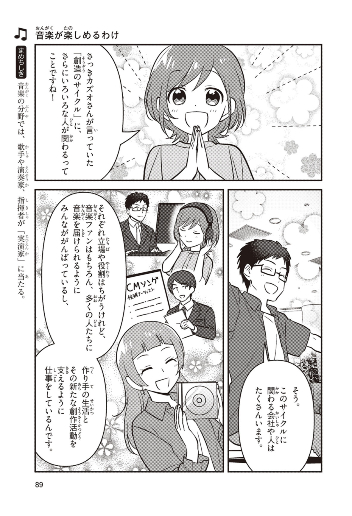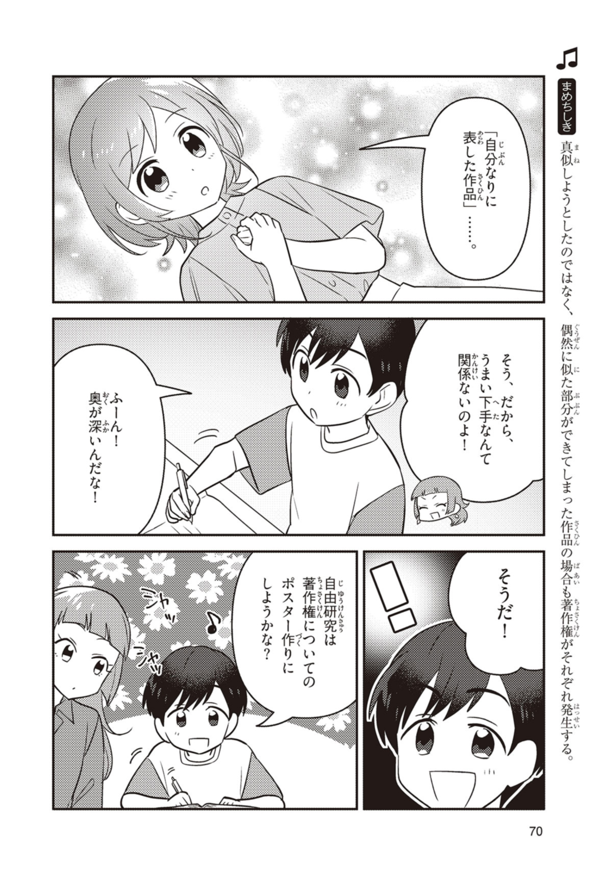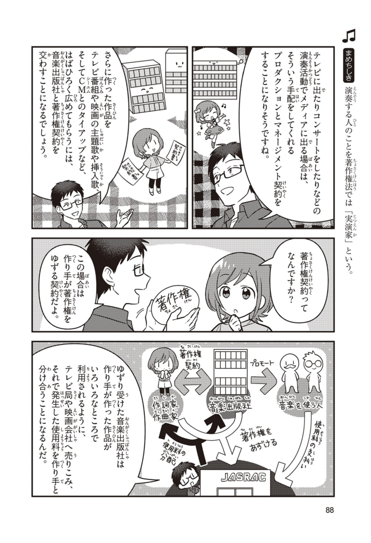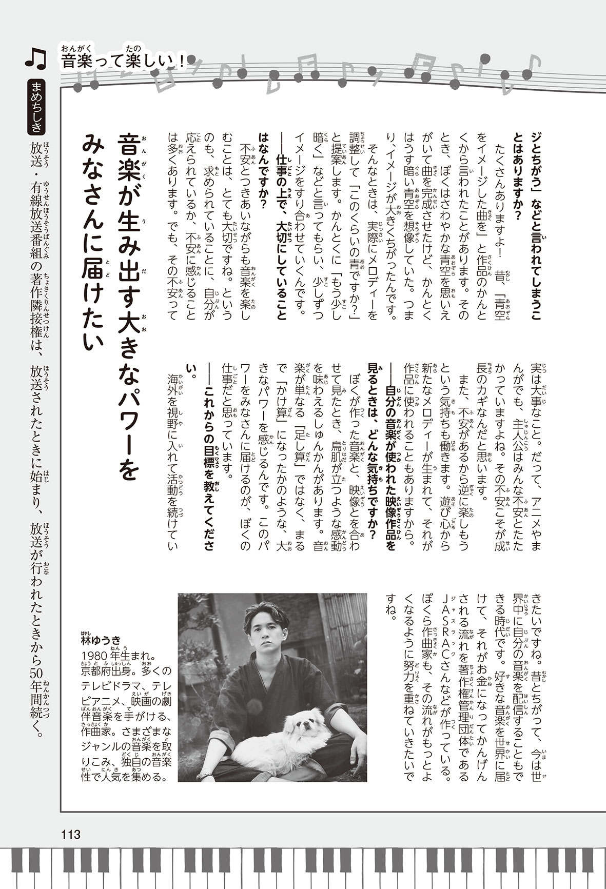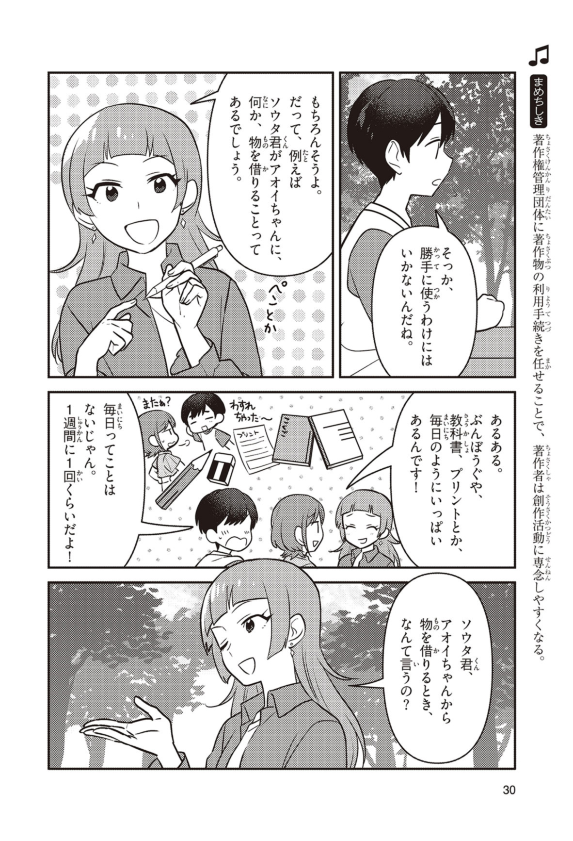 私たちの暮らしは、音楽と深く関わり合っているよね。テレビや動画投稿サイトで好きなミュージシャンの新曲を楽しんだり、お店のBGMで気分が盛り上がったり、学校の授業でみんなと歌ったり演奏したり。実は音楽には、「著作権」という、とても大切な権利があるんだ。 この本は、音楽の著作権について、楽しくしょうかいしているよ!