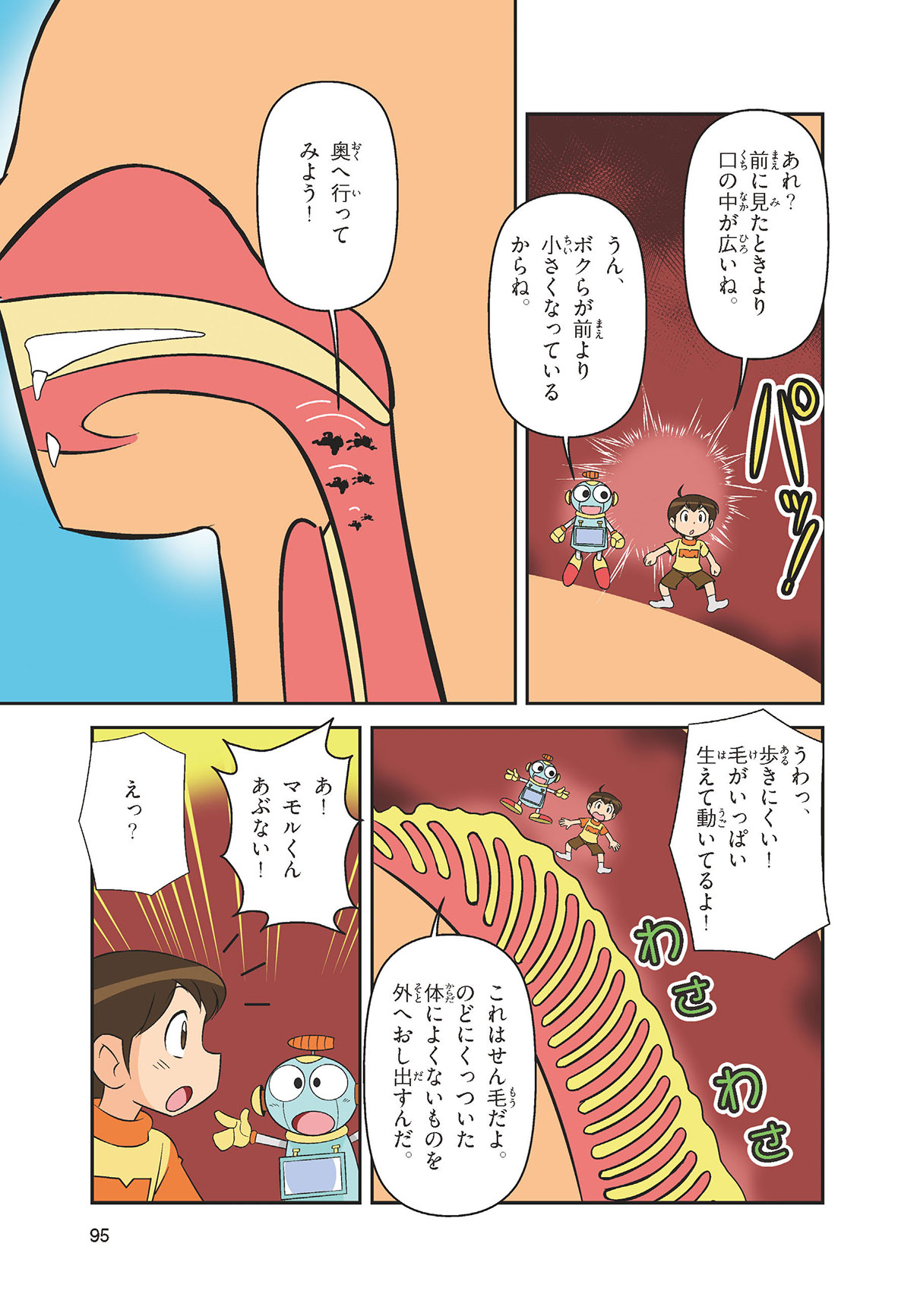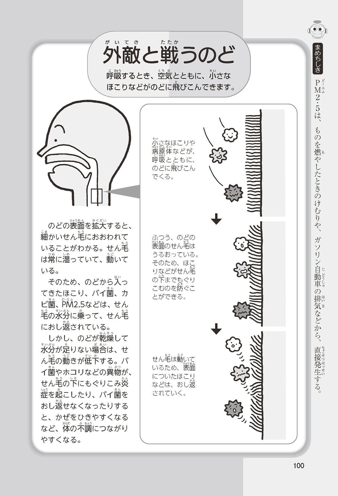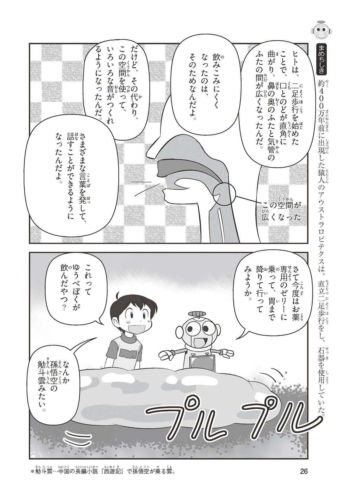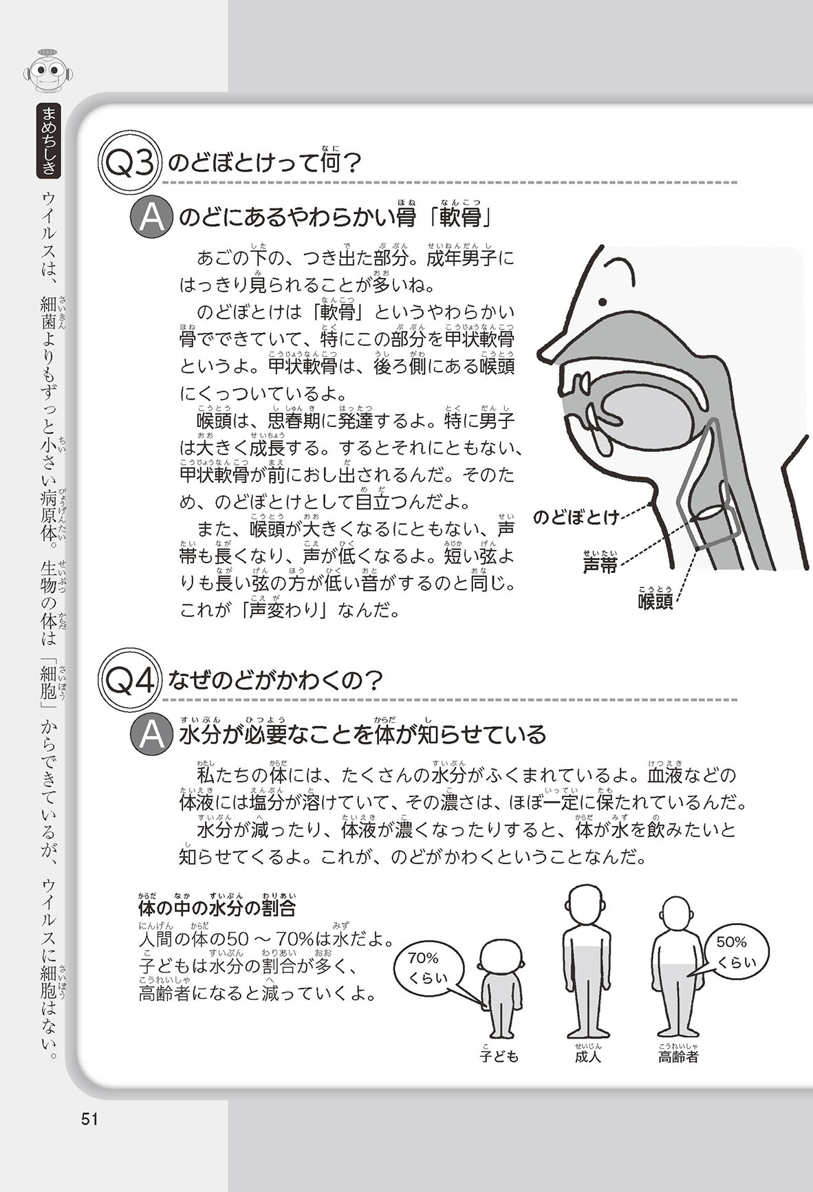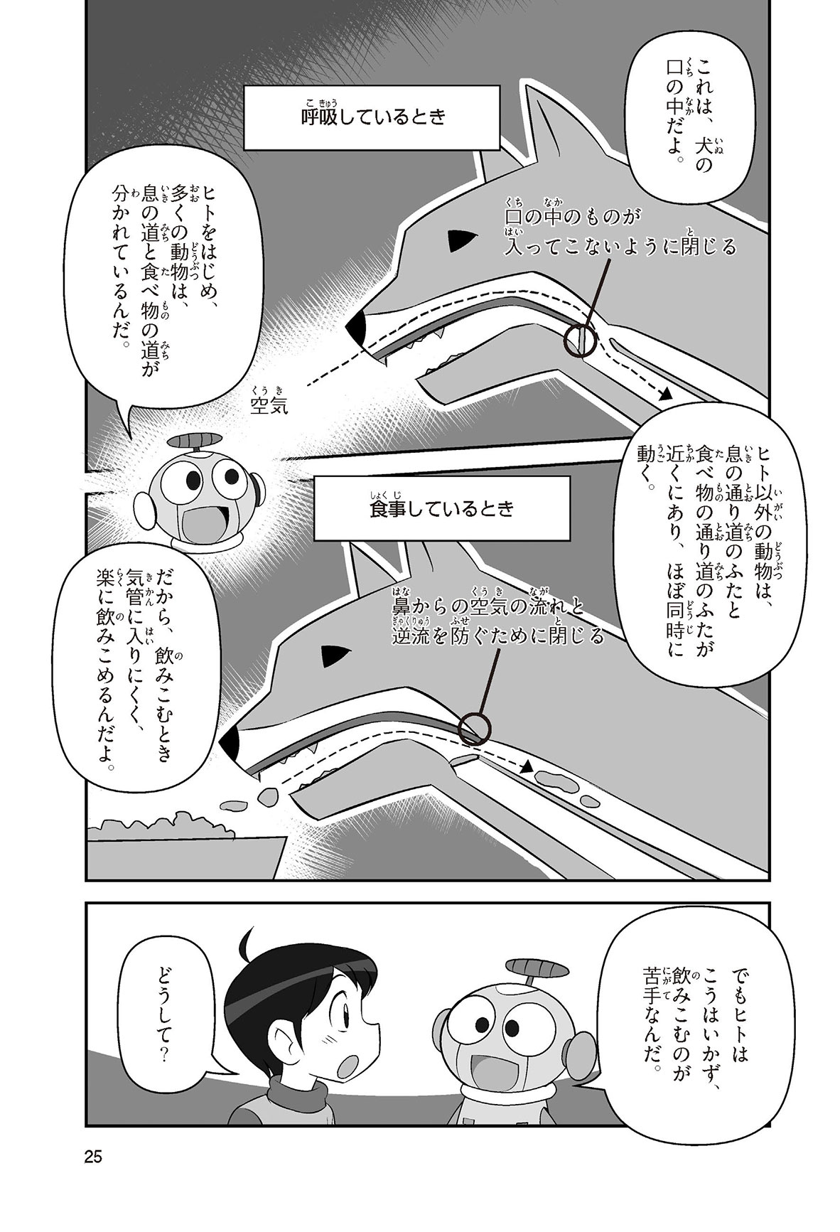 食べ物の通り道でもあり、息の通り道でもある「のど」。目立たないけれど、とっても大事なところだ。でも、人間は動物の中で、最も飲みこむのが下手。それは二足歩行に進化したことで、食べ物と息の交通整理がうまくできなくなったからなんだ。また、鼻や口から病原体も飛びこんでくるから、のどは健康の門番ともいえる。のどのいろいろなひみつを知って、自分の健康を守っていこう。