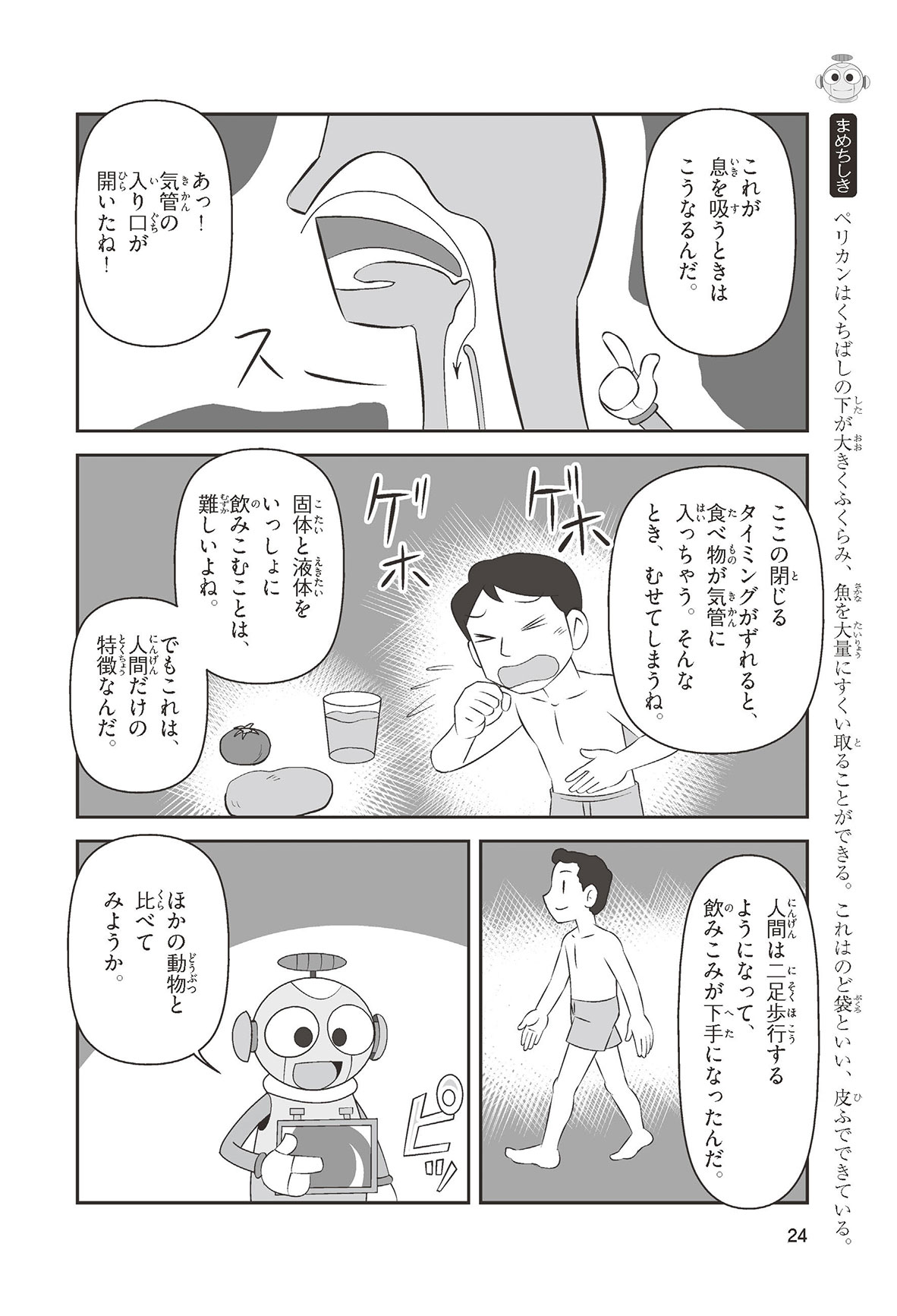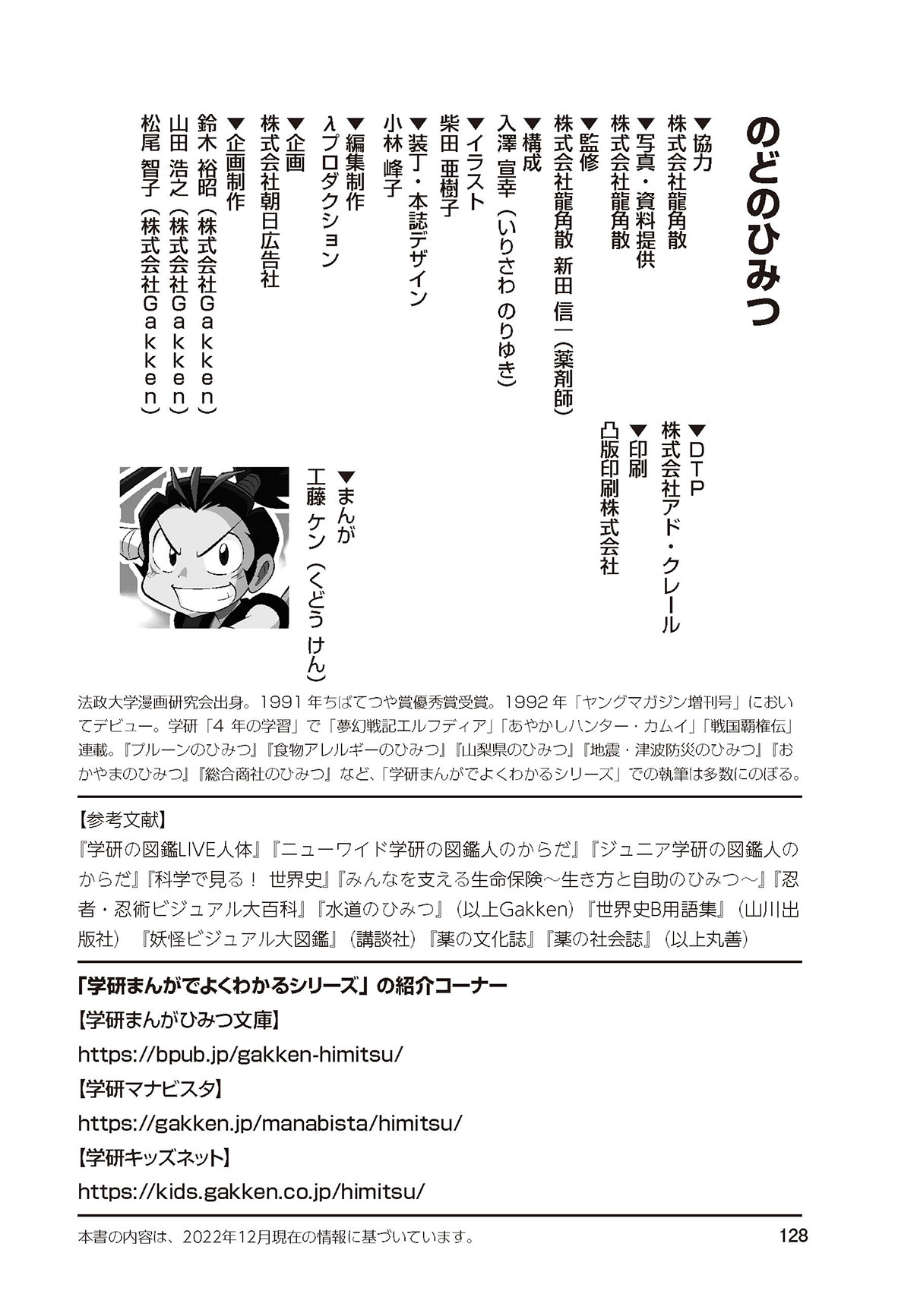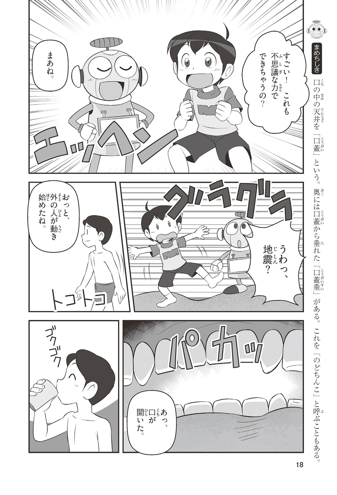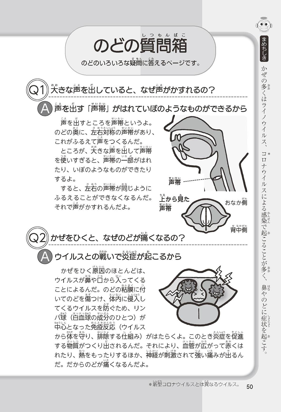 食べ物の通り道でもあり、息の通り道でもある「のど」。目立たないけれど、とっても大事なところだ。でも、人間は動物の中で、最も飲みこむのが下手。それは二足歩行に進化したことで、食べ物と息の交通整理がうまくできなくなったからなんだ。また、鼻や口から病原体も飛びこんでくるから、のどは健康の門番ともいえる。のどのいろいろなひみつを知って、自分の健康を守っていこう。