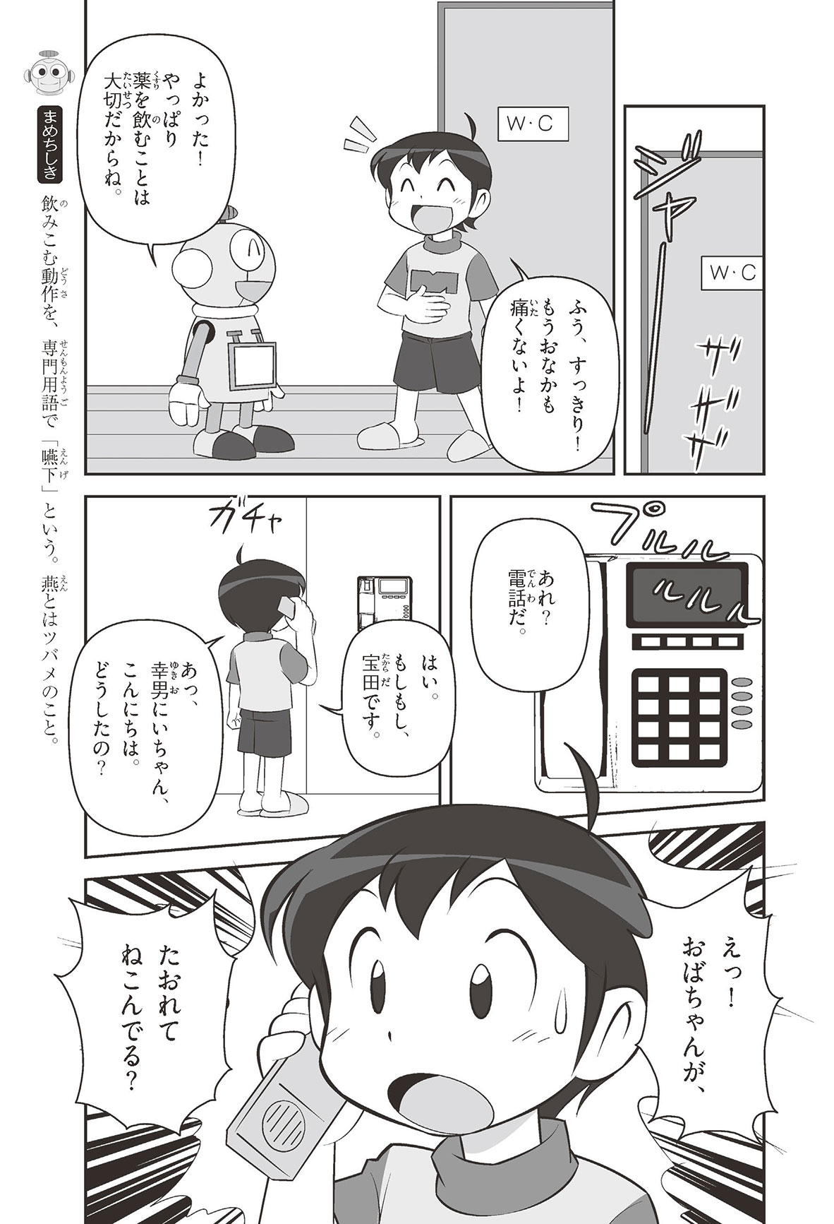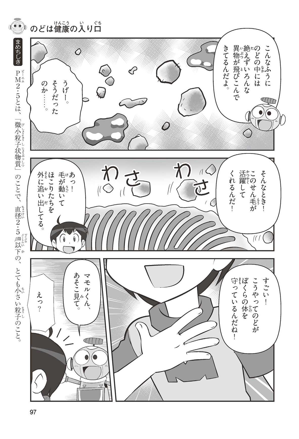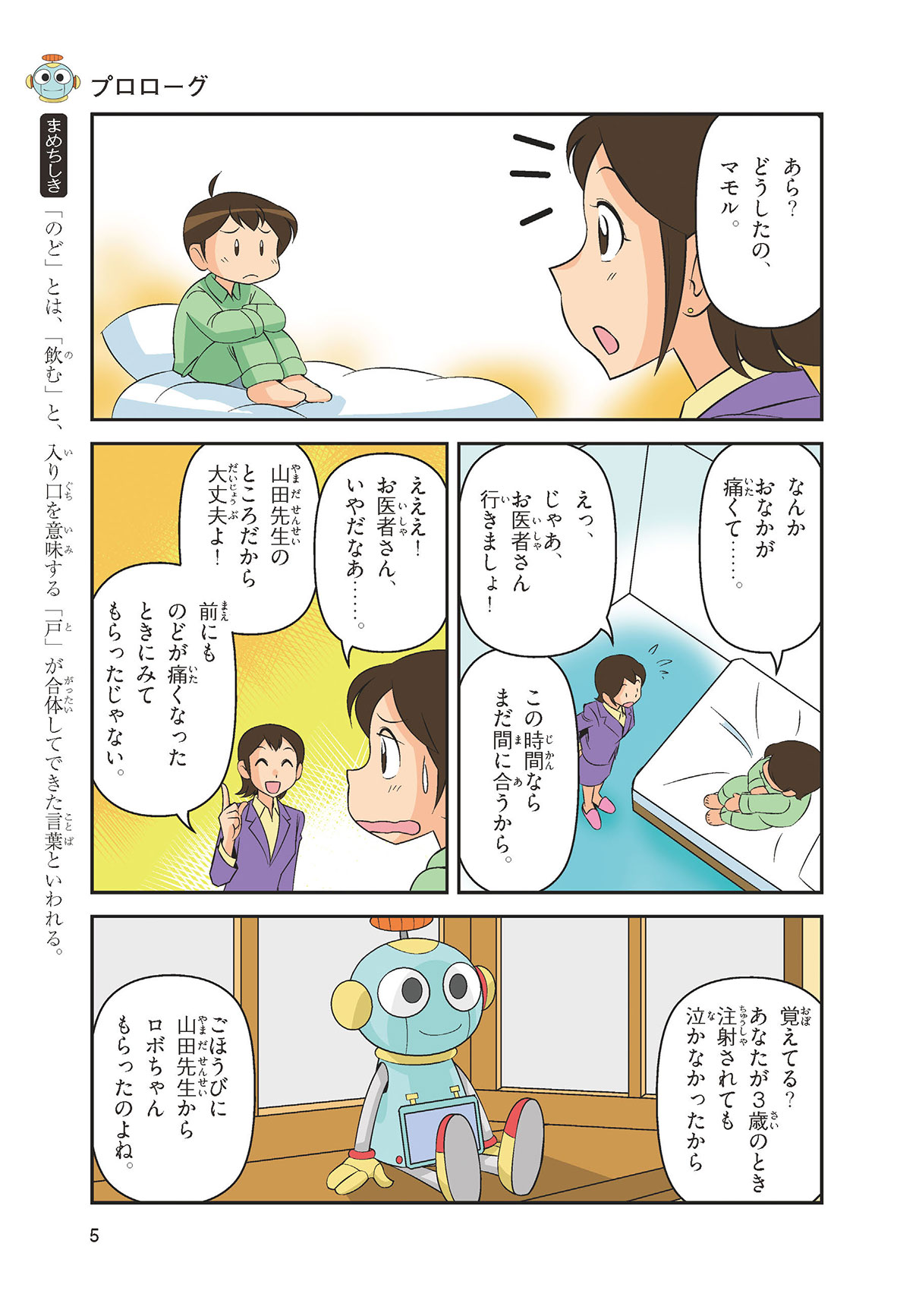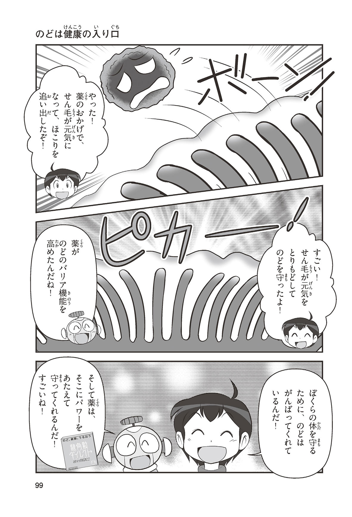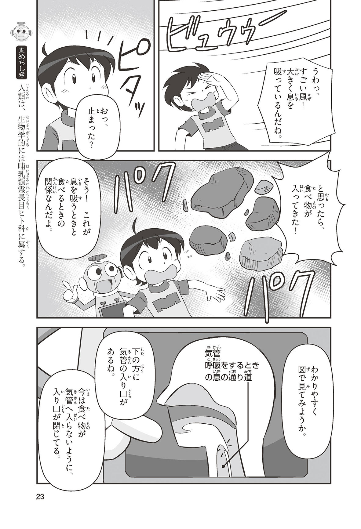 食べ物の通り道でもあり、息の通り道でもある「のど」。目立たないけれど、とっても大事なところだ。でも、人間は動物の中で、最も飲みこむのが下手。それは二足歩行に進化したことで、食べ物と息の交通整理がうまくできなくなったからなんだ。また、鼻や口から病原体も飛びこんでくるから、のどは健康の門番ともいえる。のどのいろいろなひみつを知って、自分の健康を守っていこう。