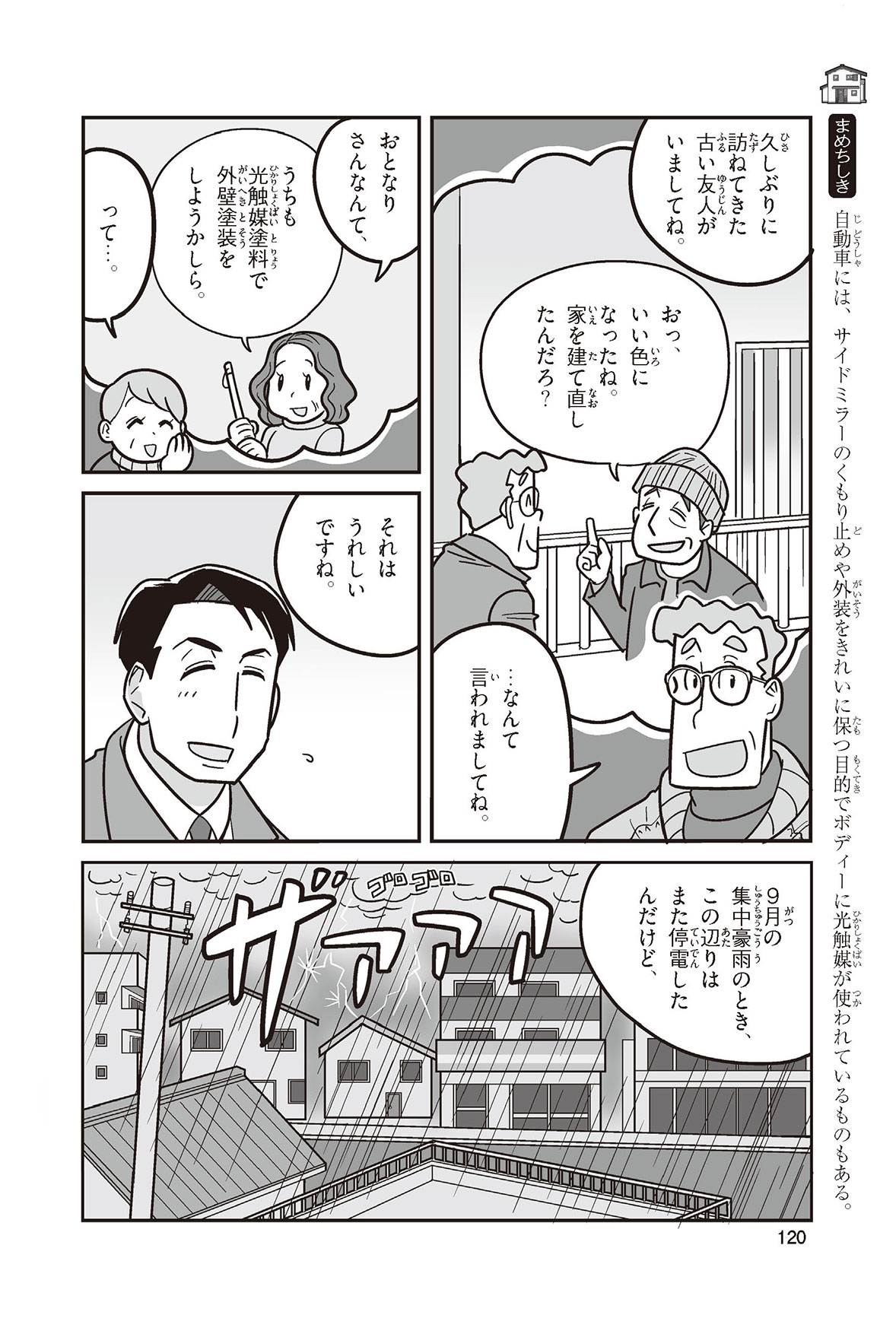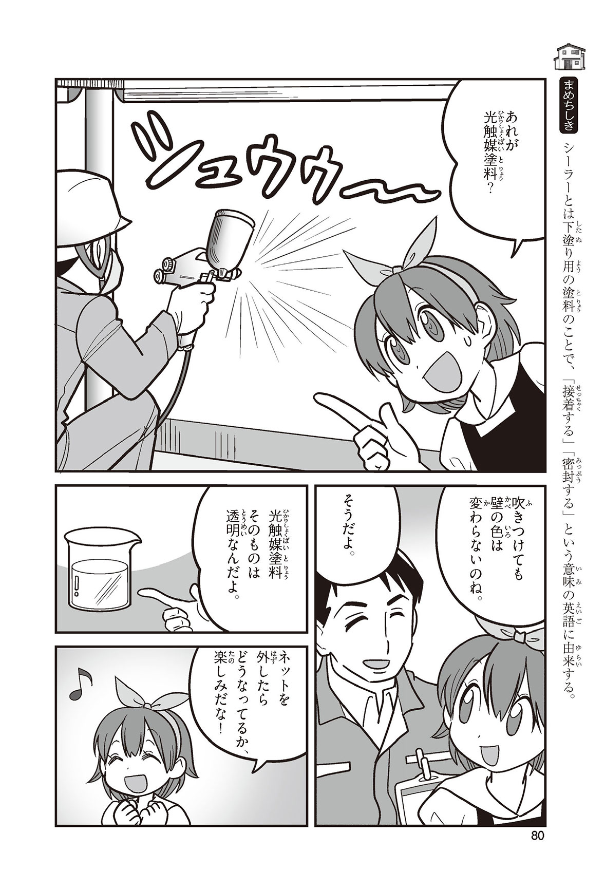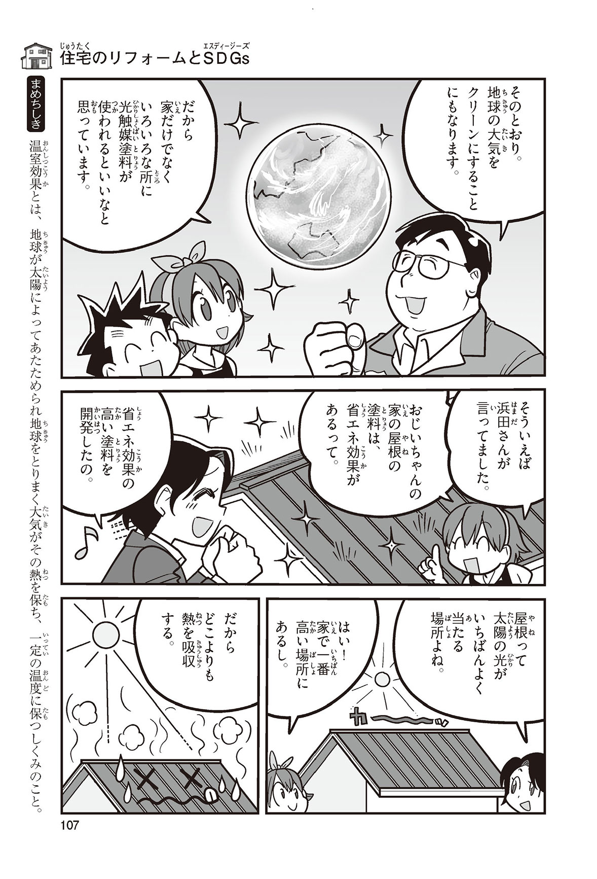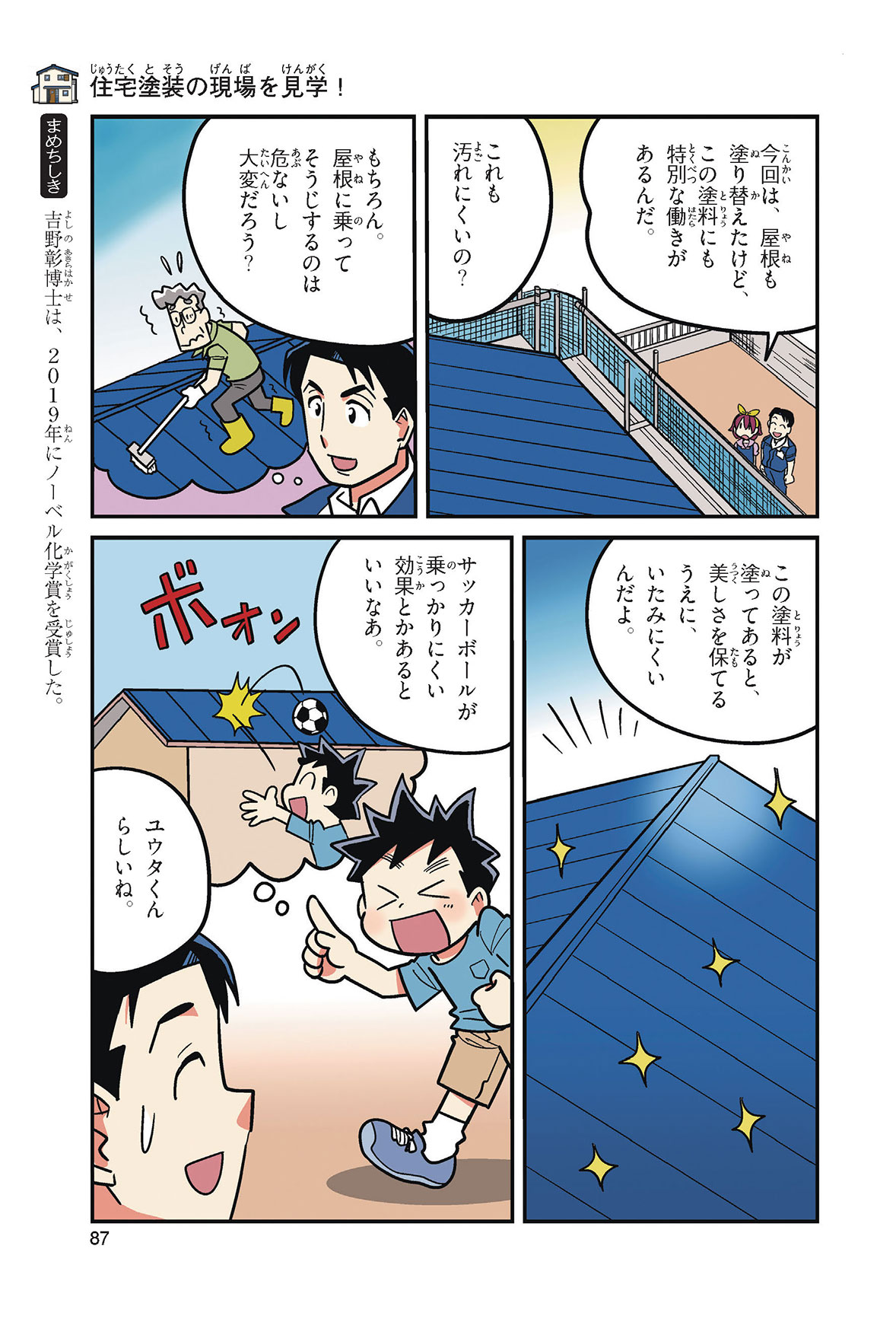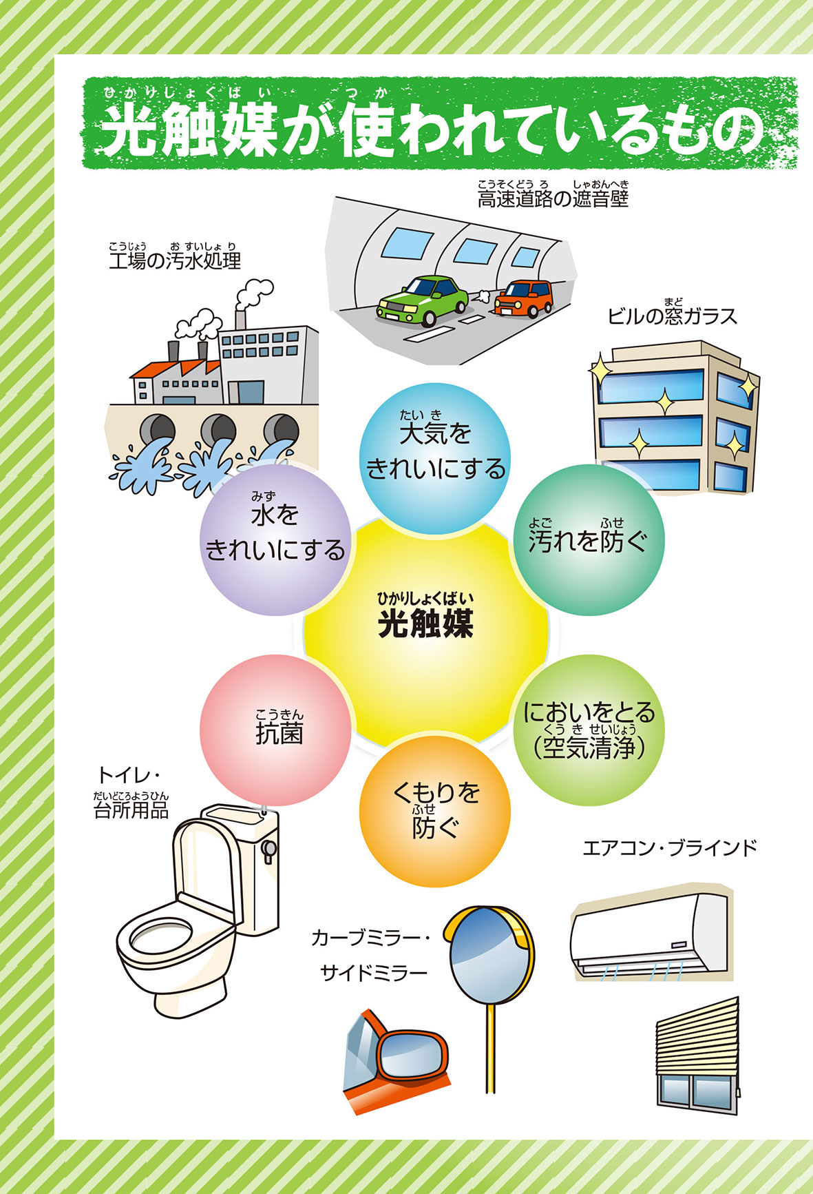 「光触媒」って知っているかな?太陽の光が当たると化学反応を助けてくれる物質で、汚れを落としたり、カビを防いだりする力があるんだ。住宅の外壁は、年数がたつと色があせたりいたんだりするけど、光触媒塗料を塗ると、外壁がきれいなまま長持ちするんだ。そのほかにも、ウイルスの活動をおさえたり、空気をきれいにしたりする力もあるんだ。この本を読めば、光触媒塗料や住宅塗装のことがよくわかるよ!