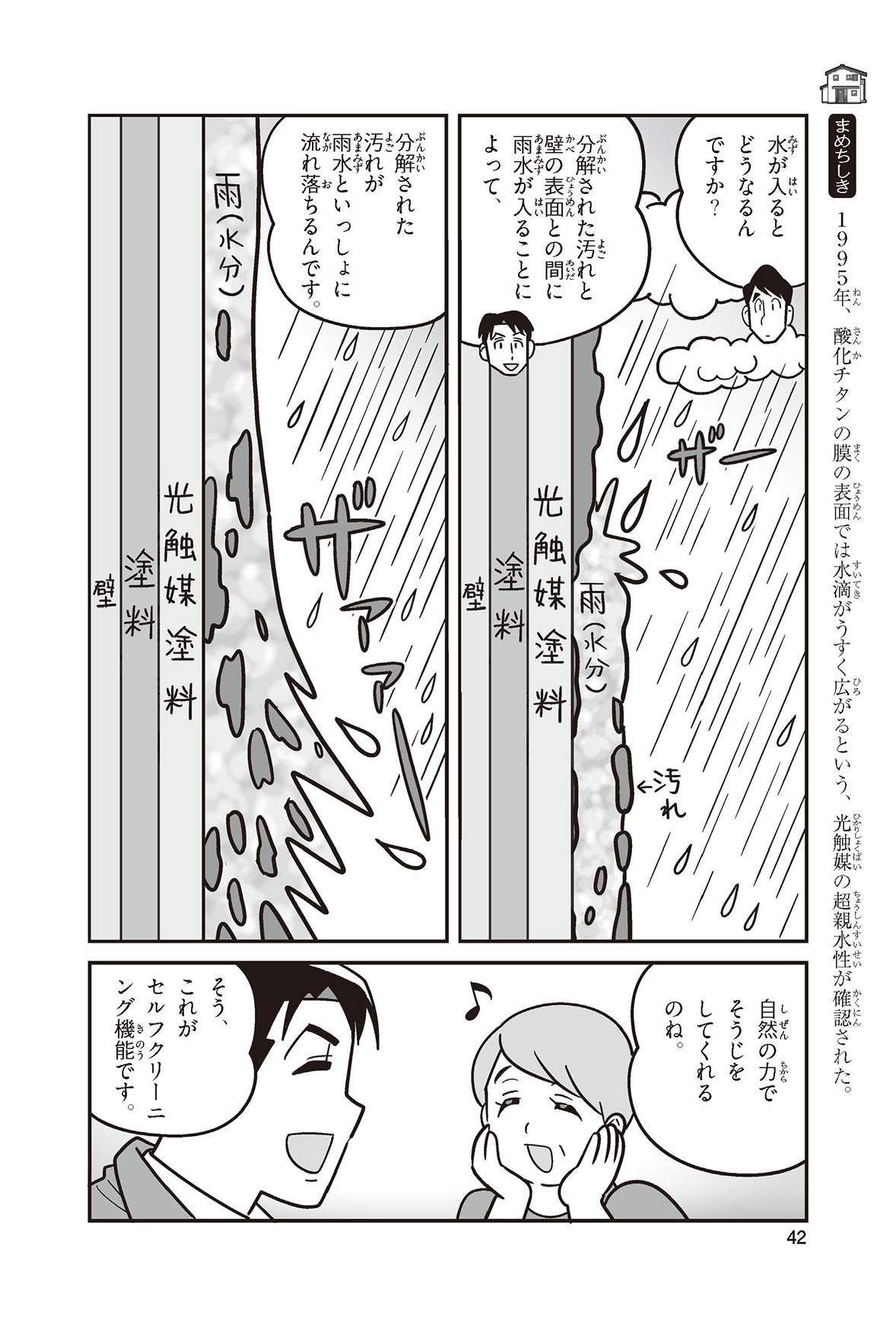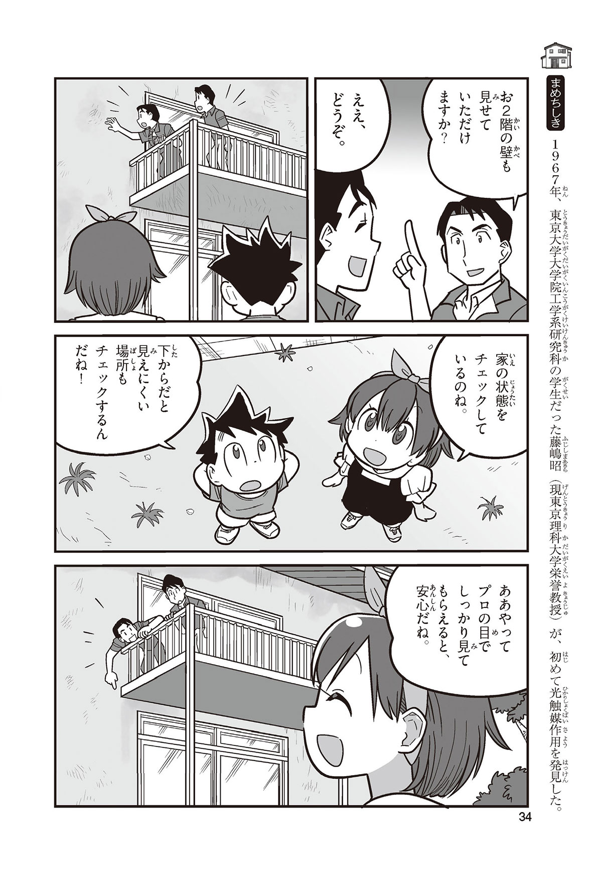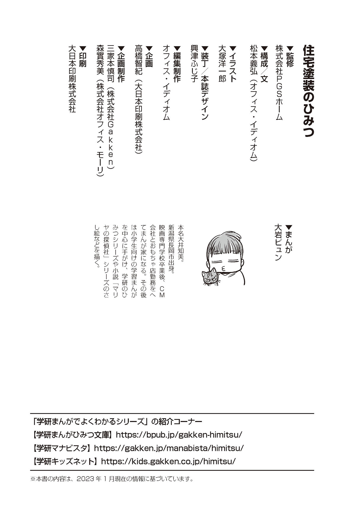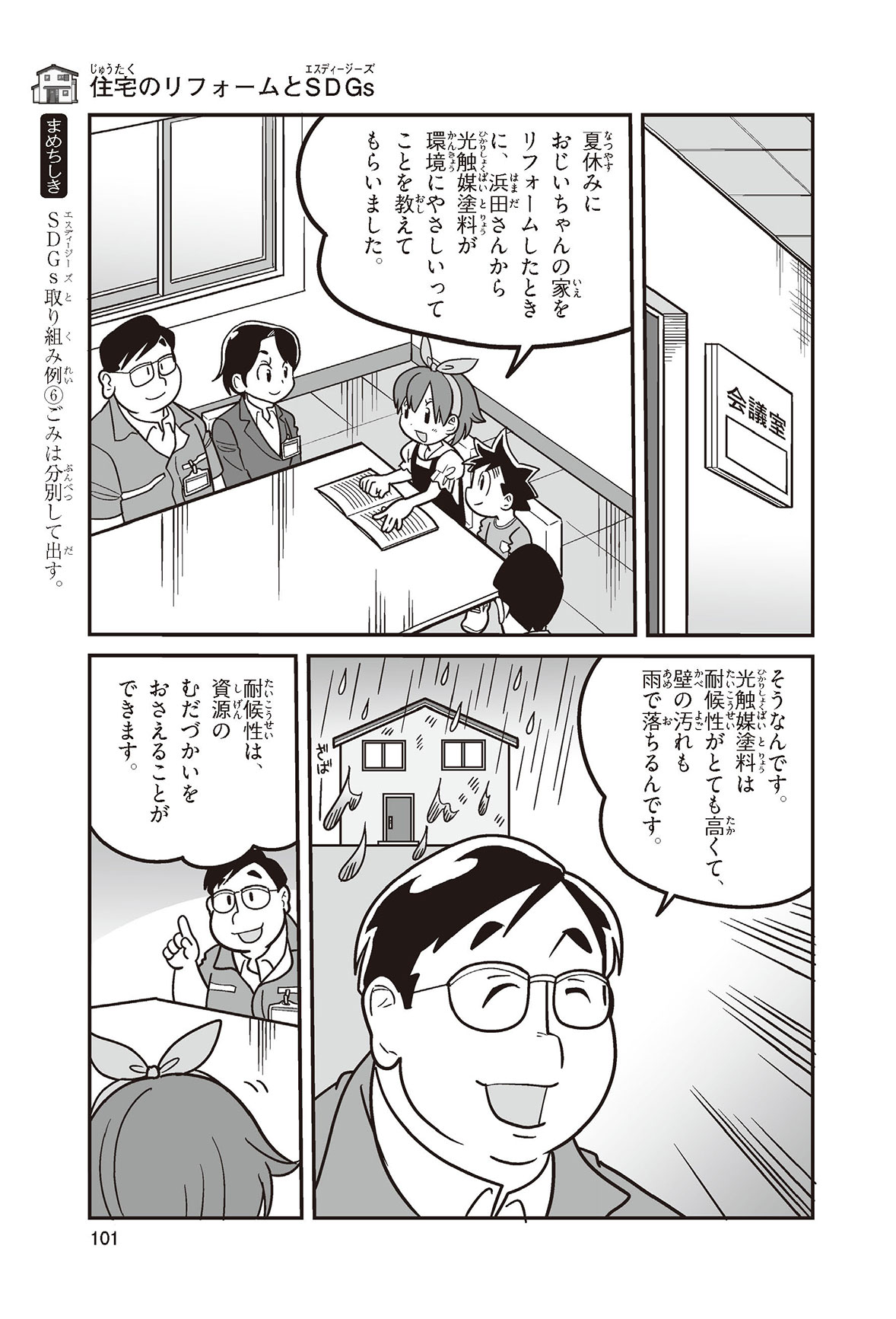 「光触媒」って知っているかな?太陽の光が当たると化学反応を助けてくれる物質で、汚れを落としたり、カビを防いだりする力があるんだ。住宅の外壁は、年数がたつと色があせたりいたんだりするけど、光触媒塗料を塗ると、外壁がきれいなまま長持ちするんだ。そのほかにも、ウイルスの活動をおさえたり、空気をきれいにしたりする力もあるんだ。この本を読めば、光触媒塗料や住宅塗装のことがよくわかるよ!