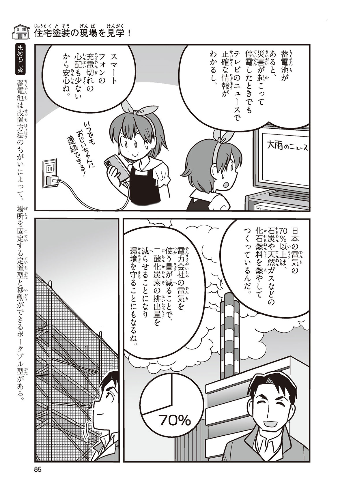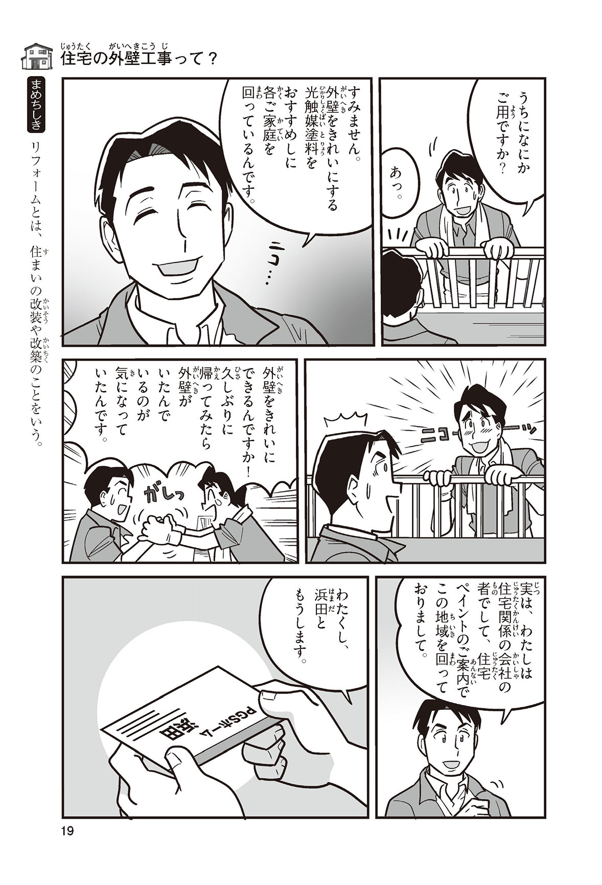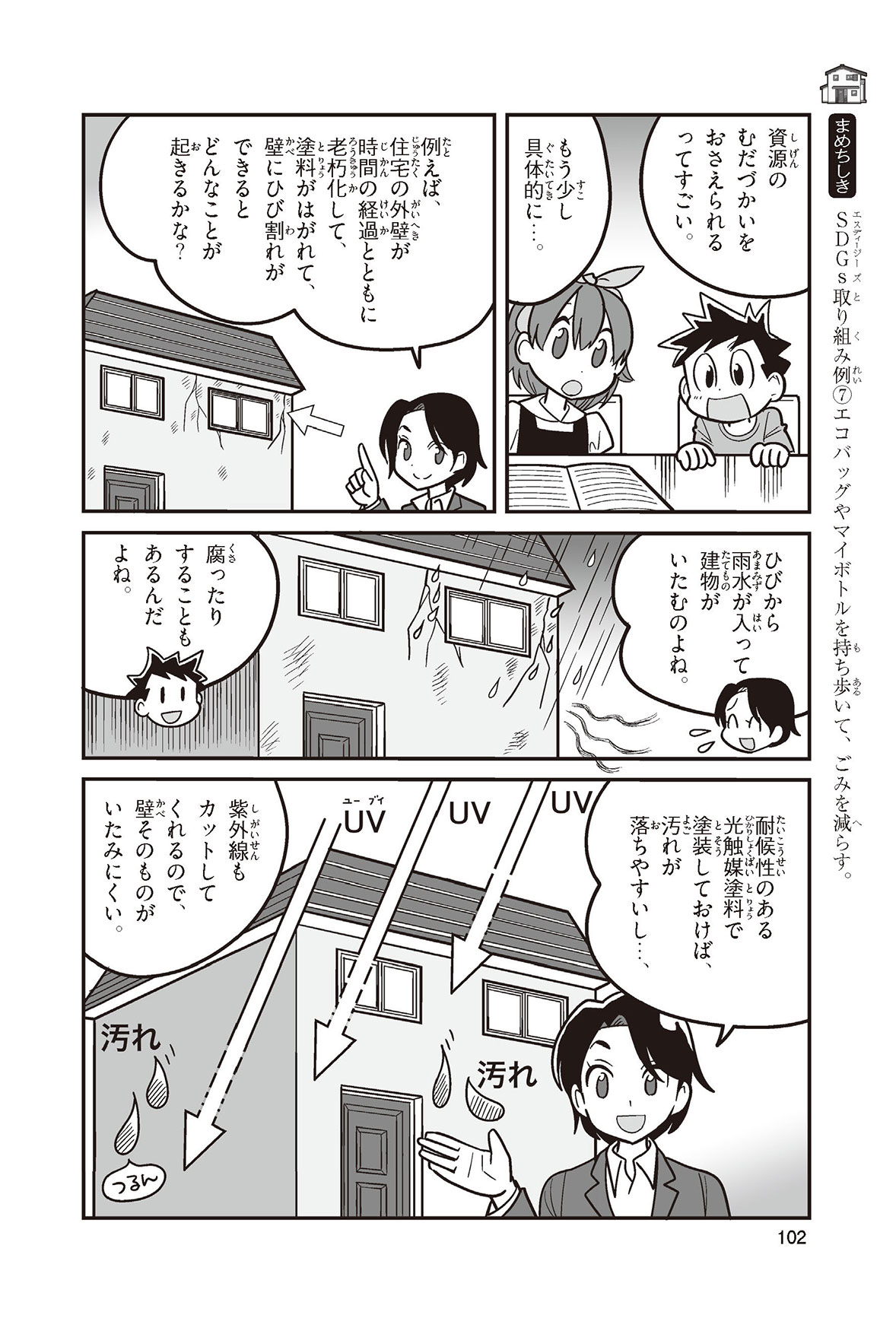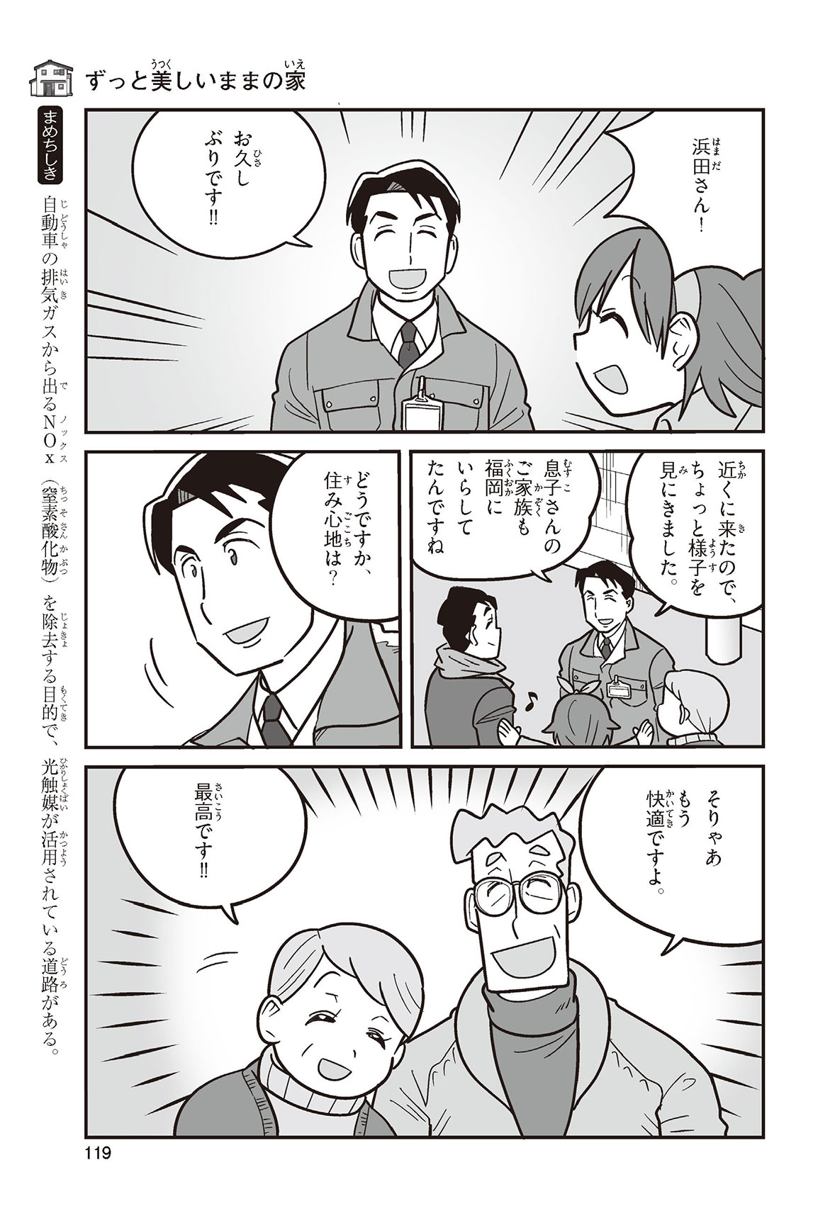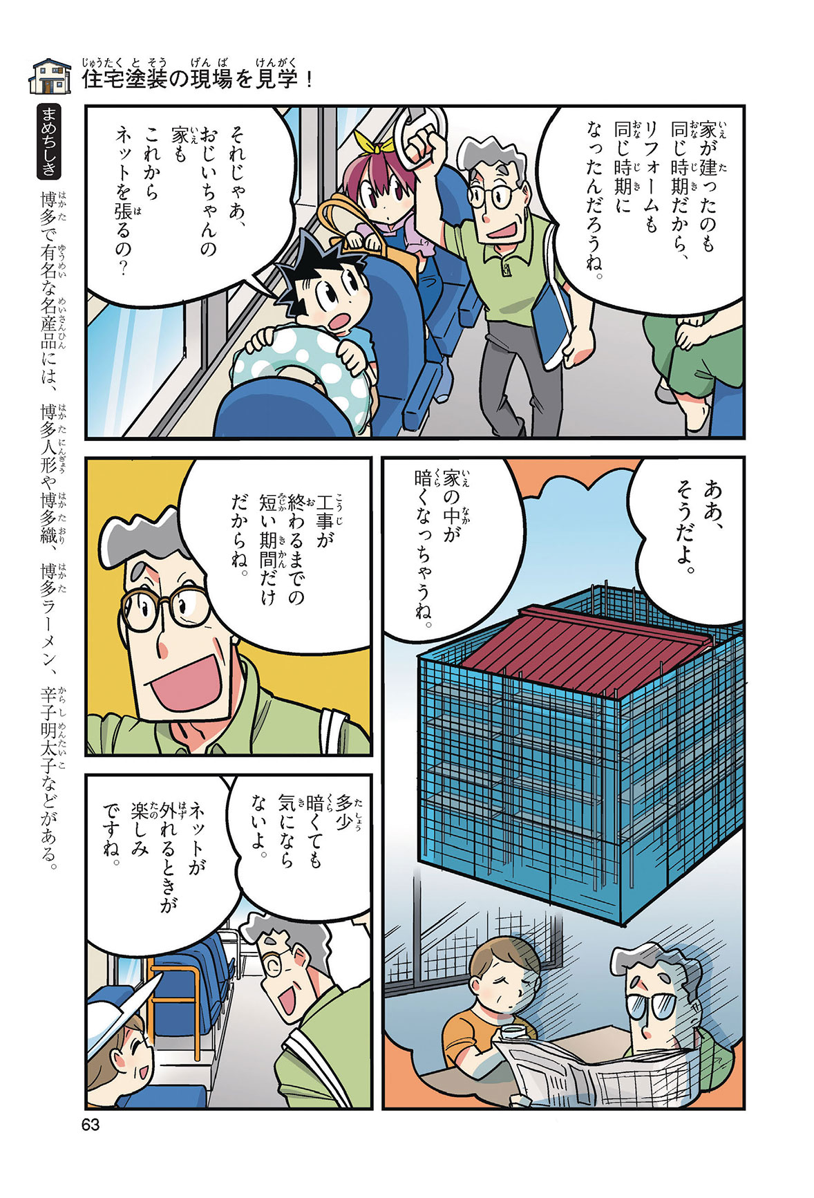 「光触媒」って知っているかな?太陽の光が当たると化学反応を助けてくれる物質で、汚れを落としたり、カビを防いだりする力があるんだ。住宅の外壁は、年数がたつと色があせたりいたんだりするけど、光触媒塗料を塗ると、外壁がきれいなまま長持ちするんだ。そのほかにも、ウイルスの活動をおさえたり、空気をきれいにしたりする力もあるんだ。この本を読めば、光触媒塗料や住宅塗装のことがよくわかるよ!
