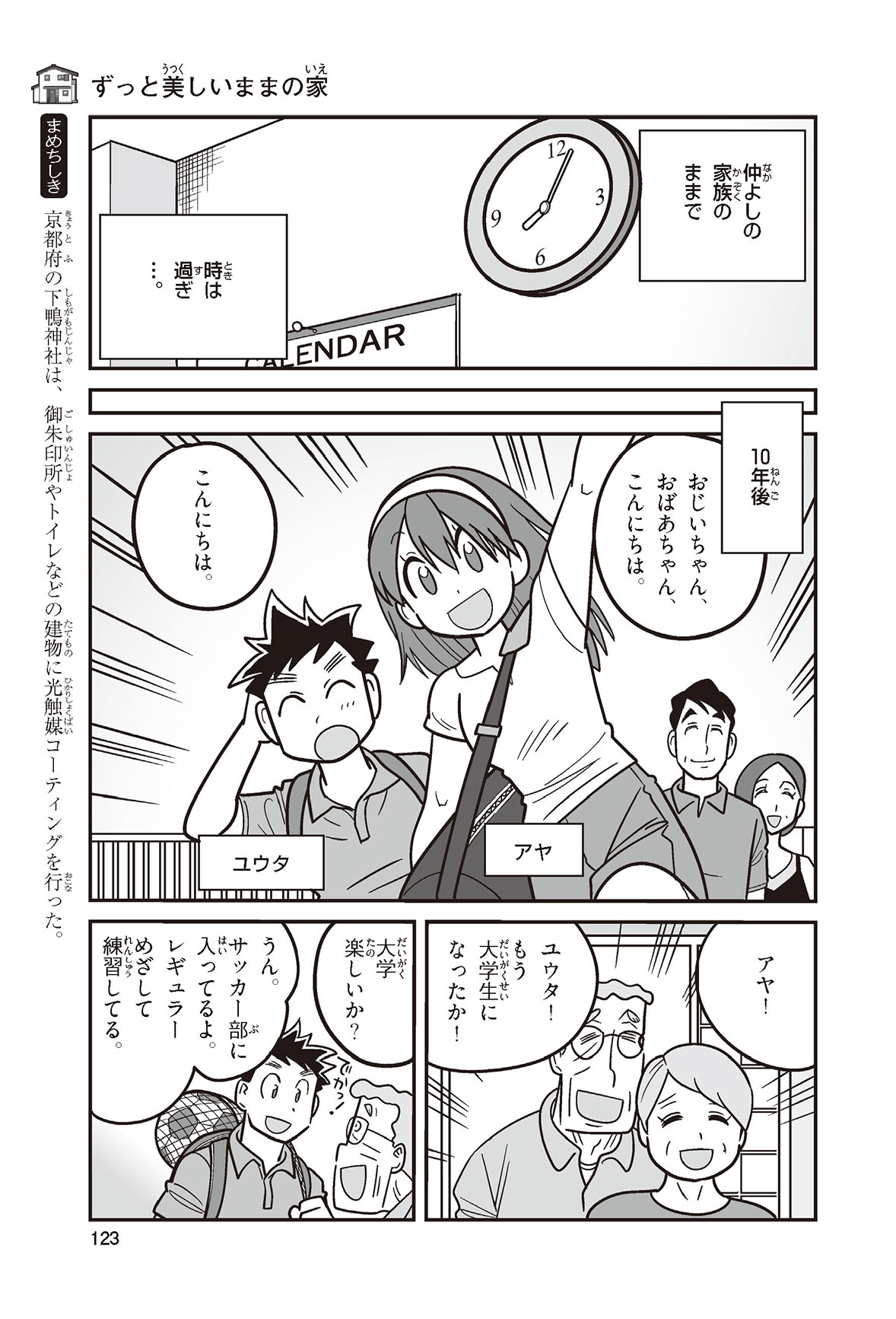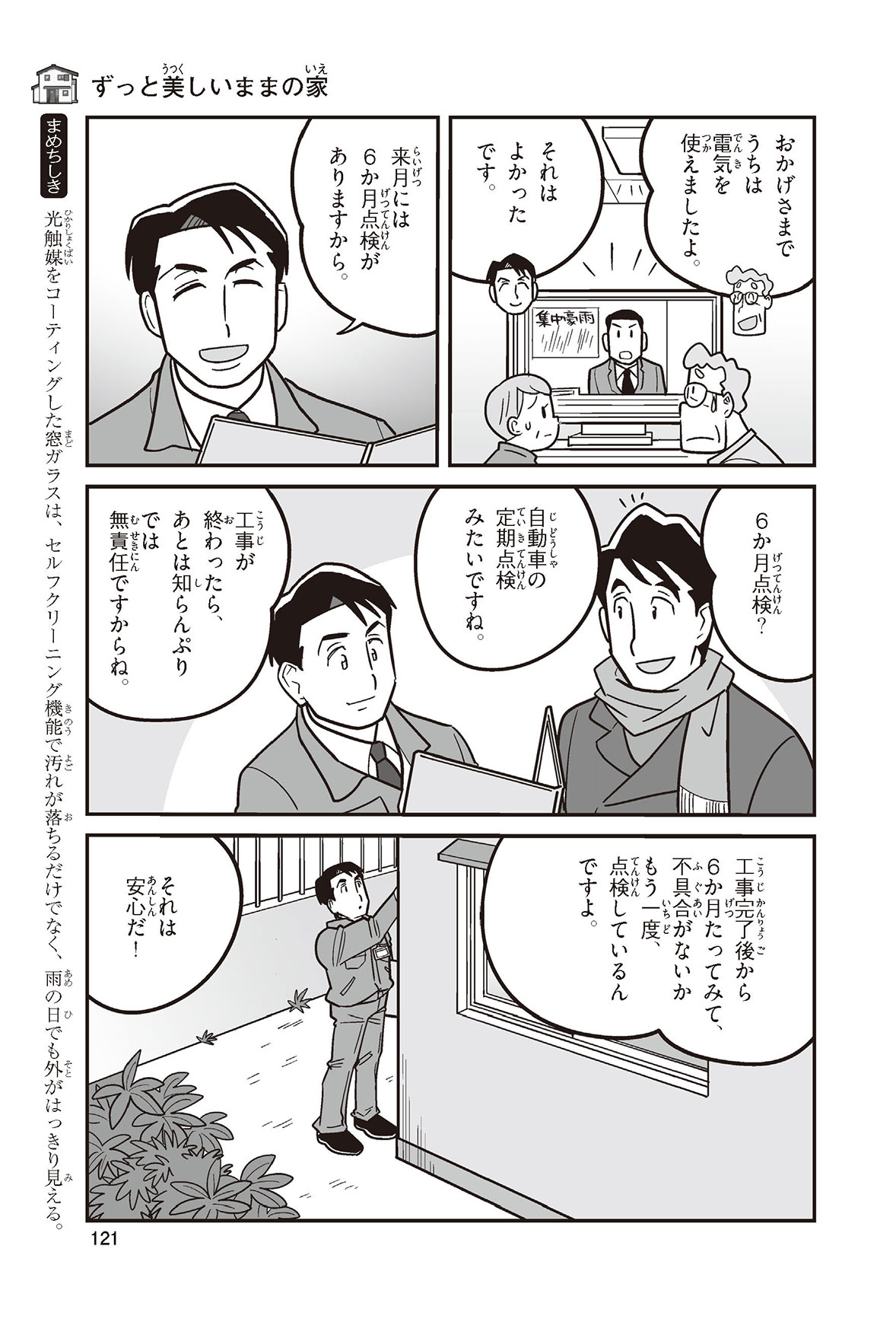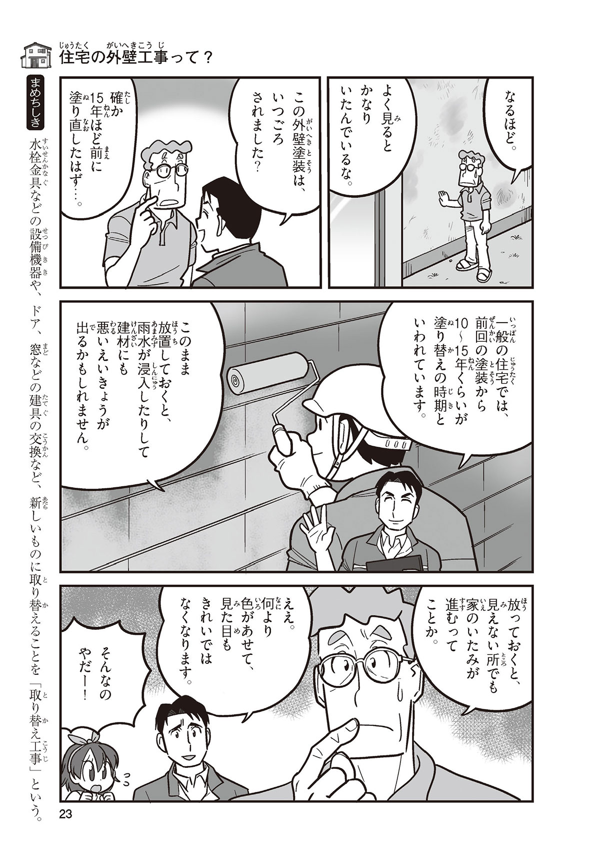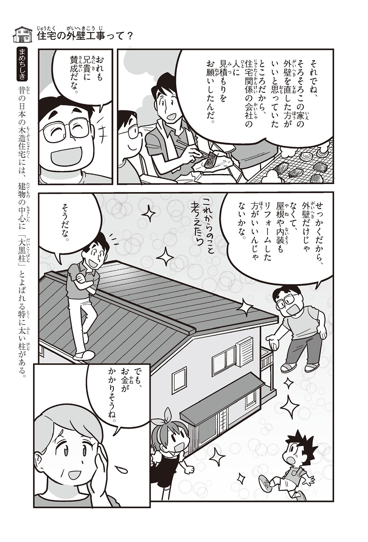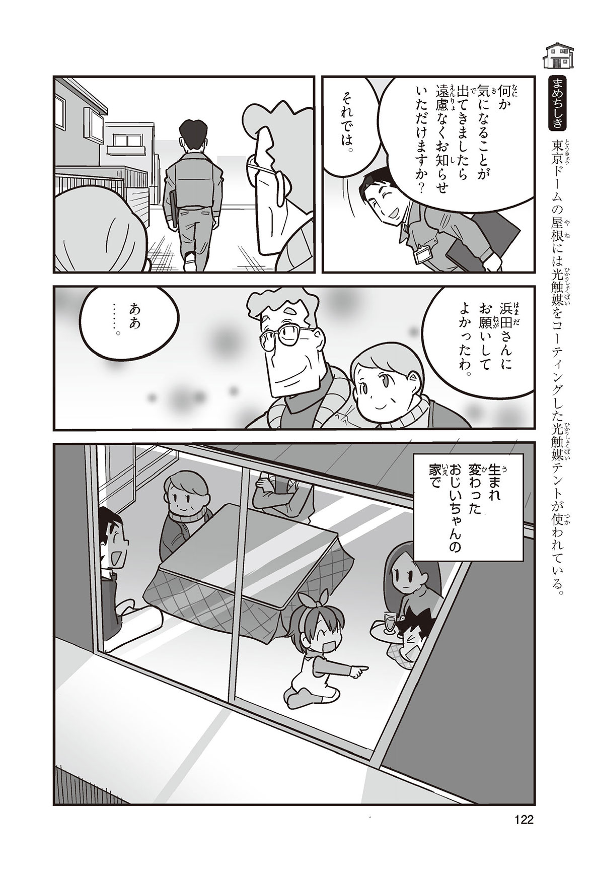 「光触媒」って知っているかな?太陽の光が当たると化学反応を助けてくれる物質で、汚れを落としたり、カビを防いだりする力があるんだ。住宅の外壁は、年数がたつと色があせたりいたんだりするけど、光触媒塗料を塗ると、外壁がきれいなまま長持ちするんだ。そのほかにも、ウイルスの活動をおさえたり、空気をきれいにしたりする力もあるんだ。この本を読めば、光触媒塗料や住宅塗装のことがよくわかるよ!
