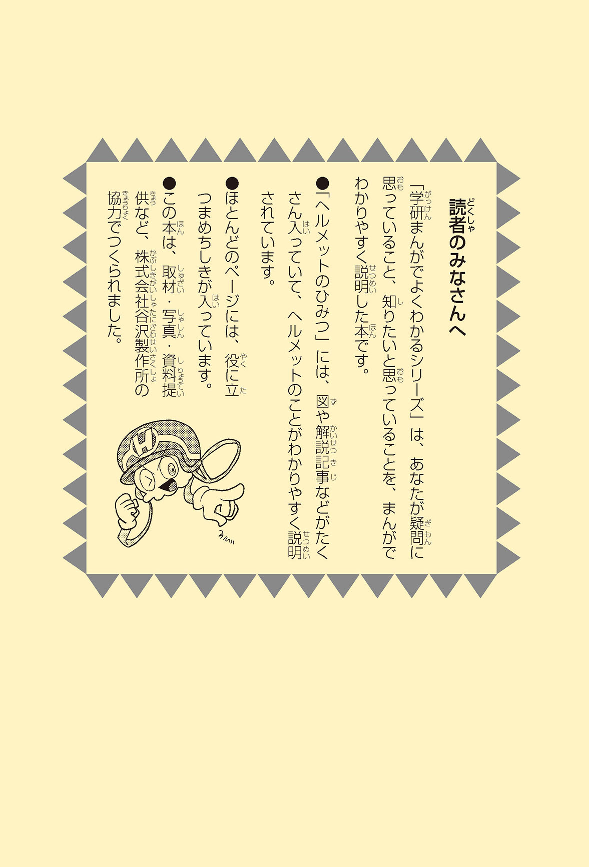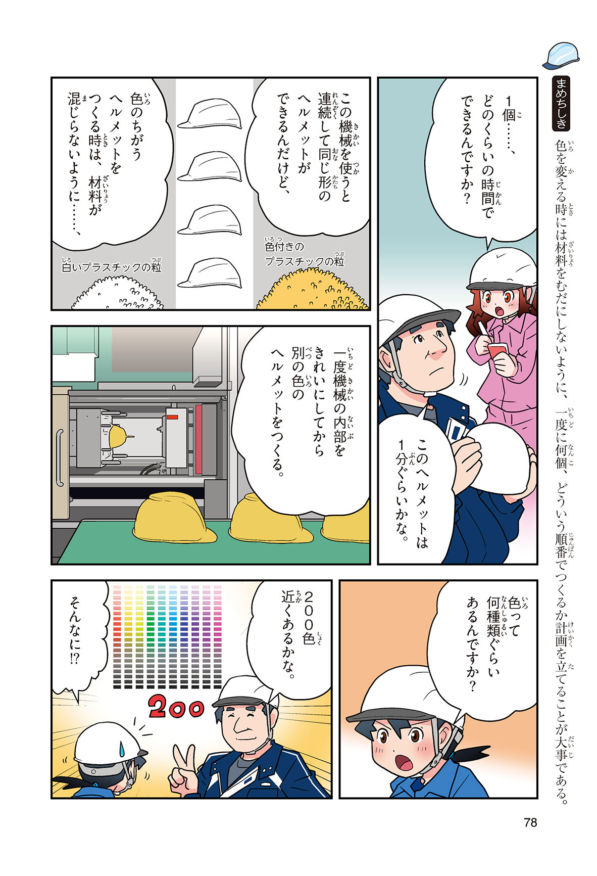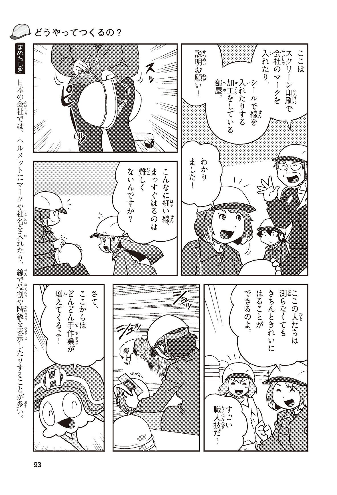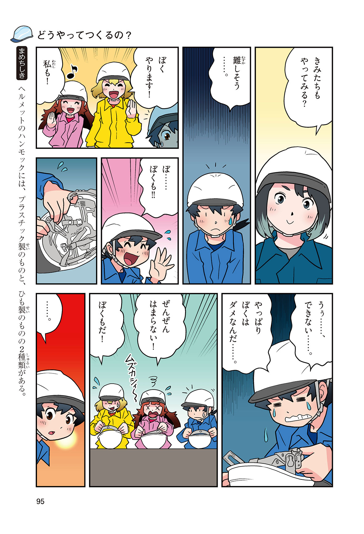 工場や工事現場、警察官に消防士さん……、みんなの身の回りでは、いろいろな仕事をする人たちがヘルメットをかぶって働いているね。働く人の頭を守るヘルメットを、産業用ヘルメットというんだって。どんな材料で、どんな方法でつくられているんだろう? いつから使われるようになったのかな? この本を読めば、ヘルメットのしくみや役割がよくわかるよ。