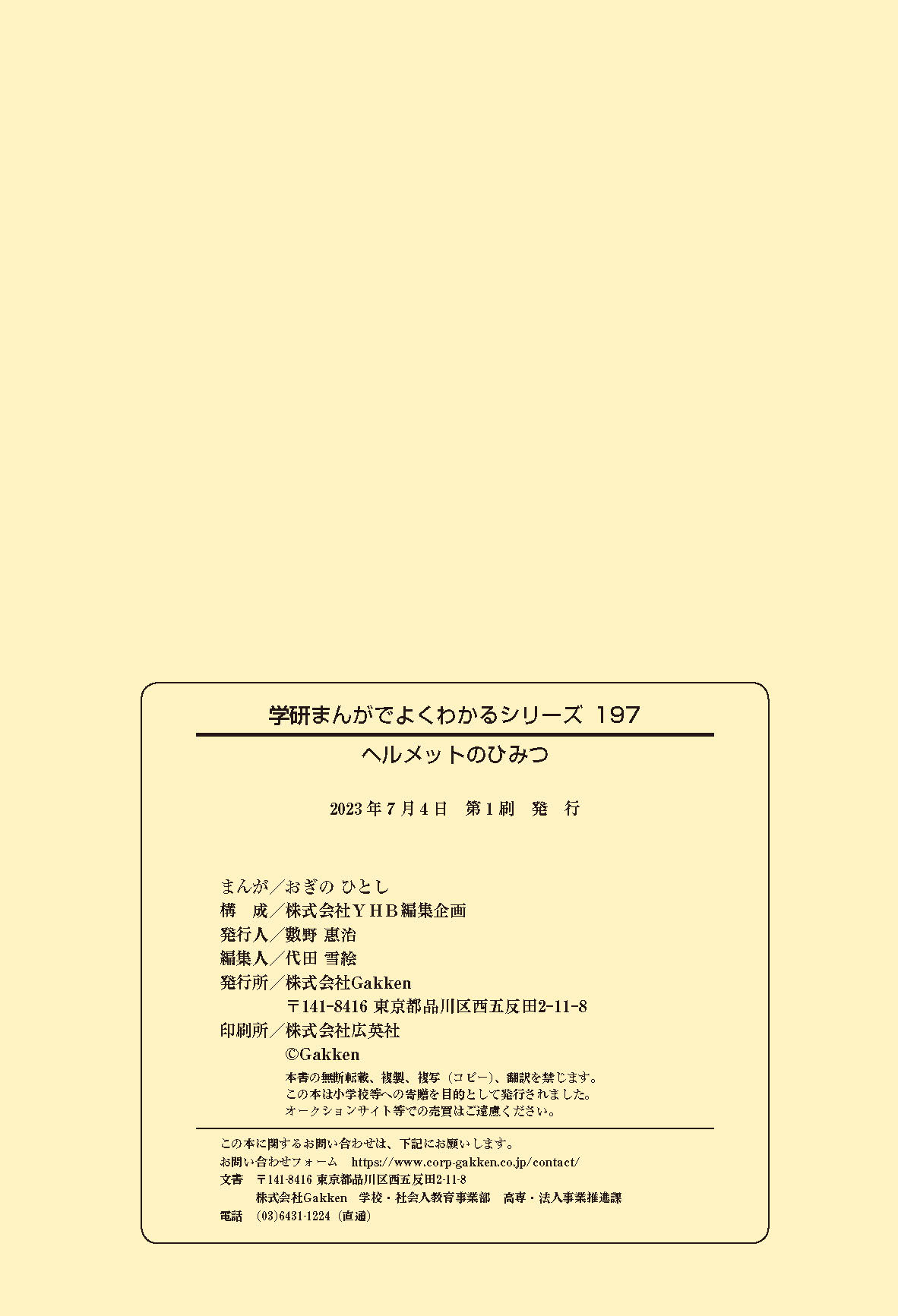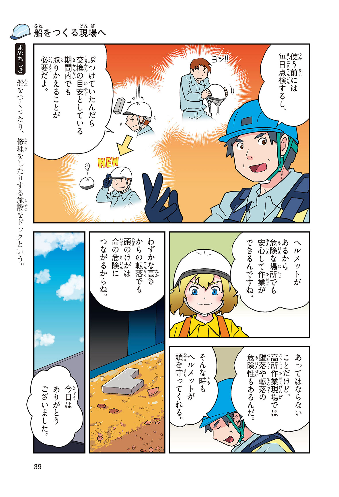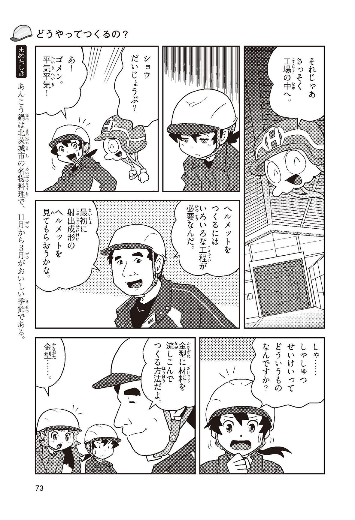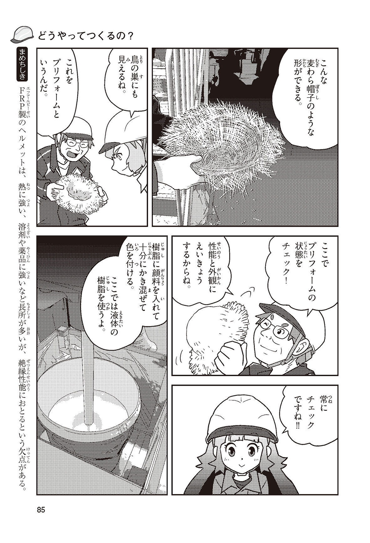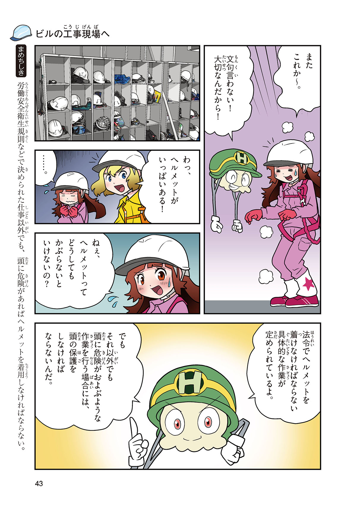 工場や工事現場、警察官に消防士さん……、みんなの身の回りでは、いろいろな仕事をする人たちがヘルメットをかぶって働いているね。働く人の頭を守るヘルメットを、産業用ヘルメットというんだって。どんな材料で、どんな方法でつくられているんだろう? いつから使われるようになったのかな? この本を読めば、ヘルメットのしくみや役割がよくわかるよ。