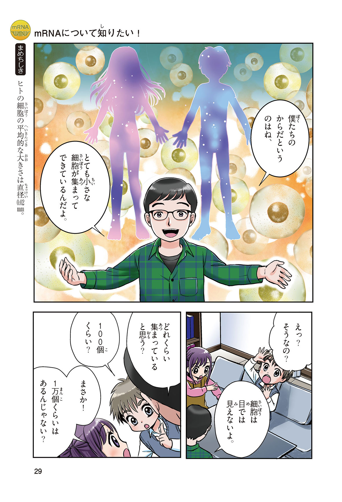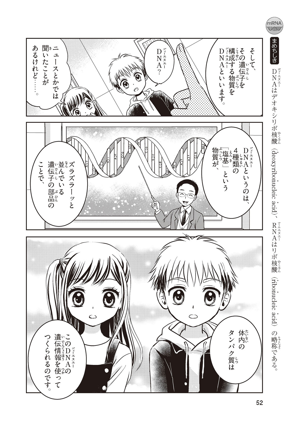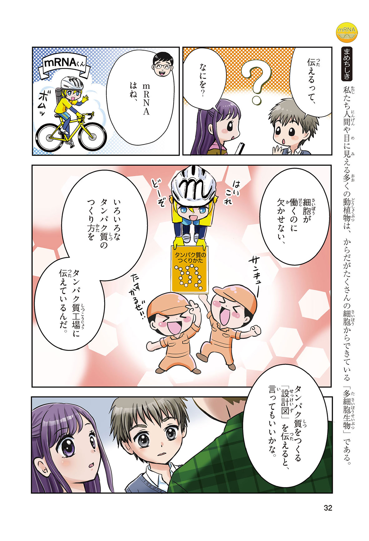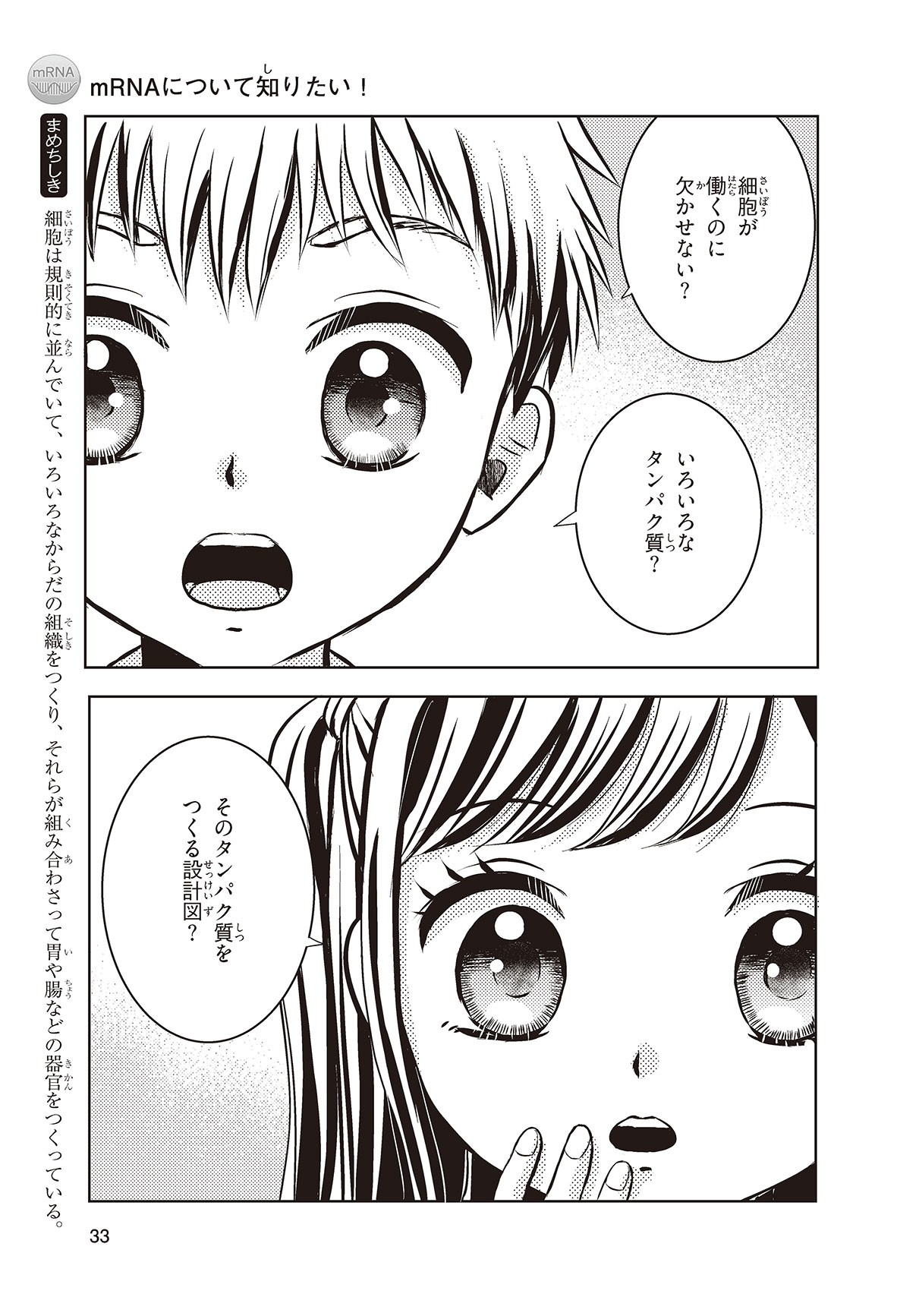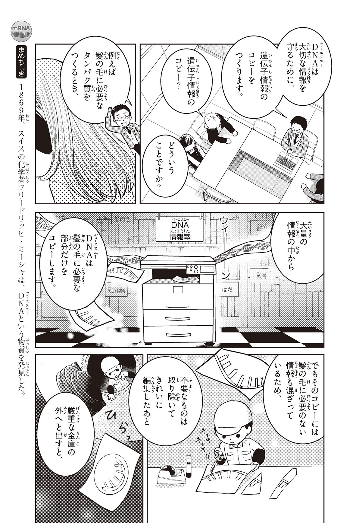 カギをにぎるのが、「mRNA」という物質なんだ。