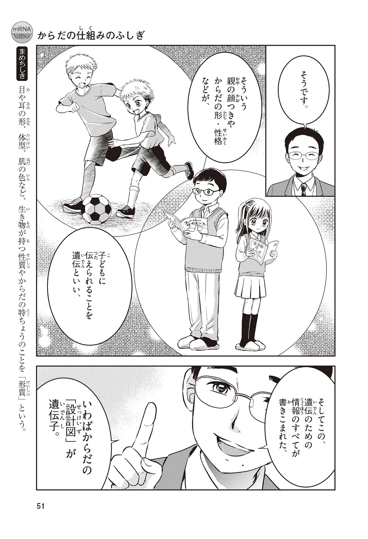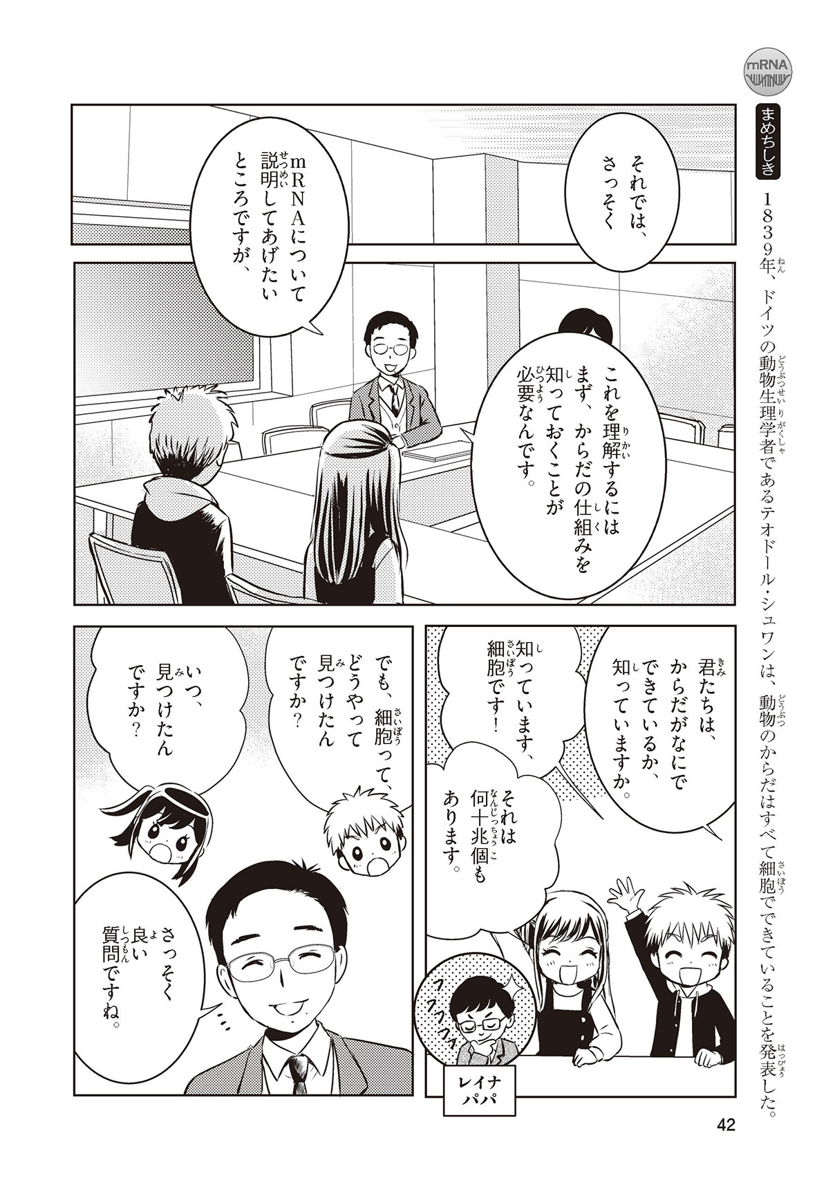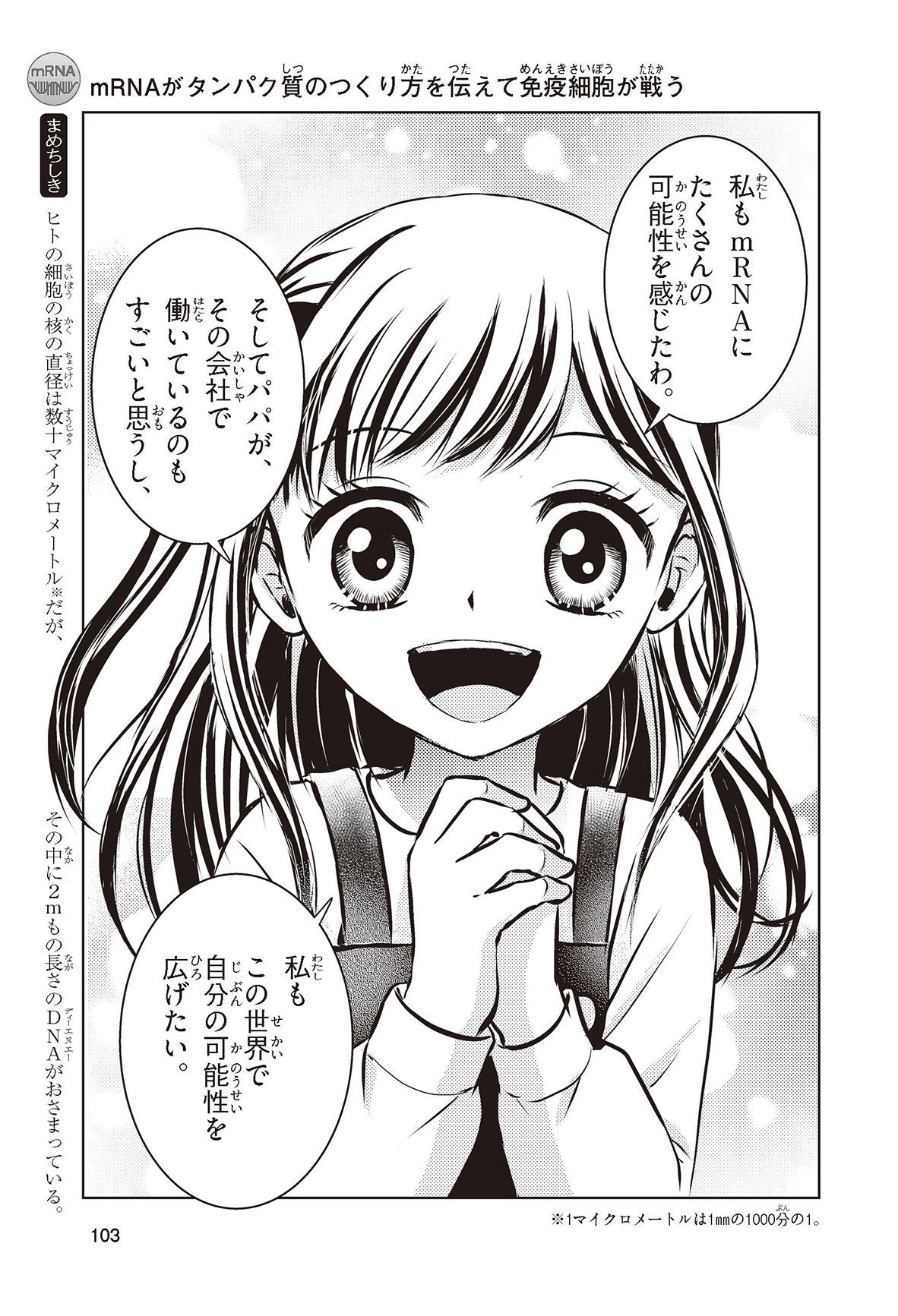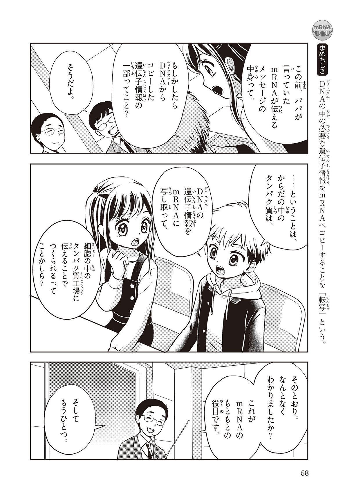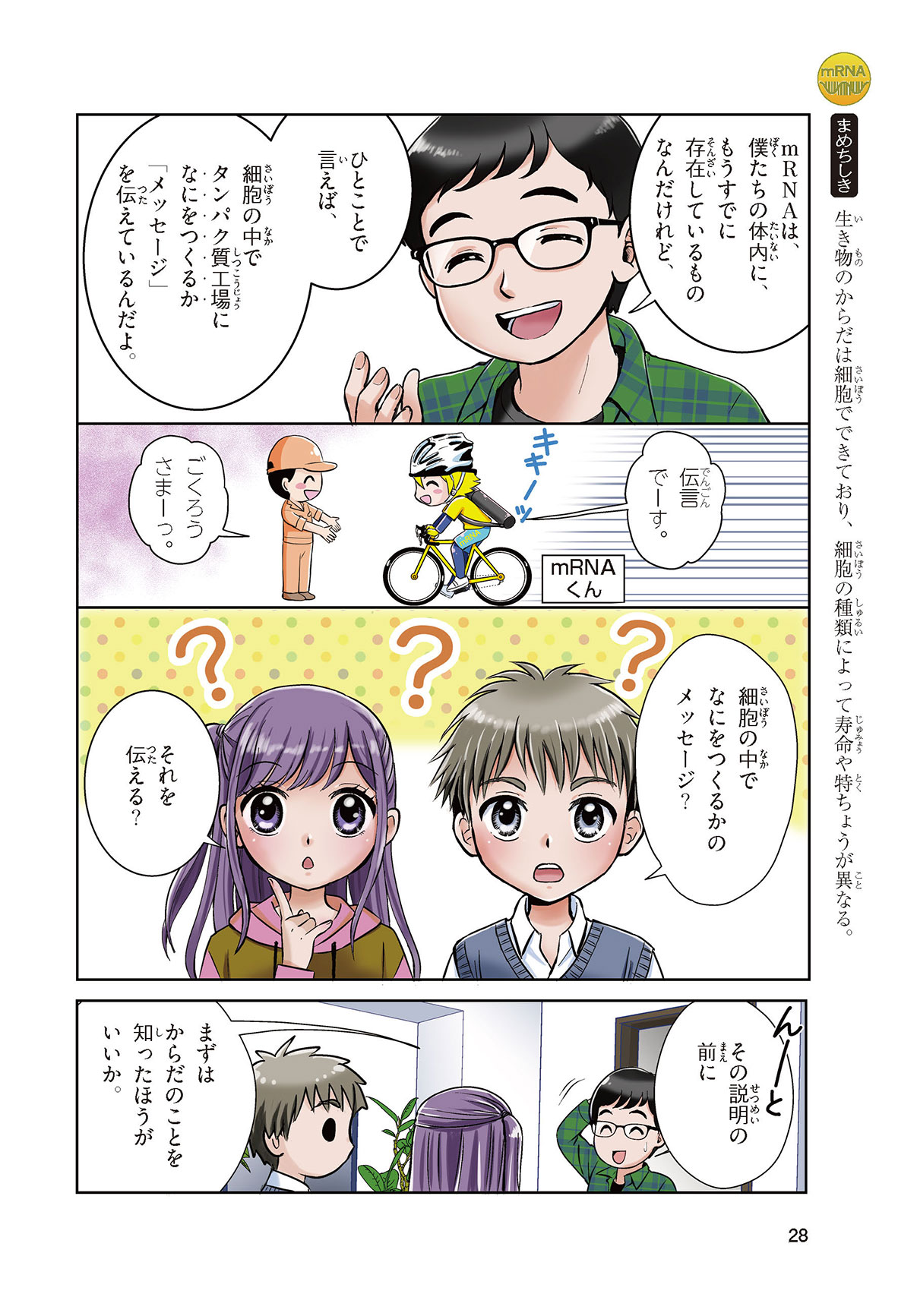 カギをにぎるのが、「mRNA」という物質なんだ。