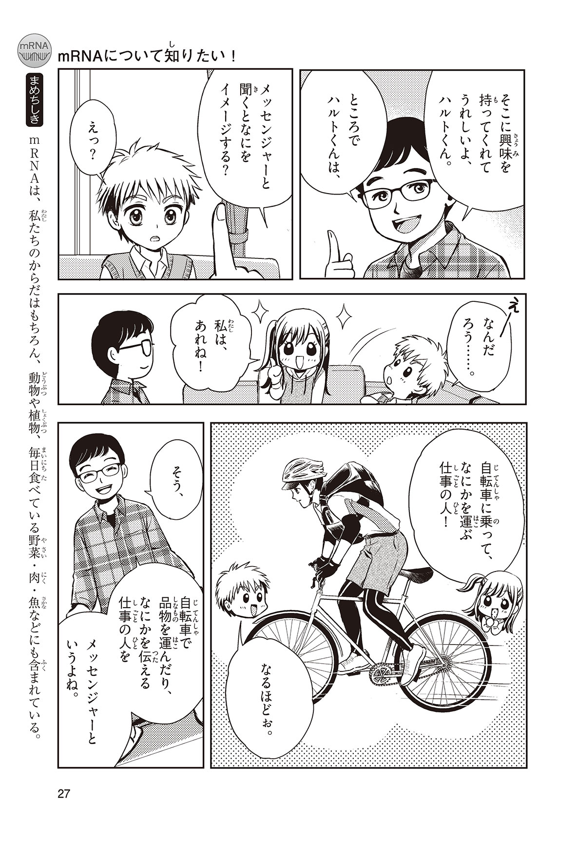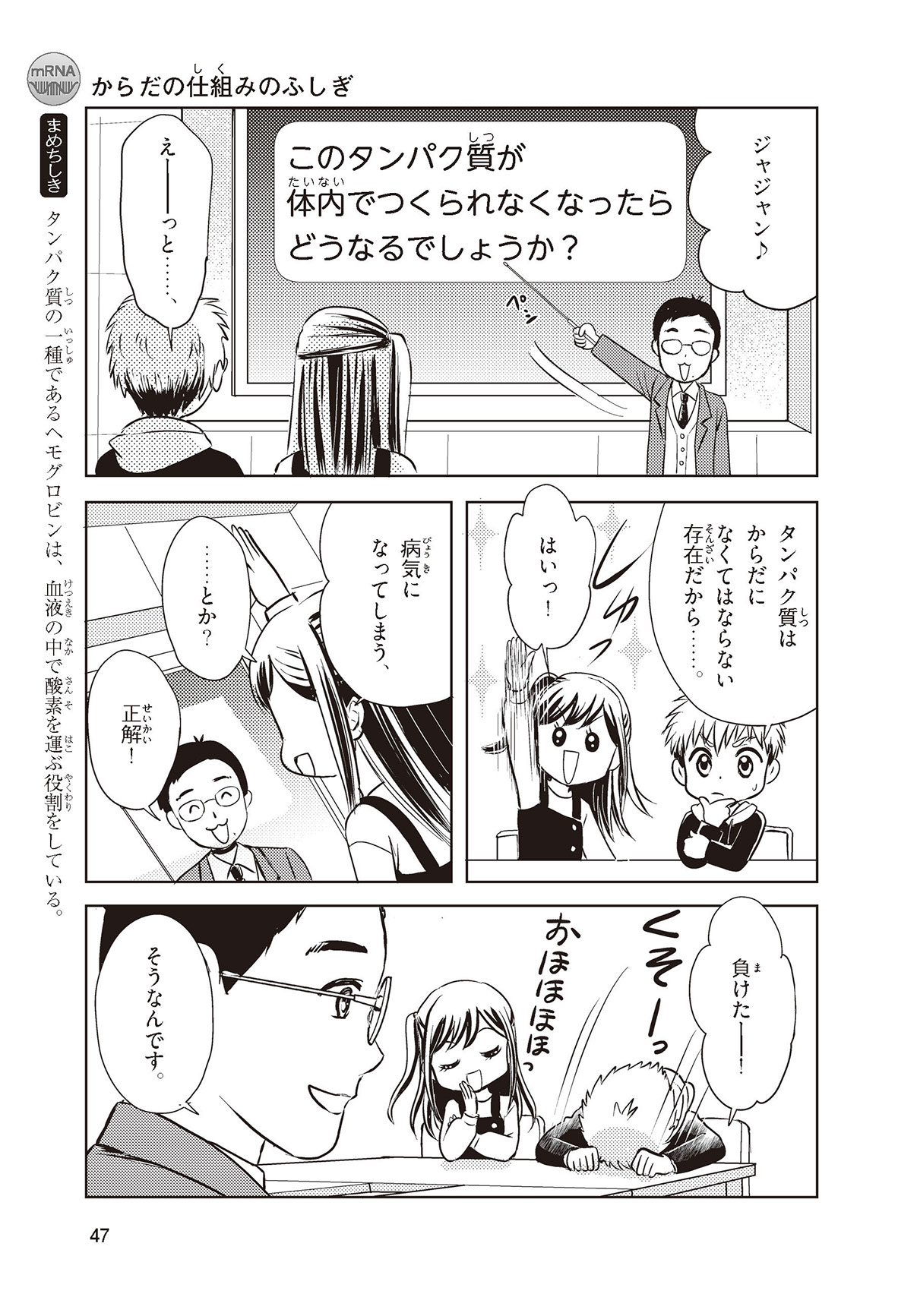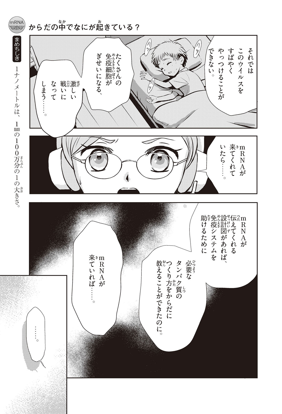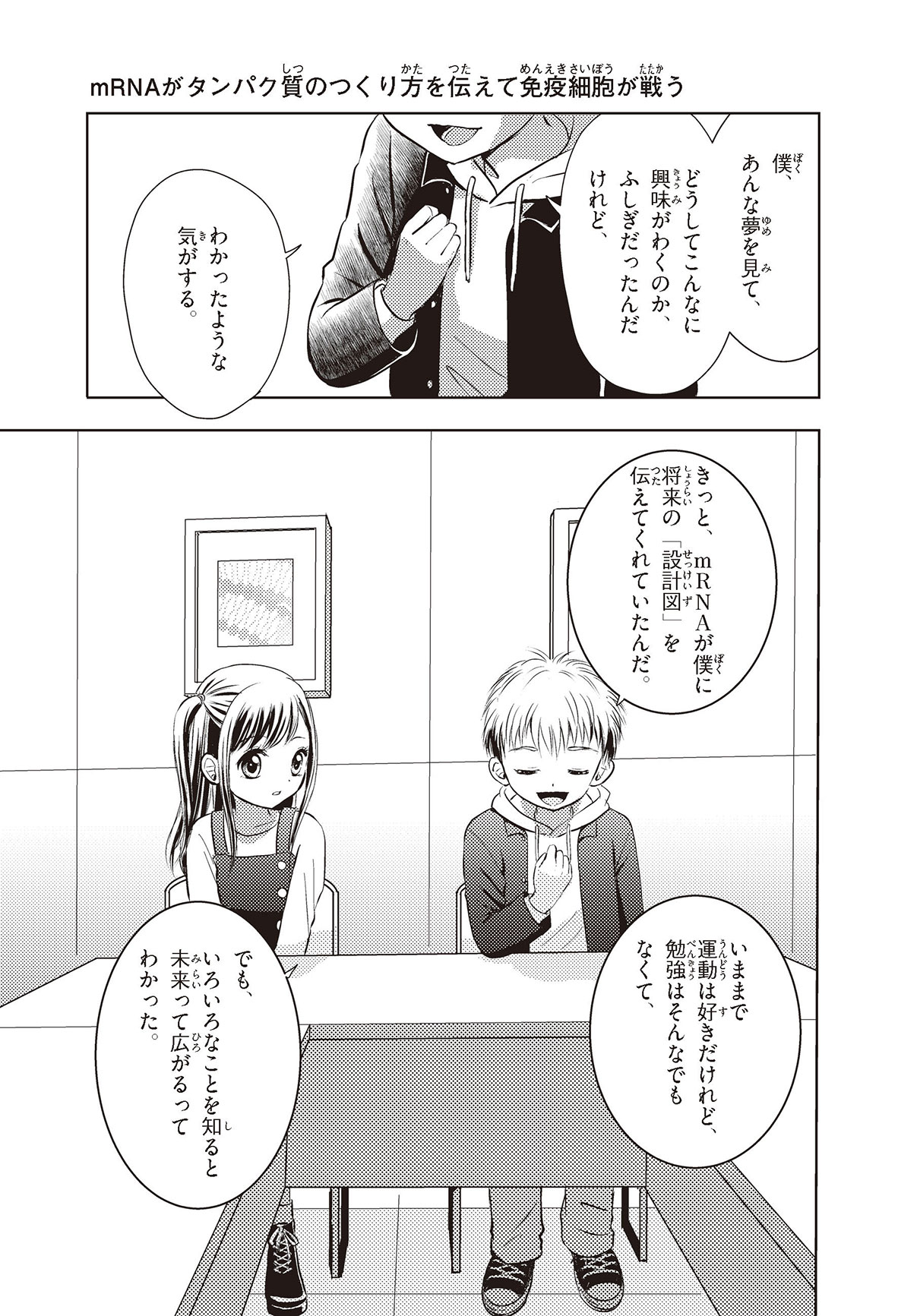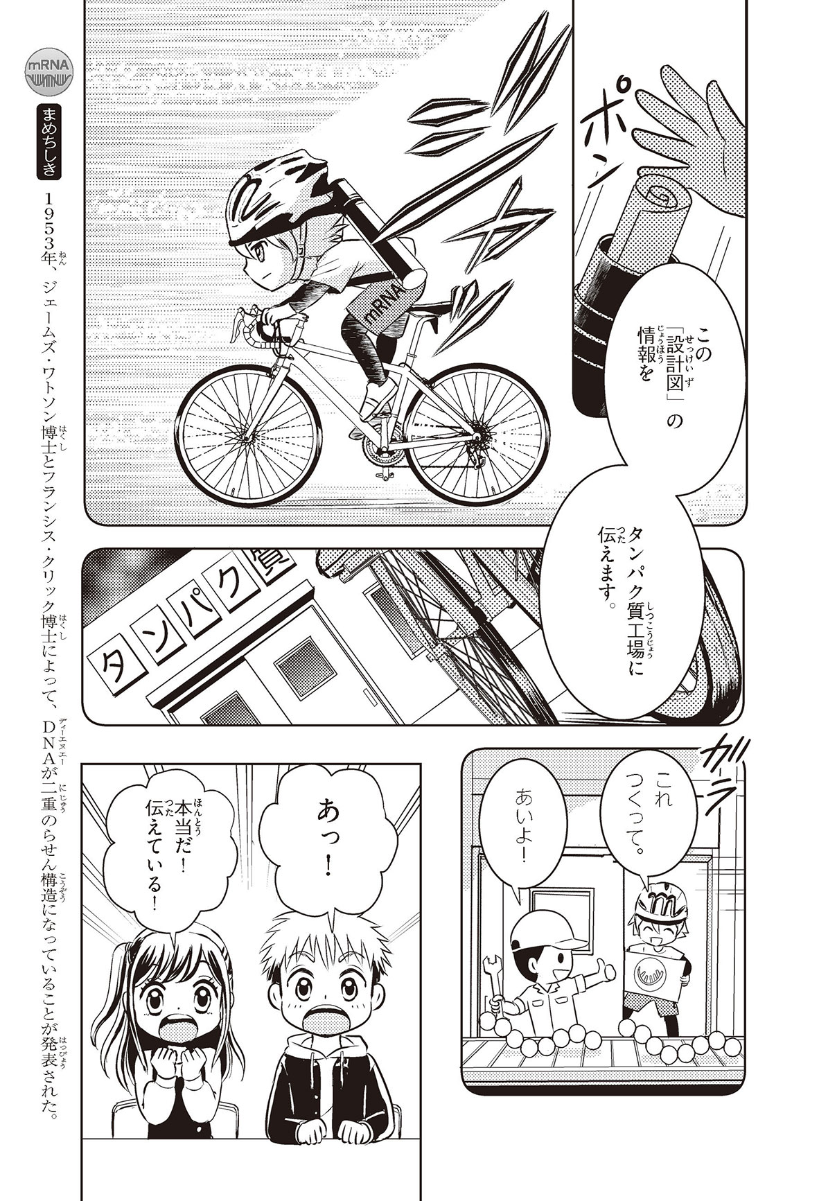 カギをにぎるのが、「mRNA」という物質なんだ。