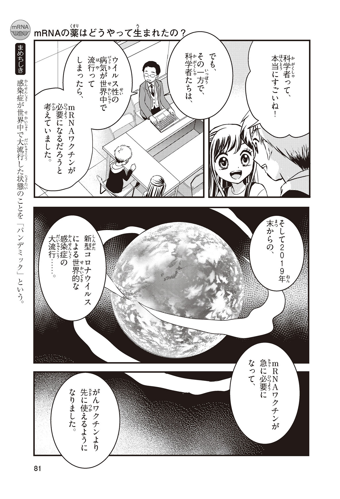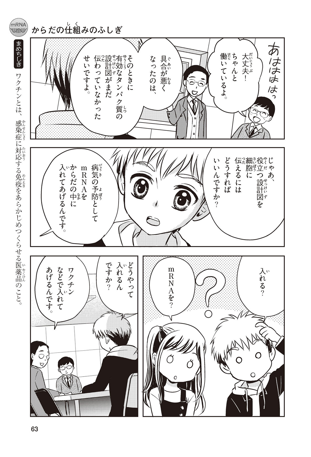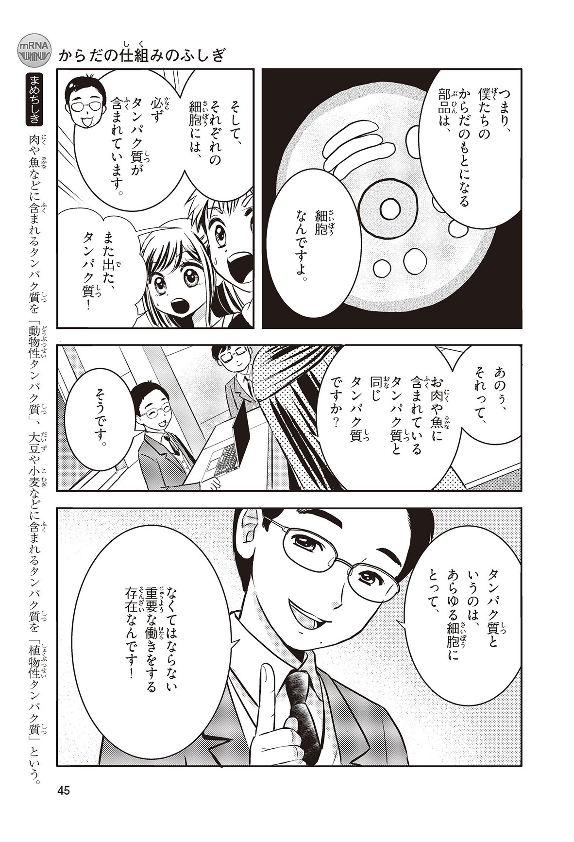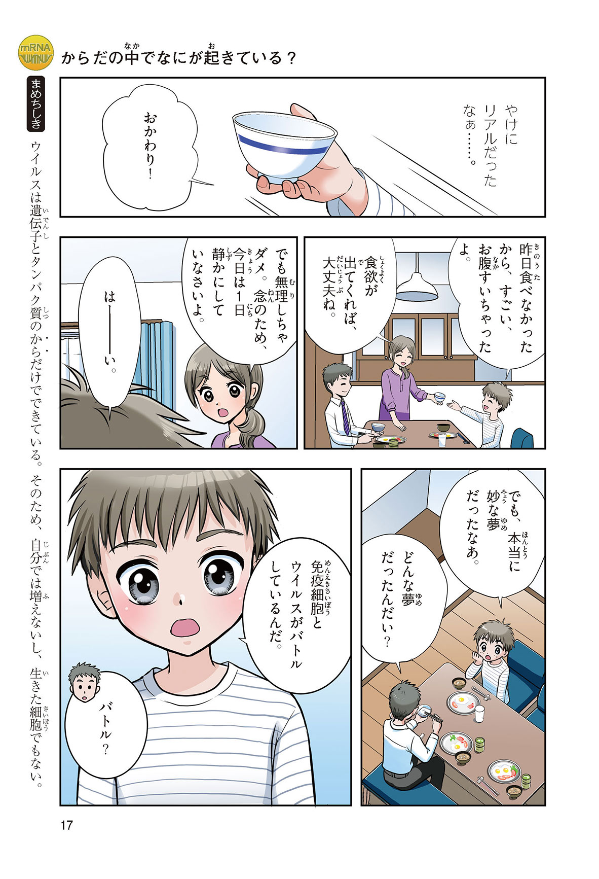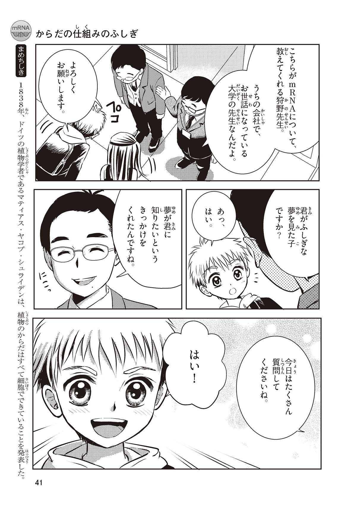 カギをにぎるのが、「mRNA」という物質なんだ。