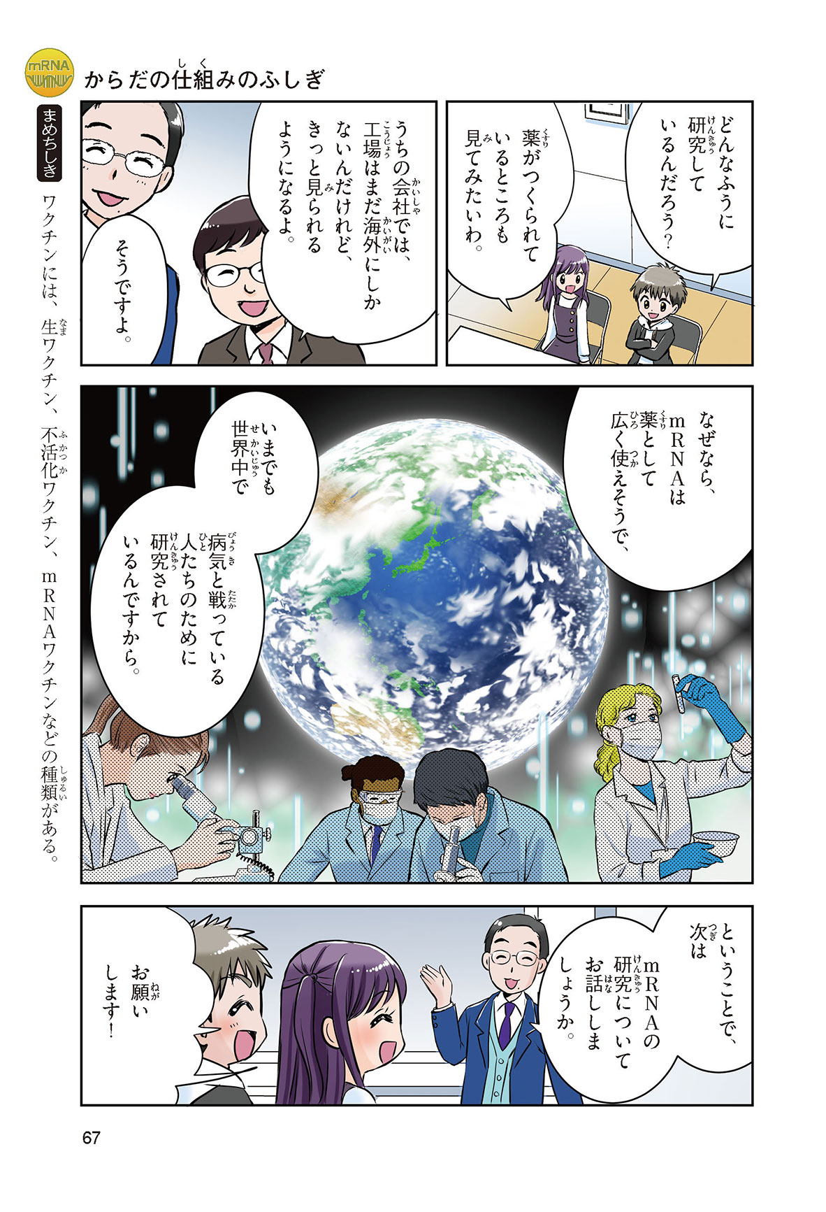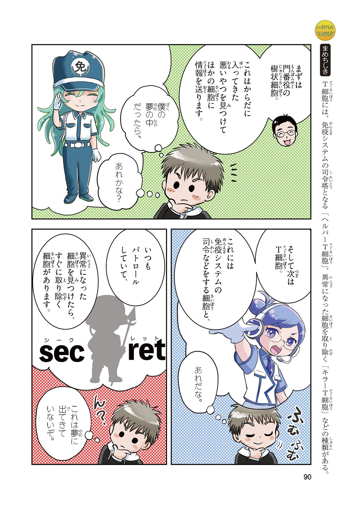 mRNAは、もともと私たちのからだの中にあって働いているよ。
