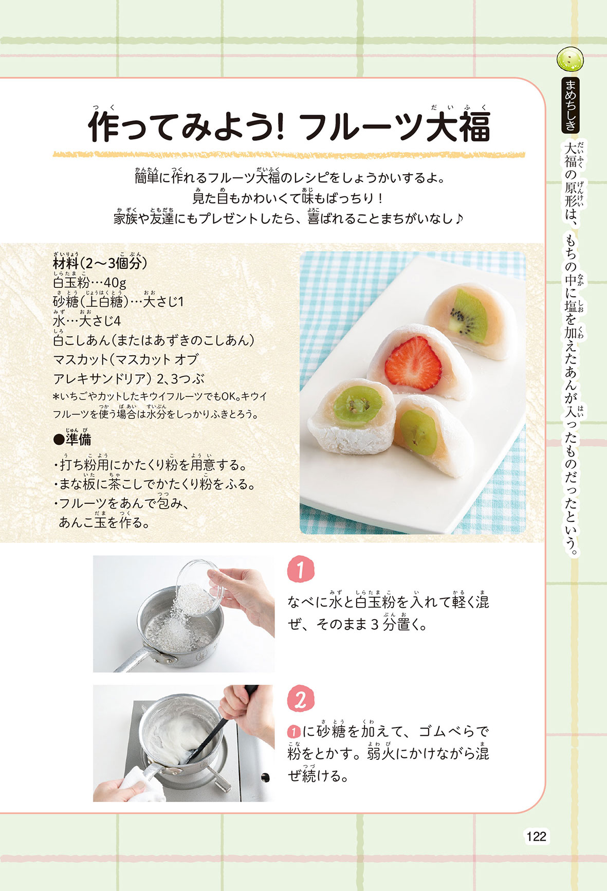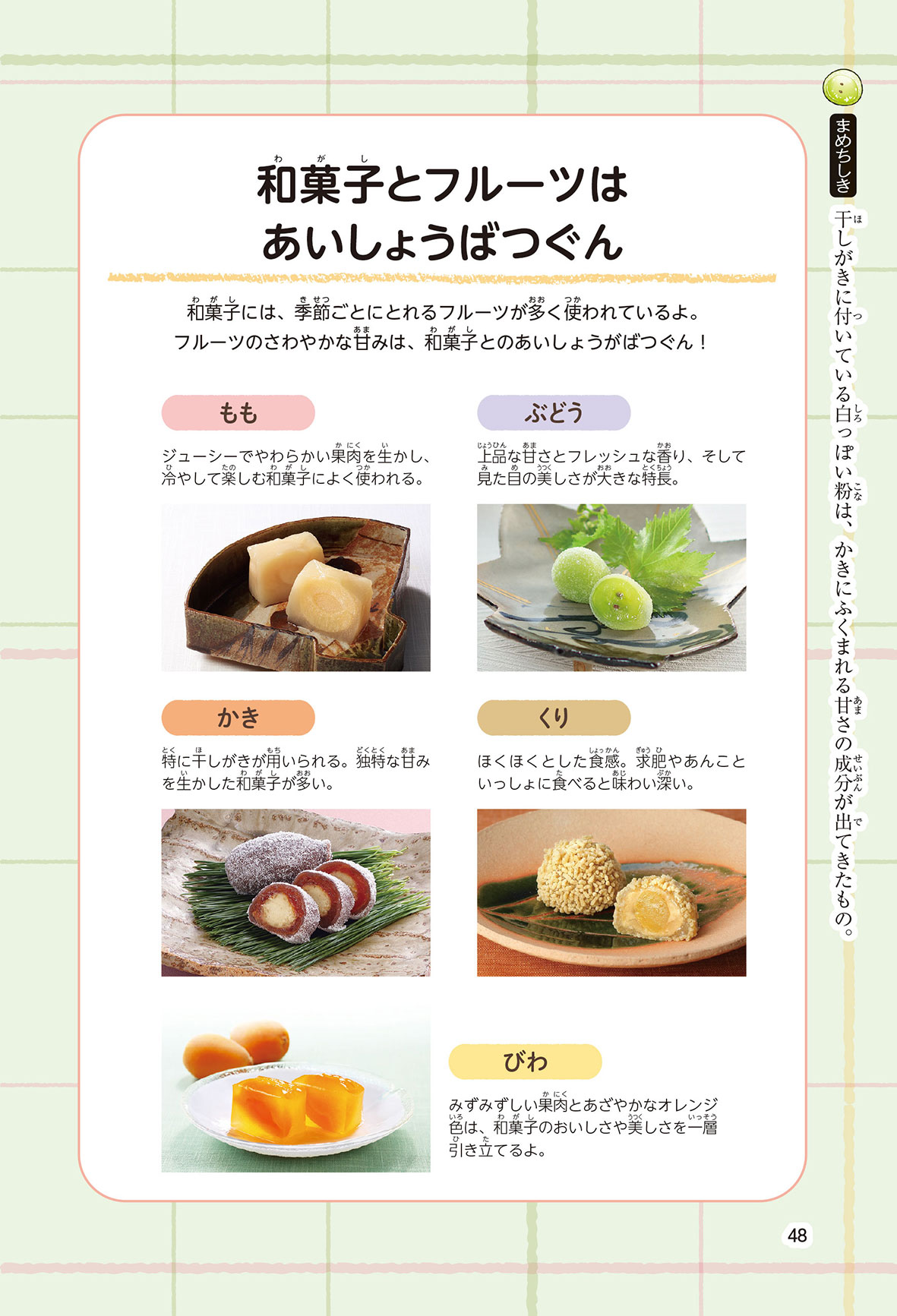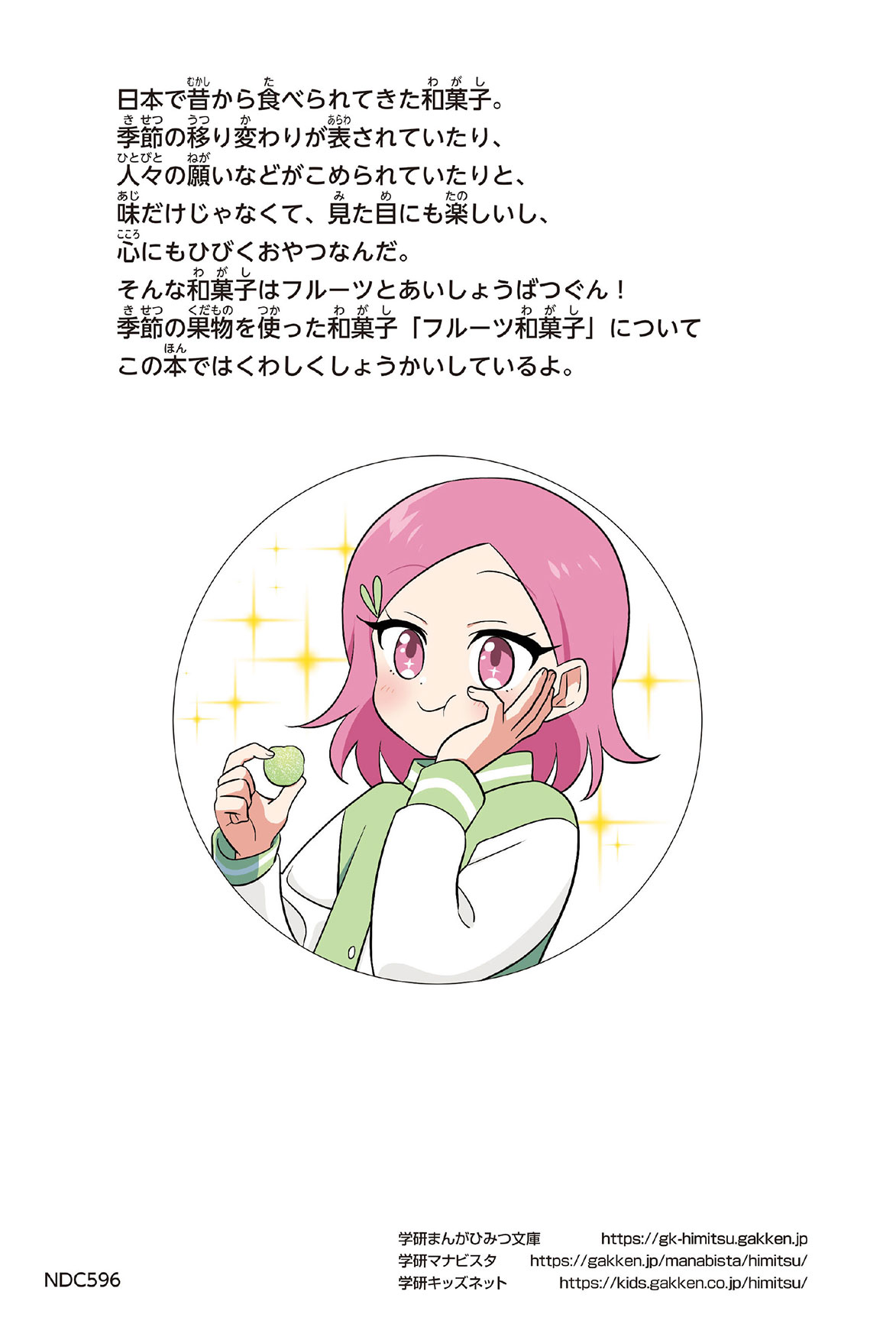 日本で昔から食べられてきた和菓子。季節の移り変わりが表されていたり、人々の願いなどがこめられていたりと、味だけじゃなくて、見た目にも楽しい食べ物なんだ。そんな和菓子はフルーツとあいしょうばつぐん!季節の果物を使った和菓子「フルーツ和菓子」についてこの本ではくわしくしょうかいしているよ。